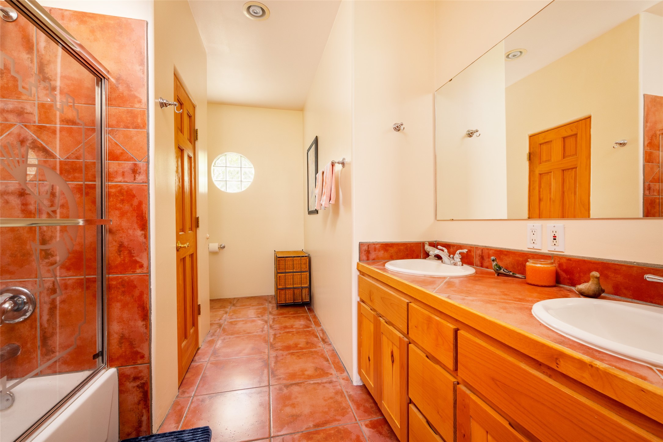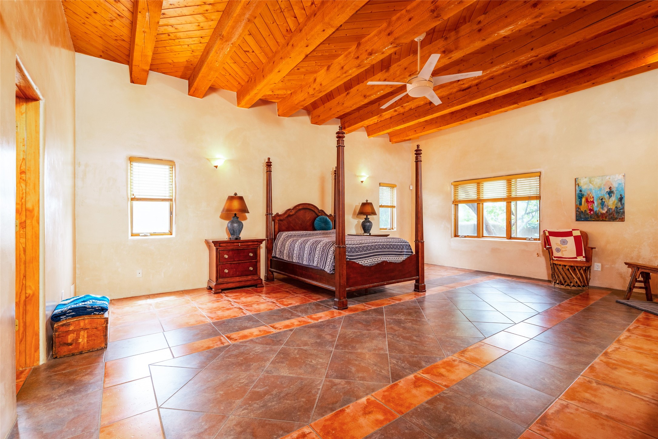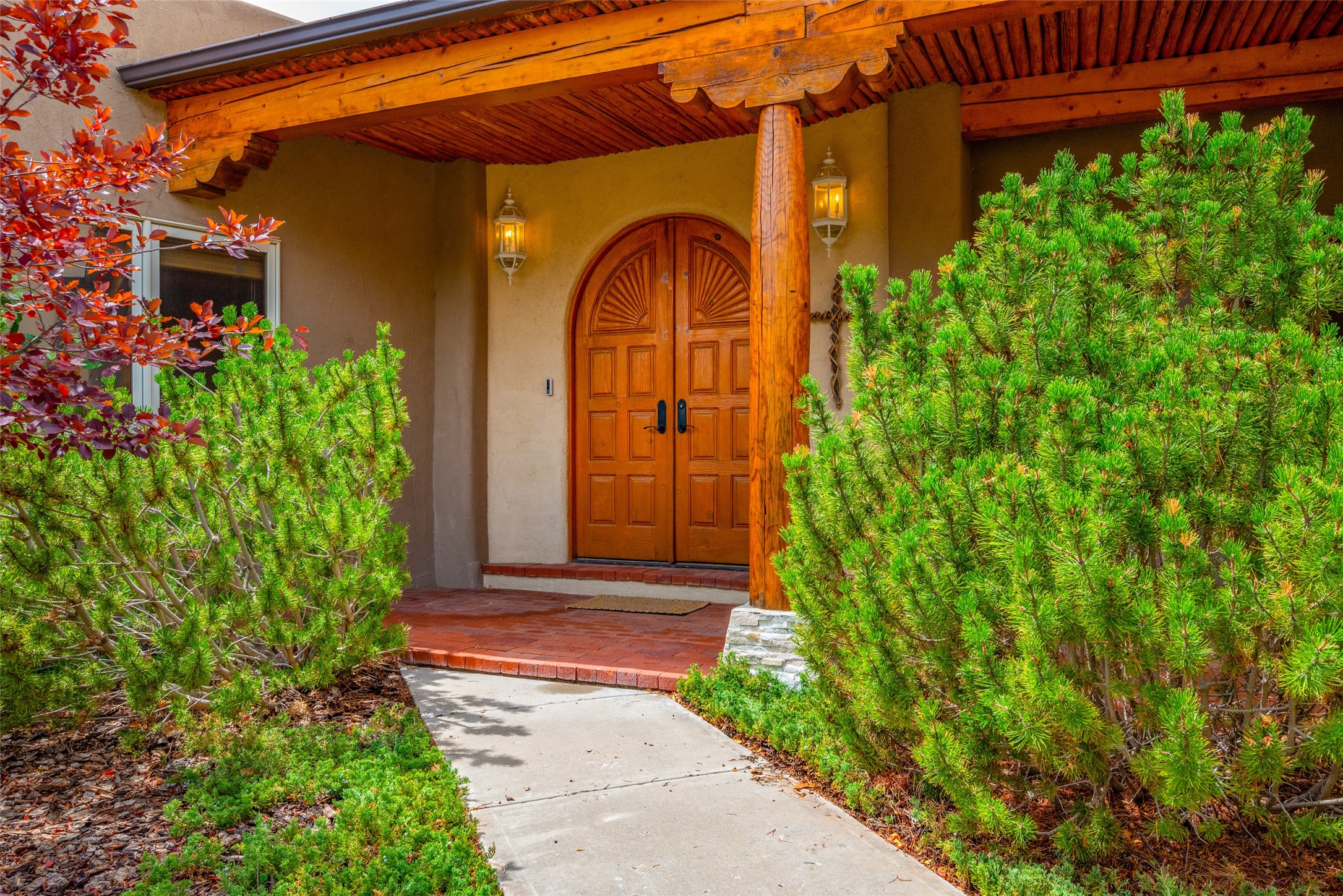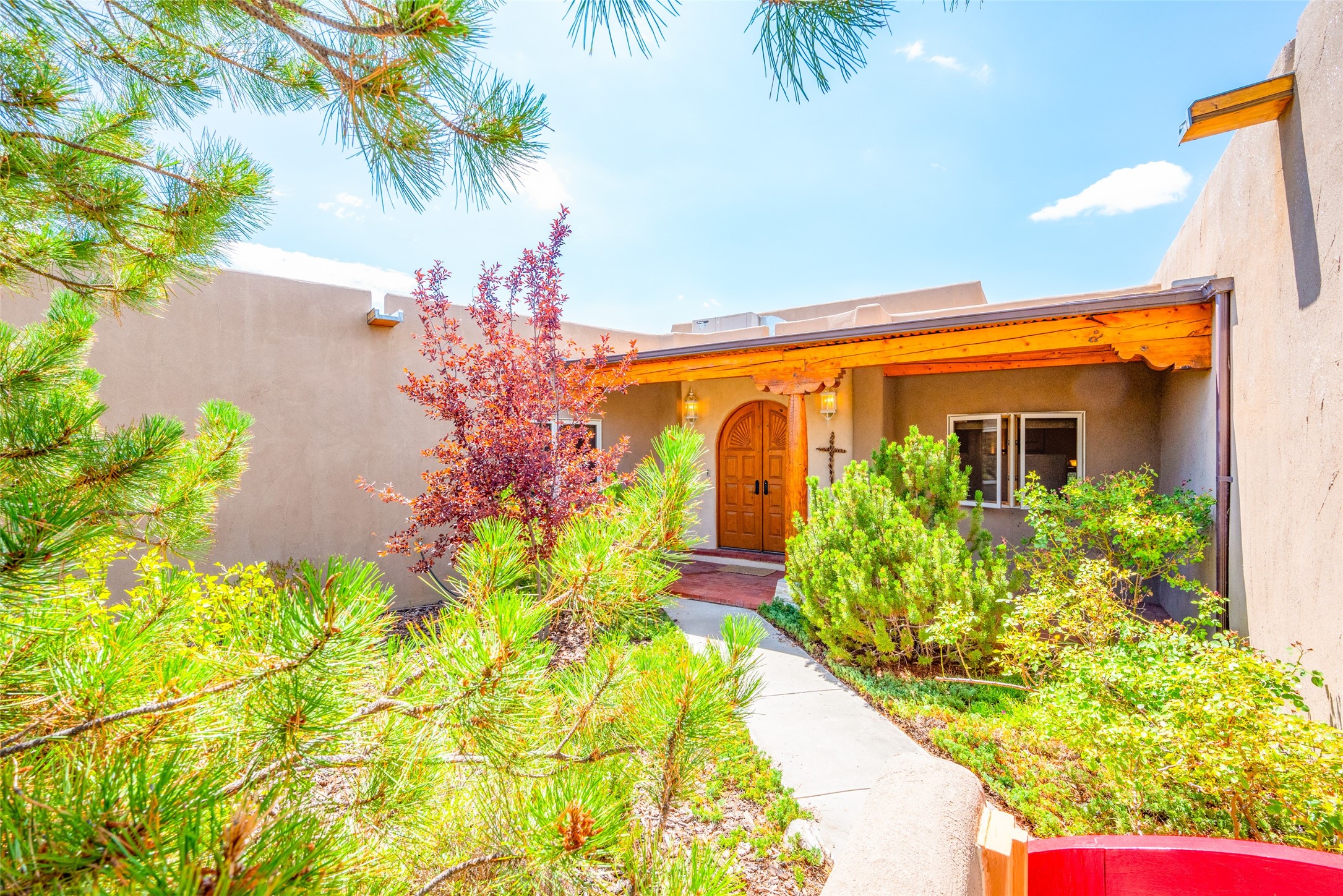 Nestled on a 1/3 acre lot, this charming pueblo-style residence boasts 3 bedrooms and 2 1/2 baths. Inside, enjoy the elegance of plaster-finished interiors, accented by coved vigas. The living area features a convenient wet bar, while the ample formal dining room, breakfast nook, and spacious kitchen make living easy. A few steps lead to the serene primary bedroom suite, adorned with a kiva fireplace, generous bath, and walk-in closet. The guest wing, situated on the entry level, ensures privacy. Outside, mature landscaping, fruit trees, and a vast back portal create a peaceful haven. With radiant heat, evaporative cooling, and a double garage, this well-maintained home is ready to welcome you. County Assessor shows the square footage at 2738 which differs from the floor plan provided. Neither Listing Brokers nor Sellers warrant the square footage of the home or lot. If size of the home or lot are of material consideration to the Buyer, then the Buyer should have them measured. Tax Levy is from the Assessor website. All fires depicted are photo-shopped. Buyer to verify functionality of the fireplaces.
