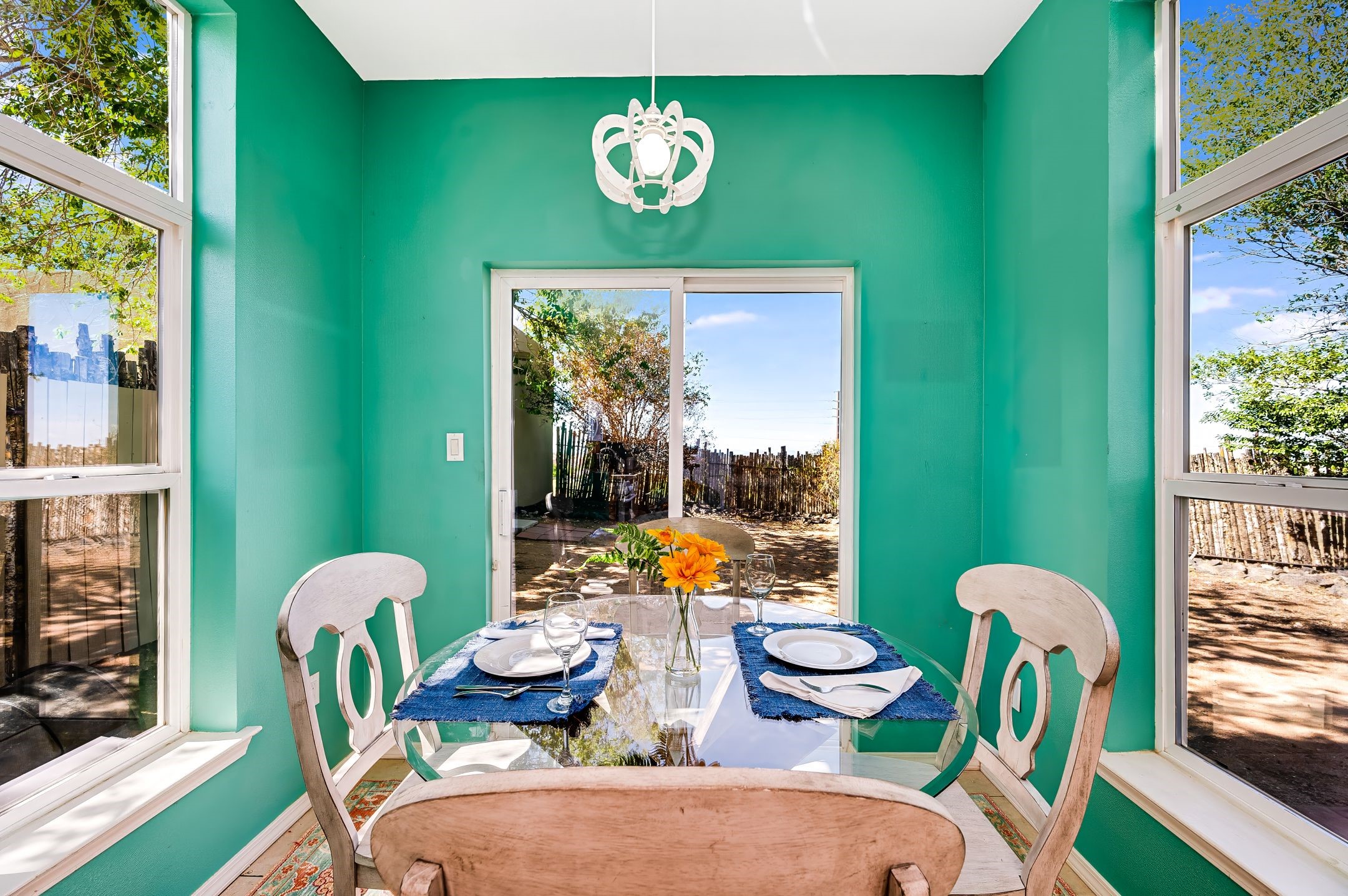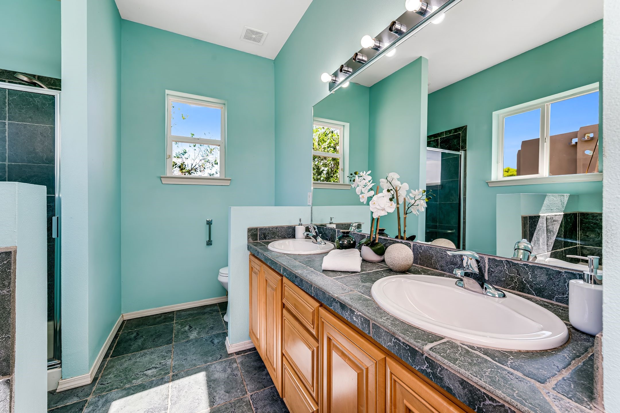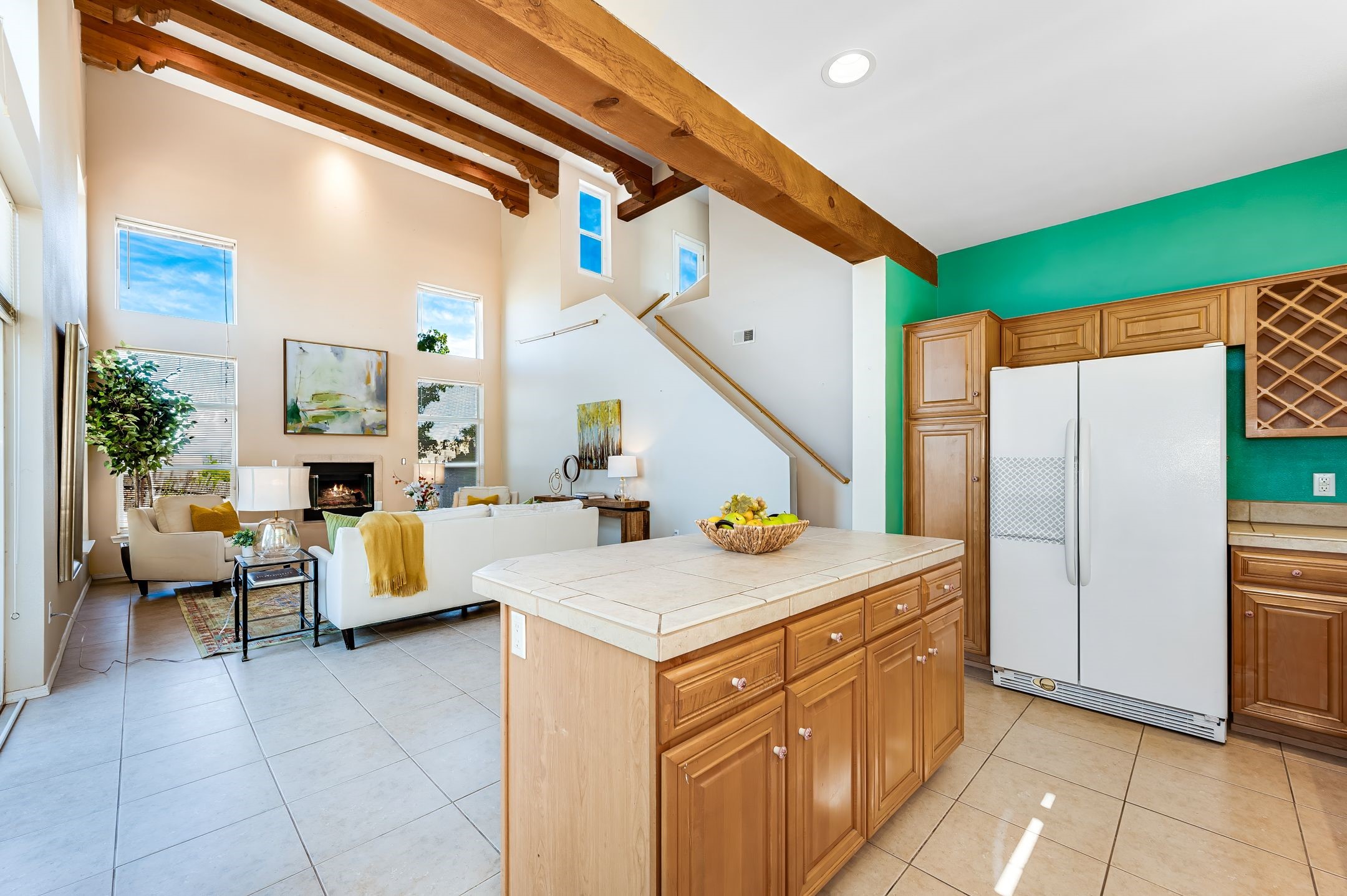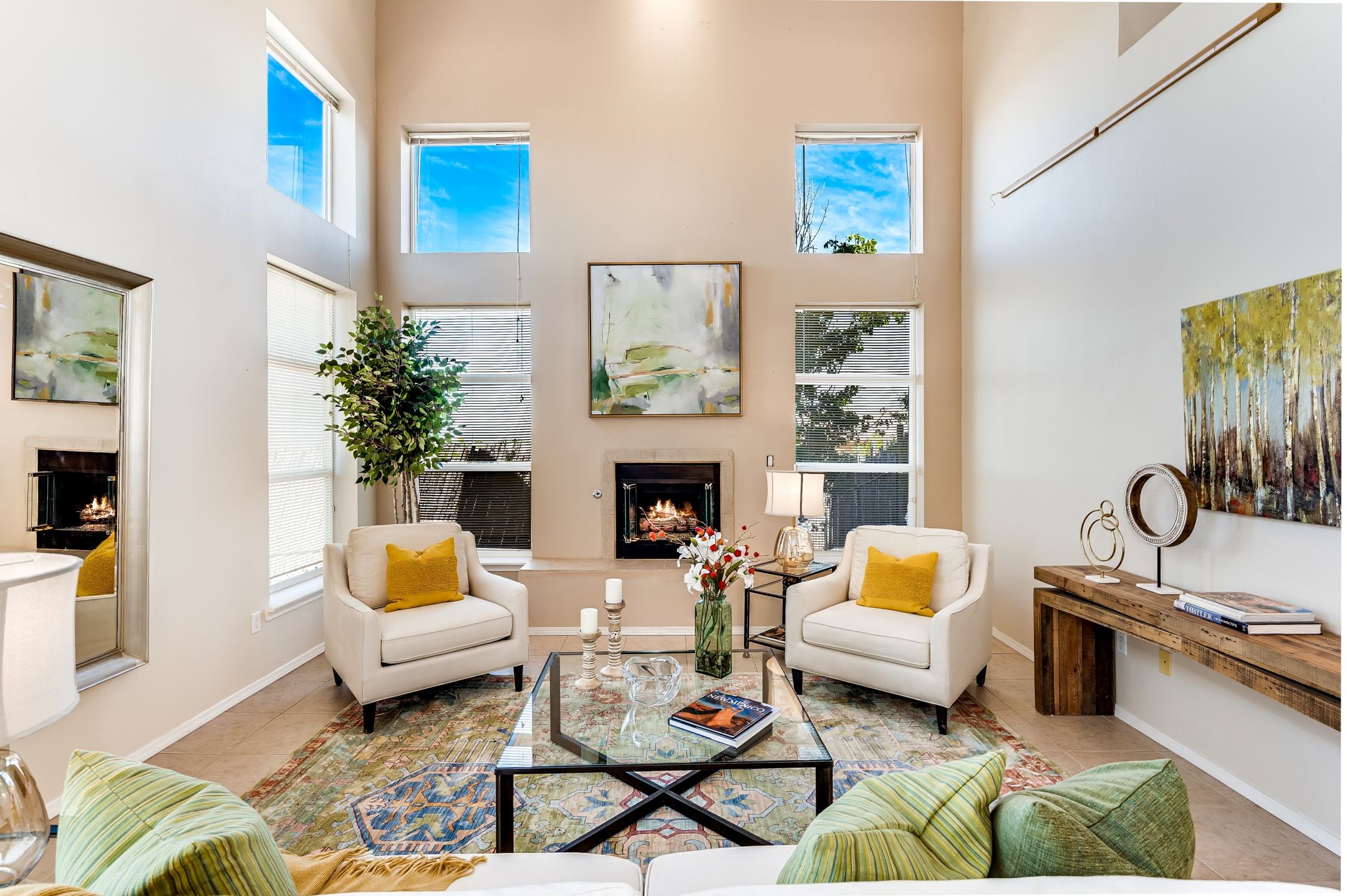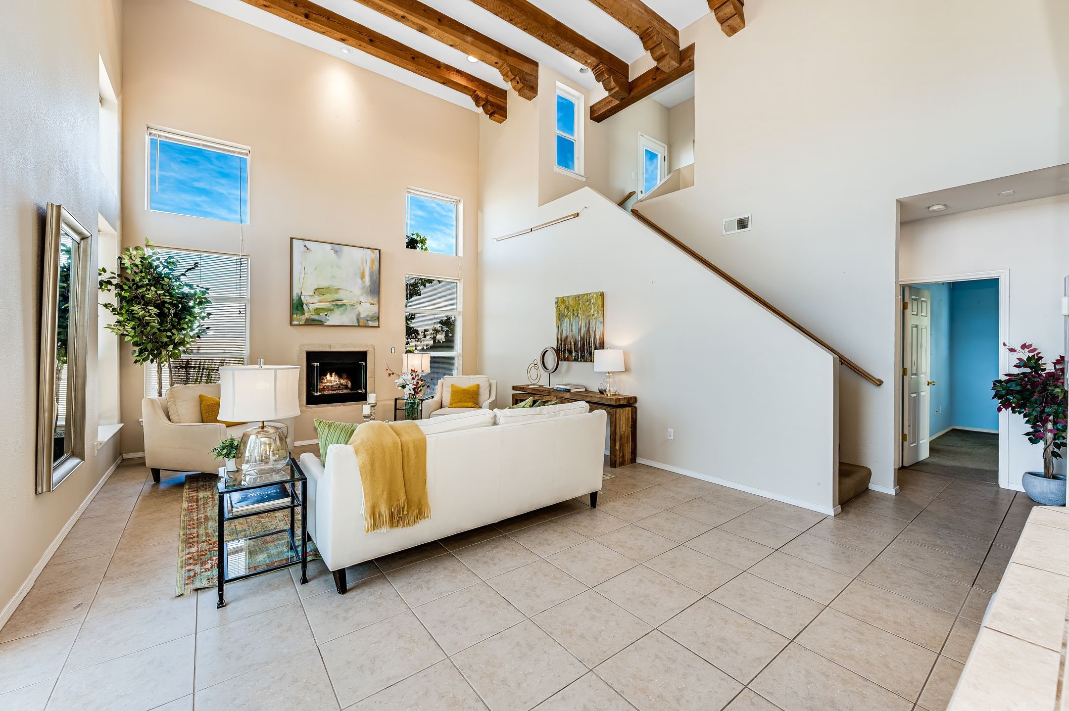 This special property on a cul-de-sac in Nava Ade has so many incredible features. Light and bright, this 3 bedroom/2 bathroom home has high ceilings with beams, a fireplace, and an open kitchen. There are 2 balconies that boast stunning Sangre De Cristo and Santa Fe Ski area views. The fenced deck, that opens up just outside of the primary bedroom is a perfect place to soak up the New Mexico sun, and enjoy the stunning mountain views. The backyard is completely surrounded with coyote fencing and ready to make your own. There is a 2 car garage, large driveway, and carport to make for plentiful parking. A pre-inspection has already been completed on this lovely home. The HOA includes a pool, fitness center, and community area for your enjoyment. The location is near schools, shopping, restaurants, a quick drive to the downtown plaza, and has easy access to I25 and 599 which is great for commuters! This home is such a delight! A brand new air conditioning was installed 8/23 and it comes with a warranty for the new owner and a maintenance agreement!