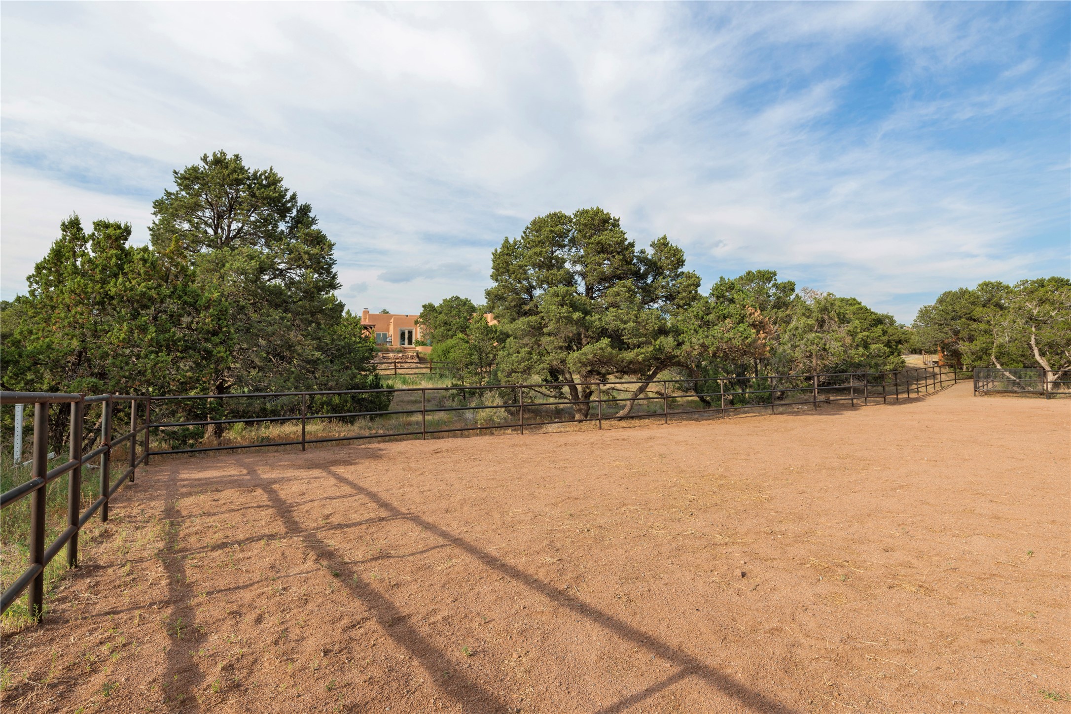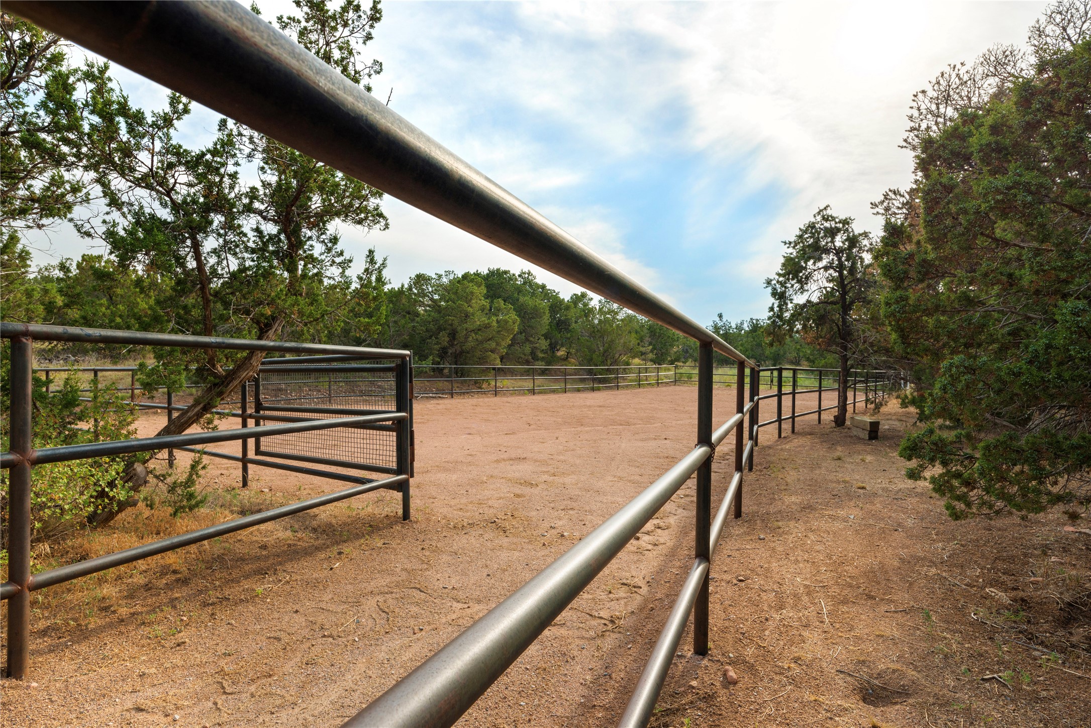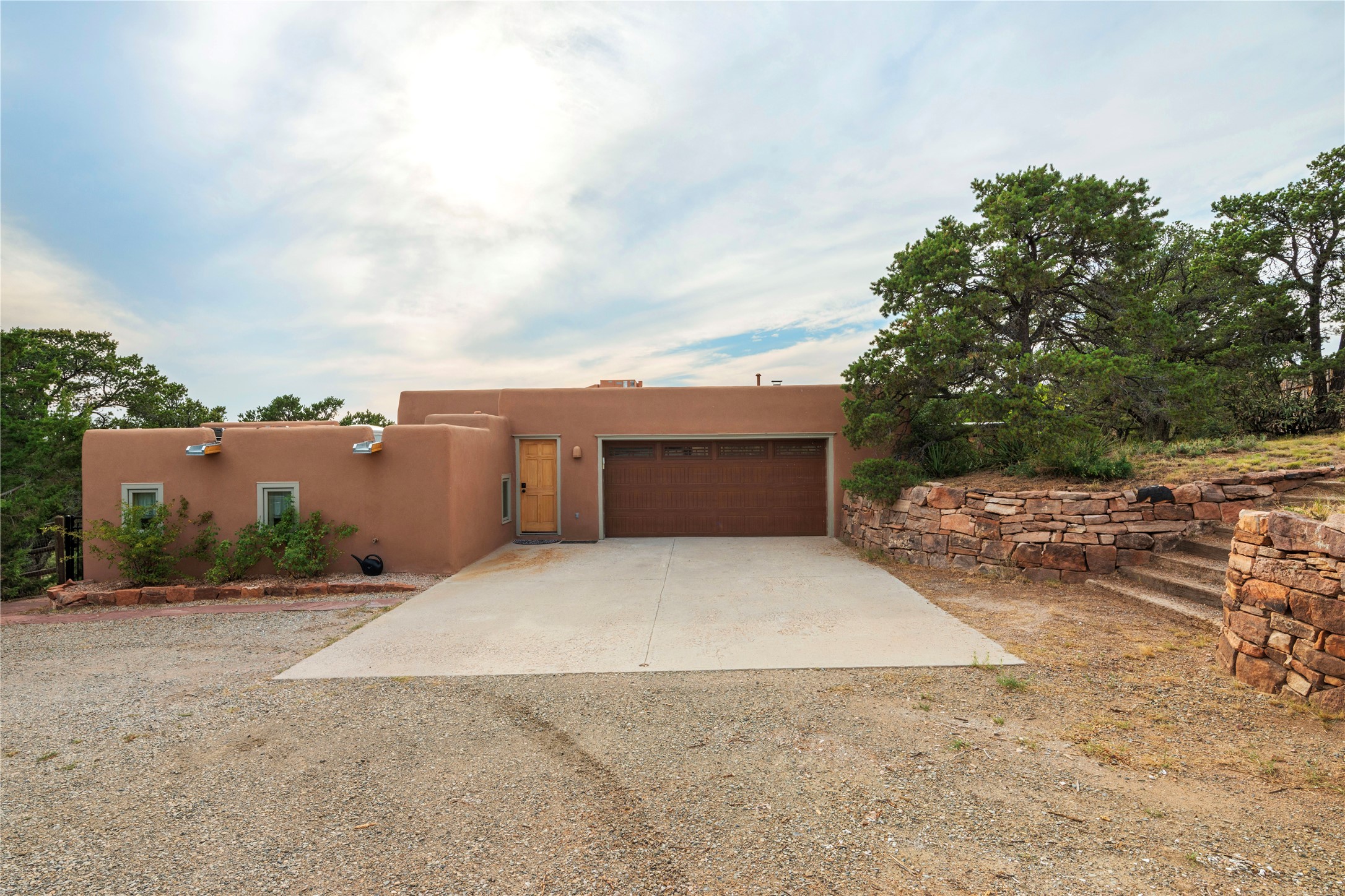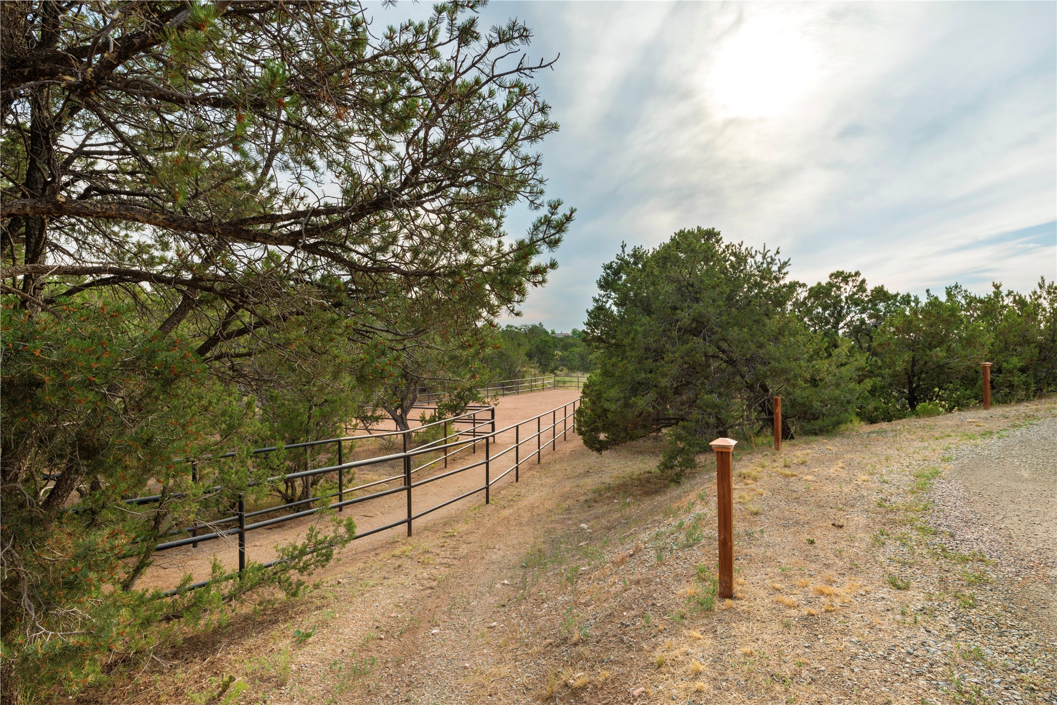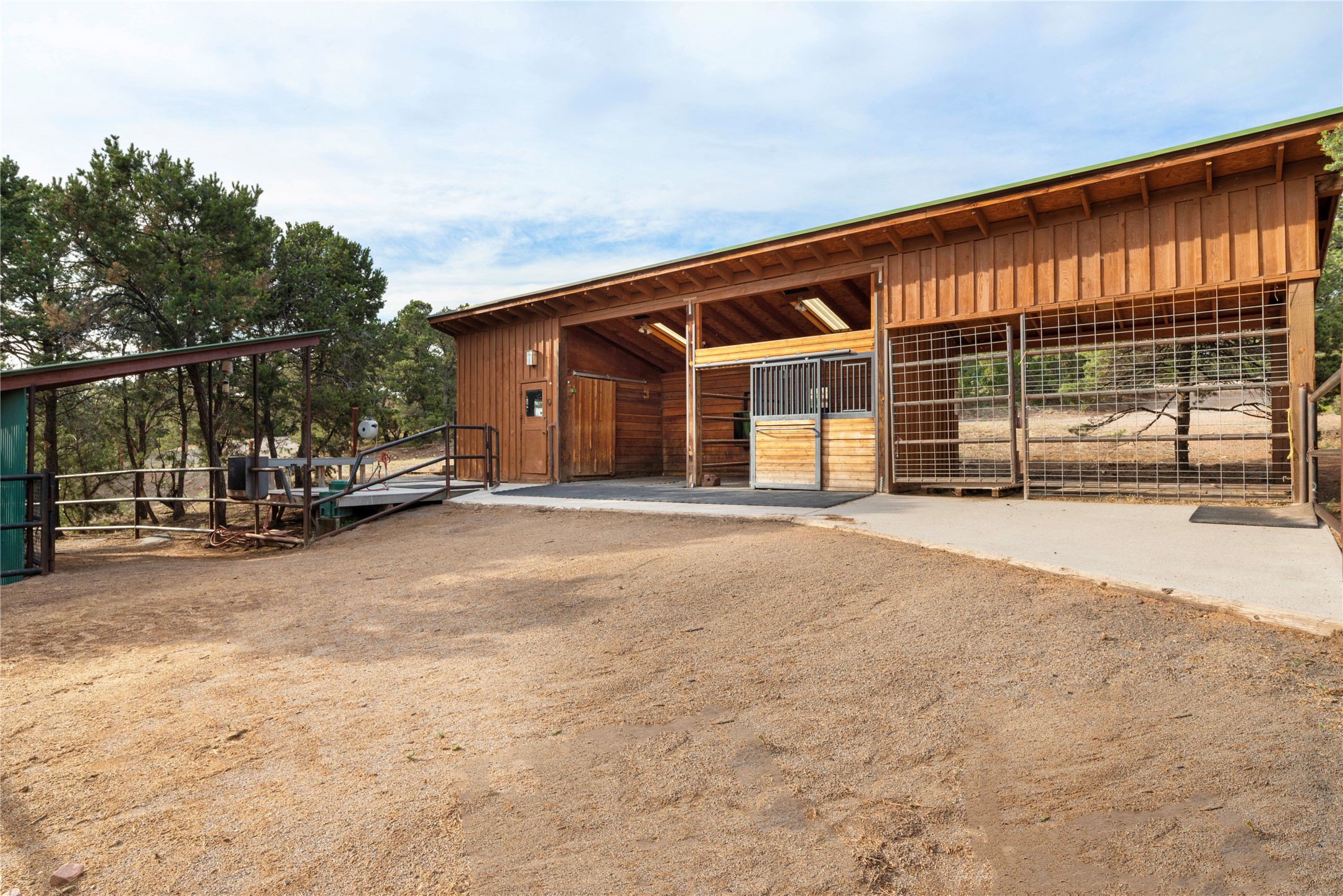 Hidden In Plain Sight! The topography, mature trees and gated driveway combine to create this private haven. This custom built home has been extensively remodeled over the course of several years, including a completely new, well appointed kitchen in 2020, numerous new windows and five patio doors in 2019, remodeled primary and guest bathrooms, new tile flooring 2023 and new stucco in 2021. The home features three bedrooms, a den/media room plus a home office with a separate entrance. The home has a wonderful flow. The primary bedroom with ensuite bath, walk-in closet and french doors to the flagstone patio and the home office are at one end. The beautifully proportioned living room opens to the dining room with an arched opening to the light, bright, centrally located kitchen. Down several steps and open from the kitchen is the den/media room and the second and third bedrooms and 3/4 bathroom. There is a conveniently located "mud room" off the kitchen with a half bath and laundry room in this area as well, and access to the oversized two car garage. French doors open to the large flagstone patio and beautiful ramada, with an expansive wrap-around fenced area for dogs - a tranquil spot for morning coffee, outdoor dining and entertaining, gazing at horses and enjoying the western evening light changes. The two stall barn has mat floors and feeders with attached pipe paddock and arena, tack room, wash/tack-up area and covered hay storage. Room for a trailer, or just tack up and ride out! *2 Horses Permitted* Peaceful living with nature at your fingertips - Ravens and a Cooper's Hawk have nested here, occasional deer, coyotes and bobcat pass through. Solar panels purchased in 2020 and a breaker installed for electric car charging. Come see this Private Paradise!