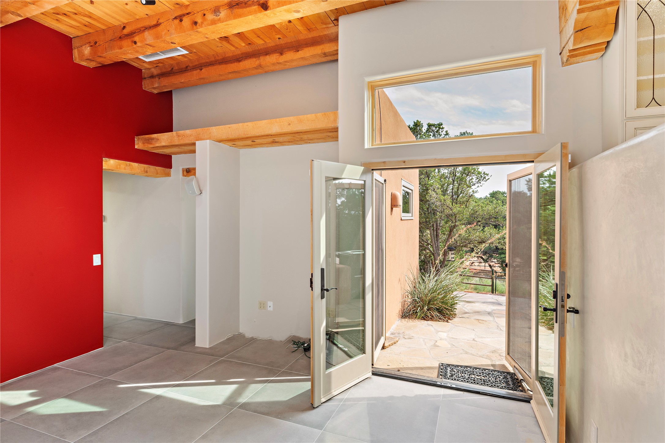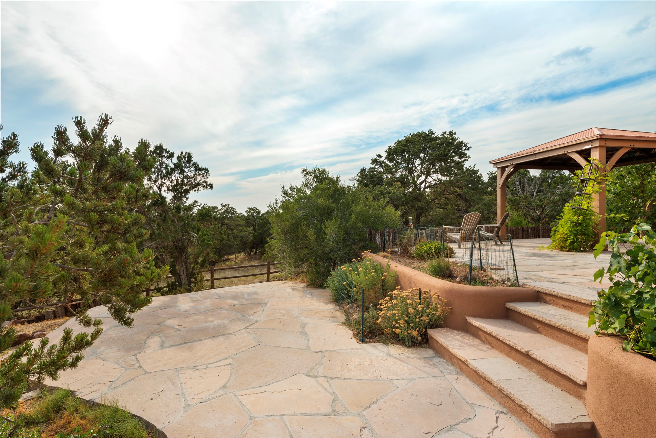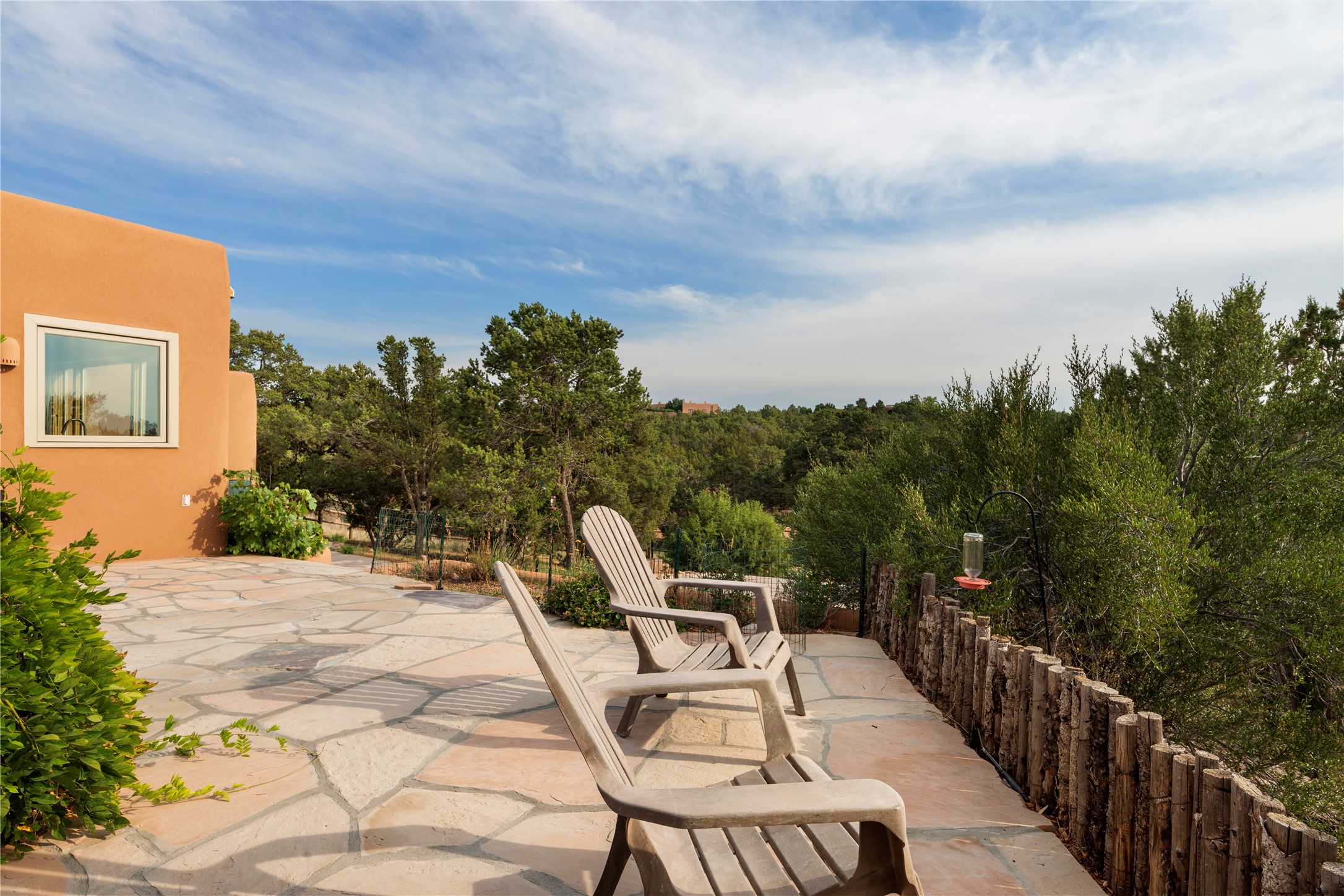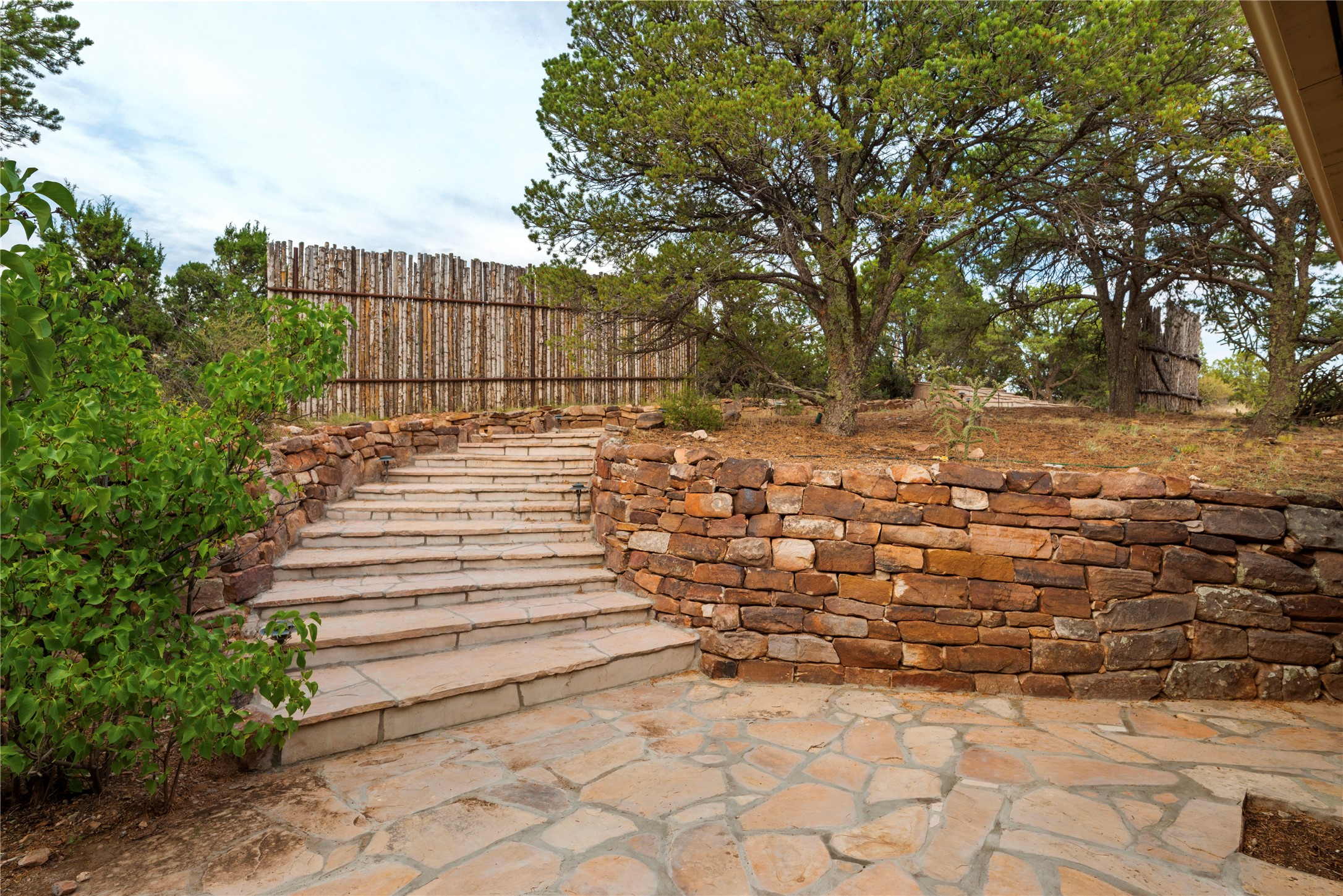 Hidden In Plain Sight! The topography, mature trees and gated driveway combine to create this private haven. This custom built home has been extensively remodeled over the course of several years, including a completely new, well appointed kitchen in 2020, numerous new windows and five patio doors in 2019, remodeled primary and guest bathrooms, new tile flooring 2023 and new stucco in 2021. The home features three bedrooms, a den/media room plus a home office with a separate entrance. The home has a wonderful flow. The primary bedroom with ensuite bath, walk-in closet and french doors to the flagstone patio and the home office are at one end. The beautifully proportioned living room opens to the dining room with an arched opening to the light, bright, centrally located kitchen. Down several steps and open from the kitchen is the den/media room and the second and third bedrooms and 3/4 bathroom. There is a conveniently located "mud room" off the kitchen with a half bath and laundry room in this area as well, and access to the oversized two car garage. French doors open to the large flagstone patio and beautiful ramada, with an expansive wrap-around fenced area for dogs - a tranquil spot for morning coffee, outdoor dining and entertaining, gazing at horses and enjoying the western evening light changes. The two stall barn has mat floors and feeders with attached pipe paddock and arena, tack room, wash/tack-up area and covered hay storage. Room for a trailer, or just tack up and ride out! *2 Horses Permitted* Peaceful living with nature at your fingertips - Ravens and a Cooper's Hawk have nested here, occasional deer, coyotes and bobcat pass through. Solar panels purchased in 2020 and a breaker installed for electric car charging. Come see this Private Paradise!