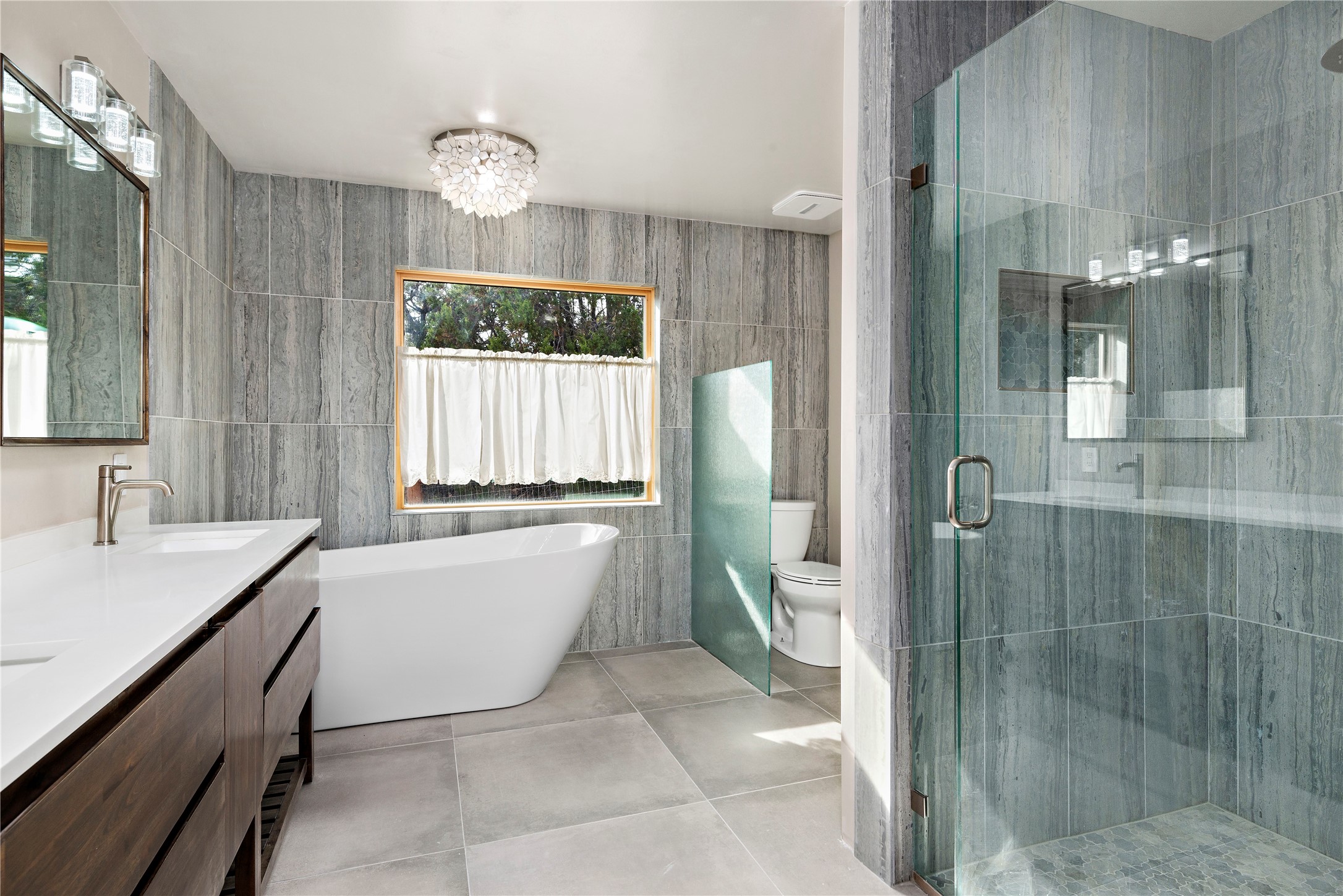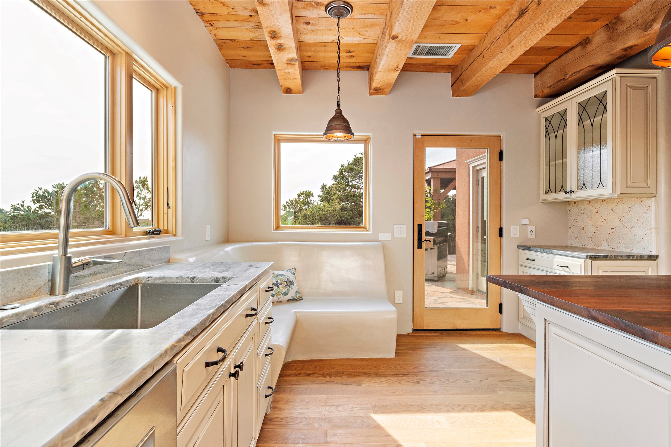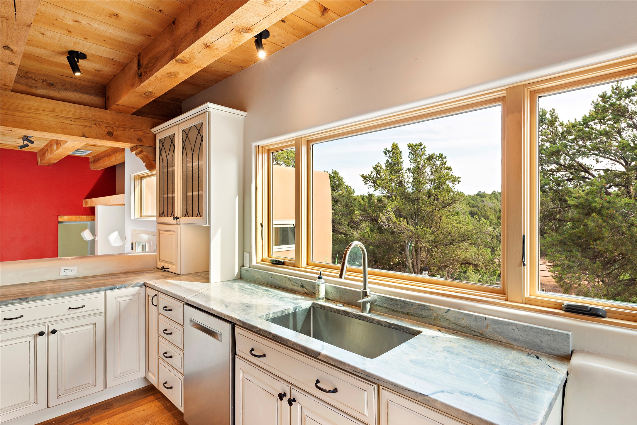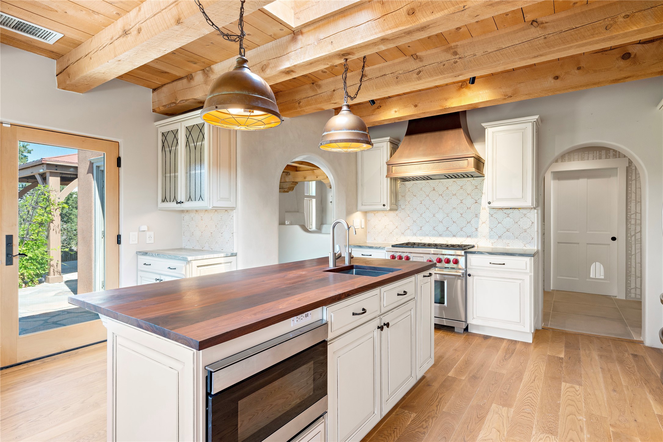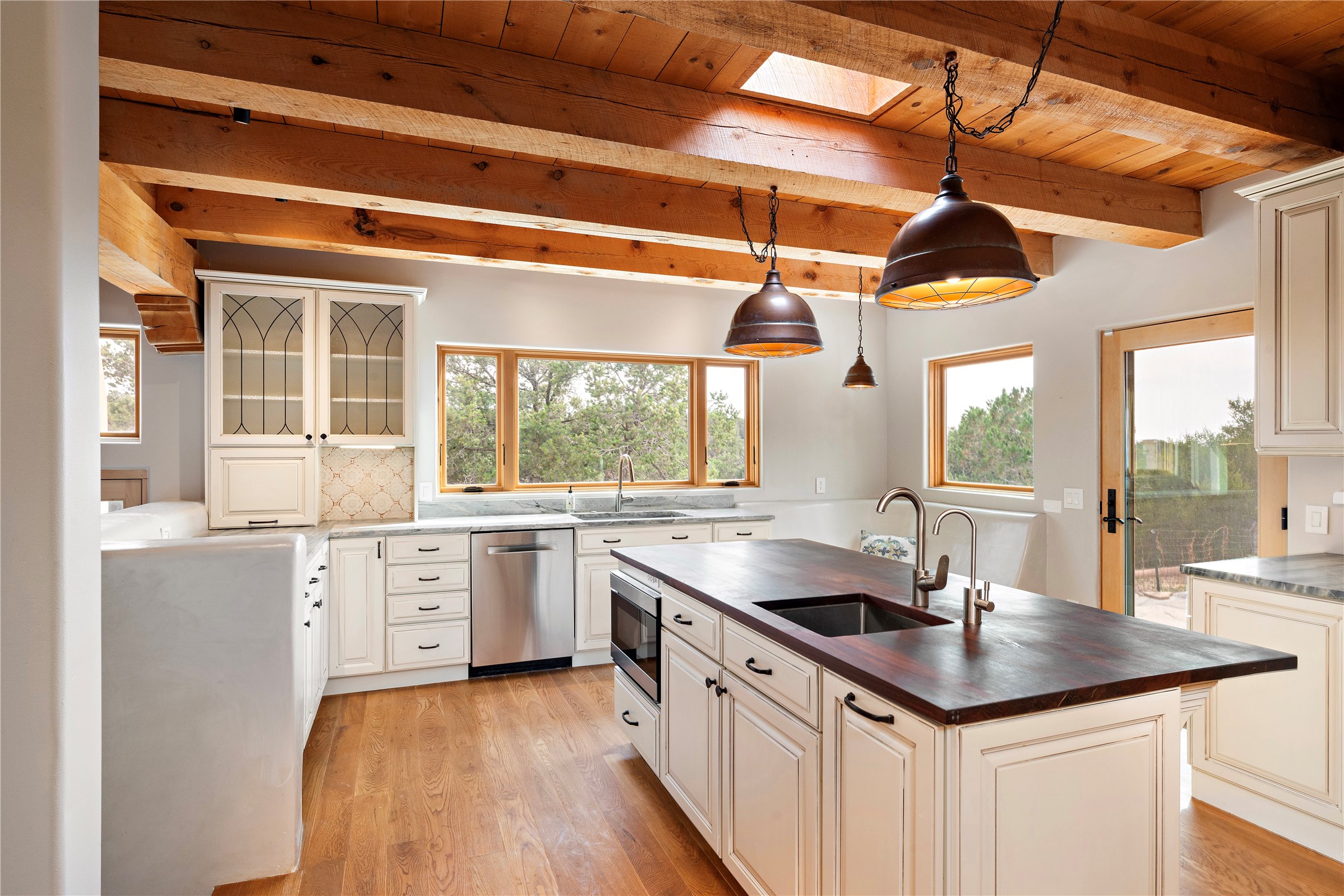 Hidden In Plain Sight! The topography, mature trees and gated driveway combine to create this private haven. This custom built home has been extensively remodeled over the course of several years, including a completely new, well appointed kitchen in 2020, numerous new windows and five patio doors in 2019, remodeled primary and guest bathrooms, new tile flooring 2023 and new stucco in 2021. The home features three bedrooms, a den/media room plus a home office with a separate entrance. The home has a wonderful flow. The primary bedroom with ensuite bath, walk-in closet and french doors to the flagstone patio and the home office are at one end. The beautifully proportioned living room opens to the dining room with an arched opening to the light, bright, centrally located kitchen. Down several steps and open from the kitchen is the den/media room and the second and third bedrooms and 3/4 bathroom. There is a conveniently located "mud room" off the kitchen with a half bath and laundry room in this area as well, and access to the oversized two car garage. French doors open to the large flagstone patio and beautiful ramada, with an expansive wrap-around fenced area for dogs - a tranquil spot for morning coffee, outdoor dining and entertaining, gazing at horses and enjoying the western evening light changes. The two stall barn has mat floors and feeders with attached pipe paddock and arena, tack room, wash/tack-up area and covered hay storage. Room for a trailer, or just tack up and ride out! *2 Horses Permitted* Peaceful living with nature at your fingertips - Ravens and a Cooper's Hawk have nested here, occasional deer, coyotes and bobcat pass through. Solar panels purchased in 2020 and a breaker installed for electric car charging. Come see this Private Paradise!