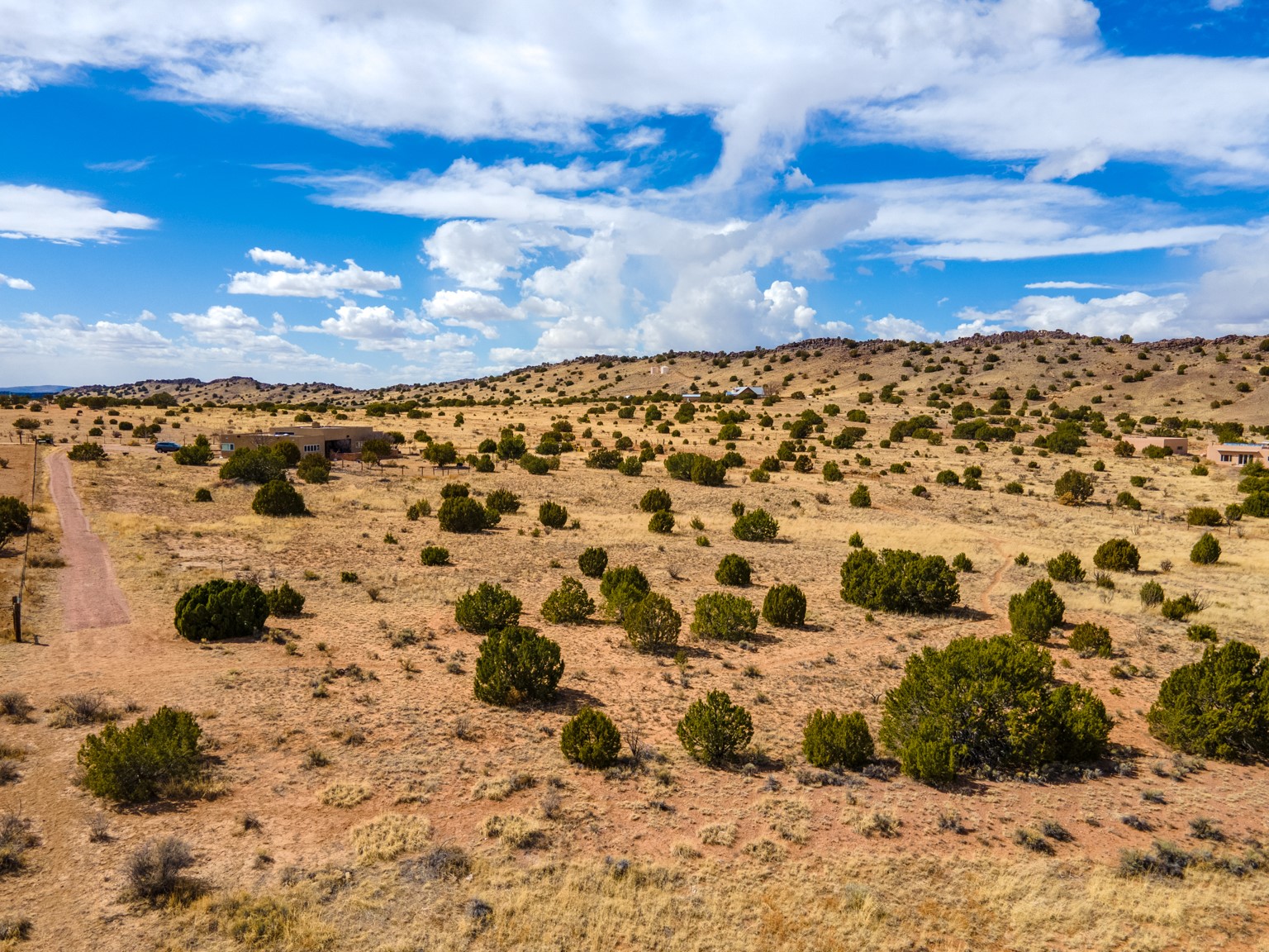 This sweet tucked away lot has outstanding views of the northern mountains and the desirable and sought after "Dinosaur Ridge". It features a meadow "like" easy build terrain with panoramic views and most surrounding homes are in place. As a big plus, there is a working well in place which is shared by two properties. The lot is near a paved road and has an in place easement for easy access and is in near proximity to the Village of Galisteo. Come enjoy this historic and beautiful land with a country attitude and beautiful views. Easy to show and ready for your dream home. (This is an architect owned lot and plans for a small home have been completed which may be available for purchase.)