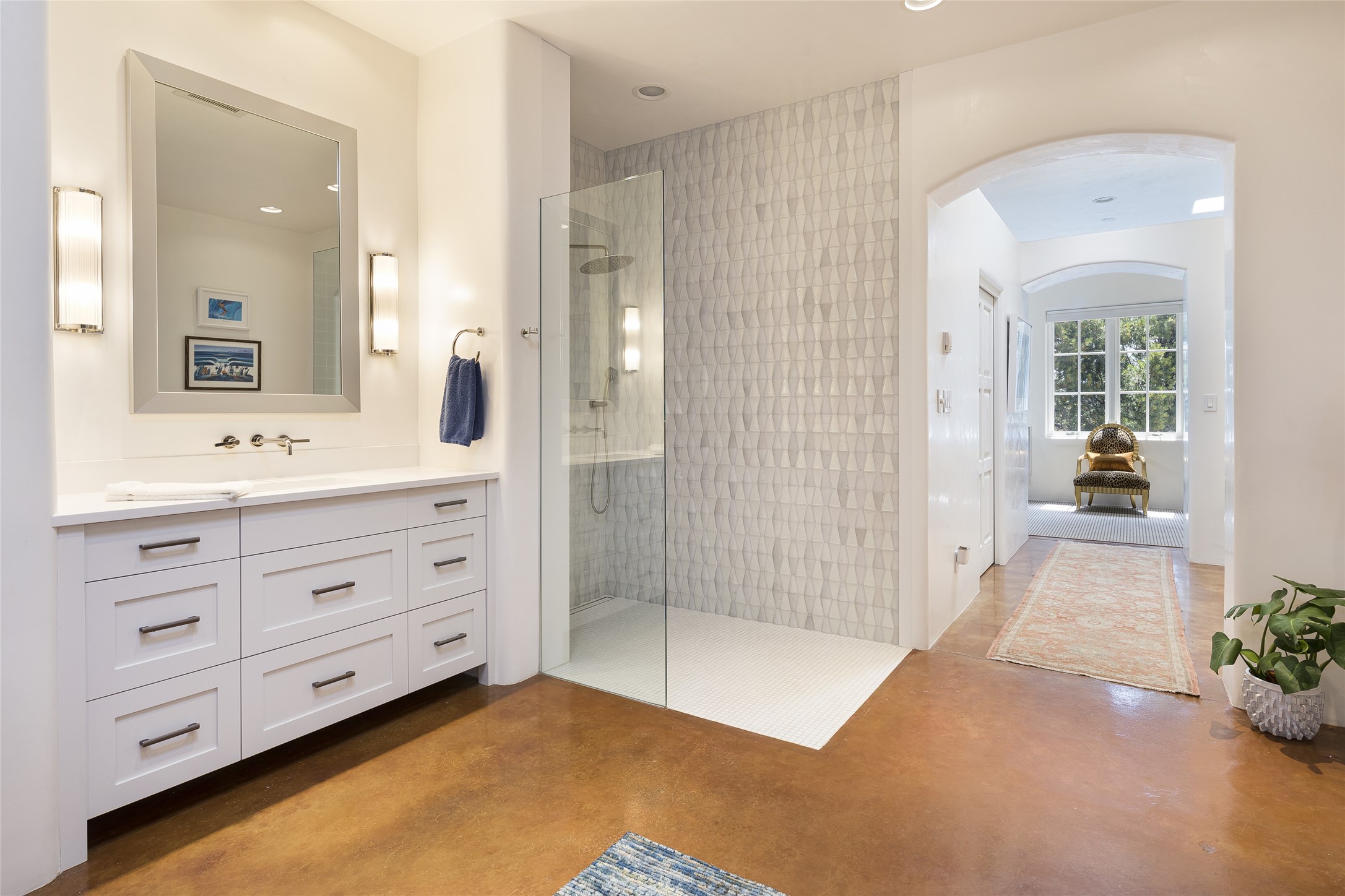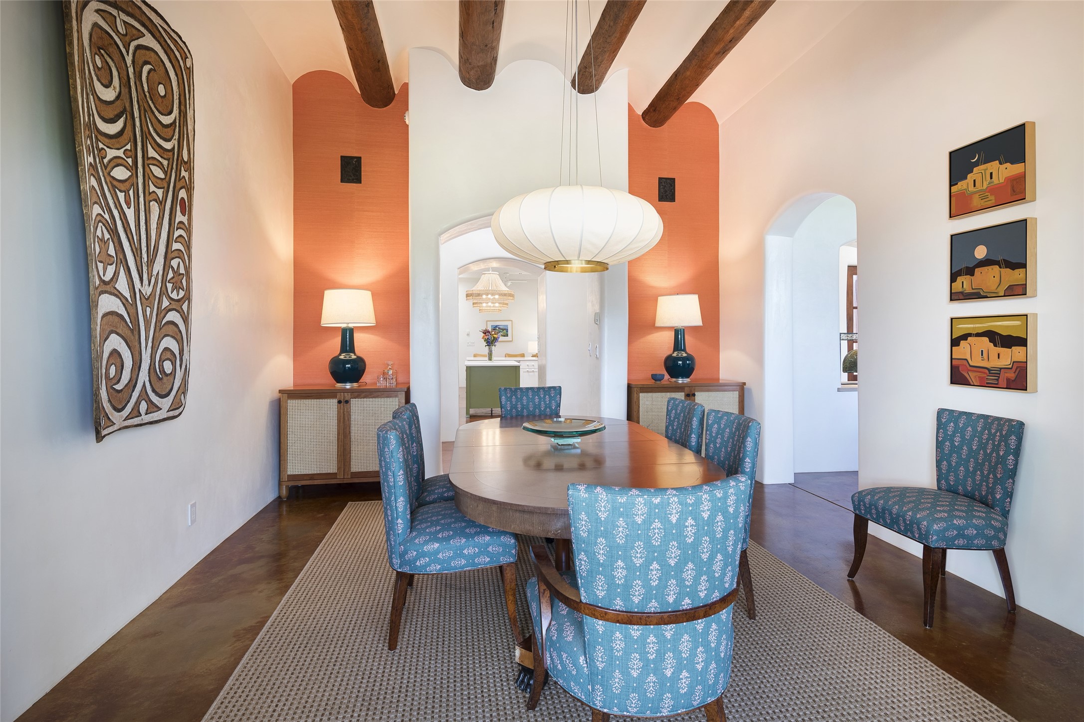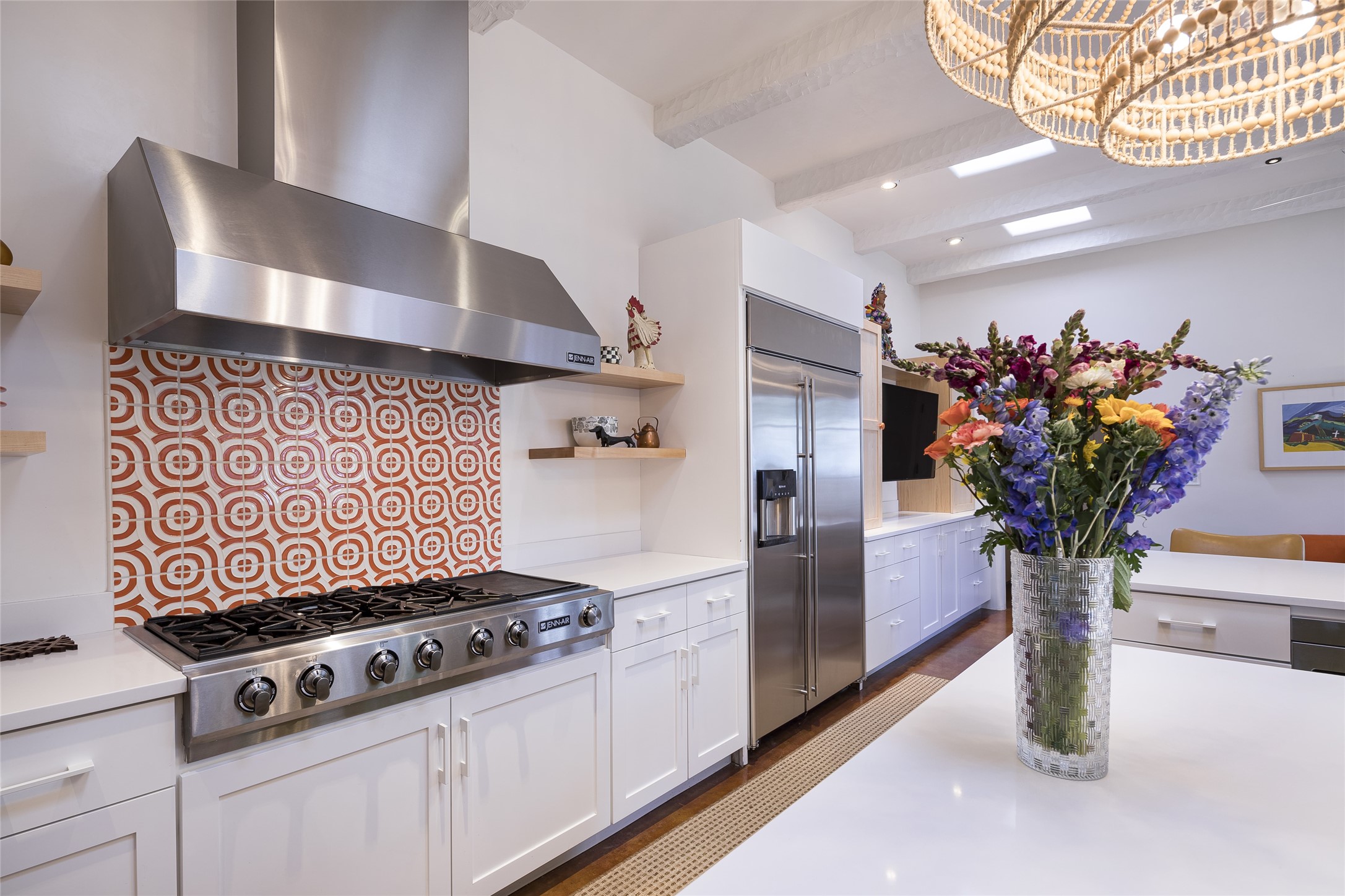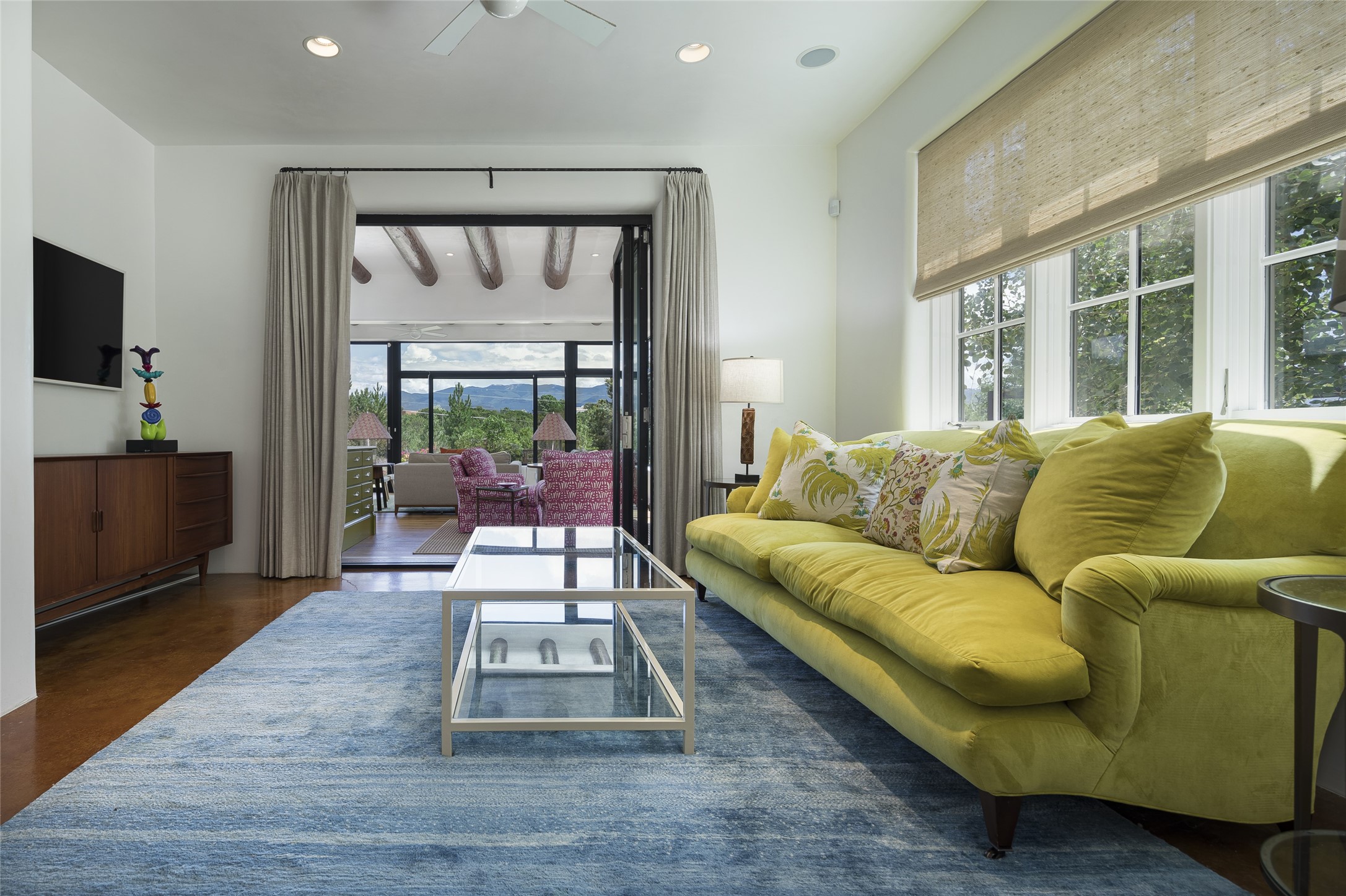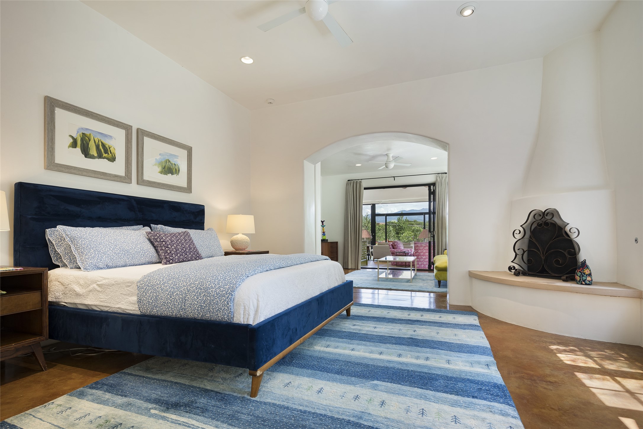 EXPERIENCE THE BEST-OF-THE-BEST IN THIS EXCITING SANTA FE PROPERTY WITH SWEEPING MOUNTAIN VIEWS LOCATED ON A RARE ELEVATED 5+ ACRE PARCEL ON COVETED TANO ROAD. Casa de la Luz is an open, airy, happy, single level home with natural light and lush gardens that enhance the home at every turn. Private gated entry and winding driveway are just the beginning. This exquisite residence has been renovated practically stem-to-stern with first class materials that feel livable, luxurious and relaxing. Dazzling white hand plastered walls, soaring ceilings and banks of windows take your eyes to the WOW views of mountain and sky! Elegant gates lead to the front courtyard with a water feature and impressive double doors that peak through the home to the Sangre de Cristo Mountains. The cook's kitchen is welcoming with plenty of counter space, high-end appliances and a den-like informal dining area. Entertain with style and grace at this stunning property which offers 3 bedrooms, each with an ensuite bathroom, and a separate office. The primary suite features a fireplace, a spa-like bathroom, a soaking tub, separate walk-in shower, and three oversized closets. The living room has soaring ceilings, a fireplace, and large windows that showcase the panoramic views. The sunroom is a perfect place to relax and enjoy the scenery, while the sitting room offers a cozy spot to read or watch TV. The property also includes a 3-car garage with epoxy floors and slat hanging units, a sleek laundry room, and a designer powder room with colors that subtly carry throughout the house. Fall in love with the outdoor living spaces filled with lush landscaping, water features, and mature trees, a covered patio with Lynx grill, and gated vegetable gardens where you can enjoy the peace and tranquility of nature, while being only minutes away from historic downtown Santa Fe. This is a rare opportunity to own a magnificent home in one of the most sought-after locations in Santa Fe. Live...Love...87506!