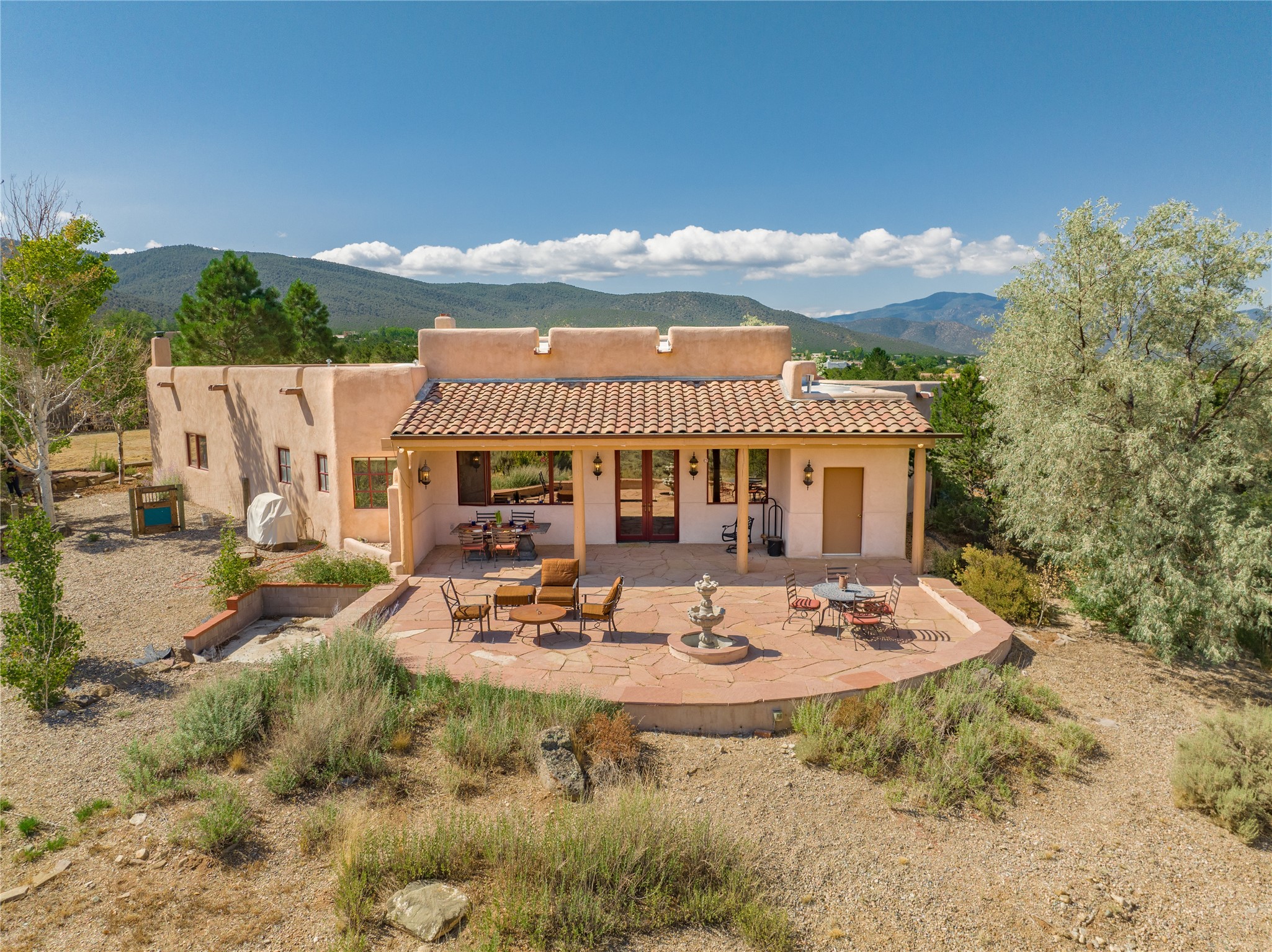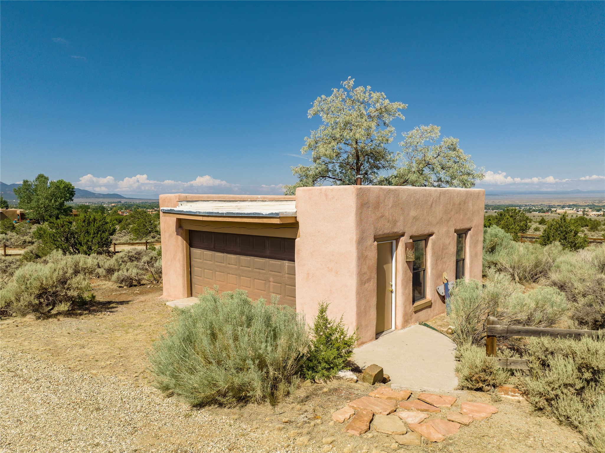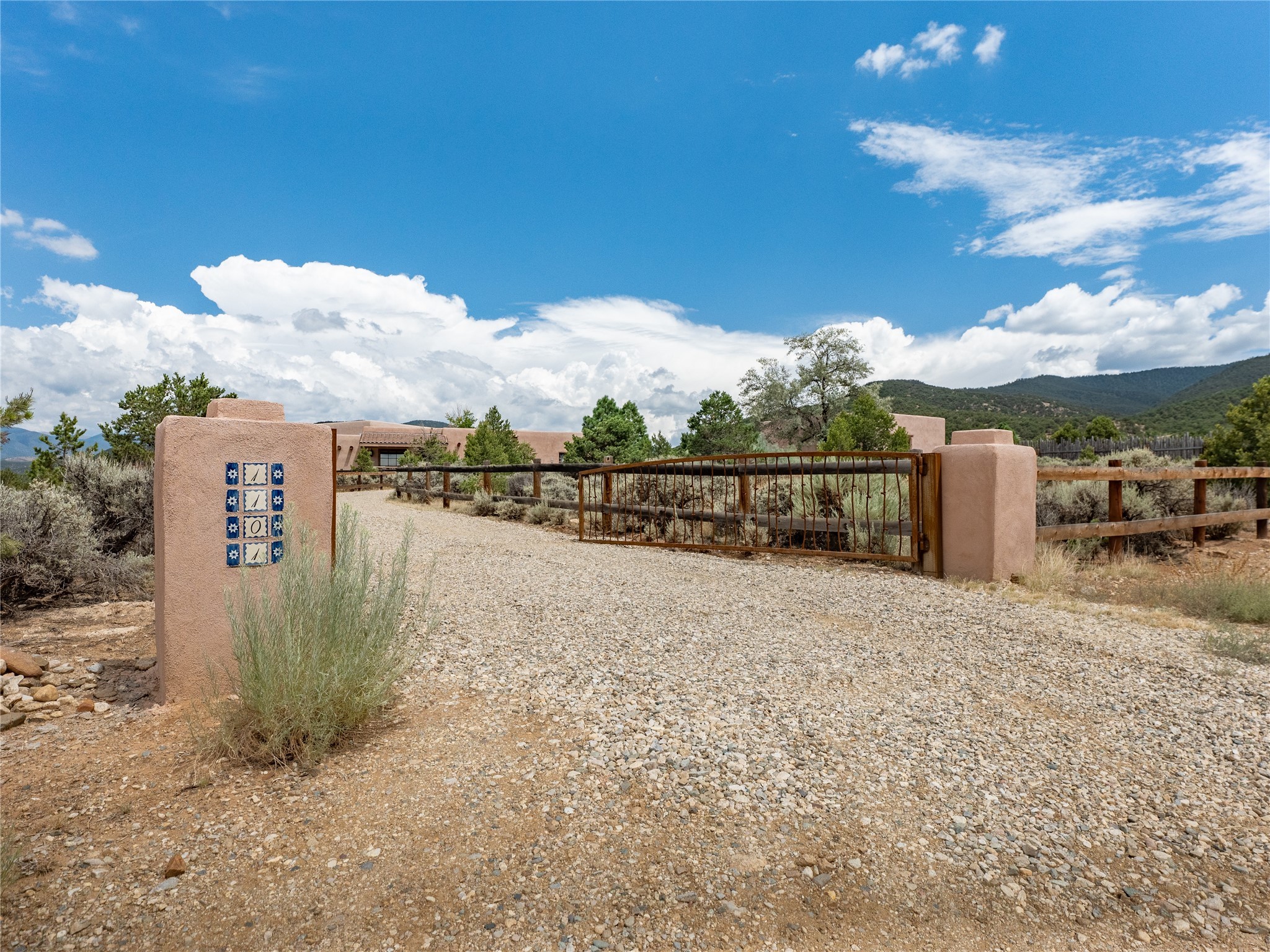 Come see this stunning Taos property before it's gone! Set on 3 acres in the Weimer neighborhood, the beautiful adobe-style home comes with excellent views of the Sangre de Cristo mountains. Inside, enjoy iconic Southwestern features such as saltillo tile floors, plaster walls, and large vigas throughout the entire home. Marvel at the unobstructed views of the mountains from the spacious living area with a vaulted ceiling, wood-burning fireplace, and access to the covered patio. The large kitchen offers beautiful wood cabinetry and tilework, a large pantry, and ample space for creating gourmet meals on the granite countertops. The primary bedroom has a kiva-style fireplace and the ensuite bathroom features a walk-in shower and large tub with luxury tiling and a massive walk-in closet. Two guest bedrooms with ensuite bathrooms offer plenty of room for the entire family. Additional features include a fourth bedroom that is currently setup as a billiards room and a laundry room with full size washer and dryer. An attached garage has room for two vehicles, and a separate outbuilding can store two more vehicles or be finished out as a studio or workshop. Enjoy the comforts of southwestern luxury with 1101 Hennings Street!