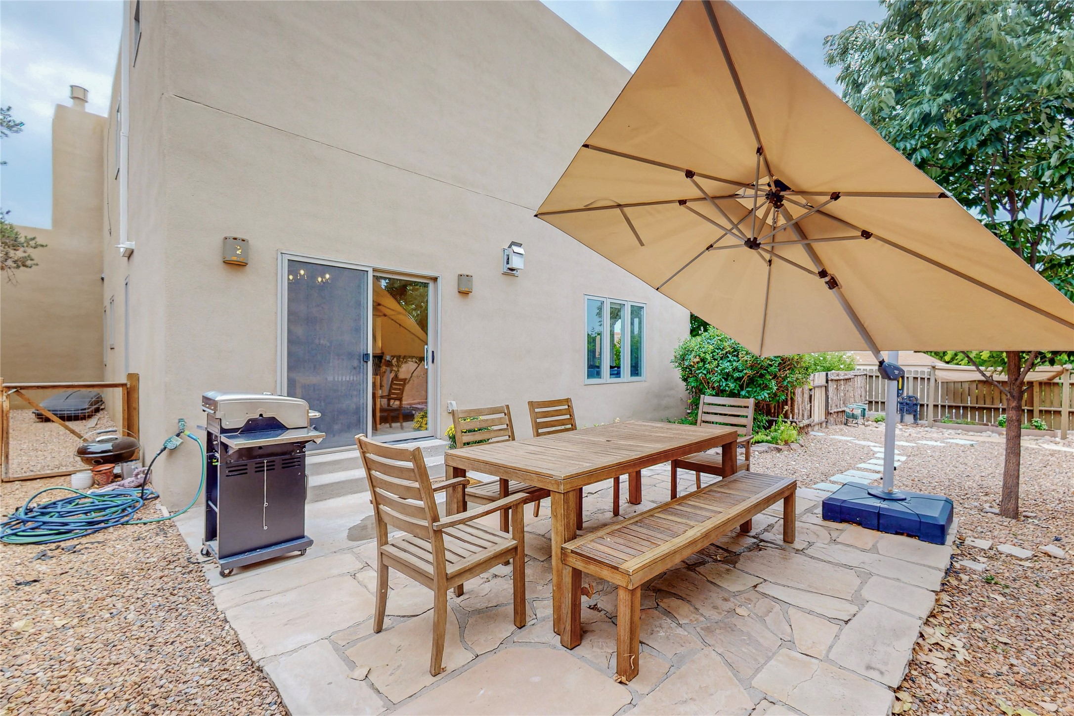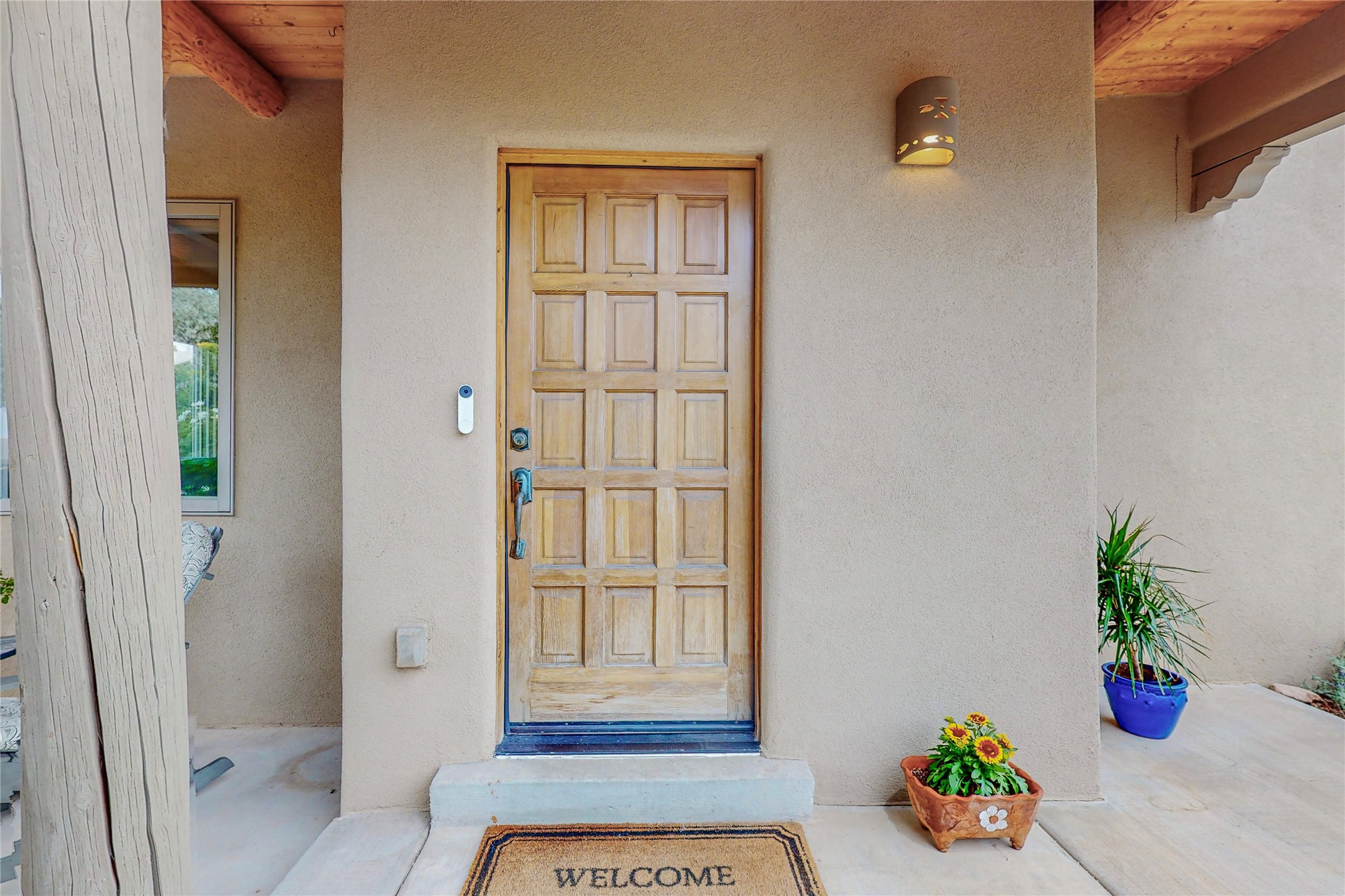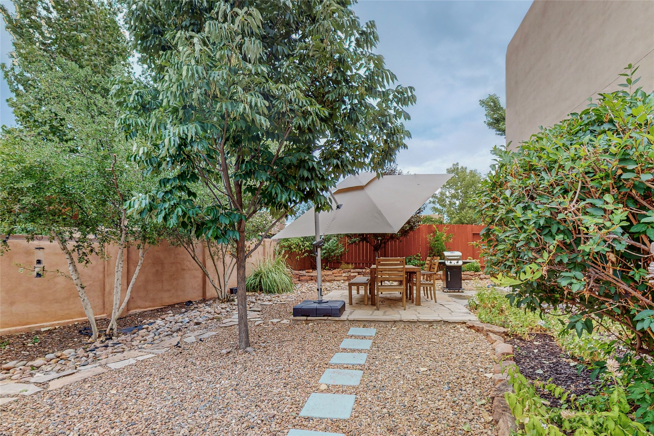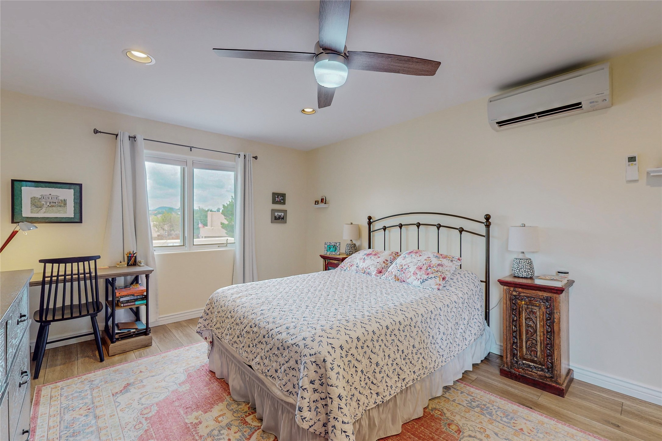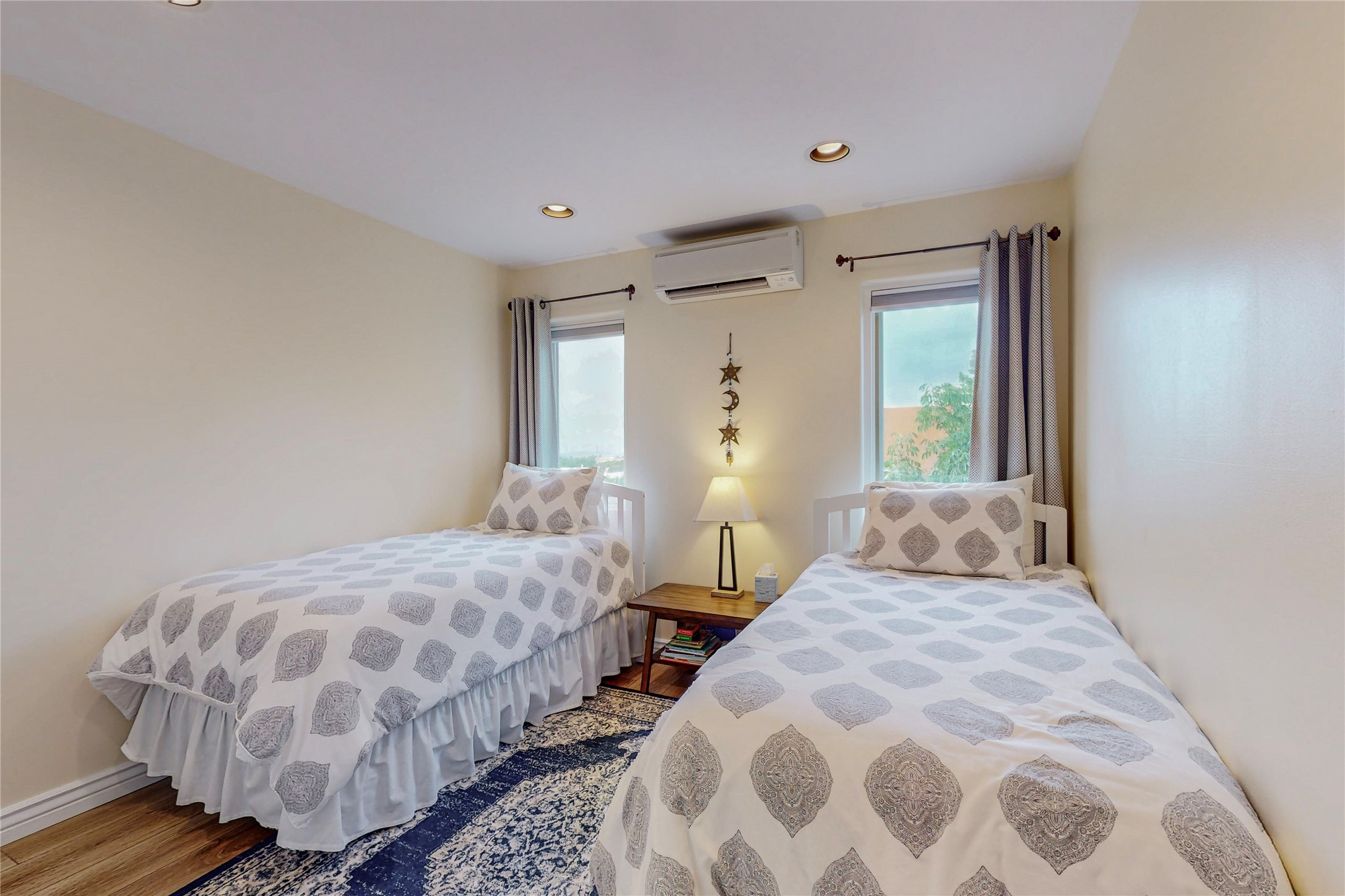 This 3 bed, 3 bath home is located on a quiet cul-de-sac in the desirable Pueblos Del Sol neighborhood. Recent updates include new flooring, new kitchen cabinets, new countertops and all new appliances. All the baths in the home have been updated. This owner has recently had new ductless (mini-split) HVAC units that both cool and heat added. Enjoy views of the Sangre de Cristo Mountains from the primary bedroom and western views from the upstairs guest bedroom. One fireplace that serves dining and living areas. Primary shower is a walk-in. There is one guest bedroom and full bath on the ground level.