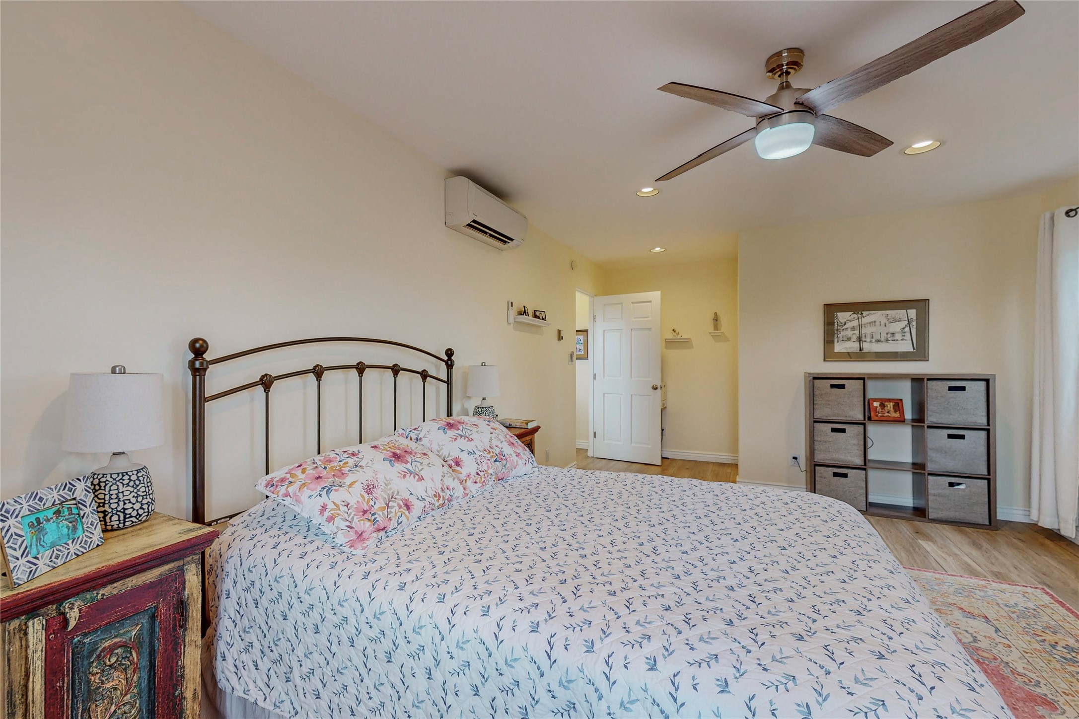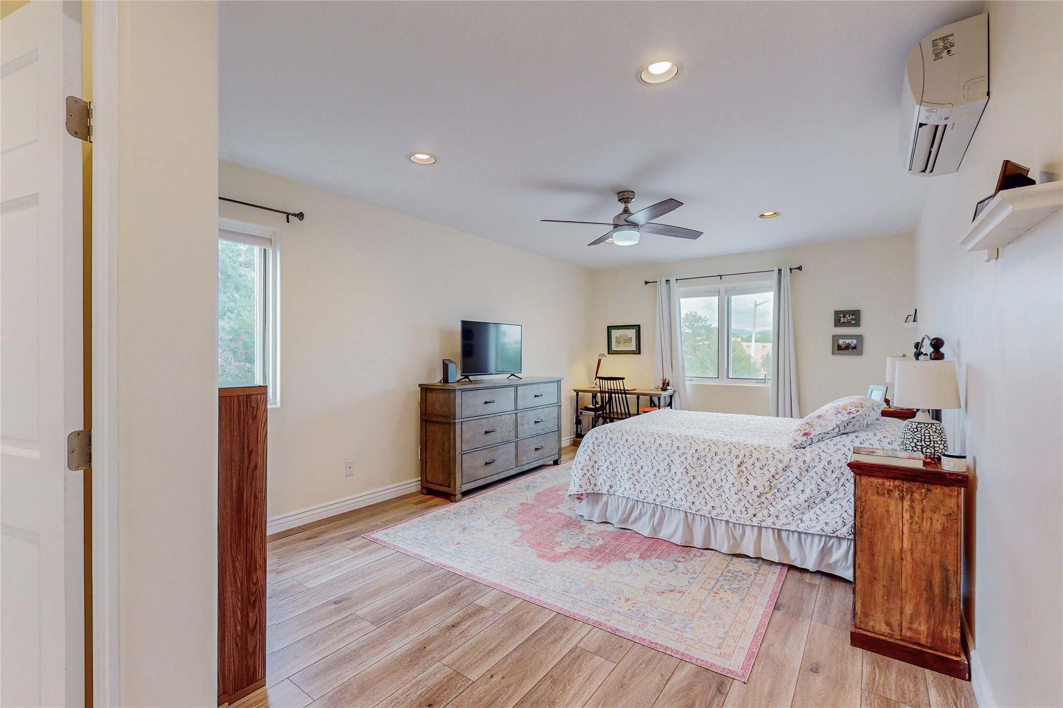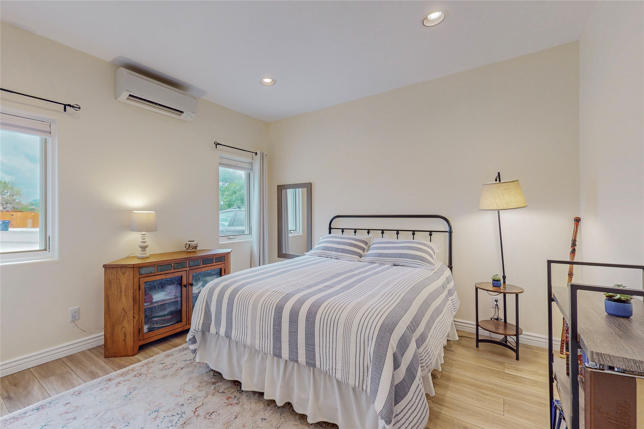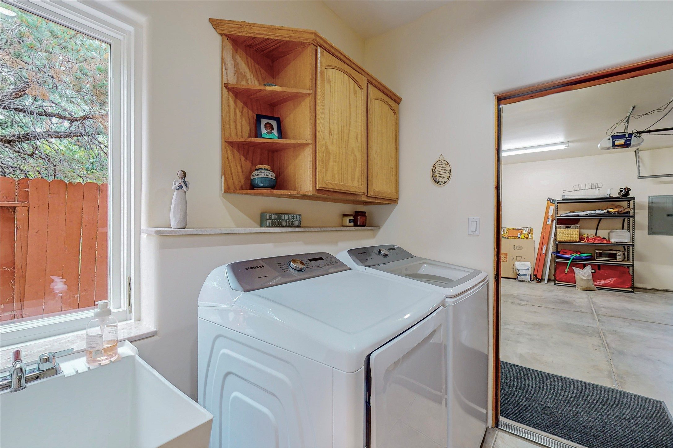 This 3 bed, 3 bath home is located on a quiet cul-de-sac in the desirable Pueblos Del Sol neighborhood. Recent updates include new flooring, new kitchen cabinets, new countertops and all new appliances. All the baths in the home have been updated. This owner has recently had new ductless (mini-split) HVAC units that both cool and heat added. Enjoy views of the Sangre de Cristo Mountains from the primary bedroom and western views from the upstairs guest bedroom. One fireplace that serves dining and living areas. Primary shower is a walk-in. There is one guest bedroom and full bath on the ground level.