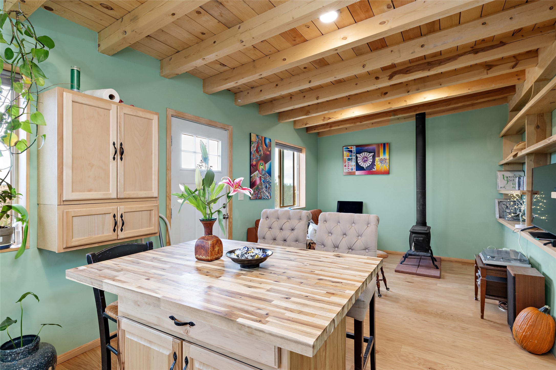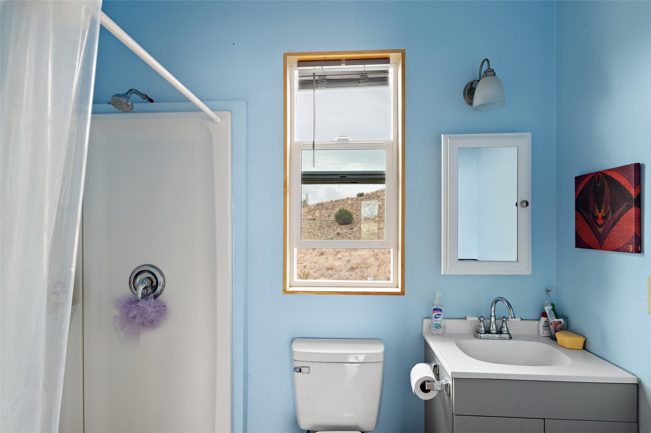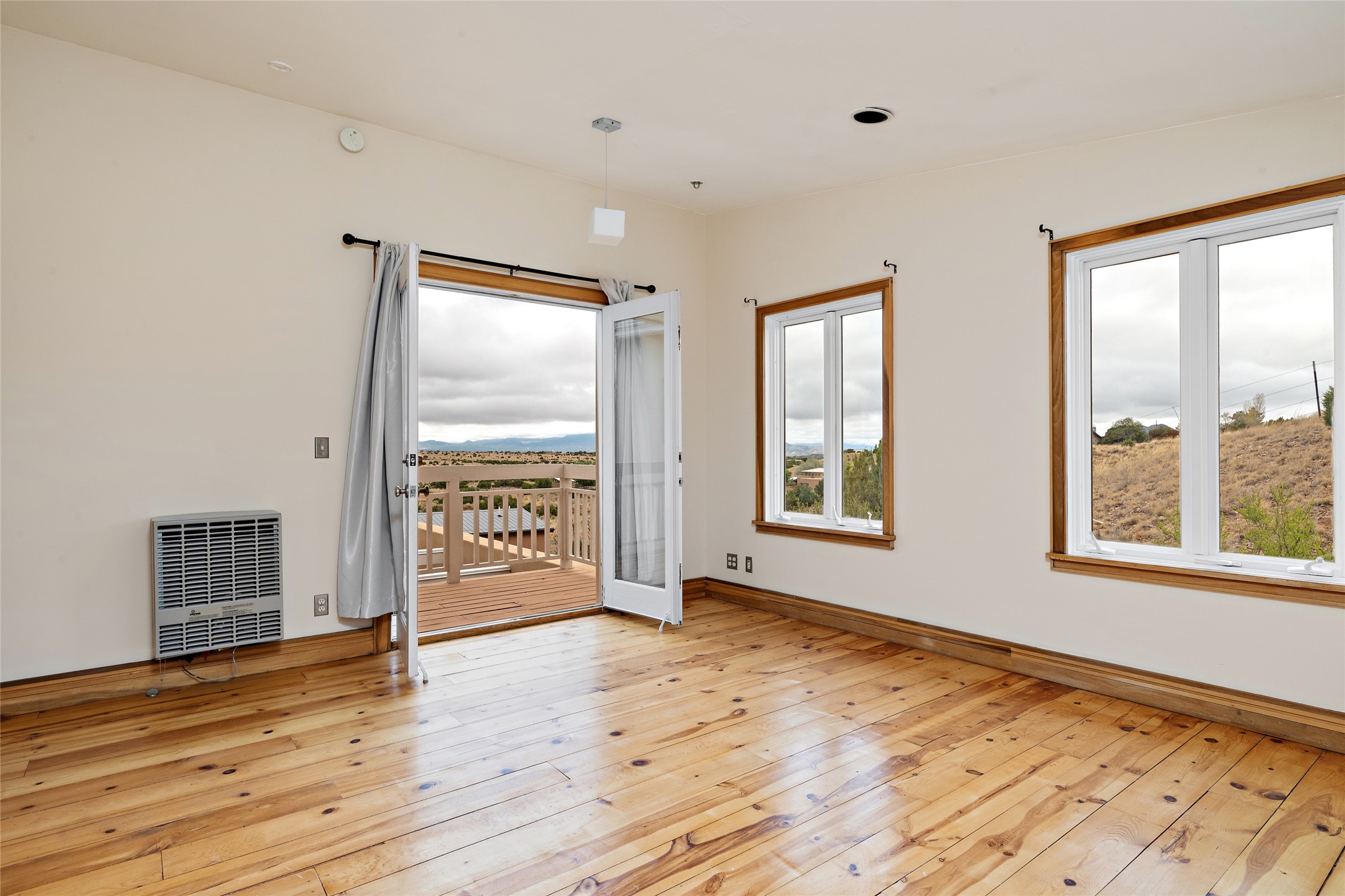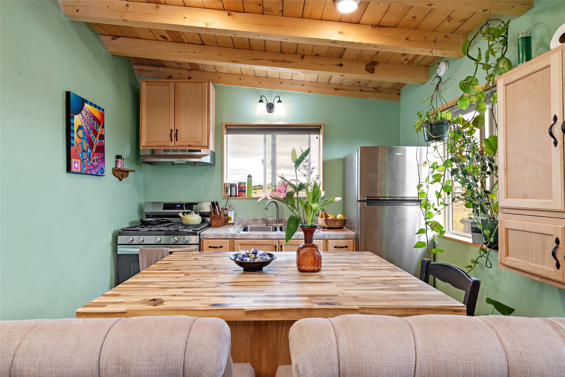 Live the Good Life with views of the Ortiz Mountains plus an instant revenue from the two sweet rentals, the present owners have been growing their own food and also installed a Universal Advanced Water System on the property, using the abundant well on site.The spacious 3 bedroom two bathroom house sits atop the hill, viewing the land around. It is 2,165 sq ft built in 2009. There are two additional guest houses, each with their own bathroom and bedroom. We think the first dwelling was built in 1979, that is 580sq ft. The other guest house/casita is 675sq ft, it is ADA compliant with a ramp, which can easily be removed if desired. The sellers have been using this as a family compound but any of the units could be a wonderful source of revenue for the buyer. This is just a 20 minute drive from town, 25 minutes to downtown.
