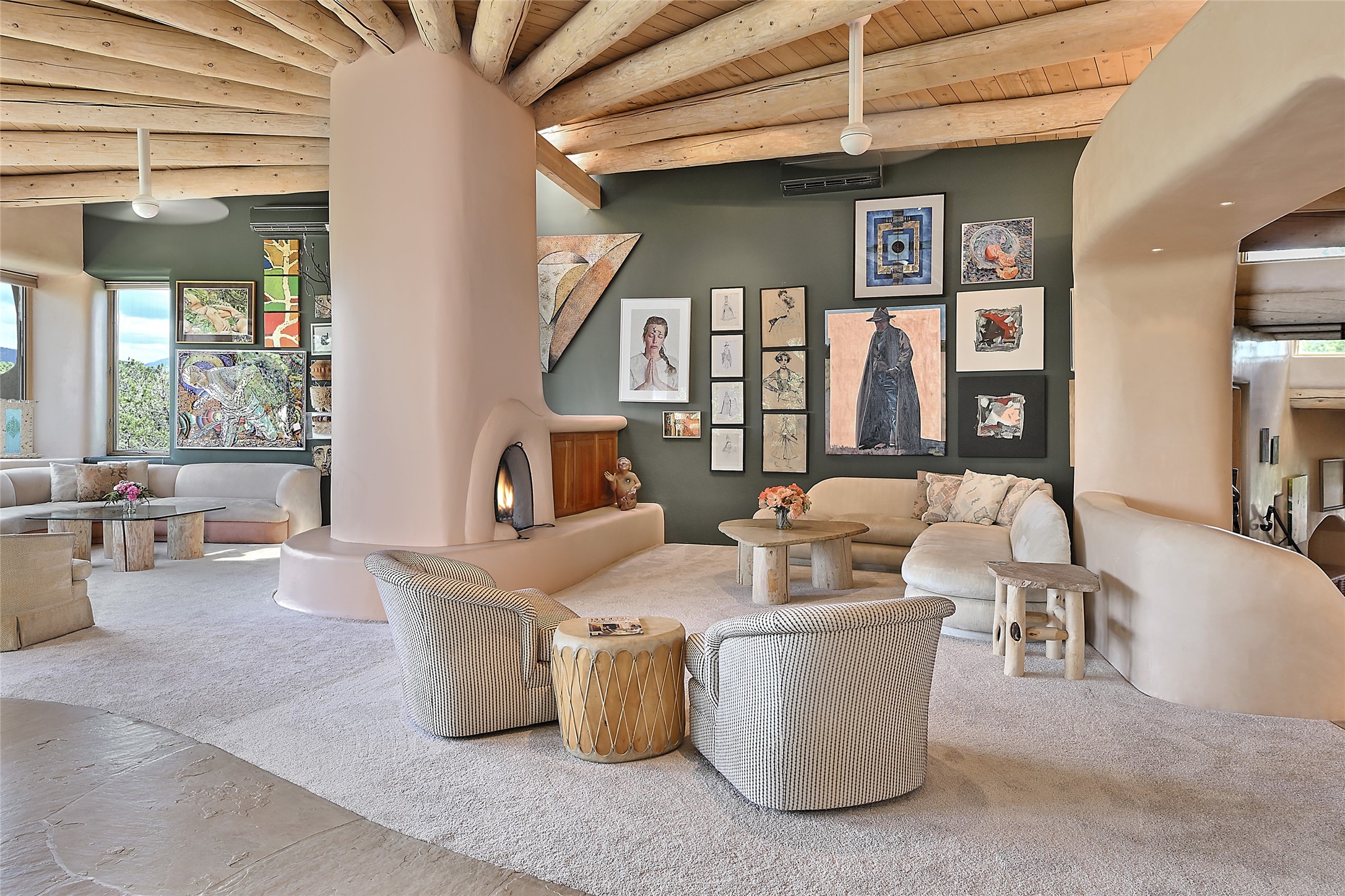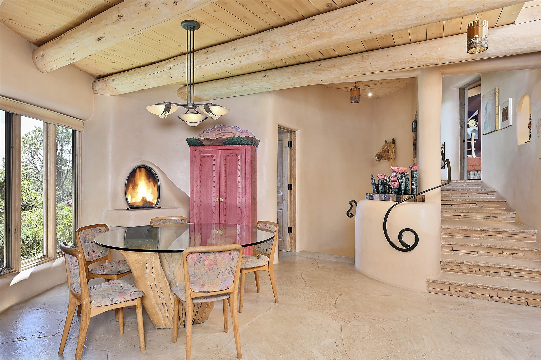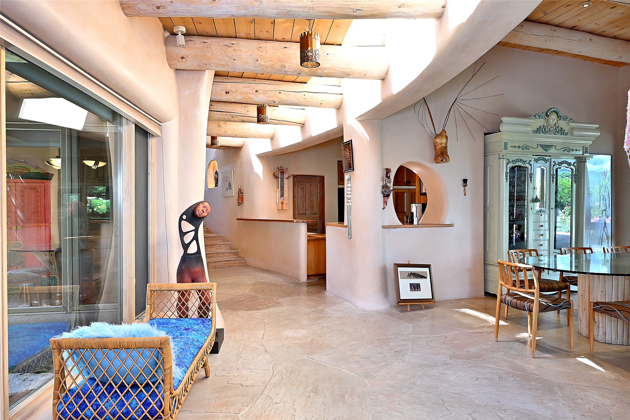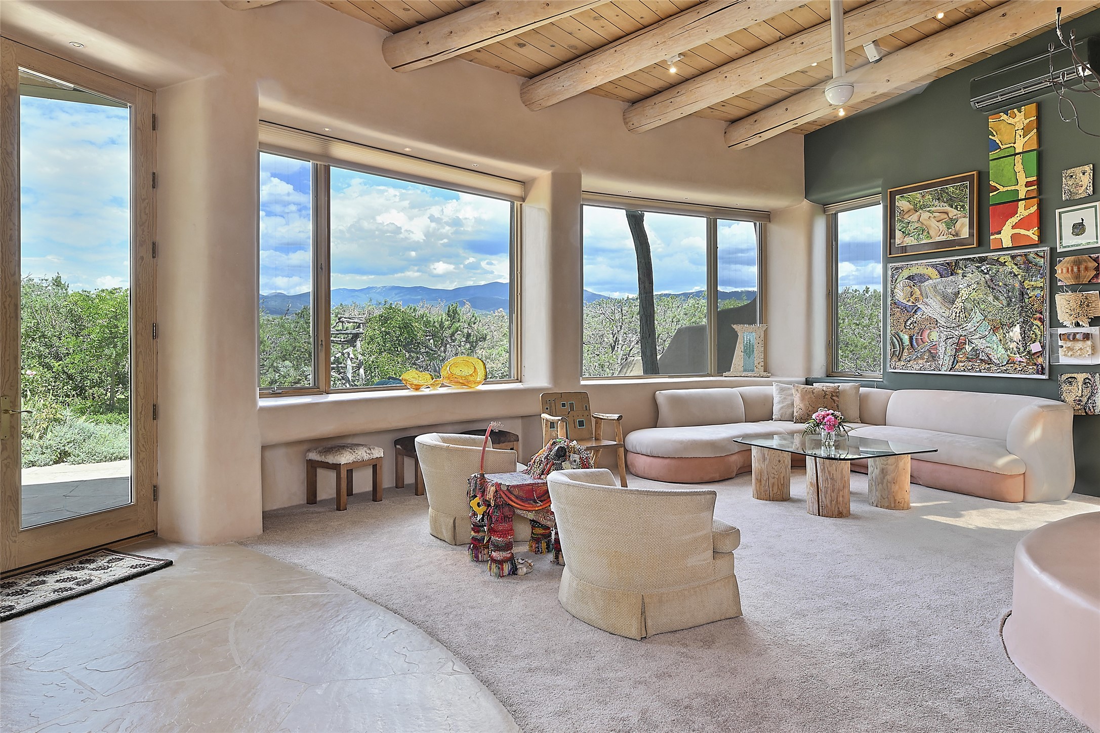 Views views views from this incredible home less than 2 miles from the plaza! The former home of a renown artist, this 3 bedroom plus attached studio exudes Santa Fe. Tons of wow factor including a gorgeous open living area perfect for entertaining, architectural ceilings and picture windows that allow you to see straight through to the Sangre de Cristos.....flagstone floors, plaster walls, vigas and multiple fireplaces. This home has been featured in many magazines over the years. Stunning gardens and a deep portal allow for gracious outdoor living. Enjoy the best of Santa Fe from this enchanting property. A must see!!