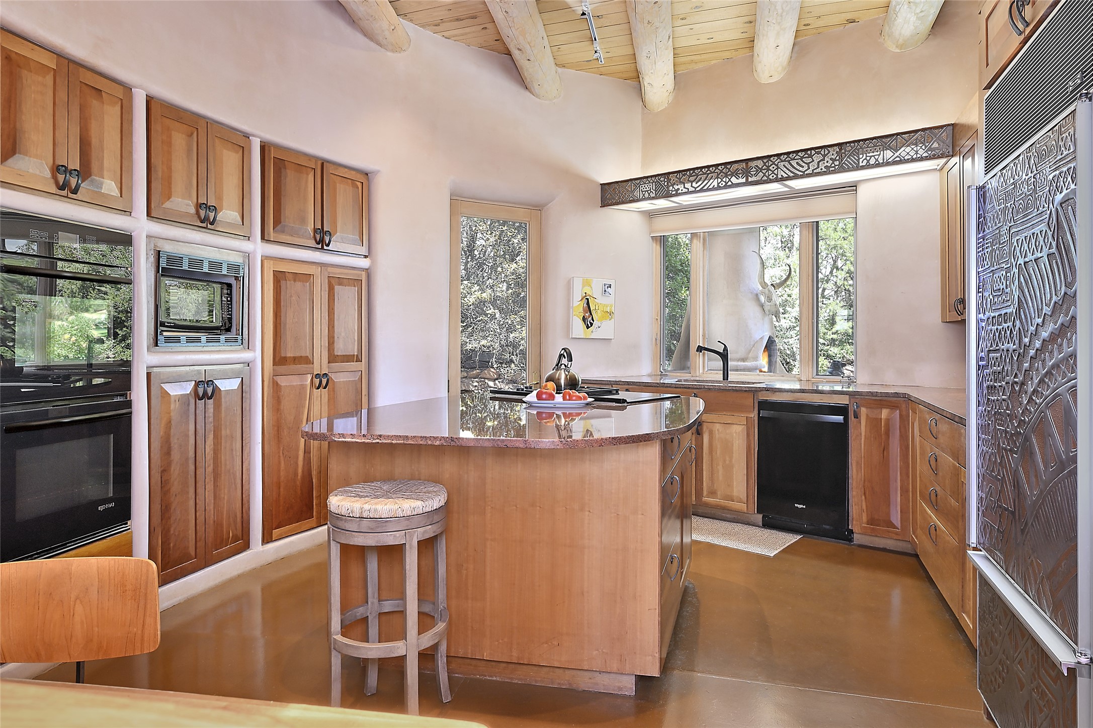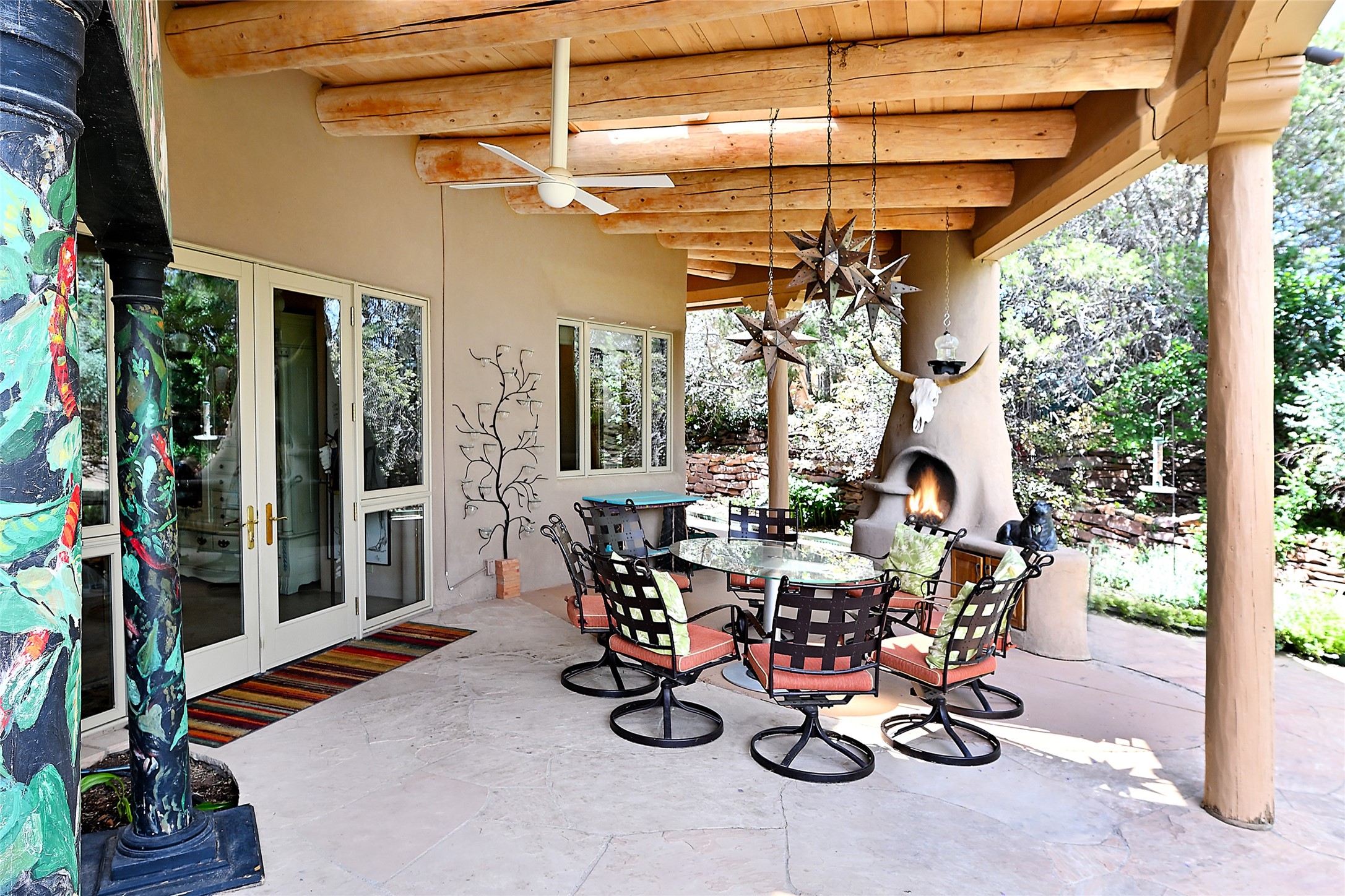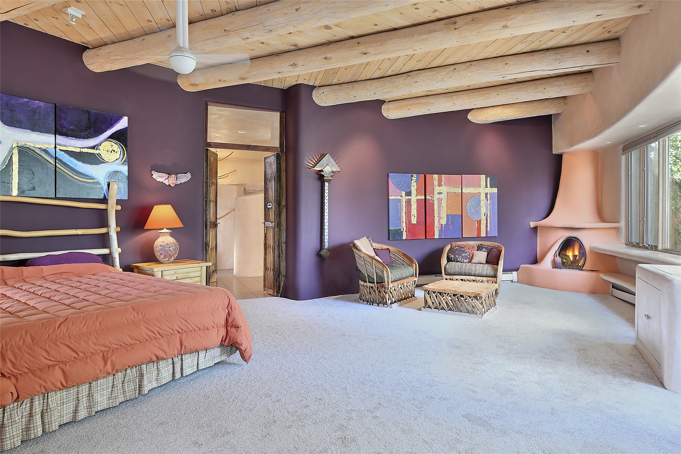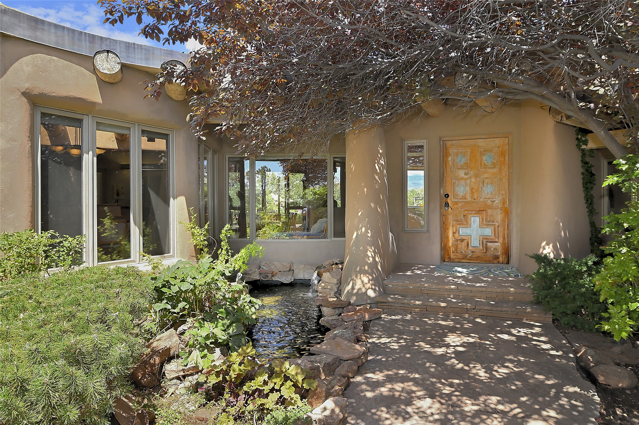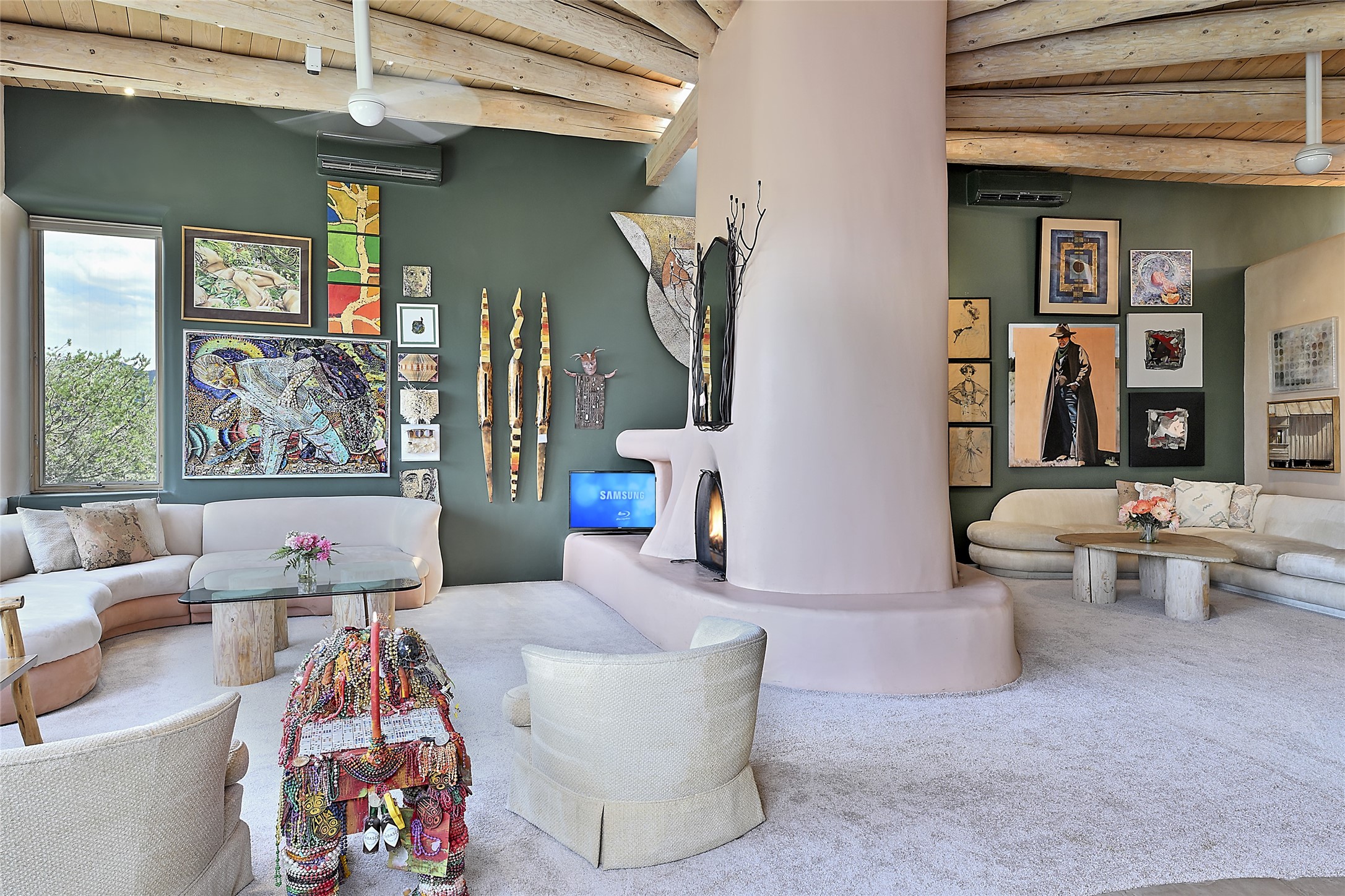 Views views views from this incredible home less than 2 miles from the plaza! The former home of a renown artist, this 3 bedroom plus attached studio exudes Santa Fe. Tons of wow factor including a gorgeous open living area perfect for entertaining, architectural ceilings and picture windows that allow you to see straight through to the Sangre de Cristos.....flagstone floors, plaster walls, vigas and multiple fireplaces. This home has been featured in many magazines over the years. Stunning gardens and a deep portal allow for gracious outdoor living. Enjoy the best of Santa Fe from this enchanting property. A must see!!