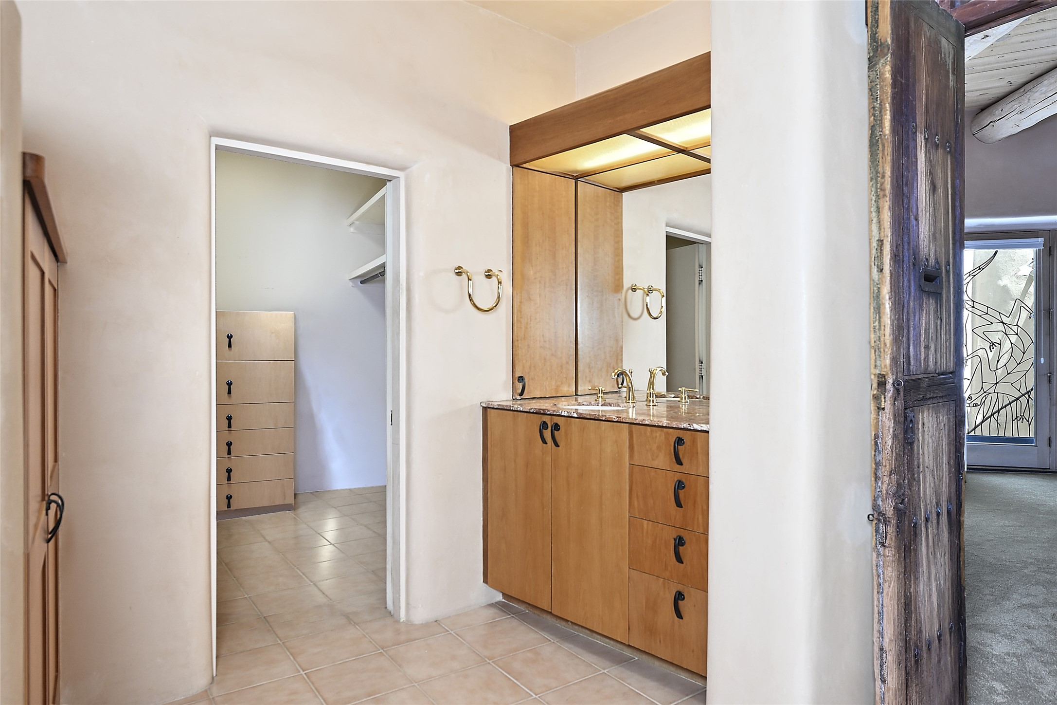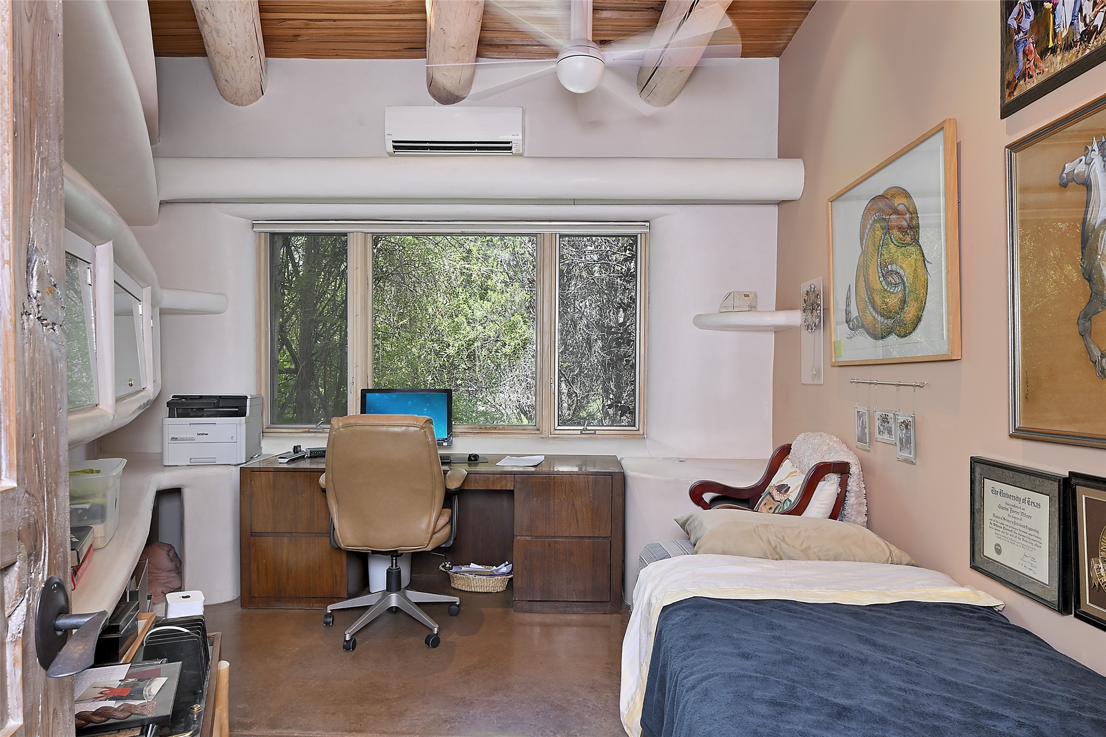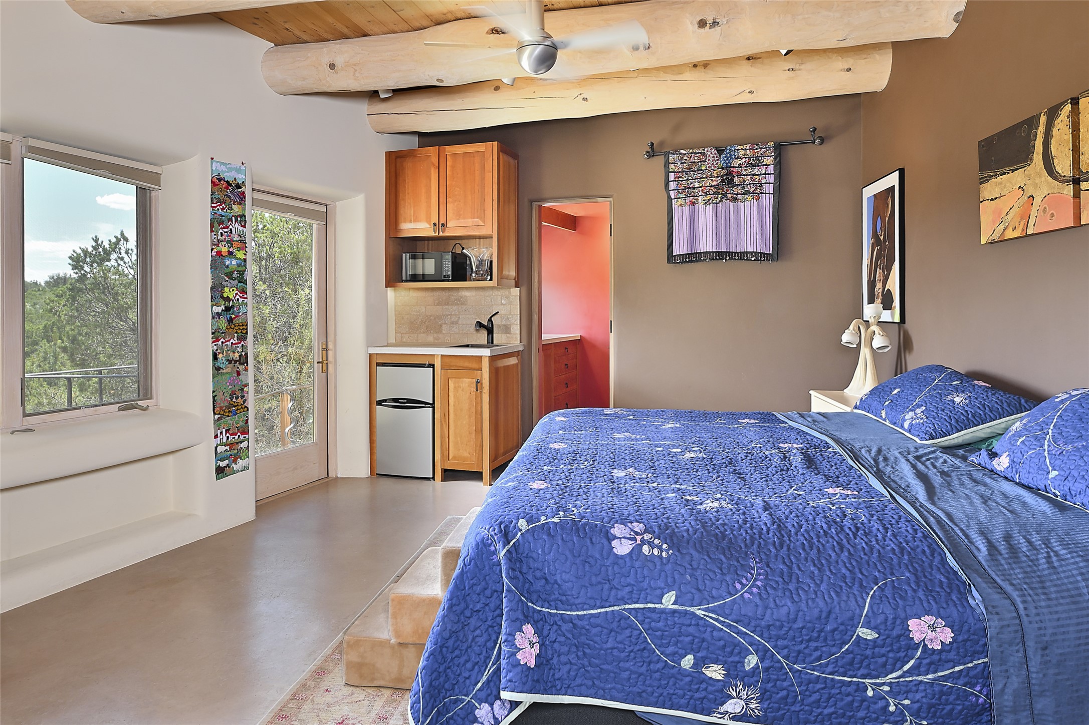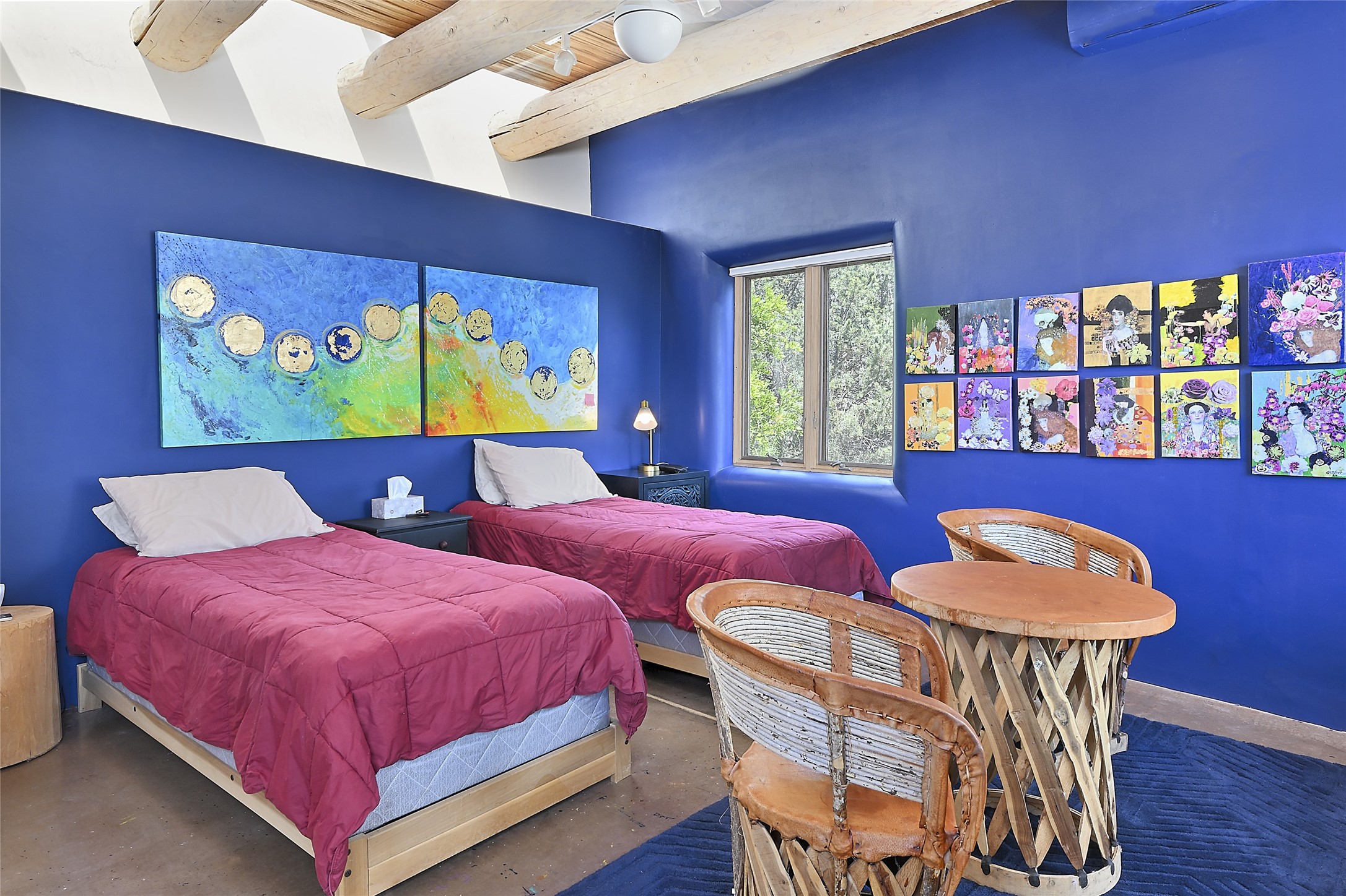 Views views views from this incredible home less than 2 miles from the plaza! The former home of a renown artist, this 3 bedroom plus attached studio exudes Santa Fe. Tons of wow factor including a gorgeous open living area perfect for entertaining, architectural ceilings and picture windows that allow you to see straight through to the Sangre de Cristos.....flagstone floors, plaster walls, vigas and multiple fireplaces. This home has been featured in many magazines over the years. Stunning gardens and a deep portal allow for gracious outdoor living. Enjoy the best of Santa Fe from this enchanting property. A must see!!