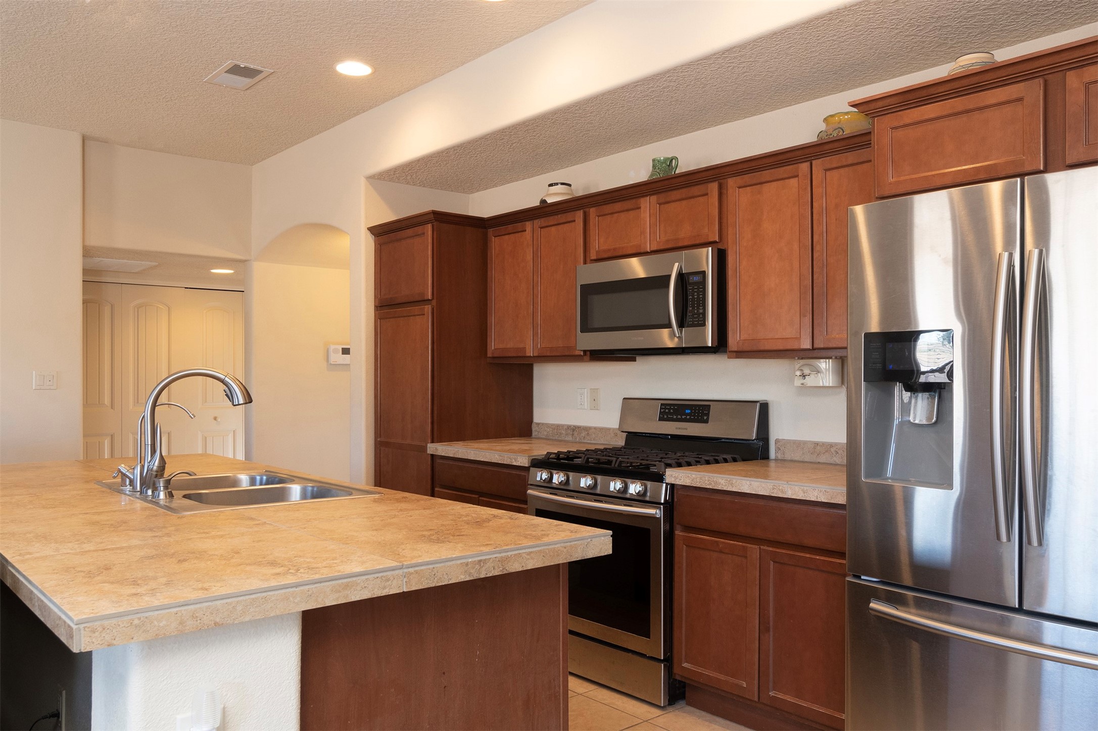 INCREDIBLE PRICE REDUCTION!!! The Sellers want to sell thier home in the highly desirable neighborhood of La Pradera.. The Kitchen, Living room and dining room have a great central flow. Stainless steal appliances with a gas stove and custom cabinetry accent this central kitchen.The primary ensuite offers two separate, spacious closets. The other side of the house offers 3 additional bedrooms and a shared main bathroom. Looking out the living room window you can see the Sangre de Cristo's off in the distance, and to the southwest you have great visibility for the Sandia Mountains. New Stucco, The backyard boasts a spacious backyard, the sellers kept the fence lower to be able to have more visibility of the open space to the side and back of the house. However the Fence has been prepped for additional fencing if the new owners prefer more privacy. A two car garage rounds out the features in this lovely home. La Pradera offers 50% of the grounds for open space, 2 parks, easy acces to the Community College, schools, 599 for Albuquerque or Los Alamos Commuters. 5 minutes to Presbyterian Hospital, shopping or dining. Come by and enjoy this great neighborhood and lovely home.