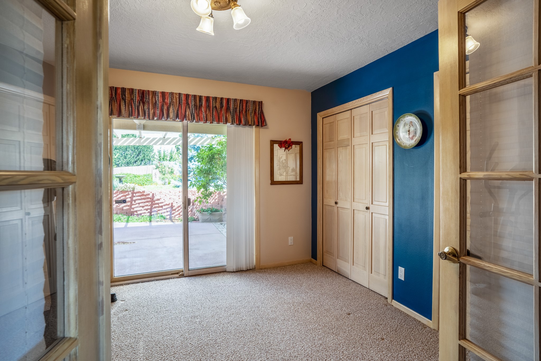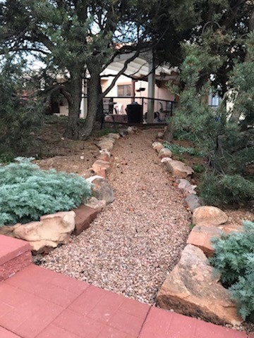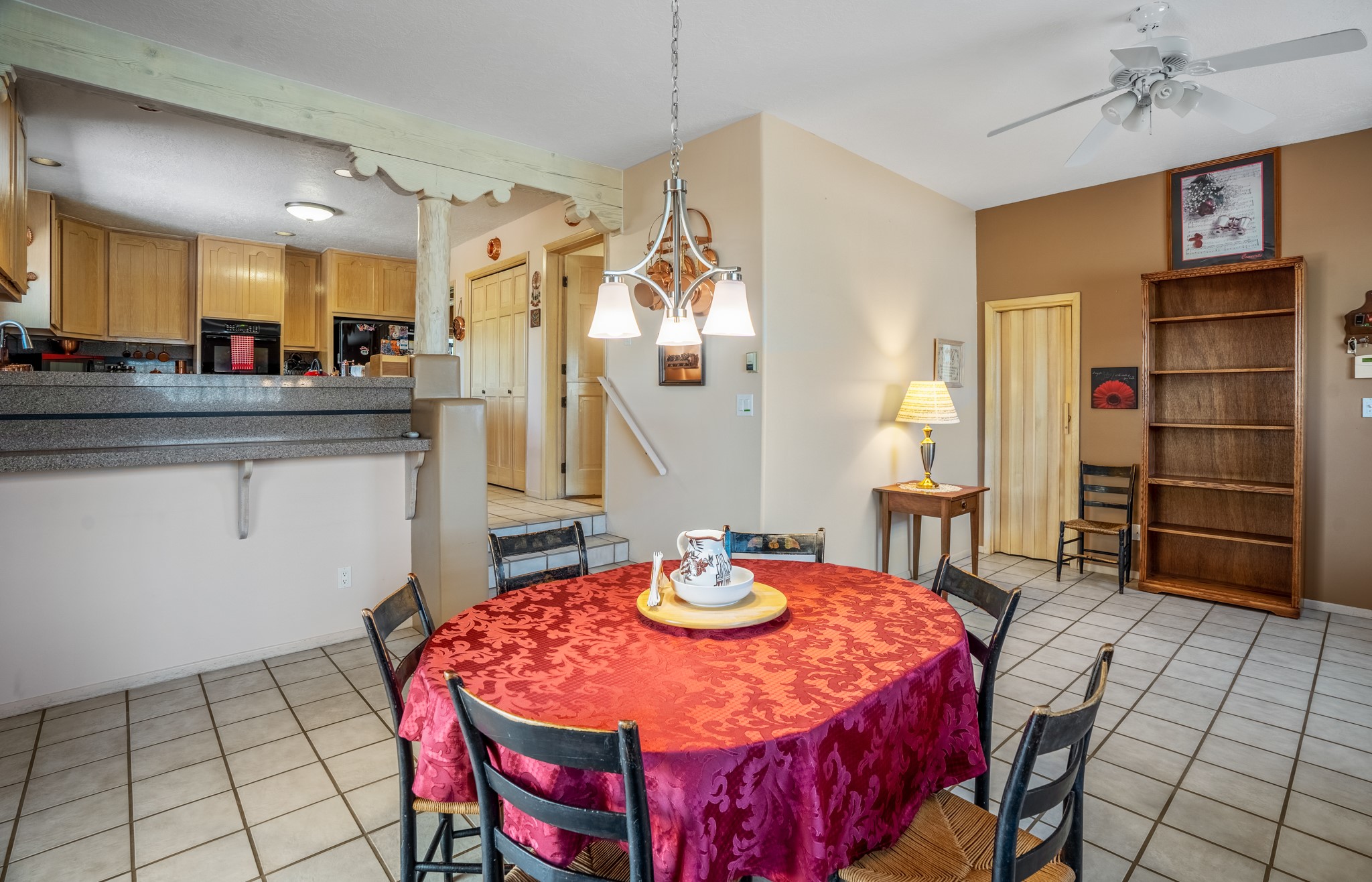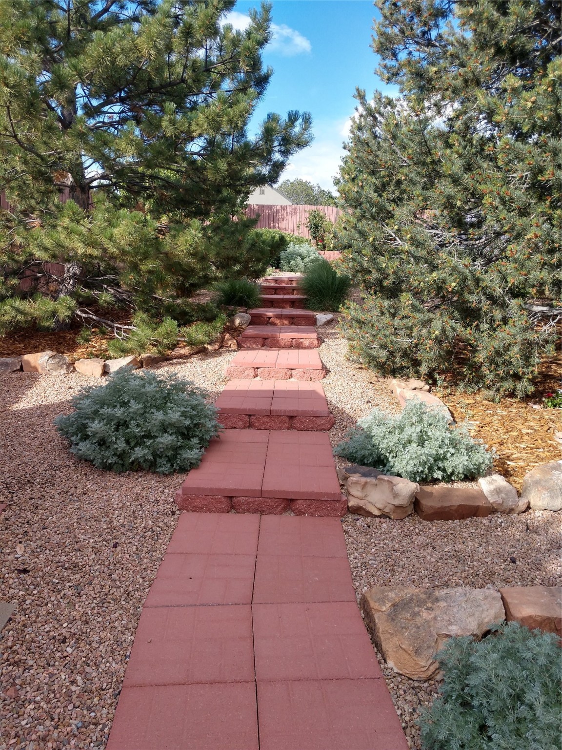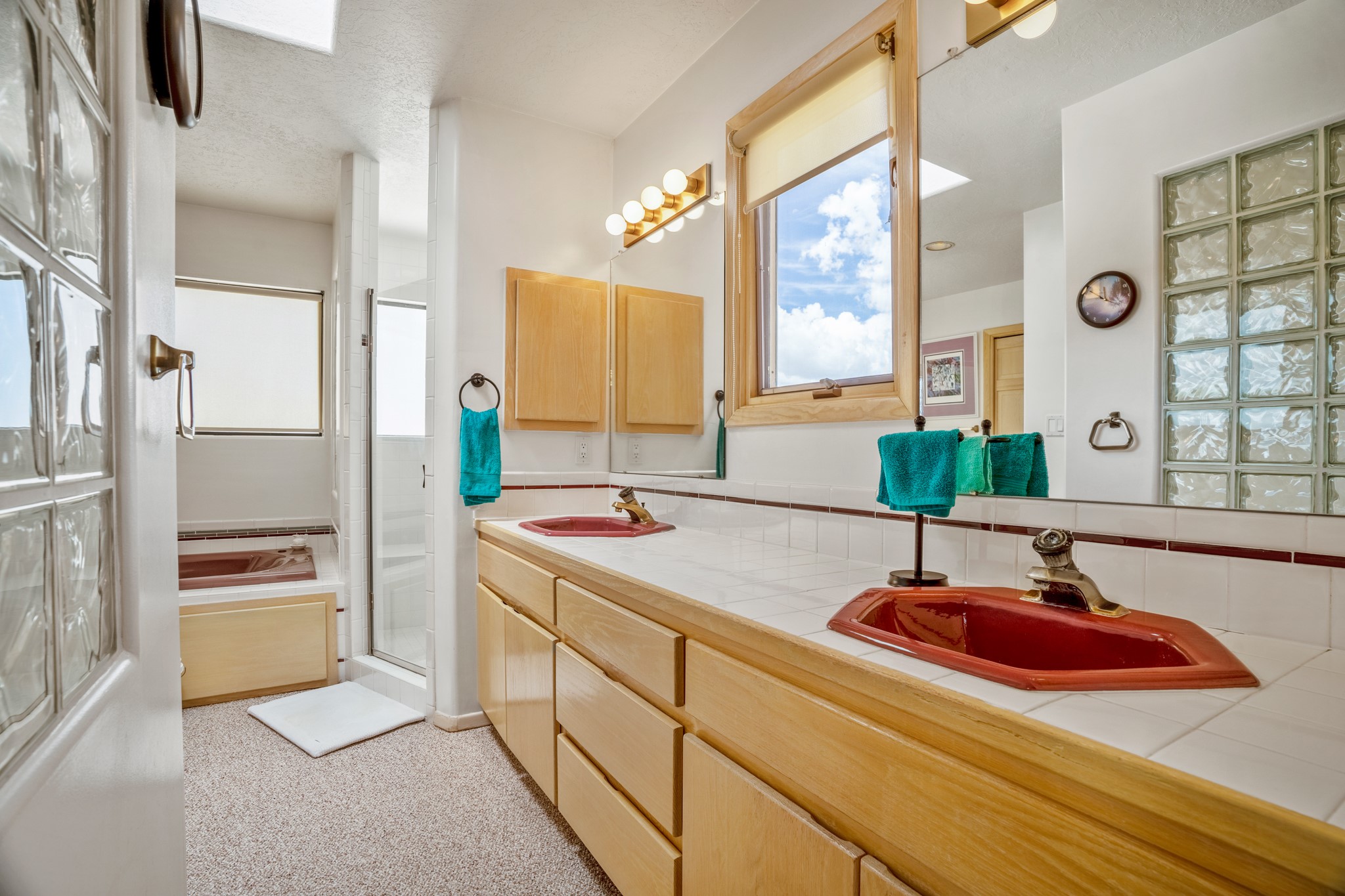 Experience Villa Caballero, a highly sought-after neighborhood known for quiet living, great location, and oversize lots. The area is particularly admired for its marvelous blend of natural beauty and charming residential spaces. One sweet gem is this multi-level home with a flexible floor plan featuring three bedrooms upstairs plus an office/den off the Primary Suite. An optional fourth bedroom is on the main level with access to the backyard pergola offering flexibility in living spaces. All bedrooms are spacious and feature stunning views. This Santa Fe style home is complete with beautiful vigas, nichos, and kiva fireplace on the main floor with plenty of space to entertain. The spacious primary bedroom suite offers a comfortable retreat, including a large bath with jetted tub and a separate office/sitting space and a view deck to enjoy sunsets and mountain views. The separated bedroom plan ensures privacy for everyone in the household and includes an additional view deck. The kitchen is spacious including an island and access to a huge utility/laundry room. A flexible family/dining/tv room with access to the back pergola is just off the kitchen in one direction and the formal dining and living room are off the other direction. This is truly a fabulous home for ease of entertaining. In addition, the views out virtually every window allow enjoyment of the breathtaking scenery and views, and invite you to soak in the surrounding beauty.Speaking of beauty, the lush and mature landscaping of this home boasts wonderful pathways meandering through multiple fruit trees, flowering beds, and shrubs. The thoughtful design creates a serene and inviting atmosphere. To add to the tranquility, there's even a large backyard pergola, perfect for peaceful entertaining and relaxation with wonderful architectural plays of shadow and light.Not only will you feel at peace in this home, but the lush landscaping will also attract birds and bees, creating a haven for wildlife enthusiasts and nature lovers alike. It truly is a wonderful environment to appreciate the harmony of nature and a great place to call home.