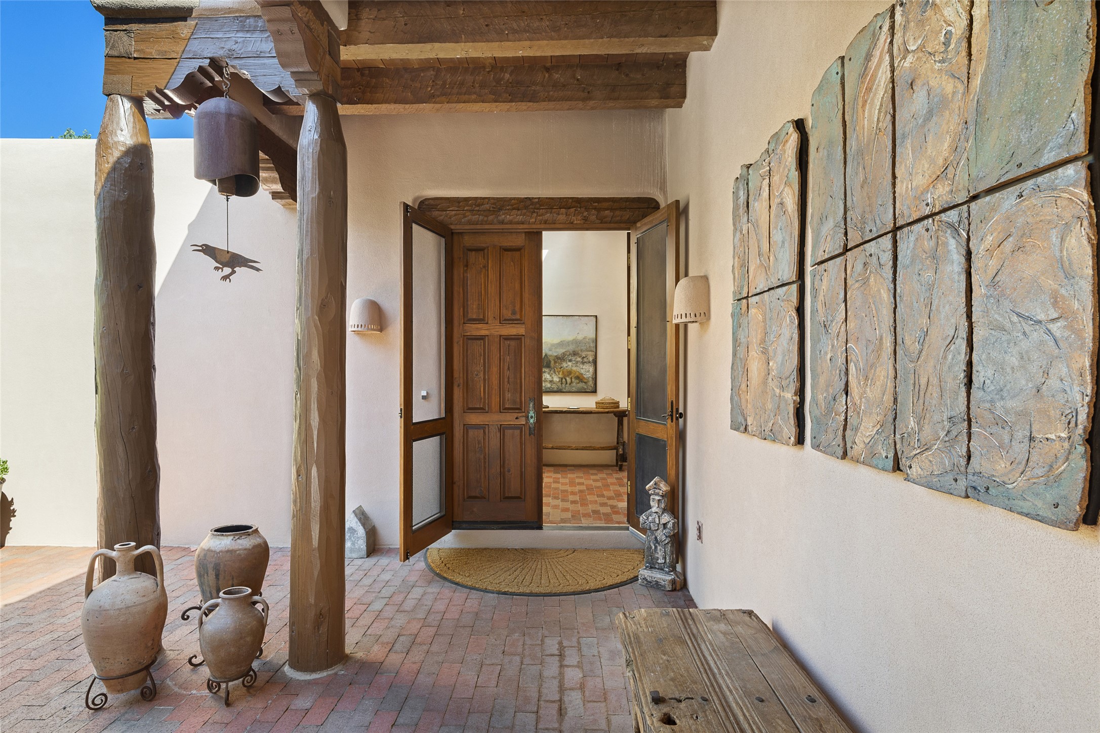 This beautiful 3 acre compound, set back off Bishops Lodge Rd, with views of the Sangre de Cristos features a 3 bedroom, 2.5 bathroom main house, a detached casita and a studio. Gorgeous gardens and gracious portals allow for multiple outdoor living areas. Privacy and serenity, just 3 miles from the plaza, this home is an entertainers dream.