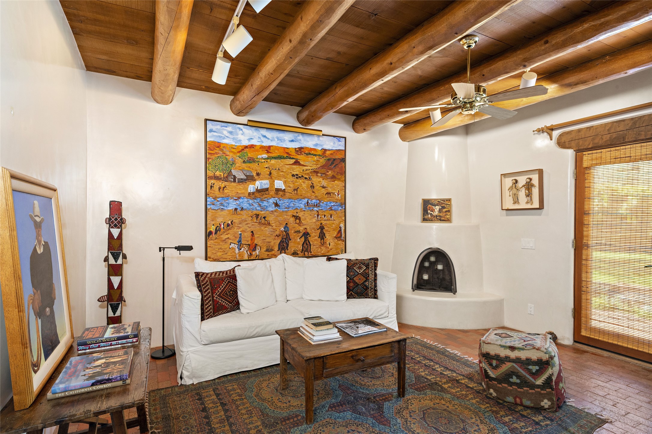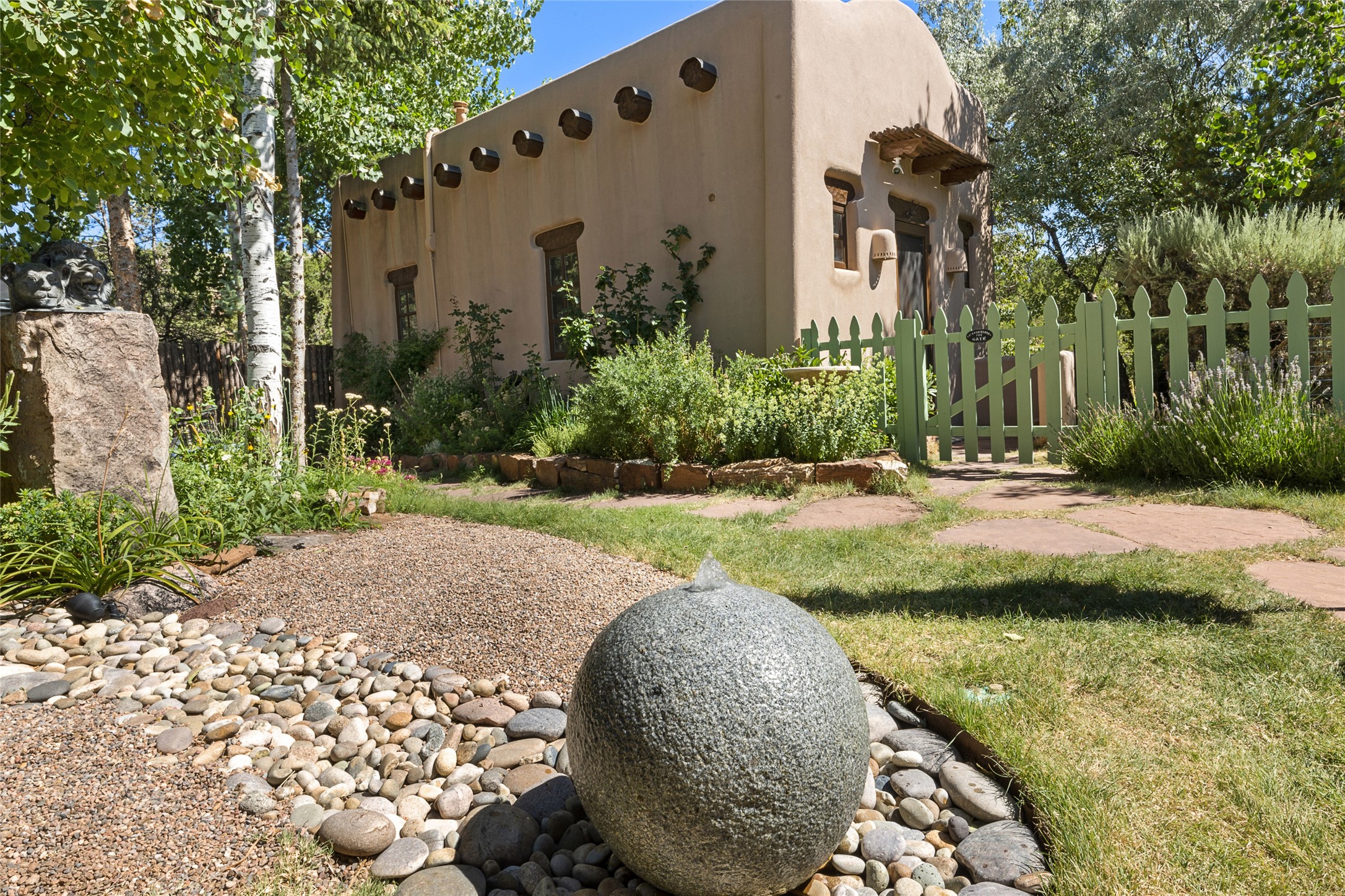 This beautiful 3 acre compound, set back off Bishops Lodge Rd, with views of the Sangre de Cristos features a 3 bedroom, 2.5 bathroom main house, a detached casita and a studio. Gorgeous gardens and gracious portals allow for multiple outdoor living areas. Privacy and serenity, just 3 miles from the plaza, this home is an entertainers dream.