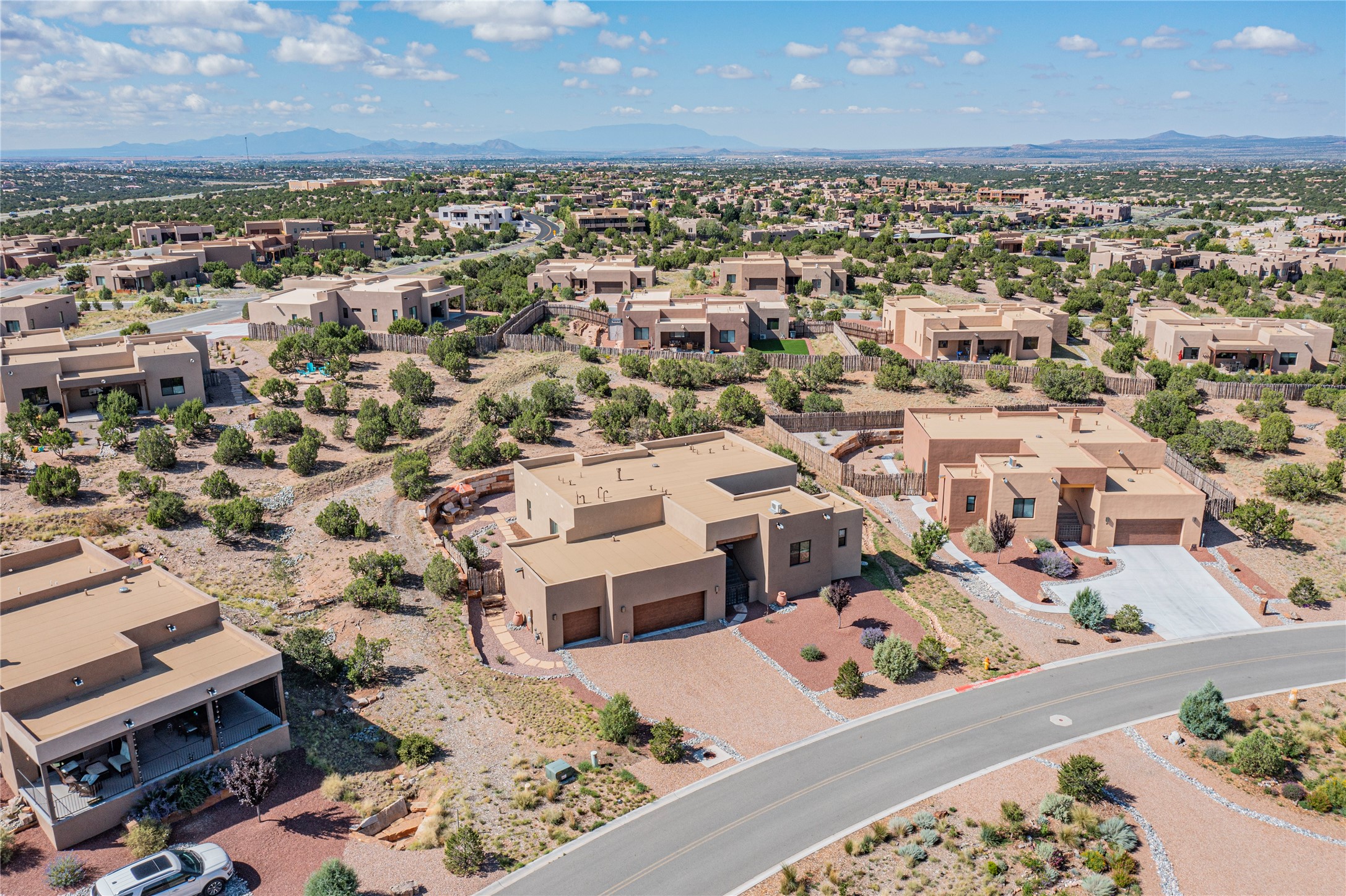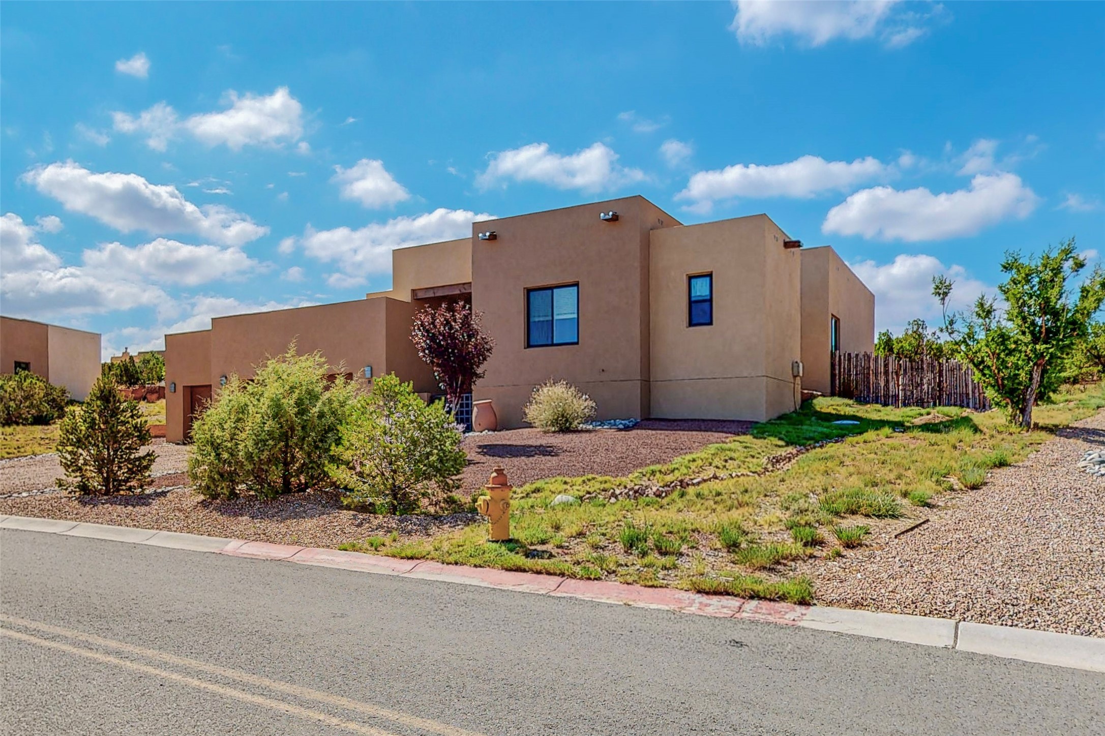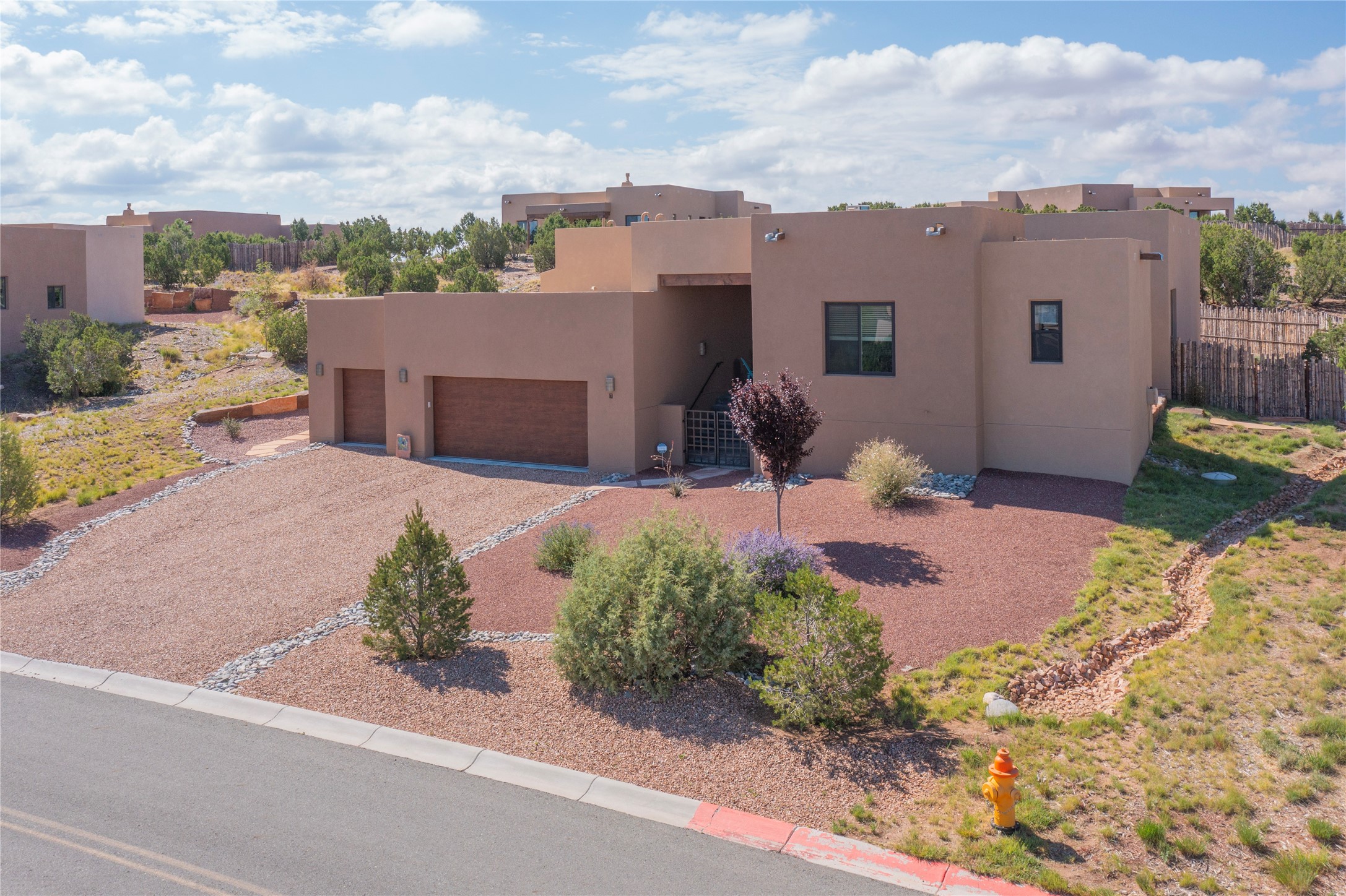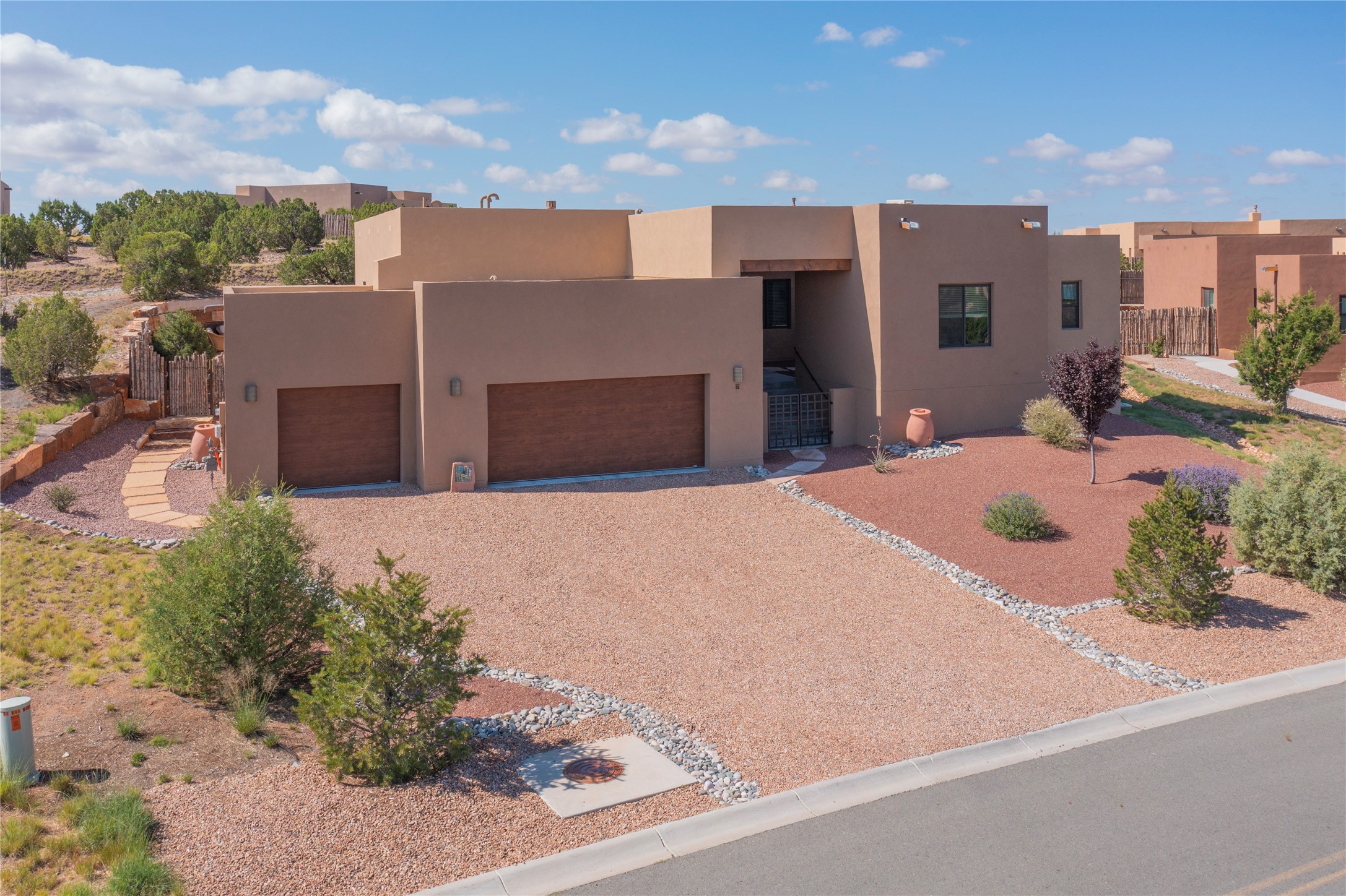 Looking for a newer single level home with a guest house and views? Welcome home to this meticulously maintained, immaculate, and warmly inviting home that was built in 2021 within the Tessera community. 7 Via Harena tastefully blends modern architecture with Santa Fe ambiance in a beautifully balanced way. The open concept floor plan permeates the Living Room, dining area and kitchen with light enhanced by high ceilings, showcasing comfortable seating areas, upgraded appliances and plenty of counter space. The two guest rooms and full bath are welcoming and nicely separated from the luxurious primary suite. Meticulousness doesn't end there as you transition to outside spaces which are aesthetically pleasing with precise landscaping, mountain views in the front and peaceful privacy in the back. Private yet easily accessible, the one-bedroom guest house with three-quarter bath is perfect for guests, a private office space or yoga studio. Added bonus features include a three-car garage, tankless hot water and a level two electric vehicle charger. Welcome home.