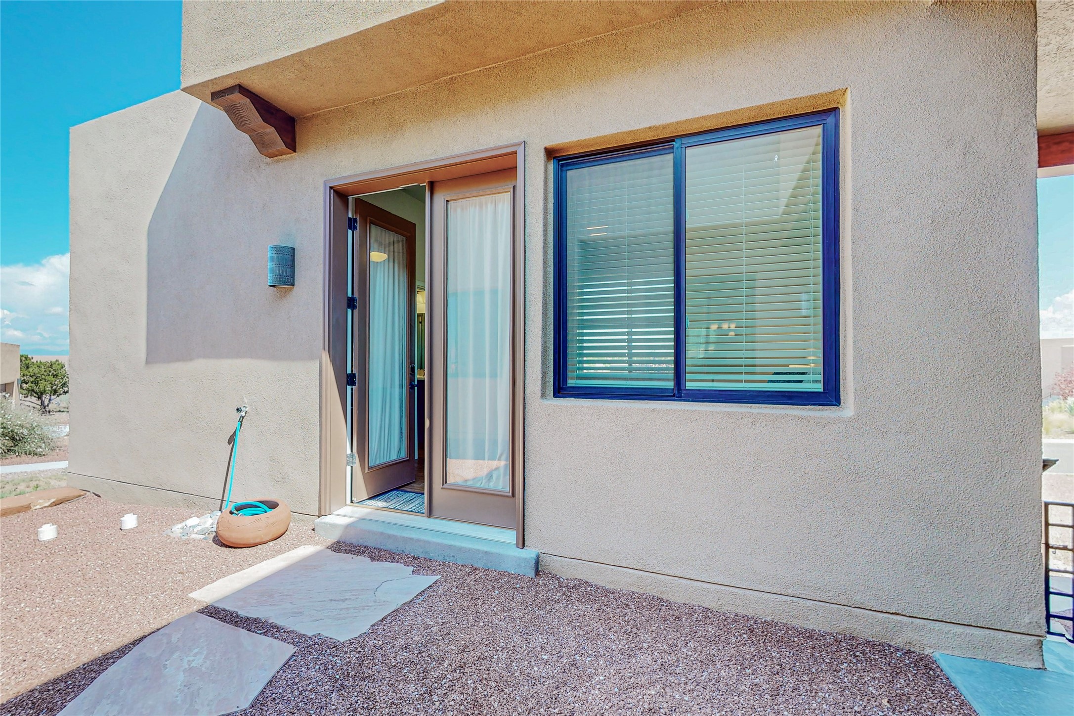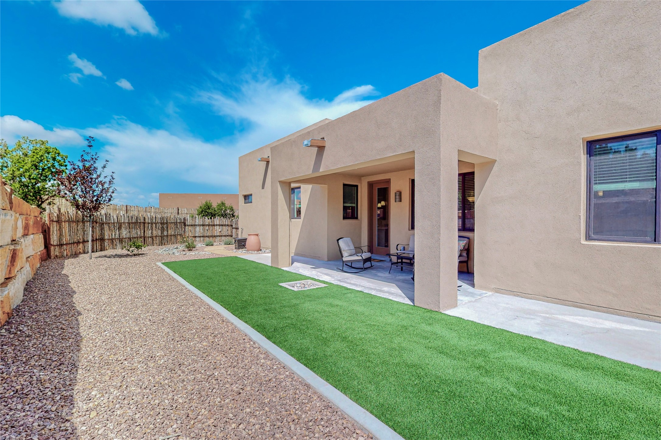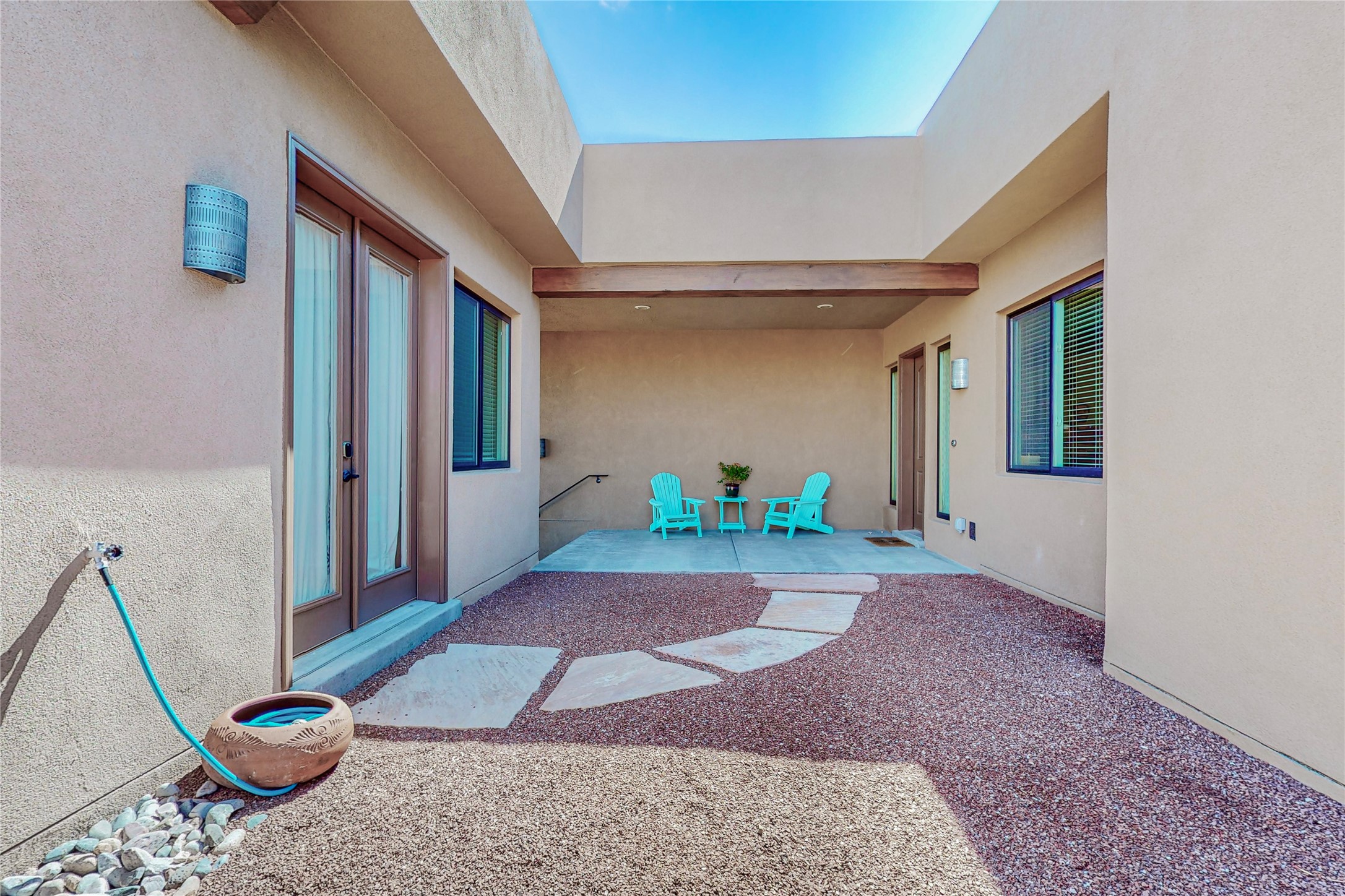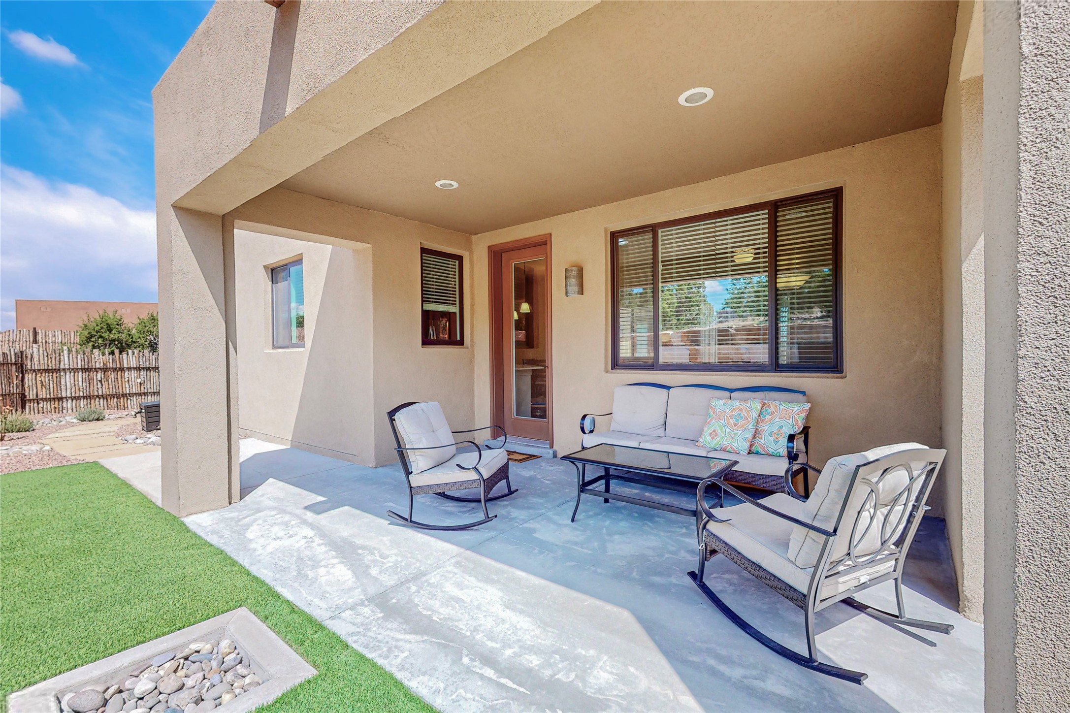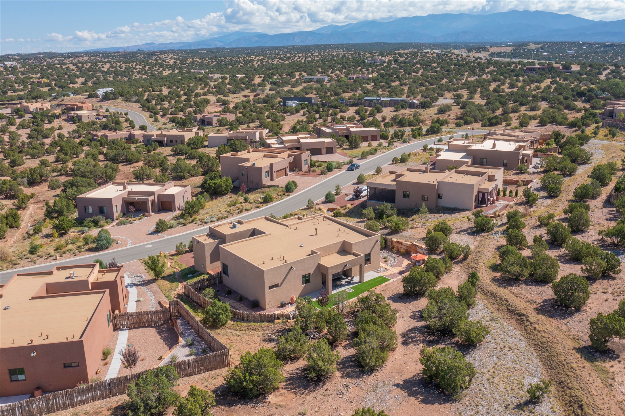 Looking for a newer single level home with a guest house and views? Welcome home to this meticulously maintained, immaculate, and warmly inviting home that was built in 2021 within the Tessera community. 7 Via Harena tastefully blends modern architecture with Santa Fe ambiance in a beautifully balanced way. The open concept floor plan permeates the Living Room, dining area and kitchen with light enhanced by high ceilings, showcasing comfortable seating areas, upgraded appliances and plenty of counter space. The two guest rooms and full bath are welcoming and nicely separated from the luxurious primary suite. Meticulousness doesn't end there as you transition to outside spaces which are aesthetically pleasing with precise landscaping, mountain views in the front and peaceful privacy in the back. Private yet easily accessible, the one-bedroom guest house with three-quarter bath is perfect for guests, a private office space or yoga studio. Added bonus features include a three-car garage, tankless hot water and a level two electric vehicle charger. Welcome home.