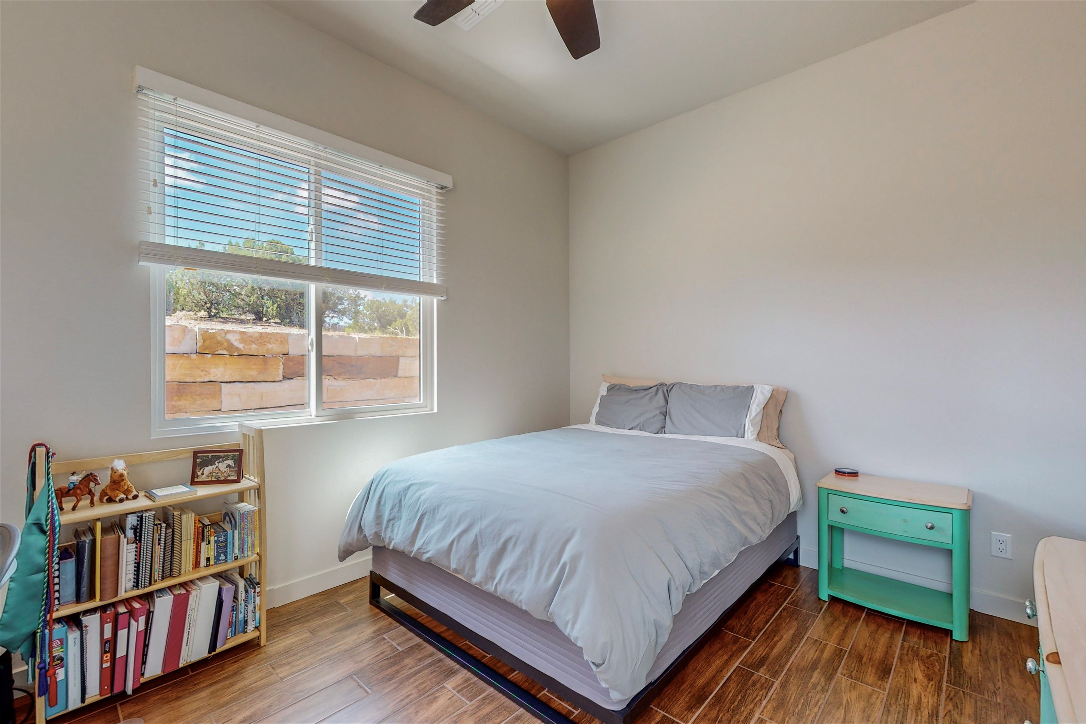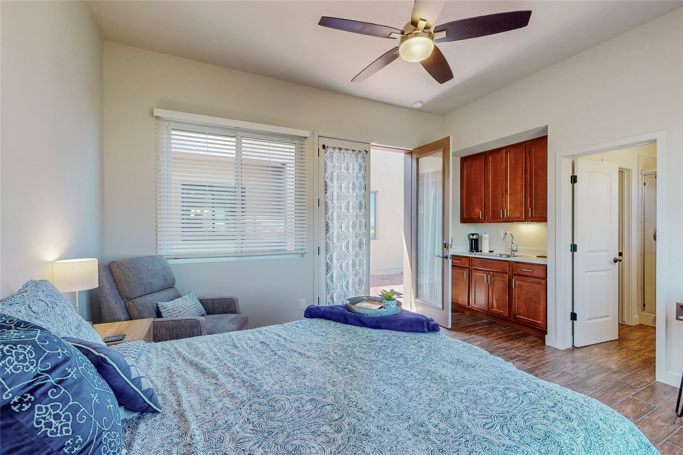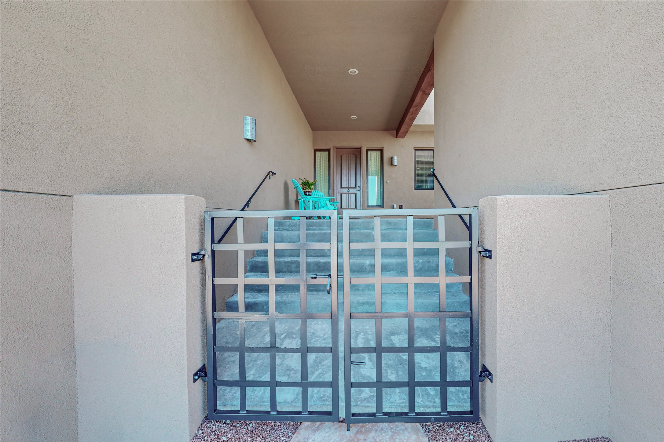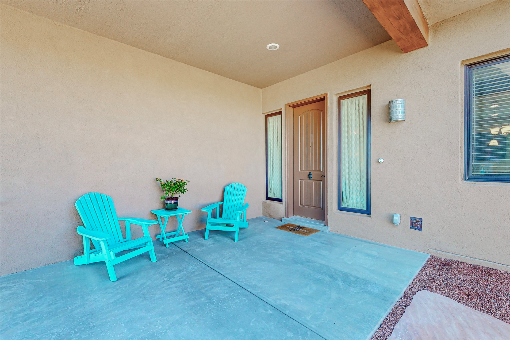 Looking for a newer single level home with a guest house and views? Welcome home to this meticulously maintained, immaculate, and warmly inviting home that was built in 2021 within the Tessera community. 7 Via Harena tastefully blends modern architecture with Santa Fe ambiance in a beautifully balanced way. The open concept floor plan permeates the Living Room, dining area and kitchen with light enhanced by high ceilings, showcasing comfortable seating areas, upgraded appliances and plenty of counter space. The two guest rooms and full bath are welcoming and nicely separated from the luxurious primary suite. Meticulousness doesn't end there as you transition to outside spaces which are aesthetically pleasing with precise landscaping, mountain views in the front and peaceful privacy in the back. Private yet easily accessible, the one-bedroom guest house with three-quarter bath is perfect for guests, a private office space or yoga studio. Added bonus features include a three-car garage, tankless hot water and a level two electric vehicle charger. Welcome home.