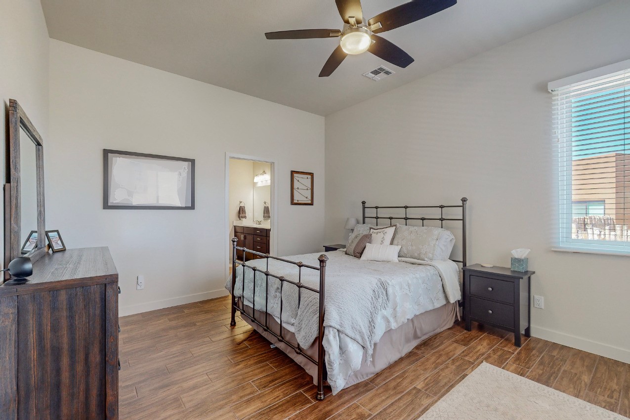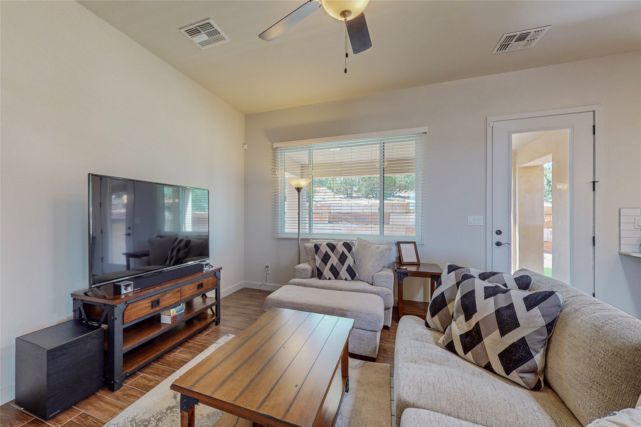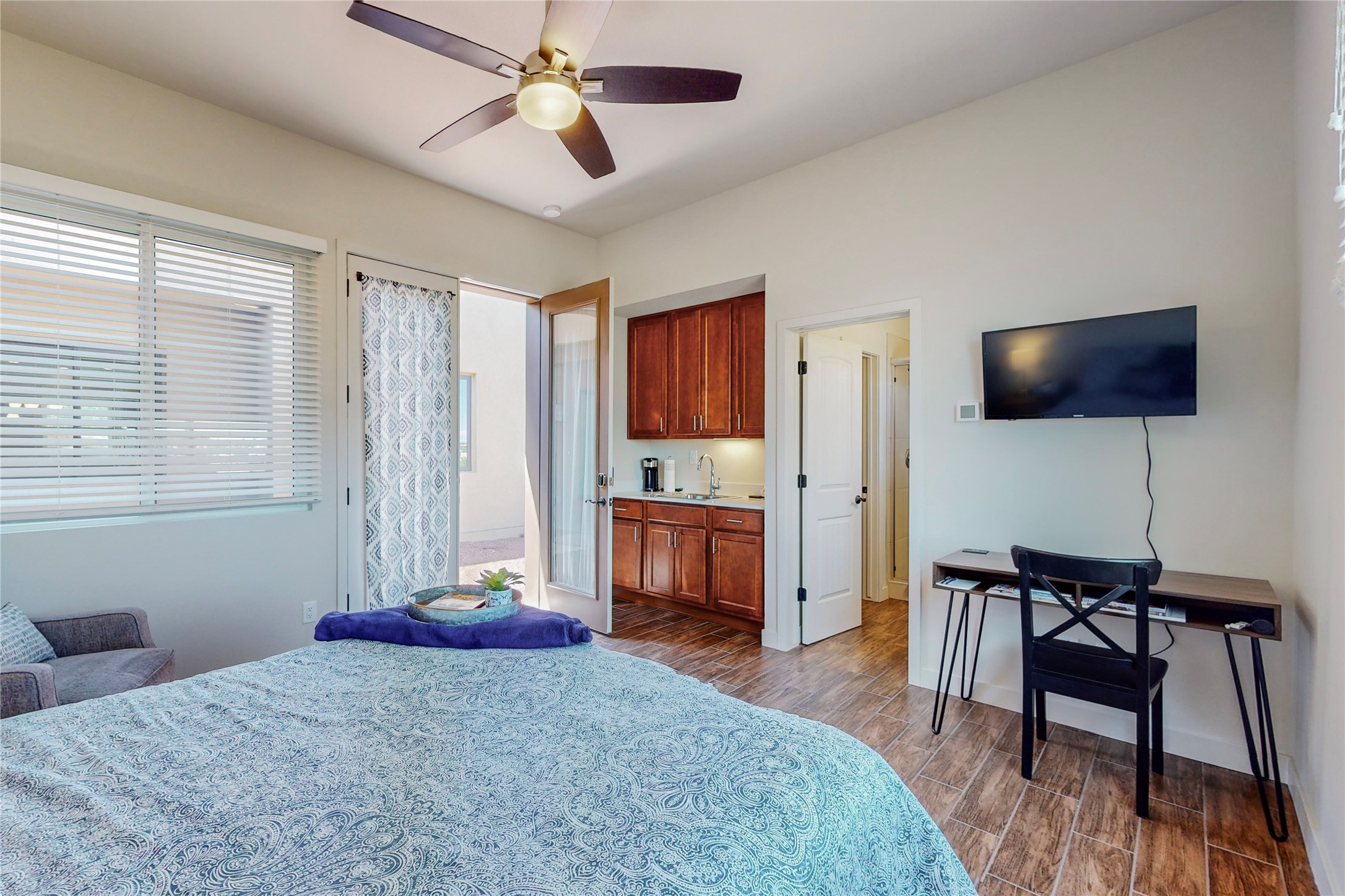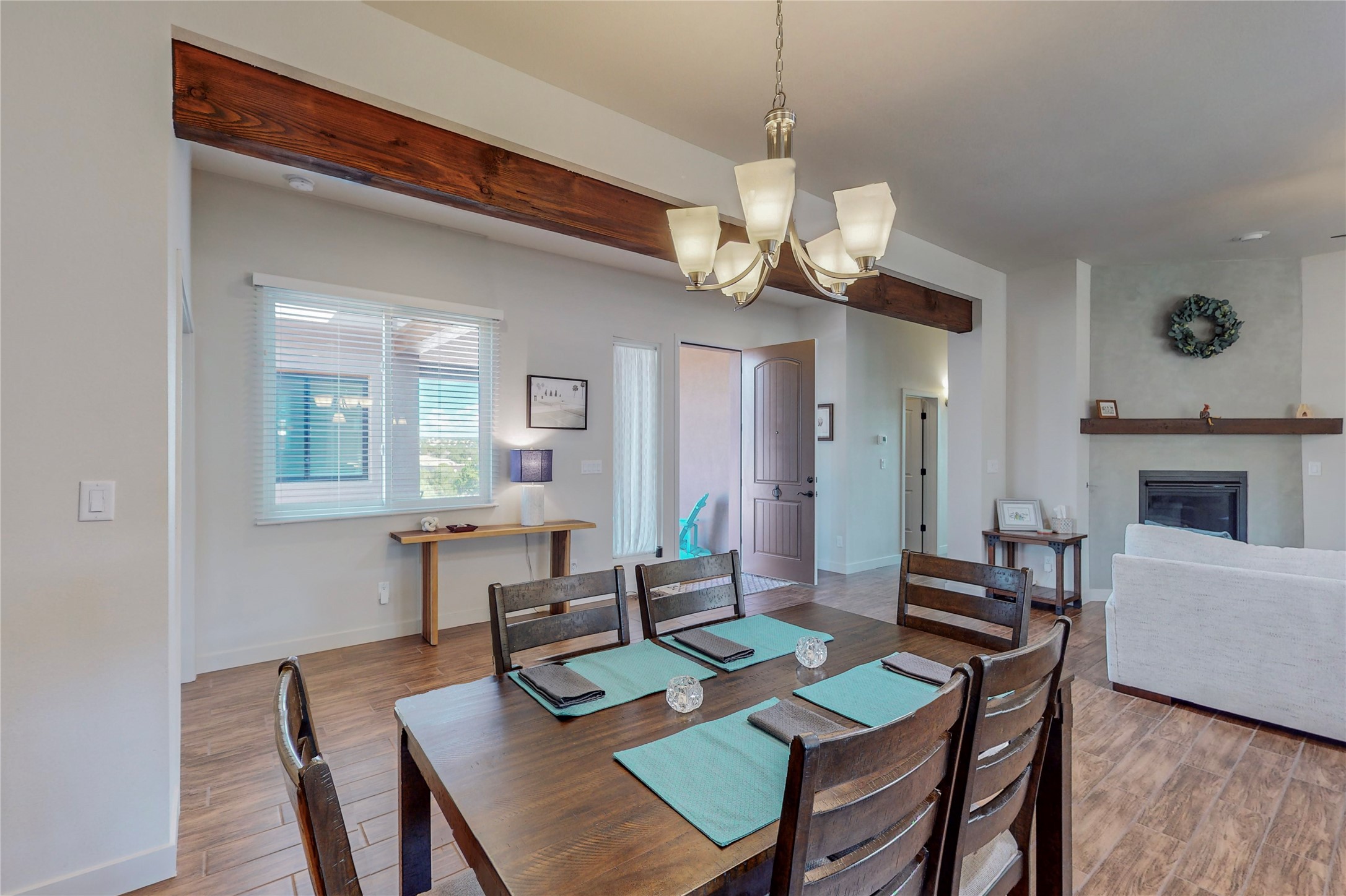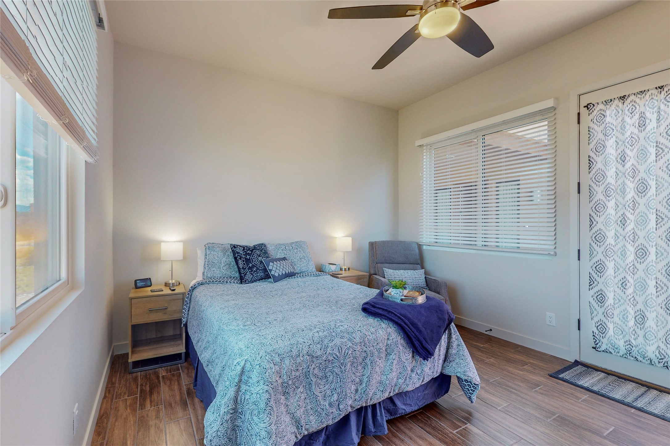 Looking for a newer single level home with a guest house and views? Welcome home to this meticulously maintained, immaculate, and warmly inviting home that was built in 2021 within the Tessera community. 7 Via Harena tastefully blends modern architecture with Santa Fe ambiance in a beautifully balanced way. The open concept floor plan permeates the Living Room, dining area and kitchen with light enhanced by high ceilings, showcasing comfortable seating areas, upgraded appliances and plenty of counter space. The two guest rooms and full bath are welcoming and nicely separated from the luxurious primary suite. Meticulousness doesn't end there as you transition to outside spaces which are aesthetically pleasing with precise landscaping, mountain views in the front and peaceful privacy in the back. Private yet easily accessible, the one-bedroom guest house with three-quarter bath is perfect for guests, a private office space or yoga studio. Added bonus features include a three-car garage, tankless hot water and a level two electric vehicle charger. Welcome home.