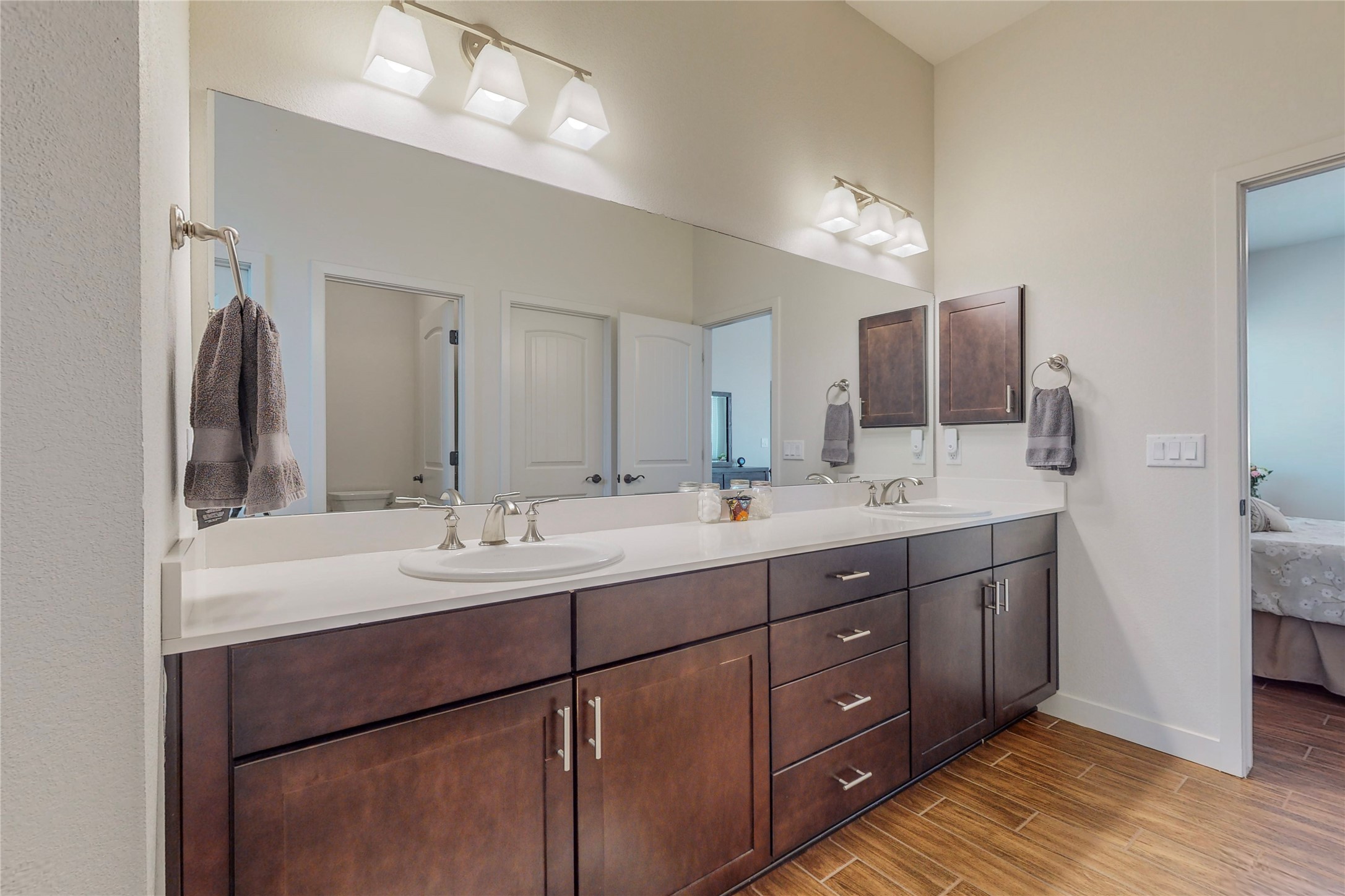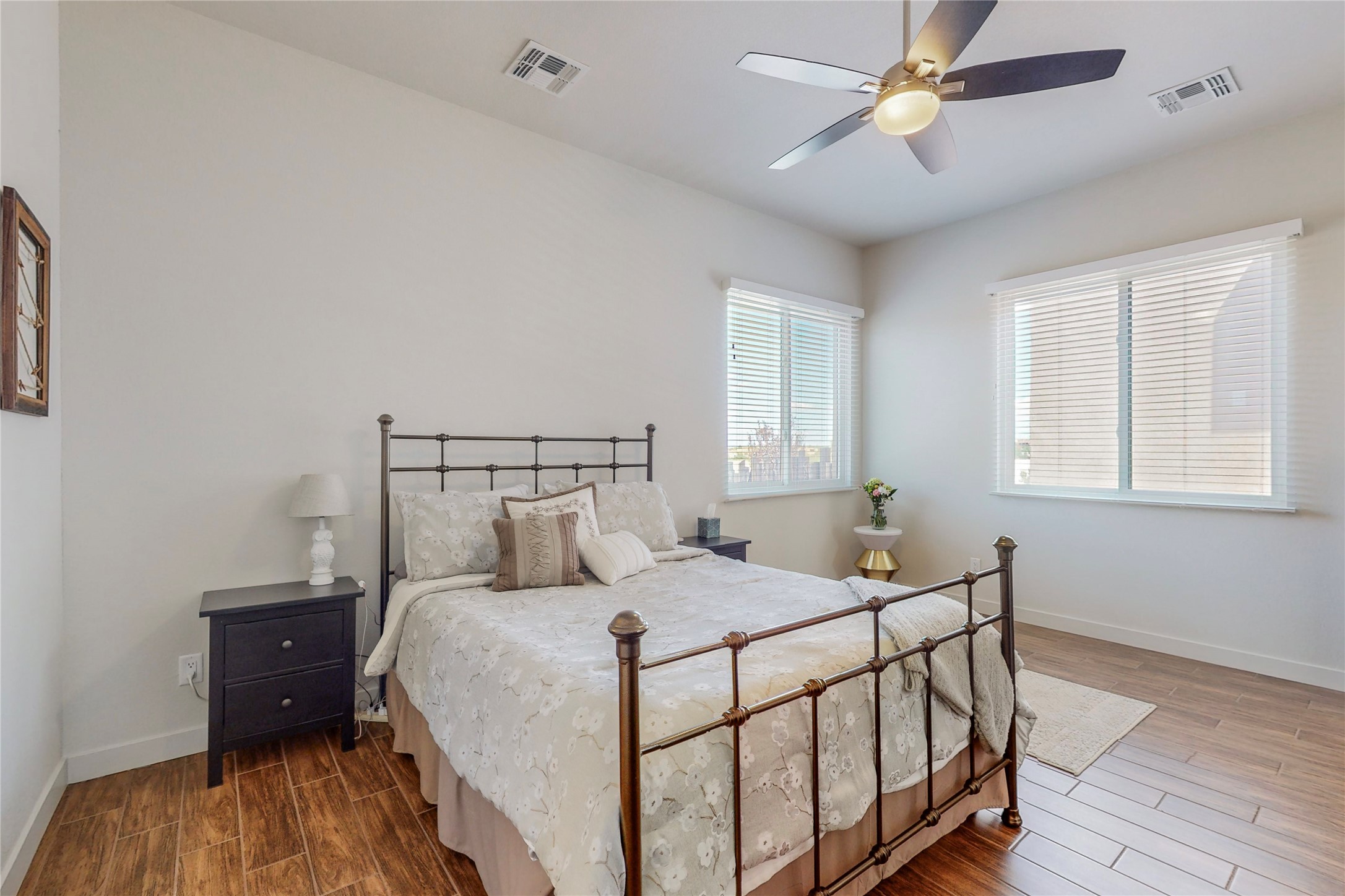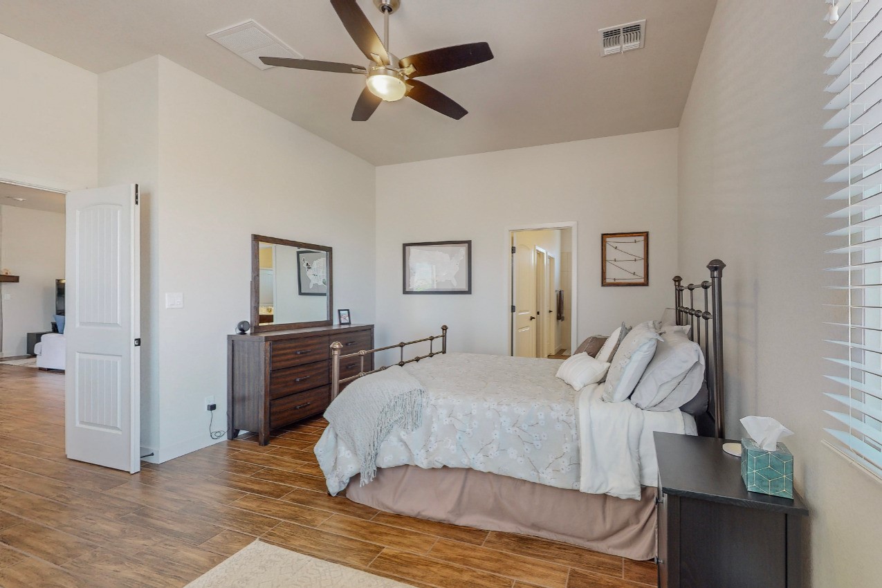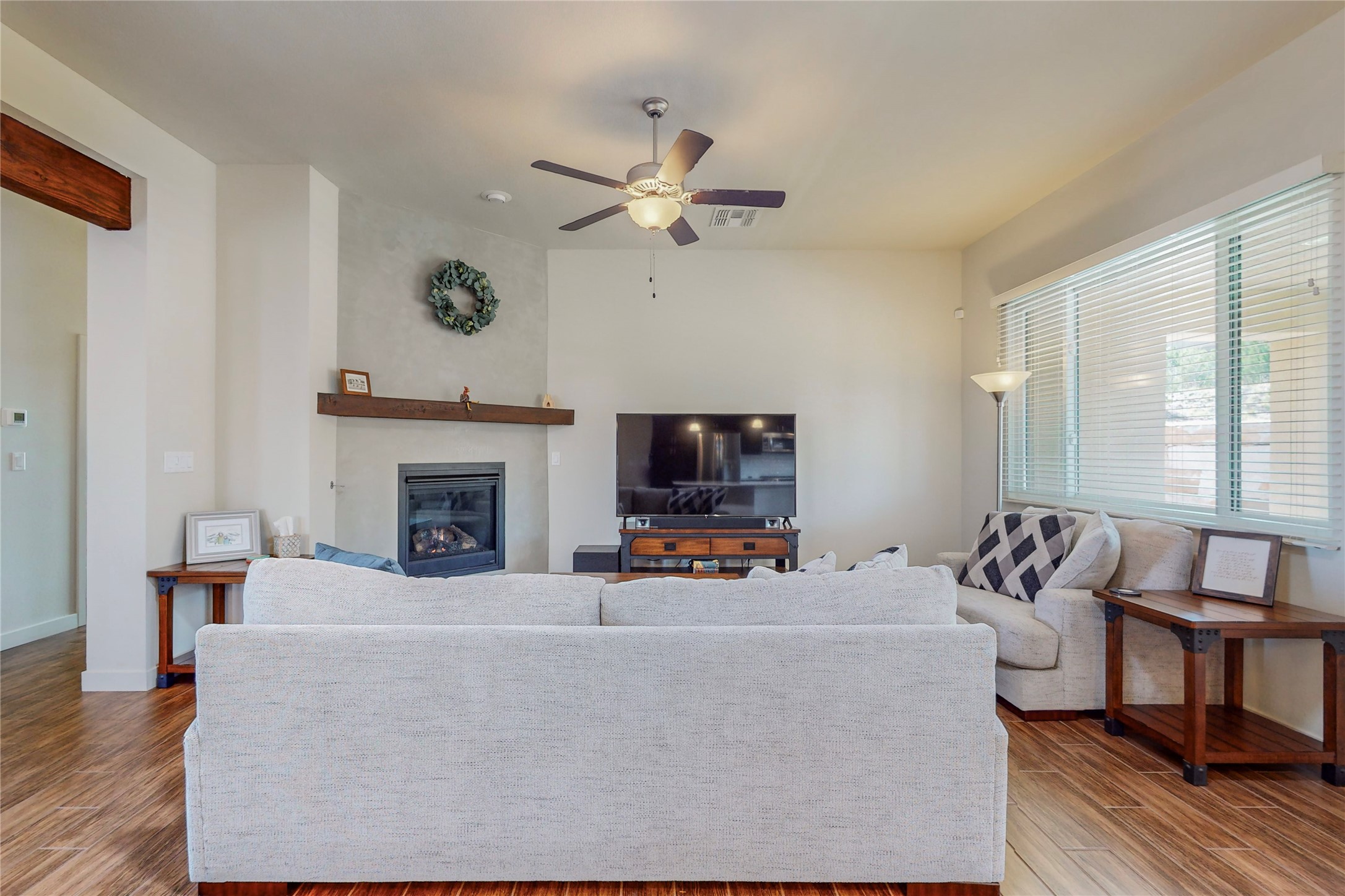 Looking for a newer single level home with a guest house and views? Welcome home to this meticulously maintained, immaculate, and warmly inviting home that was built in 2021 within the Tessera community. 7 Via Harena tastefully blends modern architecture with Santa Fe ambiance in a beautifully balanced way. The open concept floor plan permeates the Living Room, dining area and kitchen with light enhanced by high ceilings, showcasing comfortable seating areas, upgraded appliances and plenty of counter space. The two guest rooms and full bath are welcoming and nicely separated from the luxurious primary suite. Meticulousness doesn't end there as you transition to outside spaces which are aesthetically pleasing with precise landscaping, mountain views in the front and peaceful privacy in the back. Private yet easily accessible, the one-bedroom guest house with three-quarter bath is perfect for guests, a private office space or yoga studio. Added bonus features include a three-car garage, tankless hot water and a level two electric vehicle charger. Welcome home.