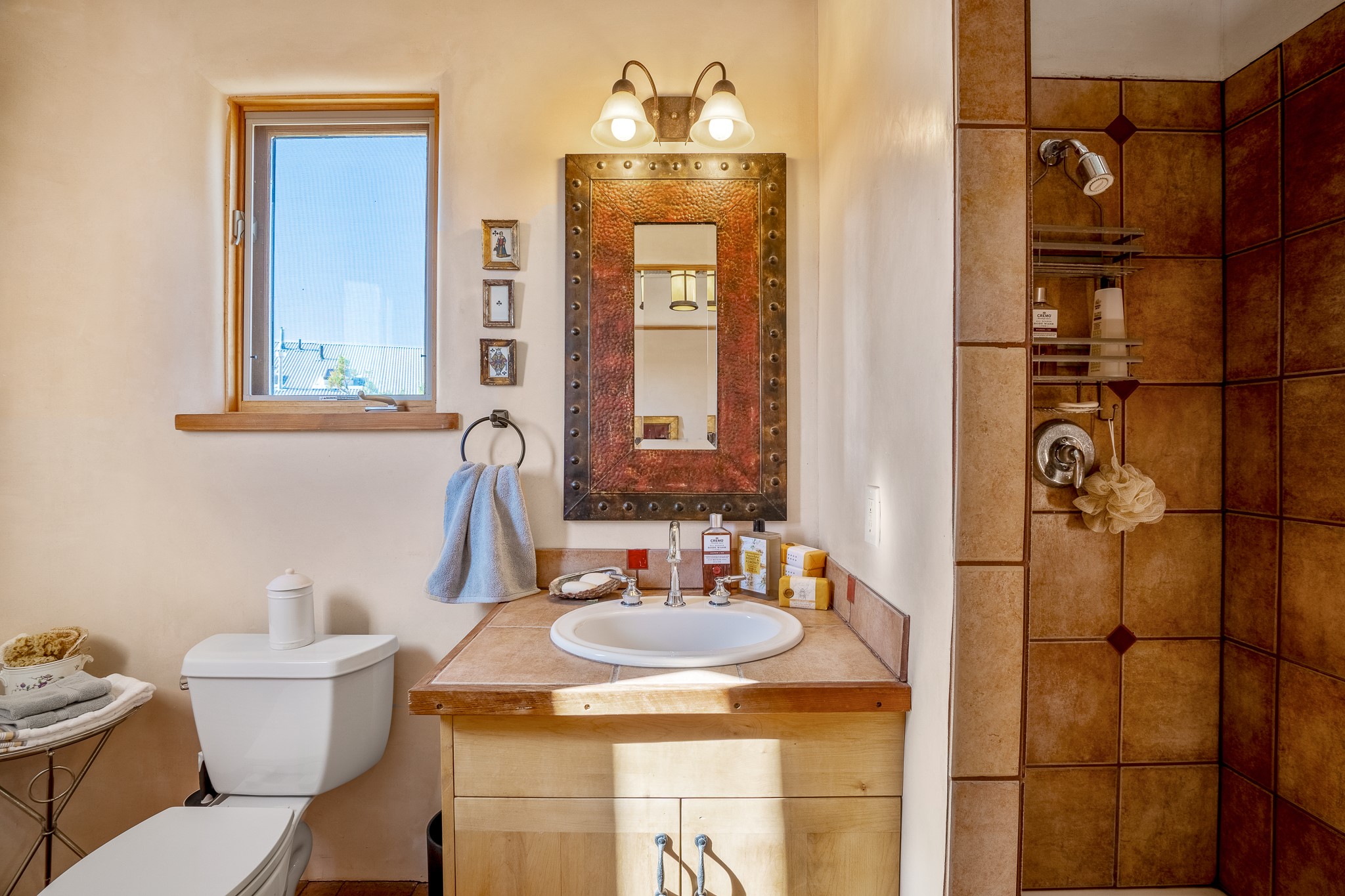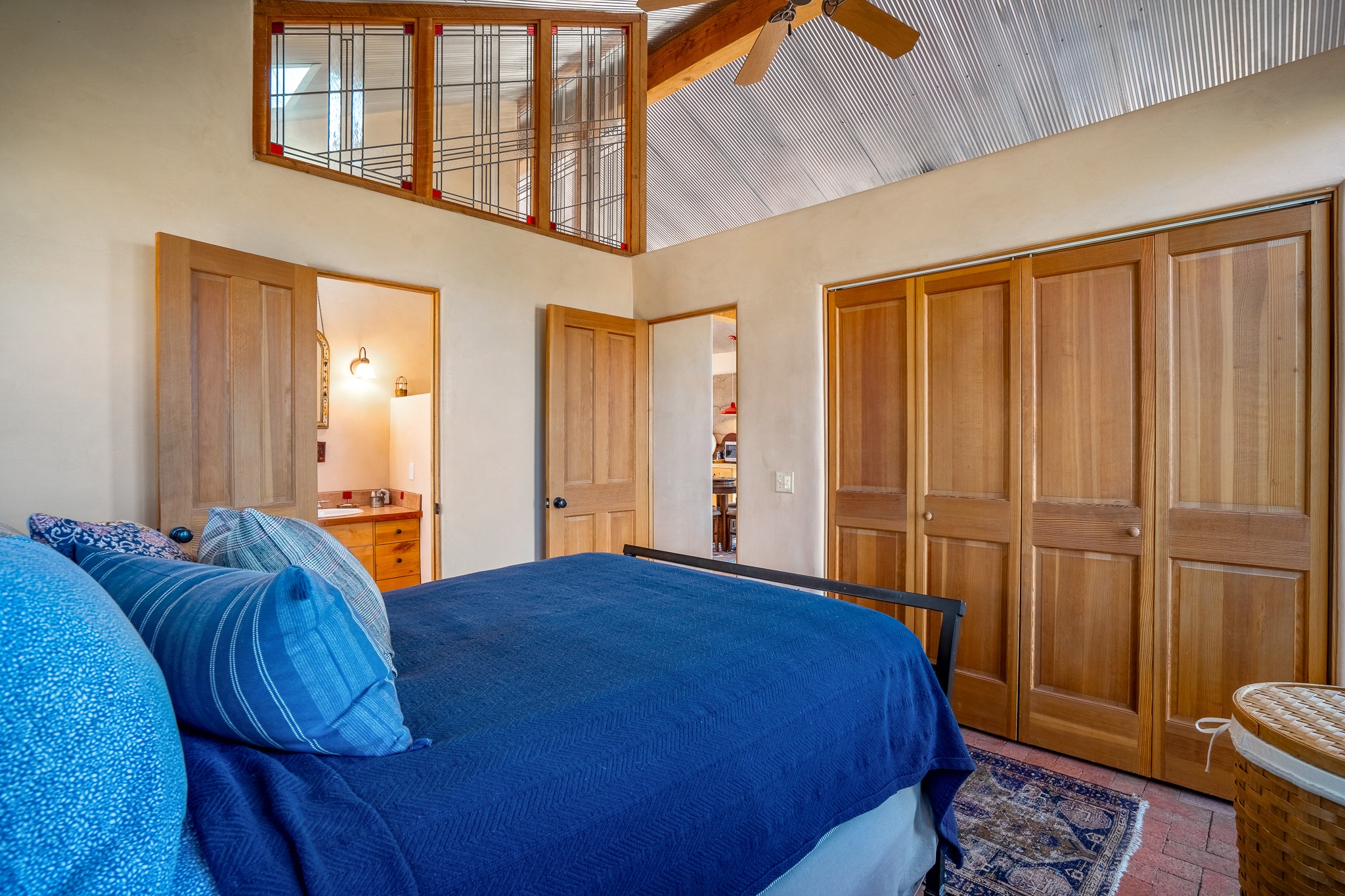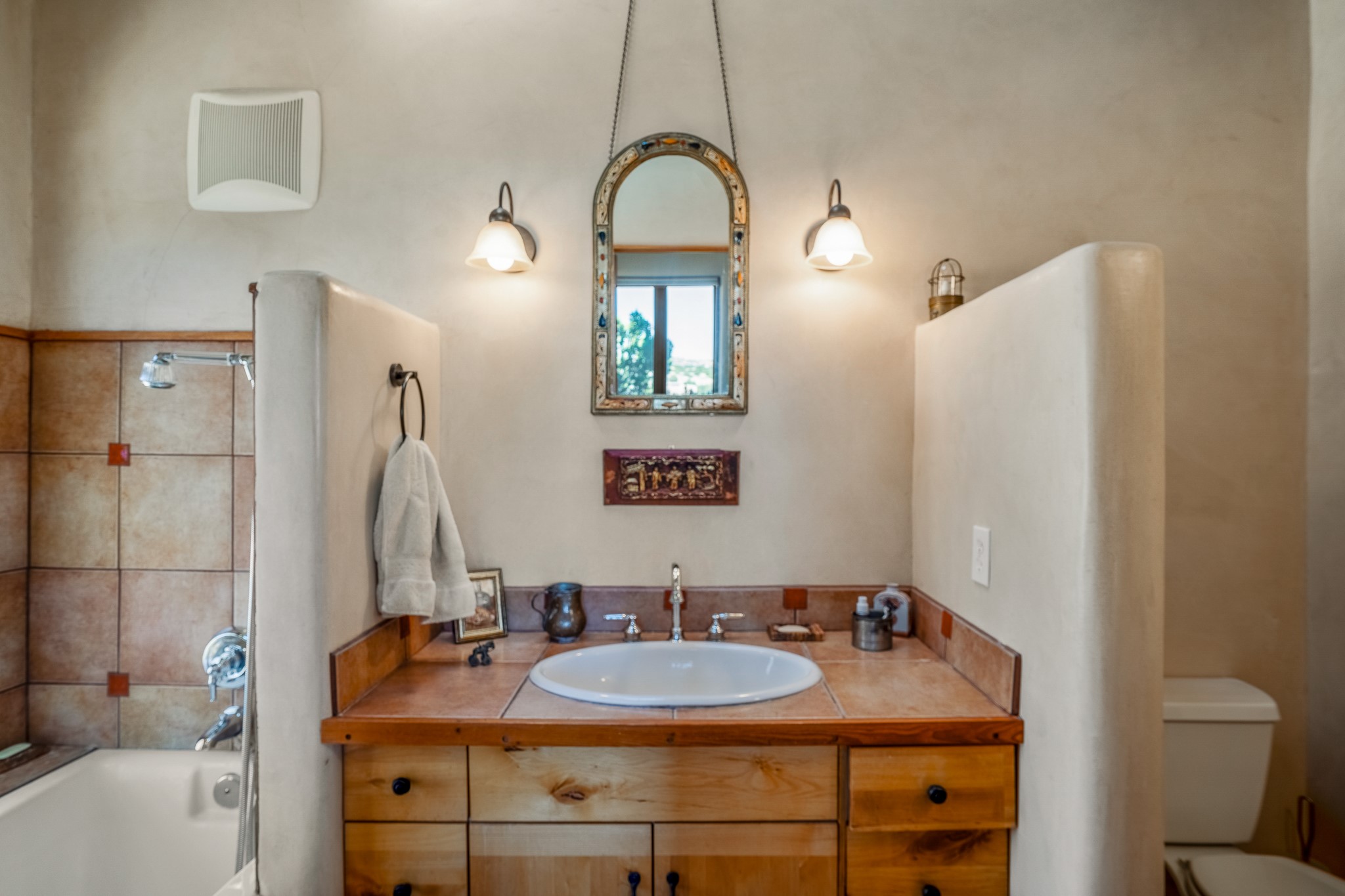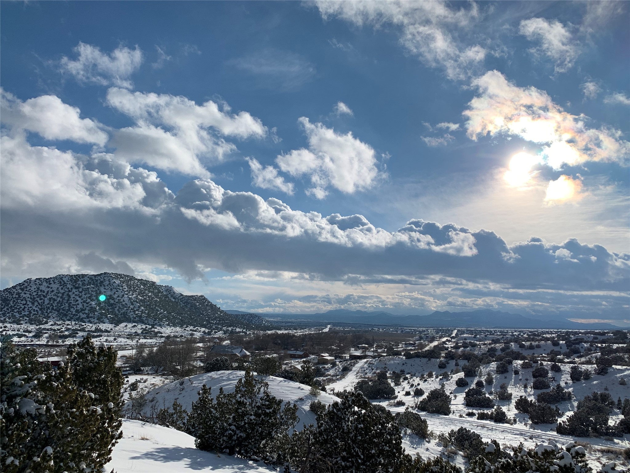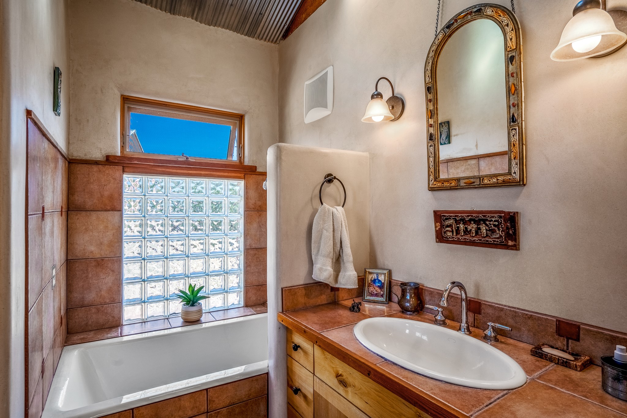 Panoramic views from a beautiful house and casita in Lamy! Located just minutes fromThe Agora shopping area in Eldorado and sited atop a picturesque hill, this uniqueproperty boasts a charming 1044 sq. ft. 2-bedroom, 2-bathroom E-crete home with a pitched roof,along with a detached 436 sq. ft. casita featuring a pitched roof and a 3/4 bathroom. Sited on 3acres with community water and constructed in 2006 by famed local builder Karen Terry, known as a pioneer in passive solar and eco-conscious design. Both structures incorporate Trombe walls - these walls collect heat from the sun and radiate it into the interior. Heat is further supplemented by gas wall heaters and cozy wood-burning stoves. The many 6' and floor to ceiling insulated double panewindows are highly energy efficient and provide an abundance of natural light.Impeccably styled with sleek, modern aesthetics, this property exudes the authenticNorthern New Mexico atmosphere, showcasing beautiful brick flooring and plasteredwalls. A true Lamy gem.