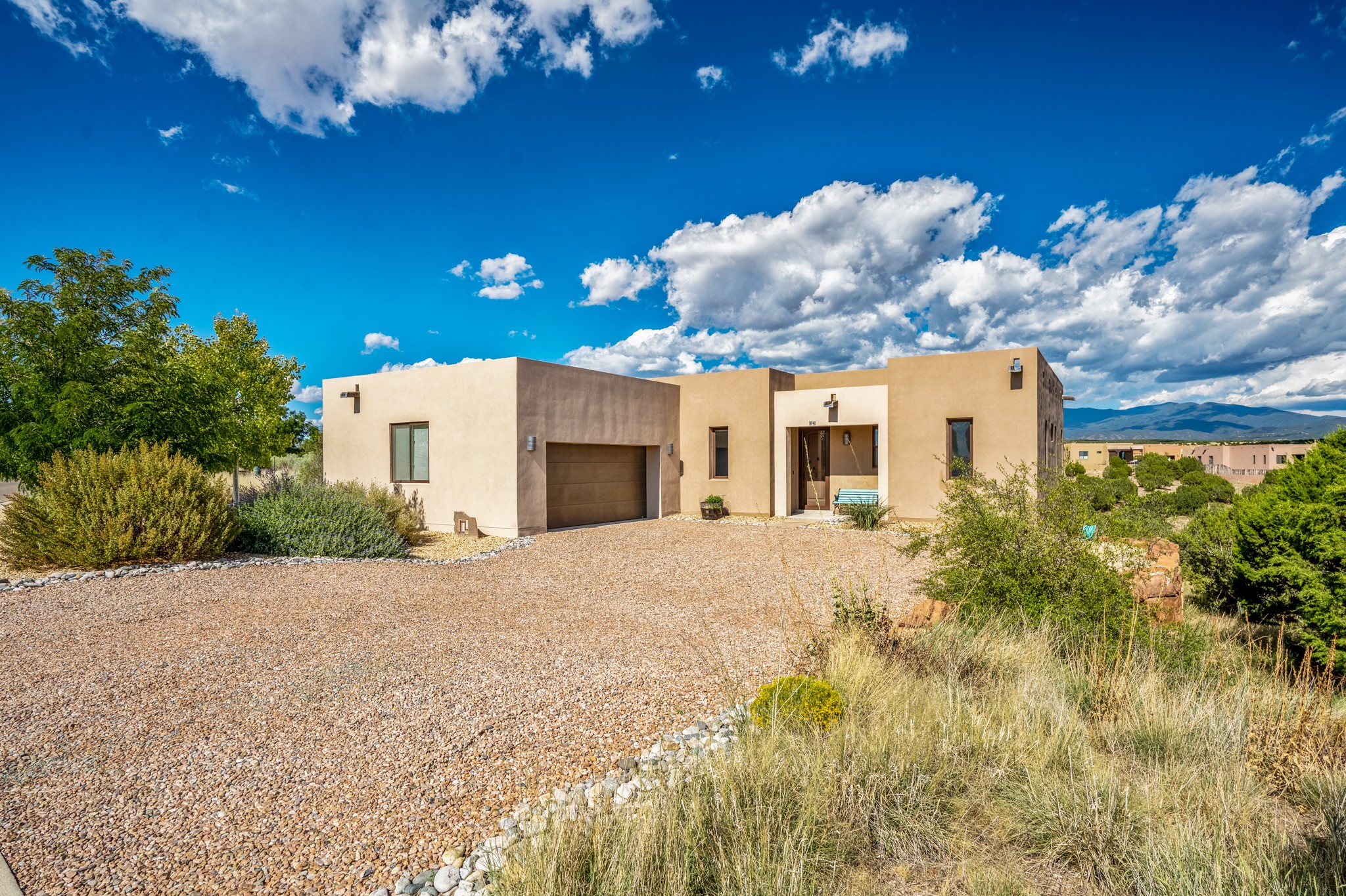 Introducing a slice of paradise with this remarkable property that offers more than just a home - it offers a lifestyle. Set against the breathtaking backdrop of the Sangre de Cristo mountains, the living room, Primary bedroom, and deck provide an awe-inspiring view that captivates your senses and soothes your soul.Unveil the beauty of open space as you gaze beyond the rear of your residence to the distant houses, creating a sense of privacy that is truly special. Embrace the outdoors with an exceptional trail system that weaves its way through the neighborhood and extends to the enchanting realm of Aldea and beyond. Each morning, embark on a unique journey as you explore these trails, ensuring that no two walks are alike within a week.Every detail has been carefully considered to enhance your living experience. Say goodbye to the hassle of propane gas tanks - a natural gas outlet on the deck ensures endless grilling sessions without interruption. As the deck faces east, indulge in the cooler shade during evening grilling sessions and relish delightful dinners on the deck throughout the summer season.Nestle by the warmth of the gas kiva fireplace on winter nights, creating an unparalleled coziness perfect for intimate gatherings and cherished moments. Storage will never be a concern with an oversized garage that provides ample space for all your belongings. Discover convenience in every corner, as walk-in closets grace each bedroom, while the closet under the stairs - affectionately known as the "Harry Potter" closet - offers even more storage options.Hosting guests is a breeze in the junior master bedroom, offering them a retreat of their own, complete with an en-suite bathroom for added comfort. Sliding doors lead to a back portal, allowing them to bask in the beauty of the outdoors while maintaining their privacy.