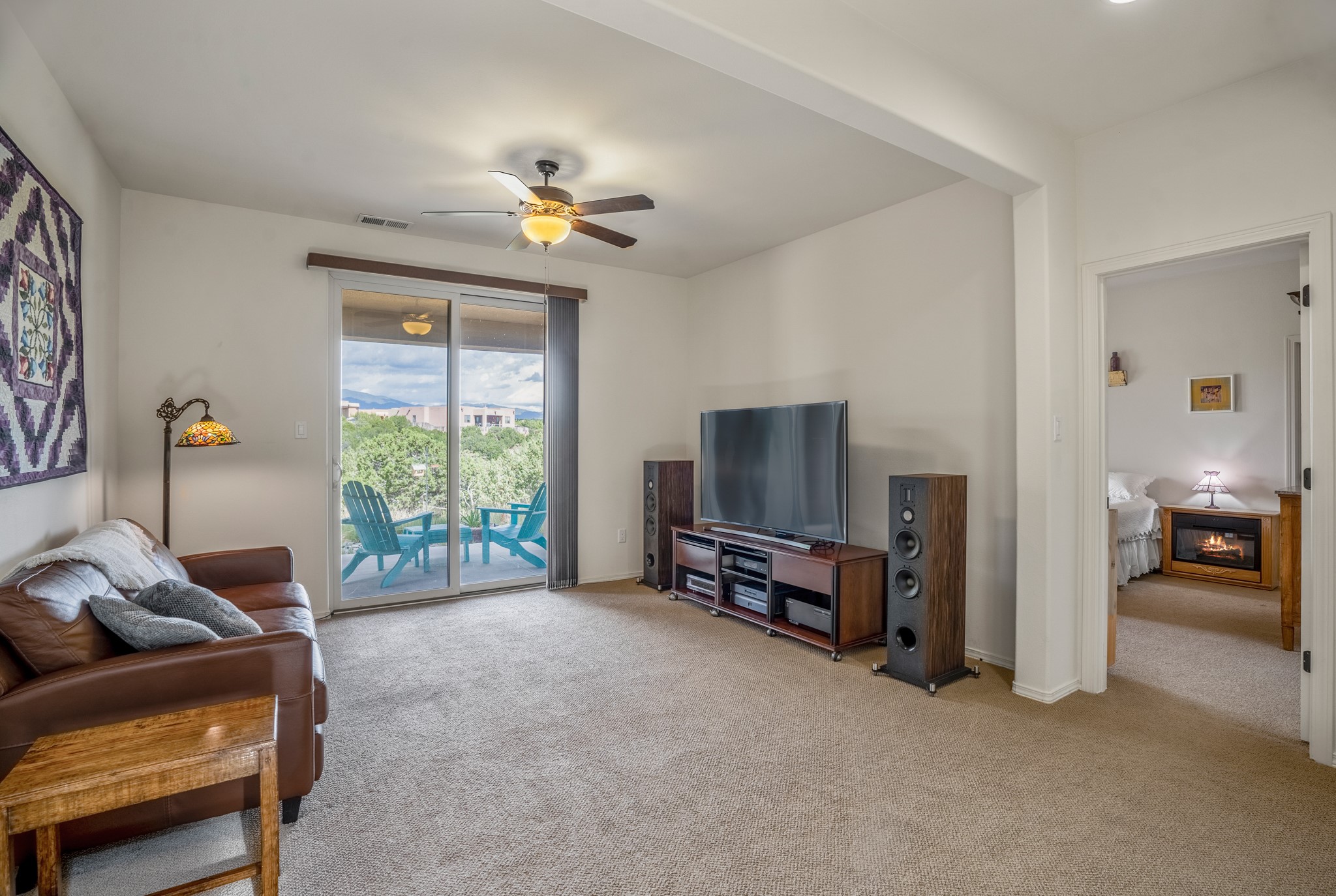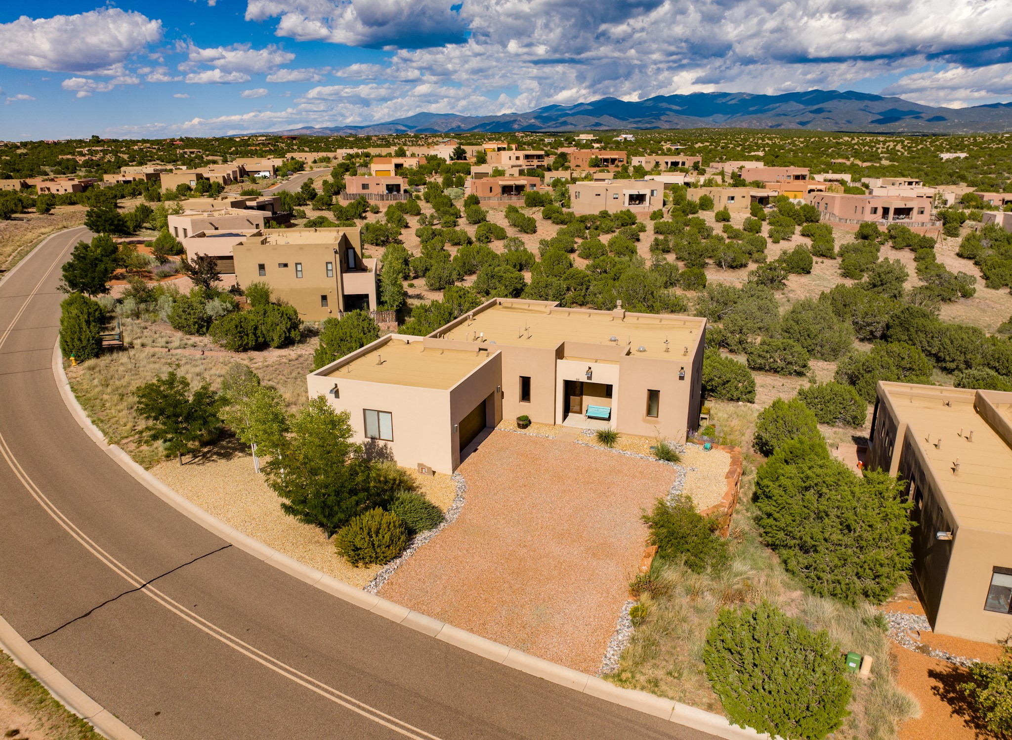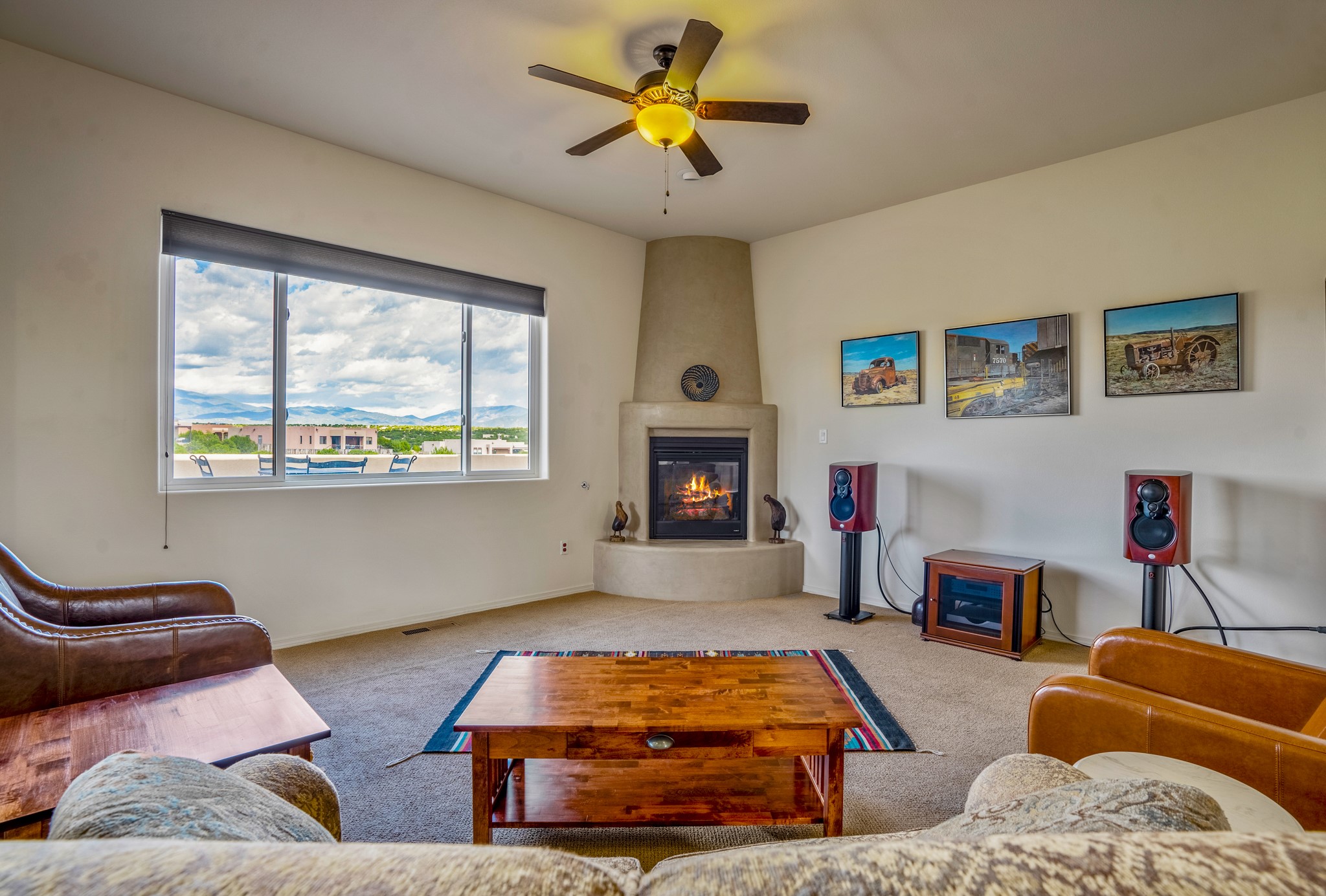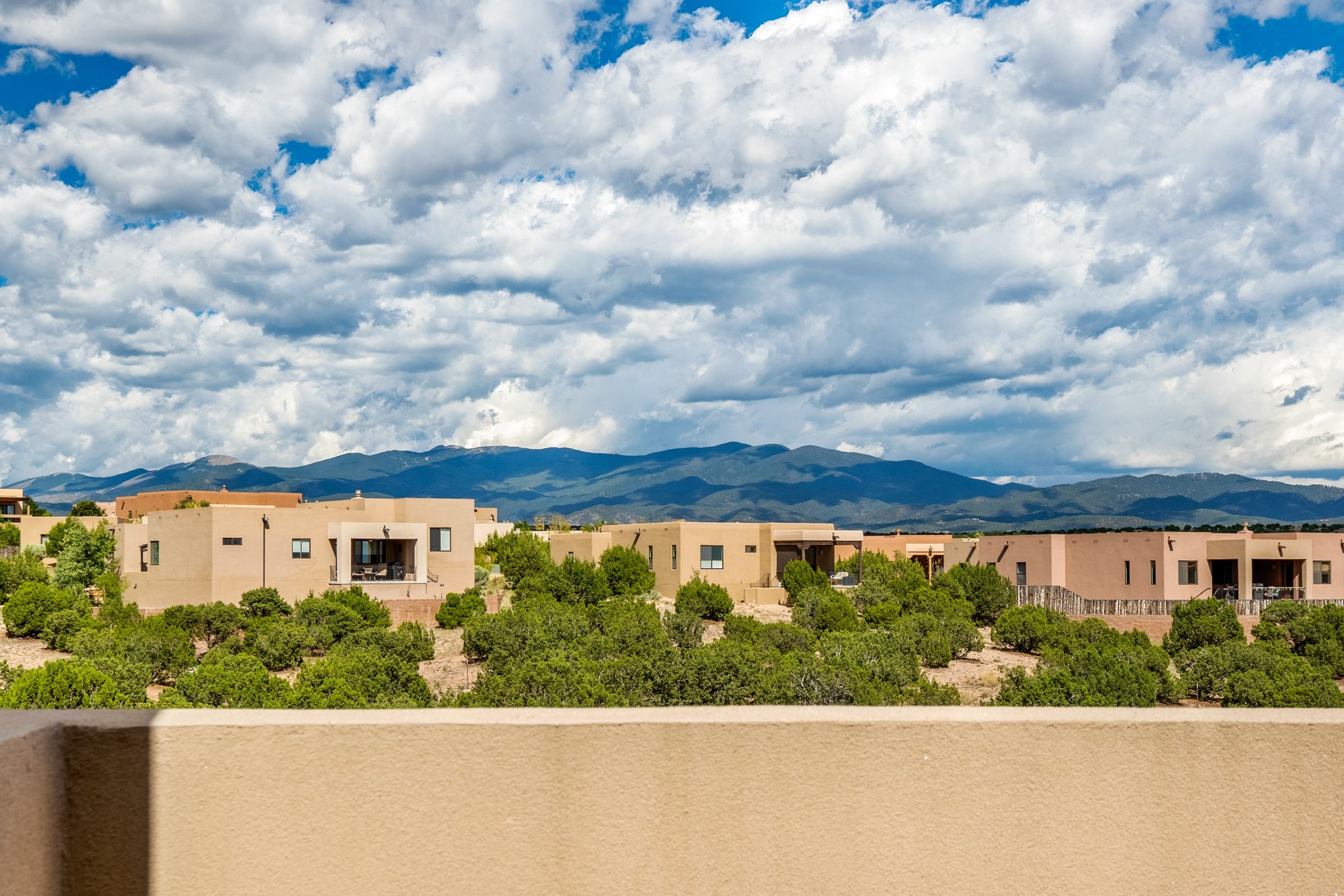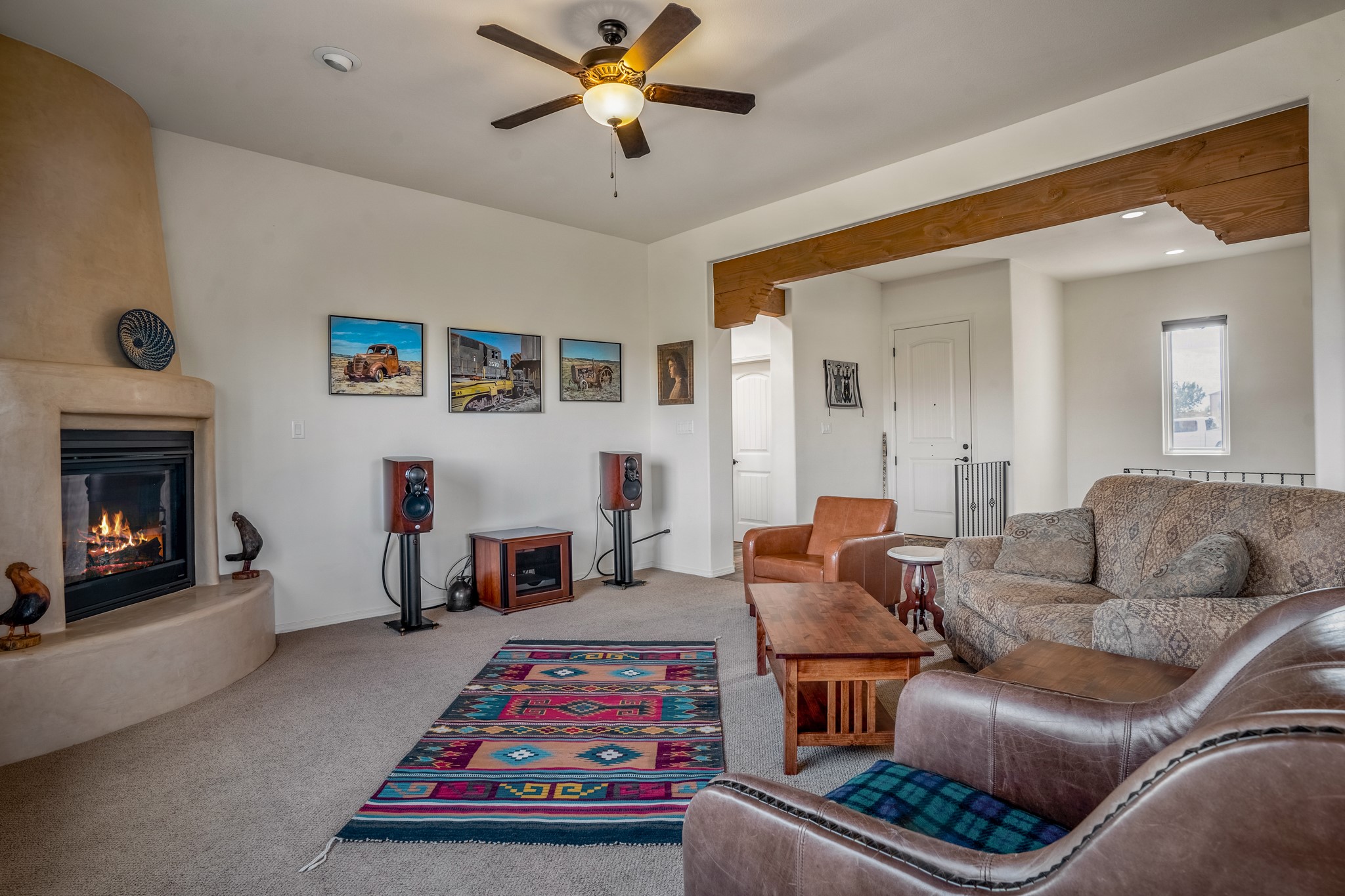Introducing a slice of paradise with this remarkable property that offers more than just a home - it offers a lifestyle. Set against the breathtaking backdrop of the Sangre de Cristo mountains, the living room, Primary bedroom, and deck provide an awe-inspiring view that captivates your senses and soothes your soul.Unveil the beauty of open space as you gaze beyond the rear of your residence to the distant houses, creating a sense of privacy that is truly special. Embrace the outdoors with an exceptional trail system that weaves its way through the neighborhood and extends to the enchanting realm of Aldea and beyond. Each morning, embark on a unique journey as you explore these trails, ensuring that no two walks are alike within a week.Every detail has been carefully considered to enhance your living experience. Say goodbye to the hassle of propane gas tanks - a natural gas outlet on the deck ensures endless grilling sessions without interruption. As the deck faces east, indulge in the cooler shade during evening grilling sessions and relish delightful dinners on the deck throughout the summer season.Nestle by the warmth of the gas kiva fireplace on winter nights, creating an unparalleled coziness perfect for intimate gatherings and cherished moments. Storage will never be a concern with an oversized garage that provides ample space for all your belongings. Discover convenience in every corner, as walk-in closets grace each bedroom, while the closet under the stairs - affectionately known as the "Harry Potter" closet - offers even more storage options.Hosting guests is a breeze in the junior master bedroom, offering them a retreat of their own, complete with an en-suite bathroom for added comfort. Sliding doors lead to a back portal, allowing them to bask in the beauty of the outdoors while maintaining their privacy.