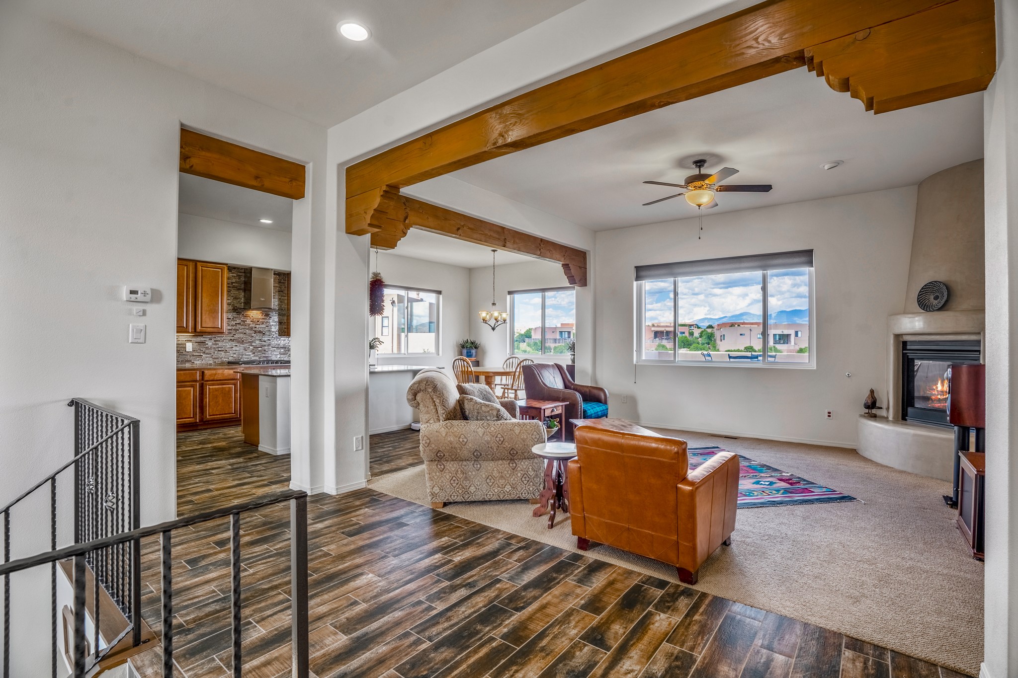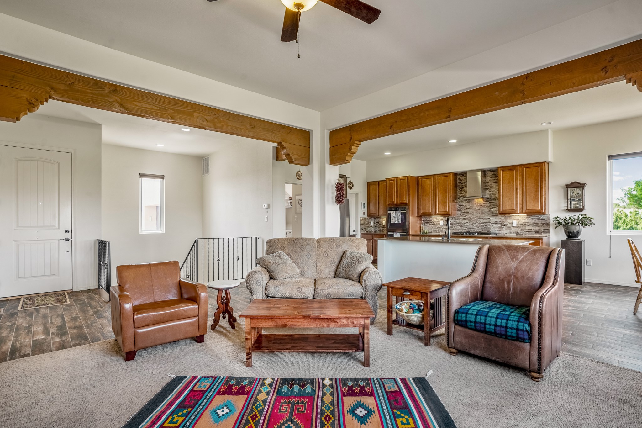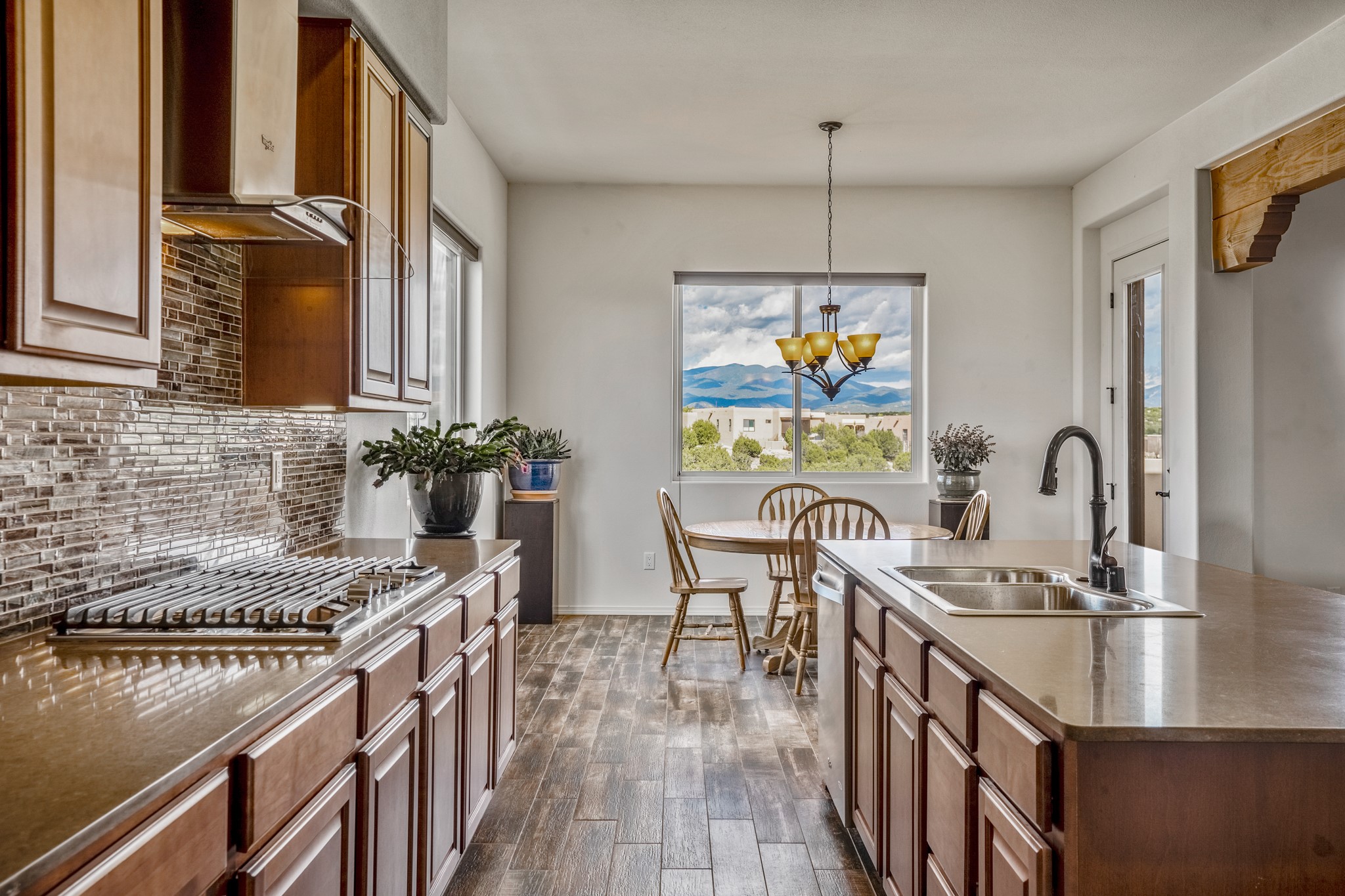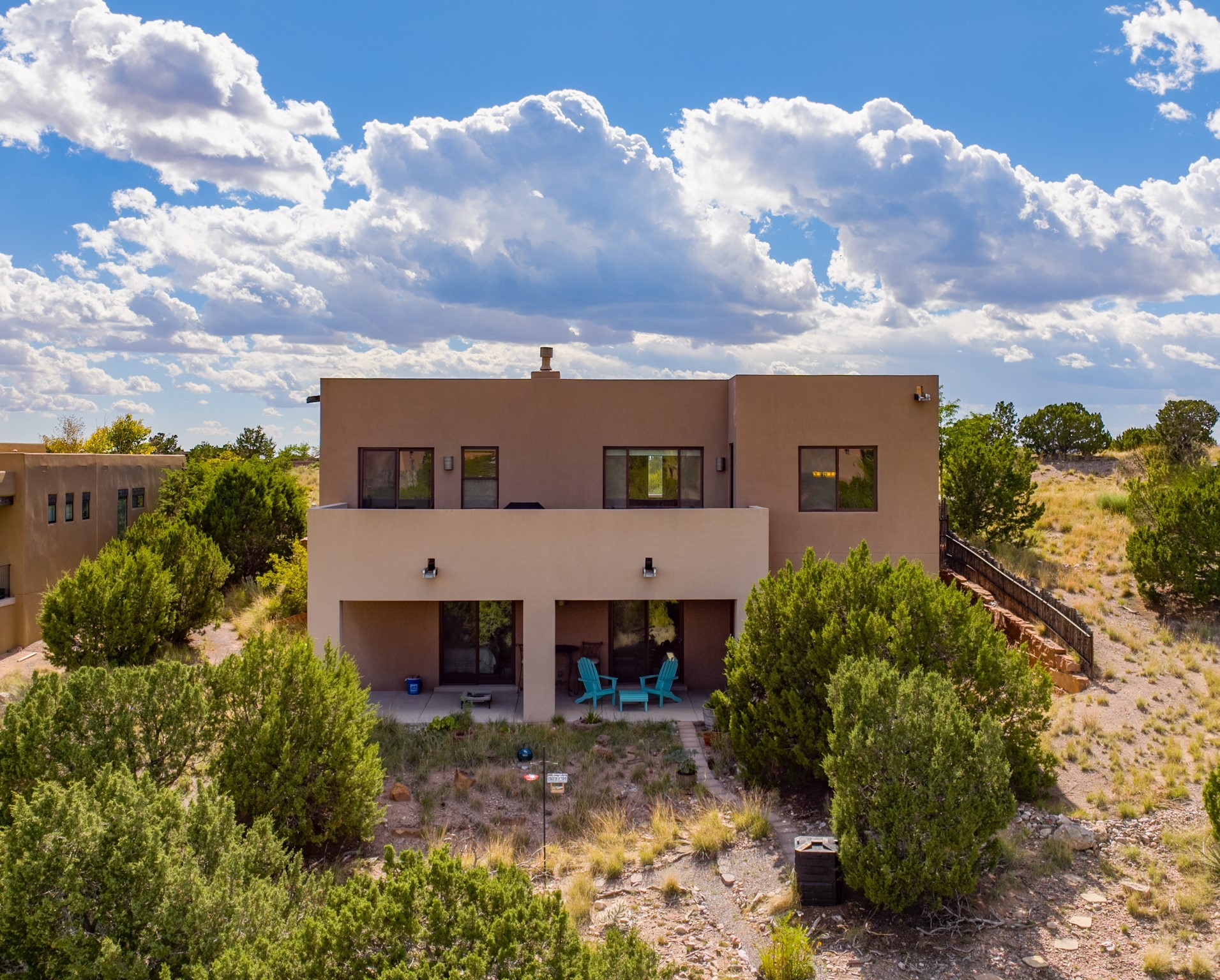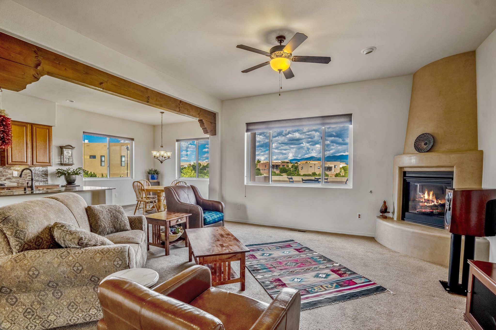 Introducing a slice of paradise with this remarkable property that offers more than just a home - it offers a lifestyle. Set against the breathtaking backdrop of the Sangre de Cristo mountains, the living room, Primary bedroom, and deck provide an awe-inspiring view that captivates your senses and soothes your soul.Unveil the beauty of open space as you gaze beyond the rear of your residence to the distant houses, creating a sense of privacy that is truly special. Embrace the outdoors with an exceptional trail system that weaves its way through the neighborhood and extends to the enchanting realm of Aldea and beyond. Each morning, embark on a unique journey as you explore these trails, ensuring that no two walks are alike within a week.Every detail has been carefully considered to enhance your living experience. Say goodbye to the hassle of propane gas tanks - a natural gas outlet on the deck ensures endless grilling sessions without interruption. As the deck faces east, indulge in the cooler shade during evening grilling sessions and relish delightful dinners on the deck throughout the summer season.Nestle by the warmth of the gas kiva fireplace on winter nights, creating an unparalleled coziness perfect for intimate gatherings and cherished moments. Storage will never be a concern with an oversized garage that provides ample space for all your belongings. Discover convenience in every corner, as walk-in closets grace each bedroom, while the closet under the stairs - affectionately known as the "Harry Potter" closet - offers even more storage options.Hosting guests is a breeze in the junior master bedroom, offering them a retreat of their own, complete with an en-suite bathroom for added comfort. Sliding doors lead to a back portal, allowing them to bask in the beauty of the outdoors while maintaining their privacy.