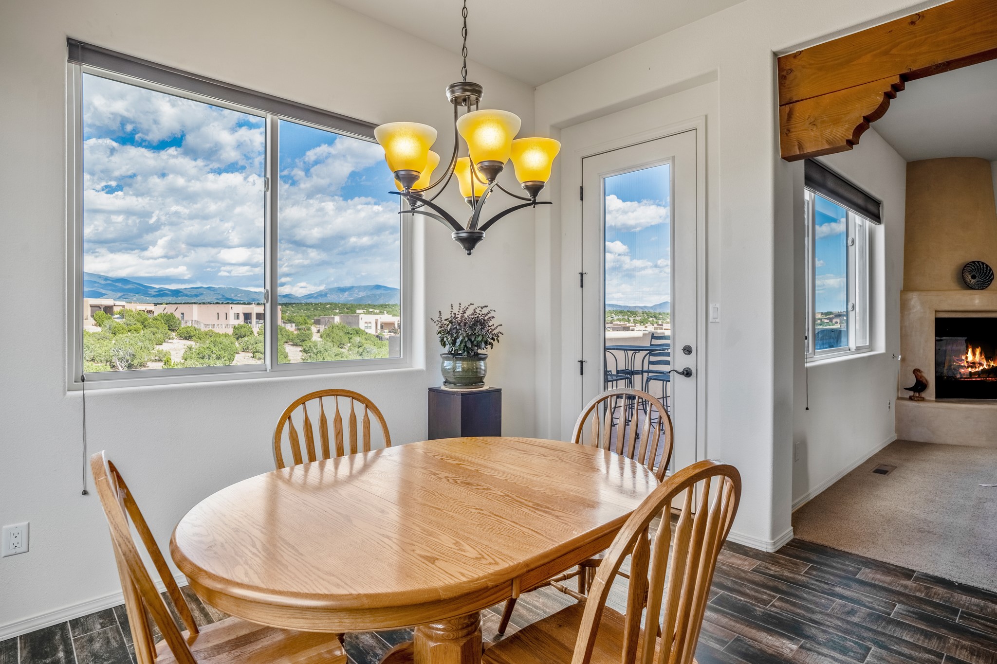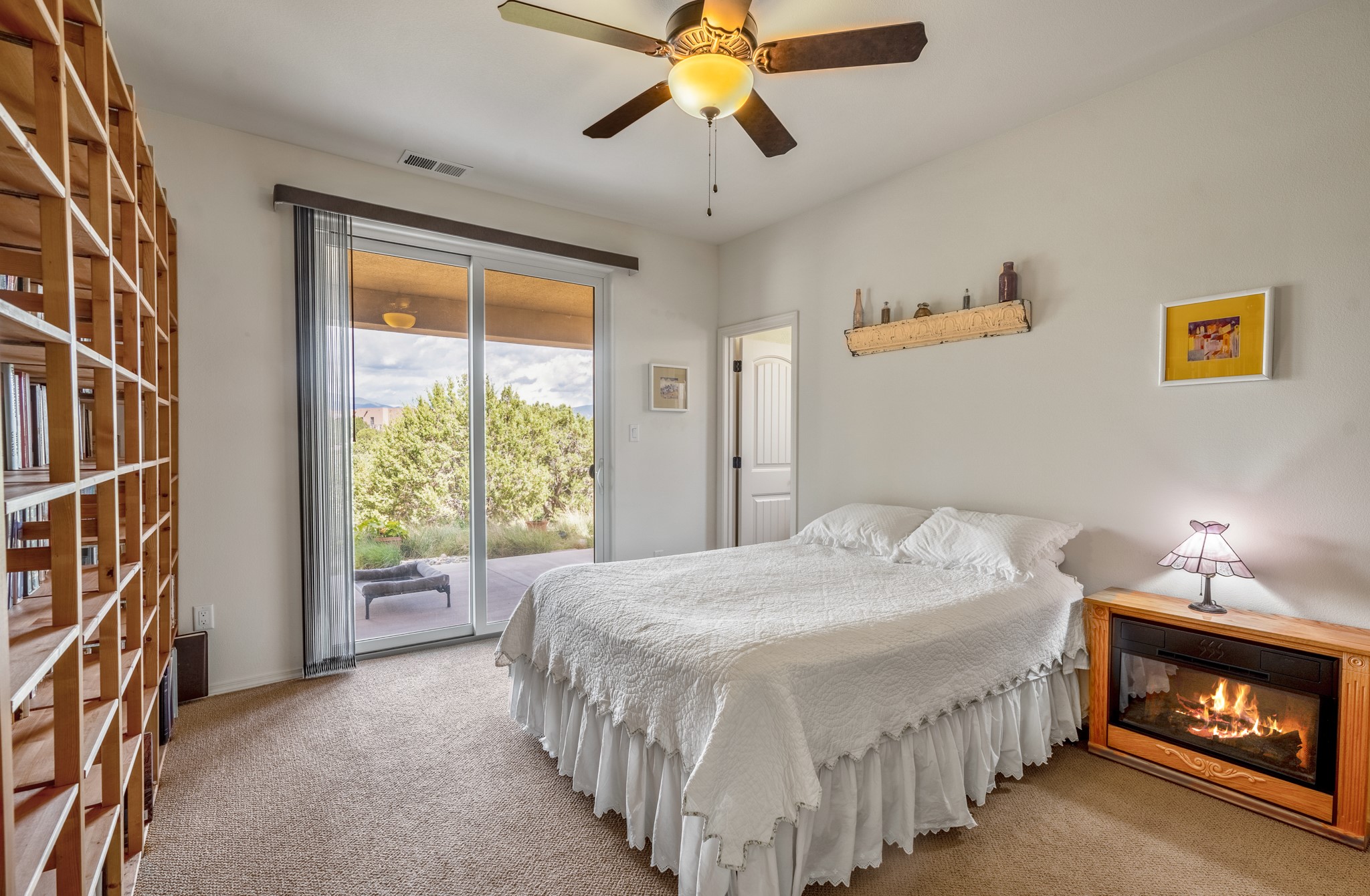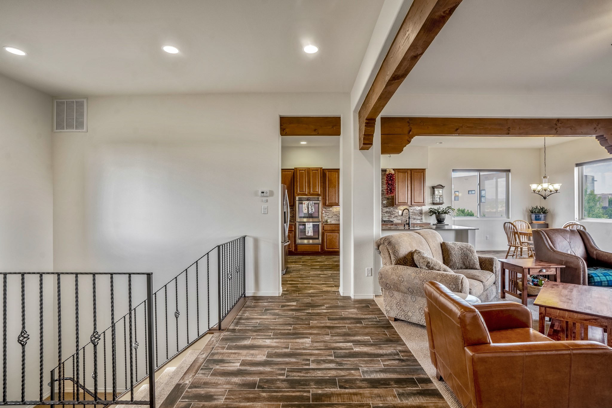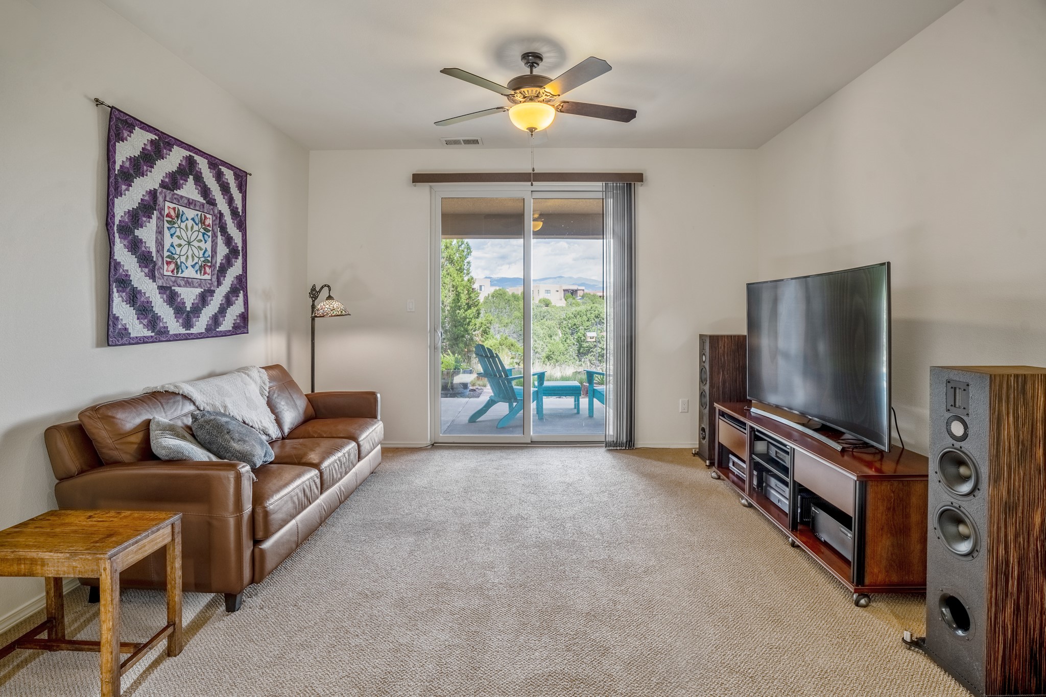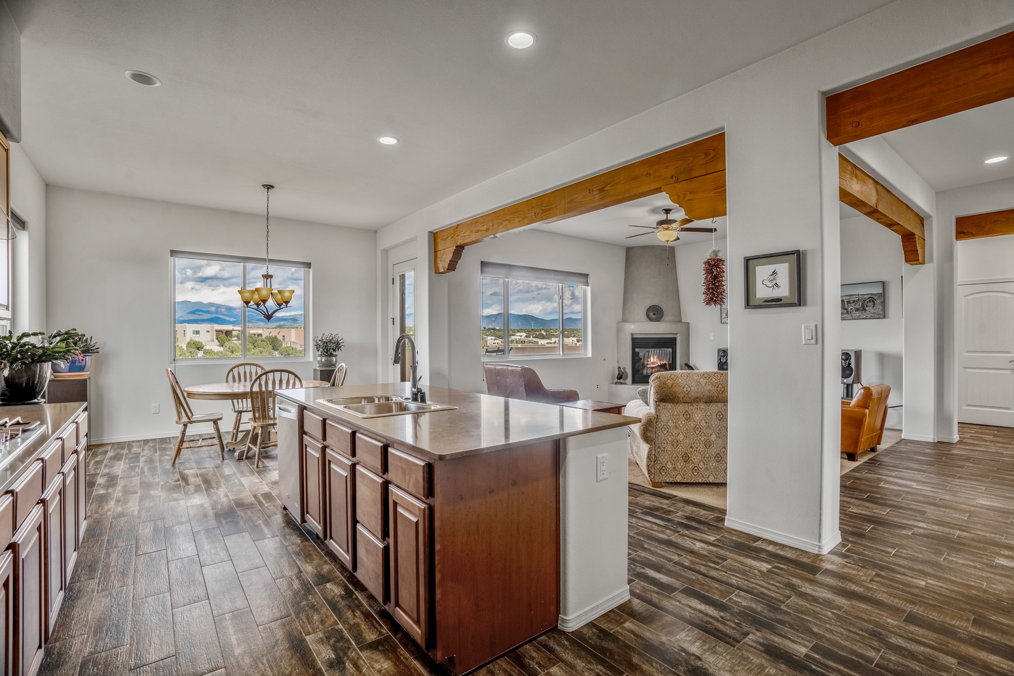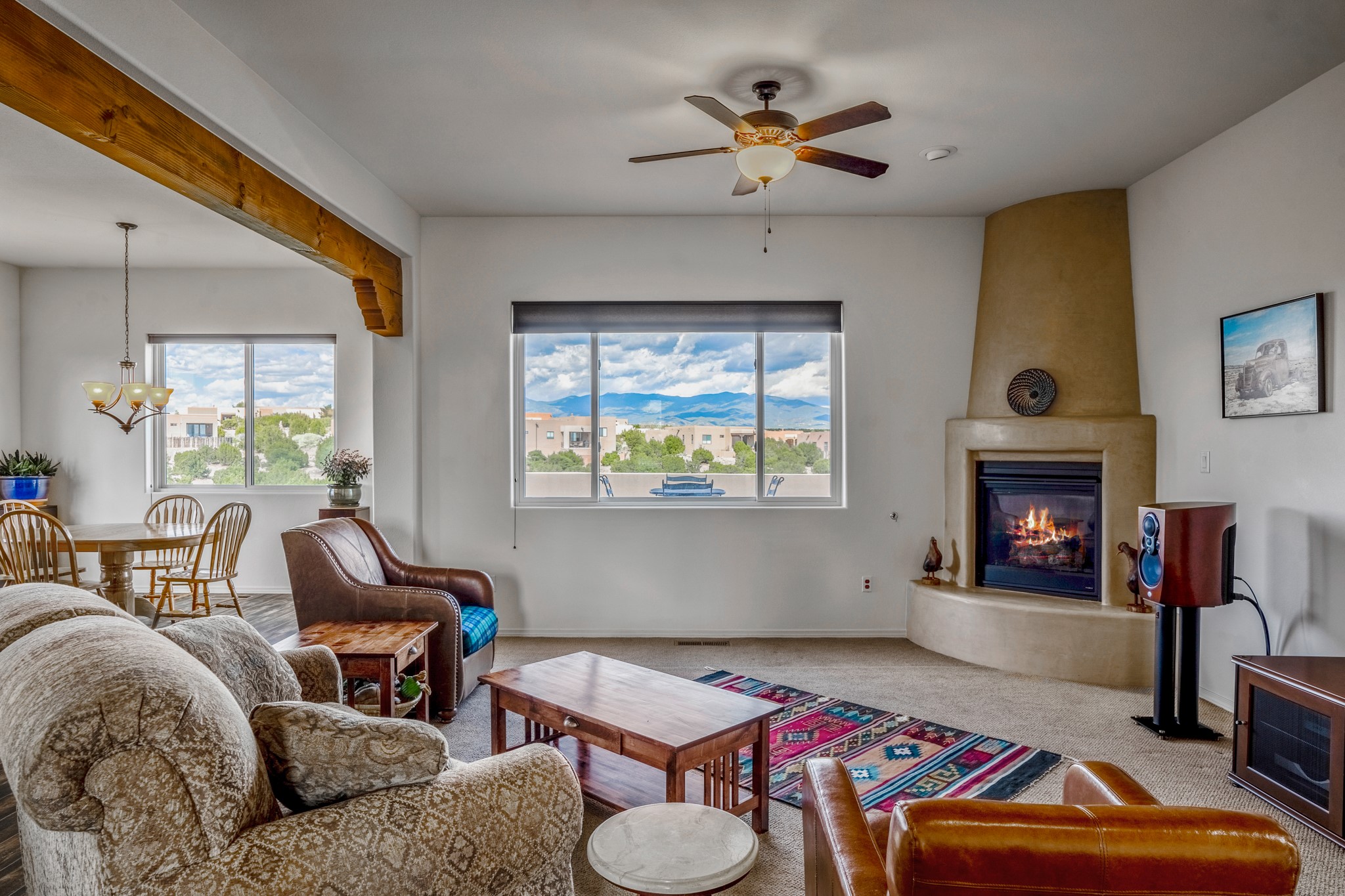 Introducing a slice of paradise with this remarkable property that offers more than just a home - it offers a lifestyle. Set against the breathtaking backdrop of the Sangre de Cristo mountains, the living room, Primary bedroom, and deck provide an awe-inspiring view that captivates your senses and soothes your soul.Unveil the beauty of open space as you gaze beyond the rear of your residence to the distant houses, creating a sense of privacy that is truly special. Embrace the outdoors with an exceptional trail system that weaves its way through the neighborhood and extends to the enchanting realm of Aldea and beyond. Each morning, embark on a unique journey as you explore these trails, ensuring that no two walks are alike within a week.Every detail has been carefully considered to enhance your living experience. Say goodbye to the hassle of propane gas tanks - a natural gas outlet on the deck ensures endless grilling sessions without interruption. As the deck faces east, indulge in the cooler shade during evening grilling sessions and relish delightful dinners on the deck throughout the summer season.Nestle by the warmth of the gas kiva fireplace on winter nights, creating an unparalleled coziness perfect for intimate gatherings and cherished moments. Storage will never be a concern with an oversized garage that provides ample space for all your belongings. Discover convenience in every corner, as walk-in closets grace each bedroom, while the closet under the stairs - affectionately known as the "Harry Potter" closet - offers even more storage options.Hosting guests is a breeze in the junior master bedroom, offering them a retreat of their own, complete with an en-suite bathroom for added comfort. Sliding doors lead to a back portal, allowing them to bask in the beauty of the outdoors while maintaining their privacy.