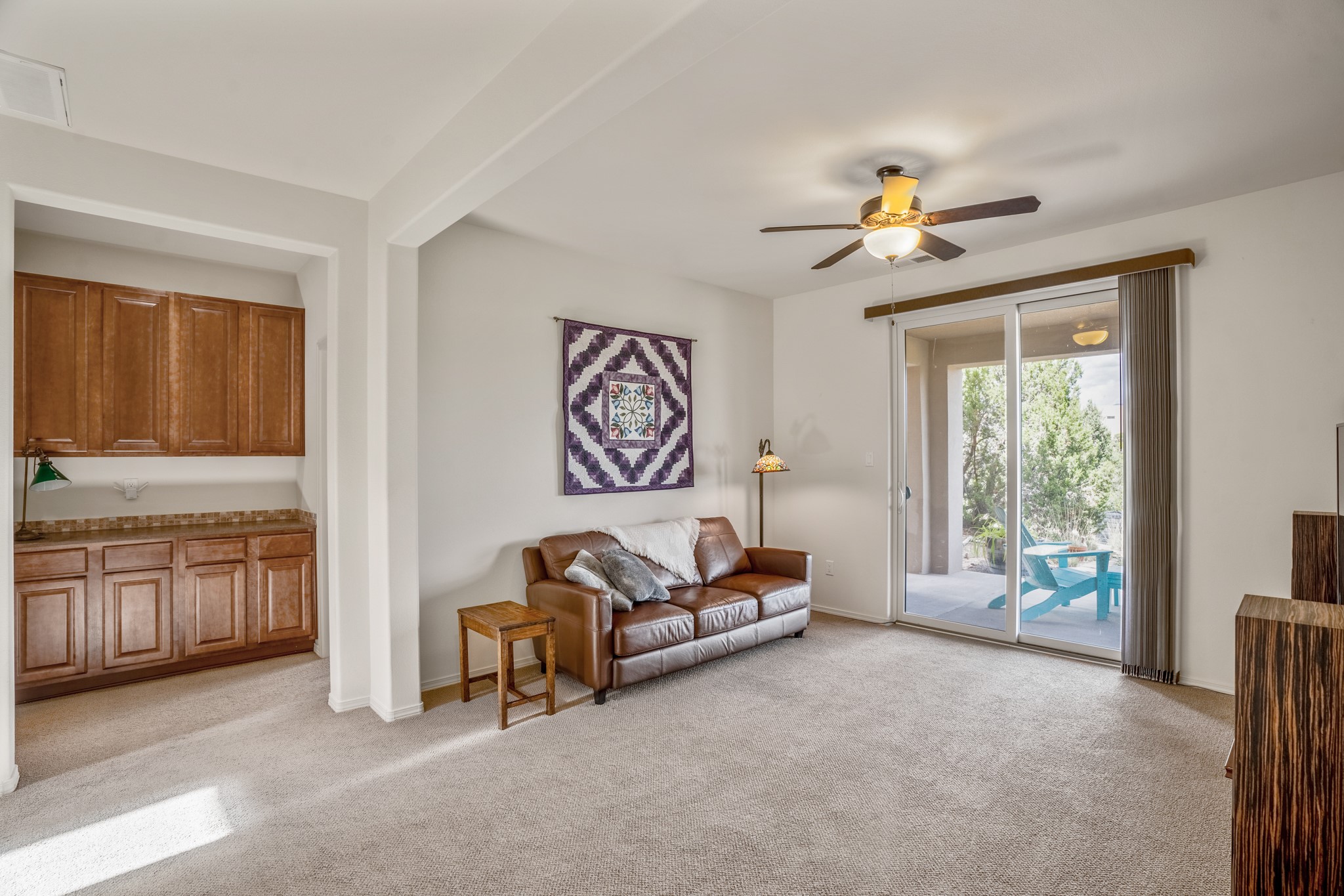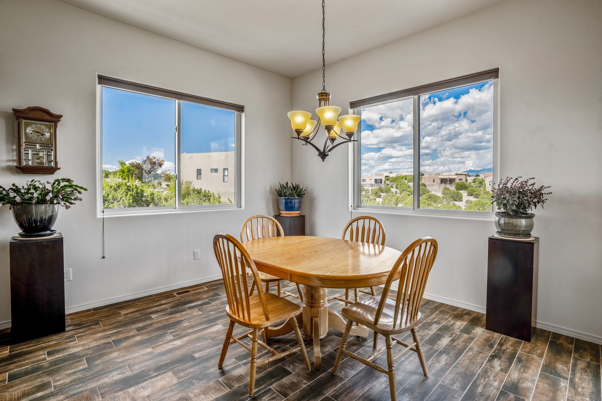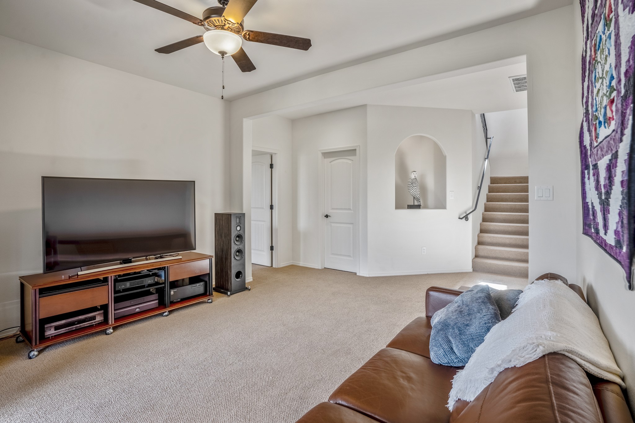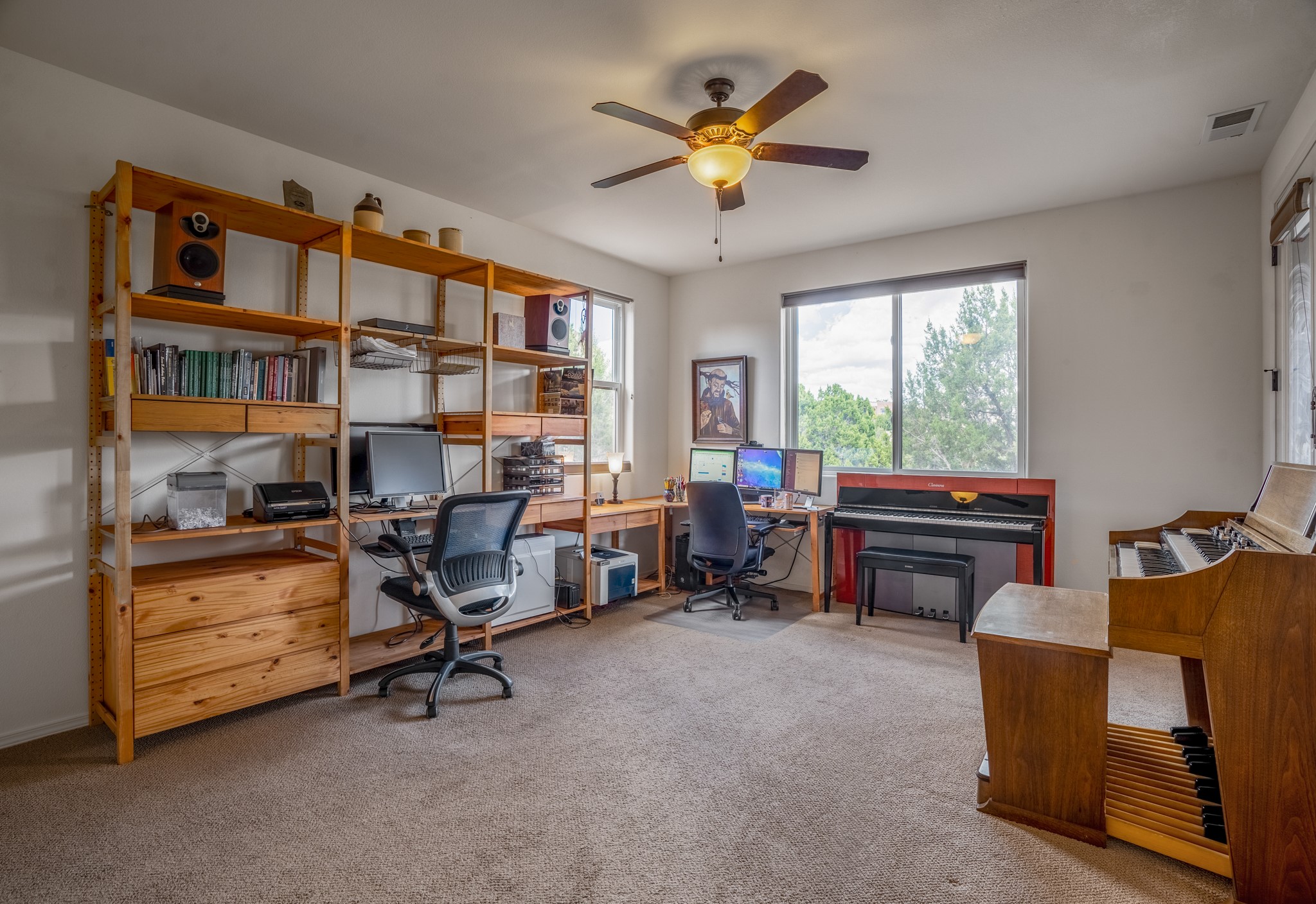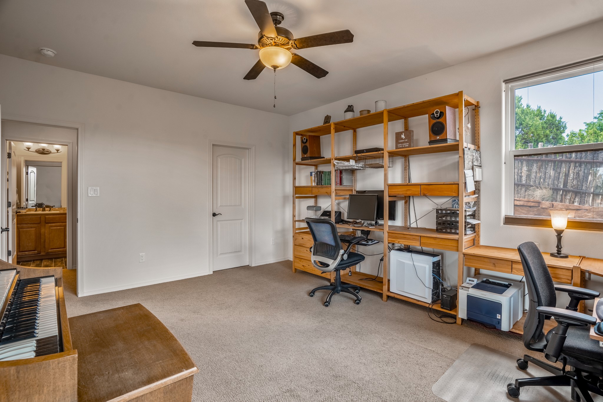 Introducing a slice of paradise with this remarkable property that offers more than just a home - it offers a lifestyle. Set against the breathtaking backdrop of the Sangre de Cristo mountains, the living room, Primary bedroom, and deck provide an awe-inspiring view that captivates your senses and soothes your soul.Unveil the beauty of open space as you gaze beyond the rear of your residence to the distant houses, creating a sense of privacy that is truly special. Embrace the outdoors with an exceptional trail system that weaves its way through the neighborhood and extends to the enchanting realm of Aldea and beyond. Each morning, embark on a unique journey as you explore these trails, ensuring that no two walks are alike within a week.Every detail has been carefully considered to enhance your living experience. Say goodbye to the hassle of propane gas tanks - a natural gas outlet on the deck ensures endless grilling sessions without interruption. As the deck faces east, indulge in the cooler shade during evening grilling sessions and relish delightful dinners on the deck throughout the summer season.Nestle by the warmth of the gas kiva fireplace on winter nights, creating an unparalleled coziness perfect for intimate gatherings and cherished moments. Storage will never be a concern with an oversized garage that provides ample space for all your belongings. Discover convenience in every corner, as walk-in closets grace each bedroom, while the closet under the stairs - affectionately known as the "Harry Potter" closet - offers even more storage options.Hosting guests is a breeze in the junior master bedroom, offering them a retreat of their own, complete with an en-suite bathroom for added comfort. Sliding doors lead to a back portal, allowing them to bask in the beauty of the outdoors while maintaining their privacy.