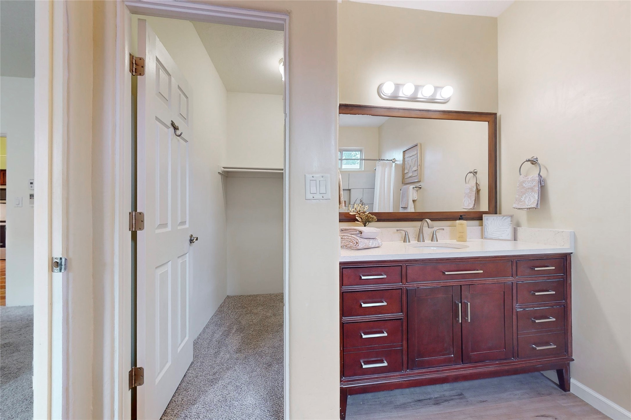 Light, Bright and just right! This corner lot home features an open concept floor plan with soaring 11 foot ceilings in the living room and updated kitchen and baths. This move in ready, easy-care home features a primary suite with walk-in closet, a guest bedroom plus an office! Radiant in-floor heat with mini splits throughout for both heating and cooling. The kitchen features solid surface quartz countertops and the major appliances are just three years old! Enjoy privacy in the walled back yard and the convenience of the attached two car garage offering additional room for a workshop with plenty of storage! Easy to show, please schedule in ShowingTime or call listing brokers directly!