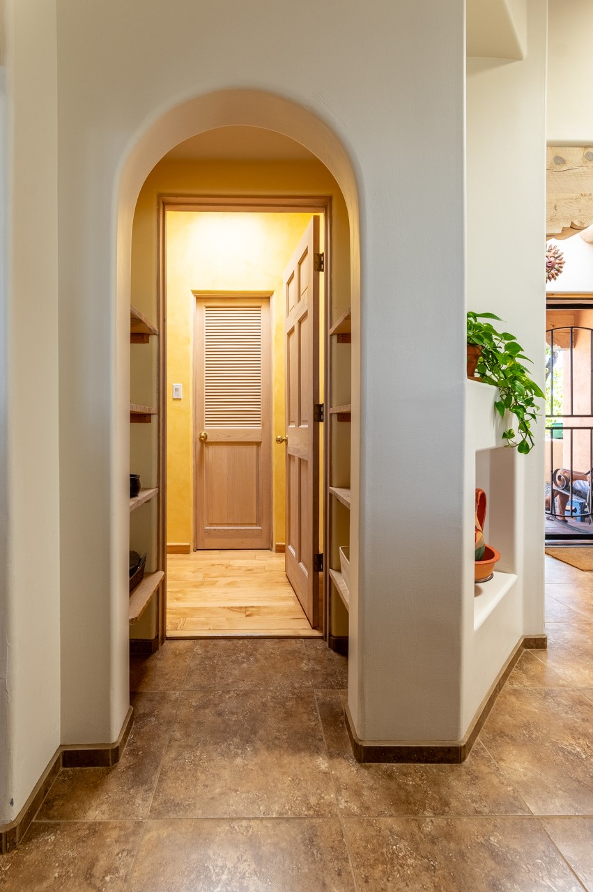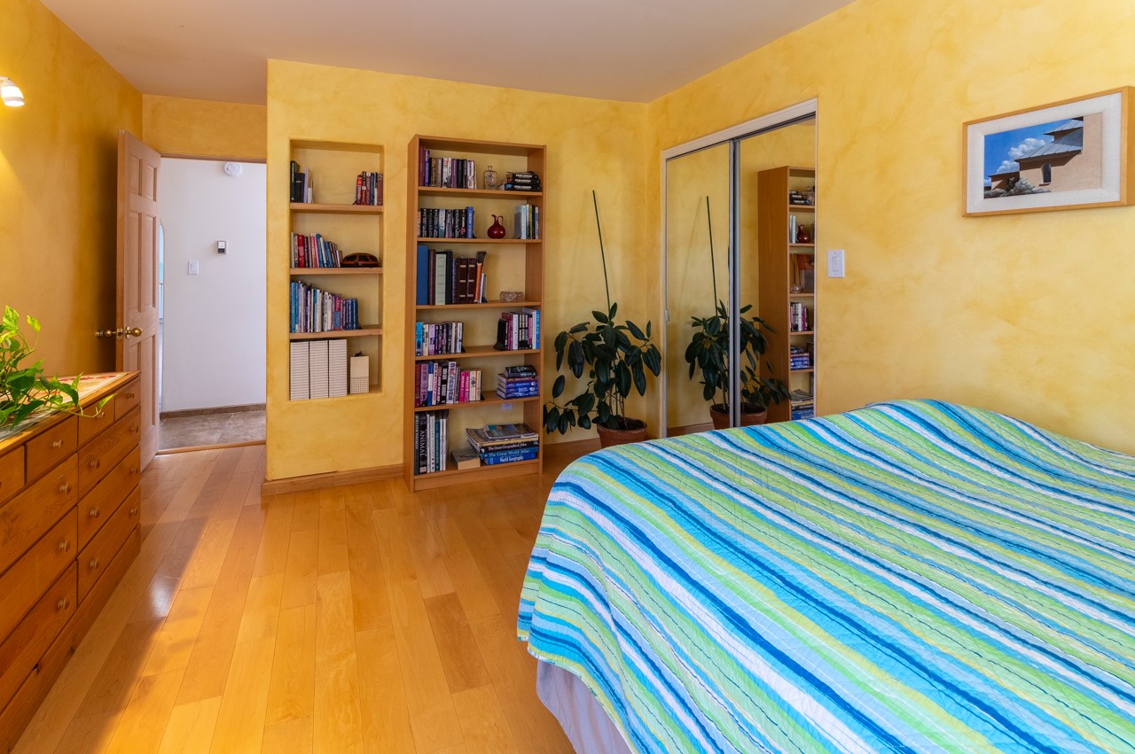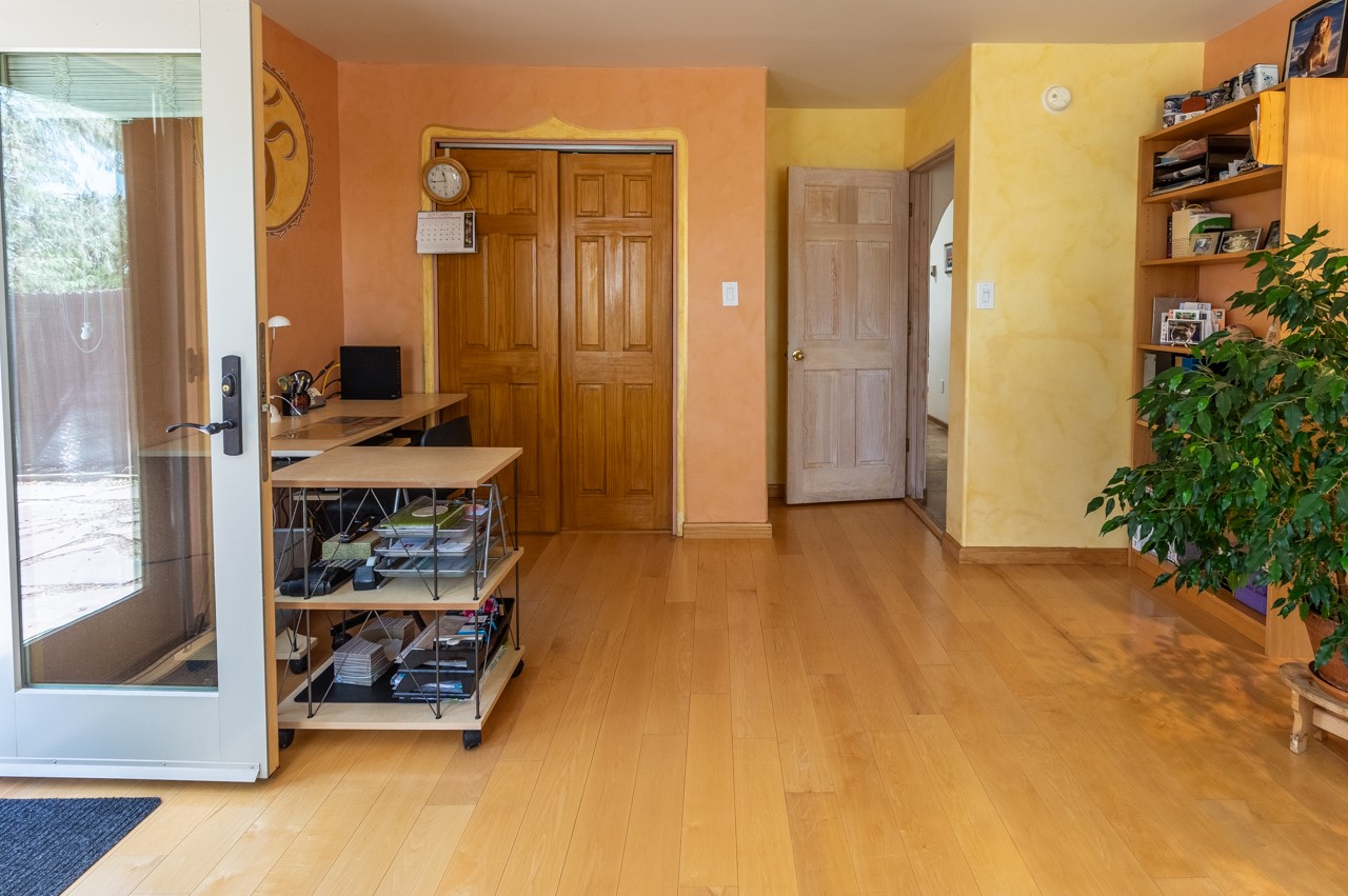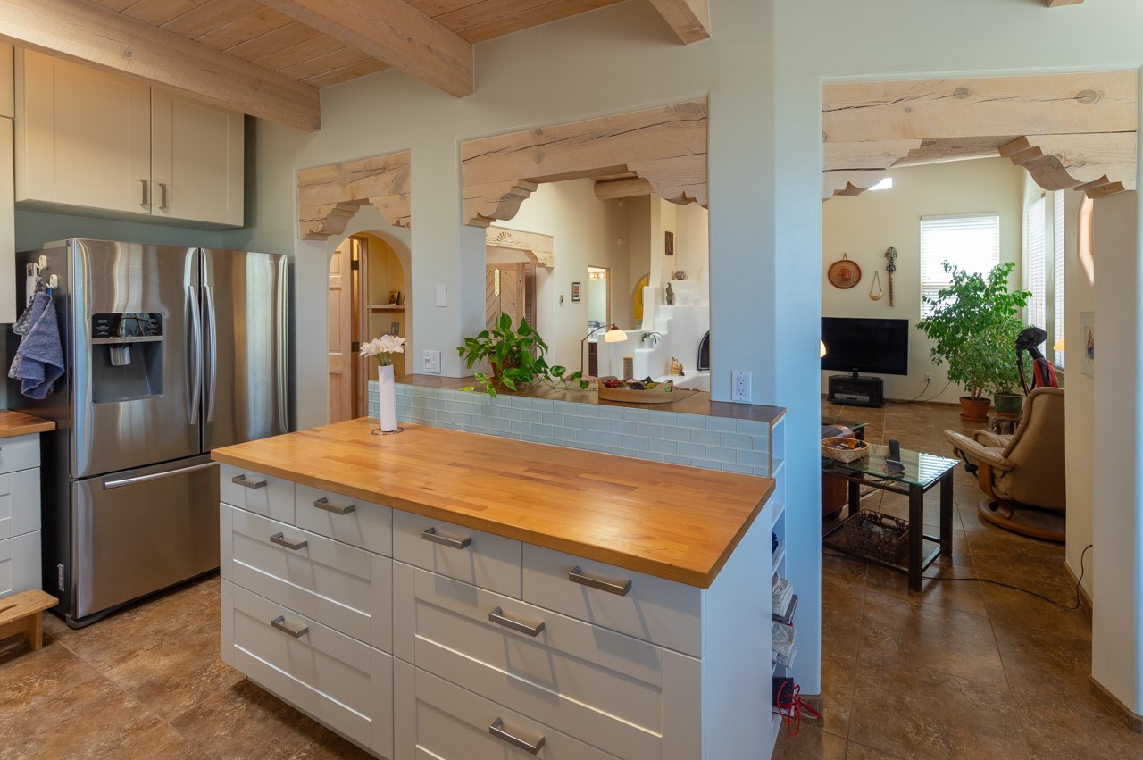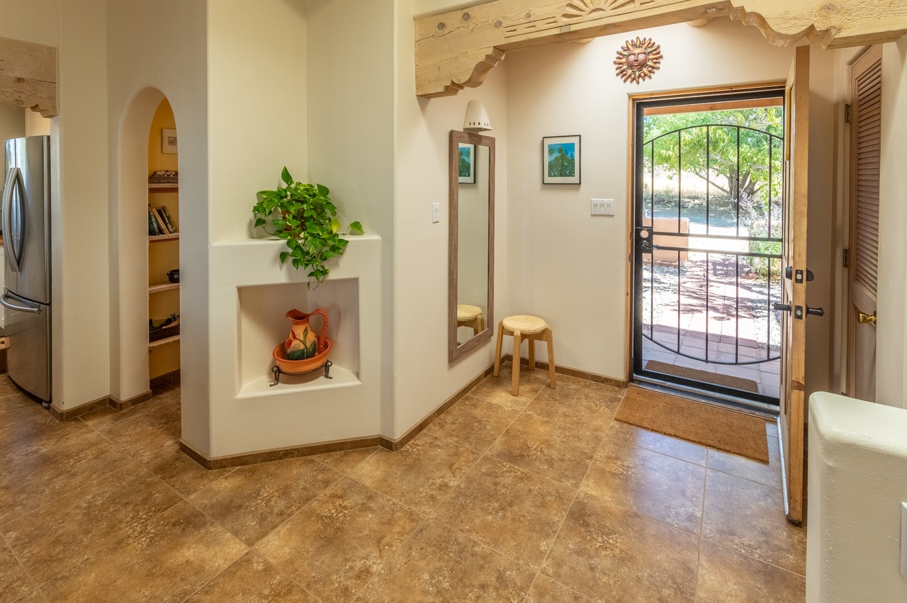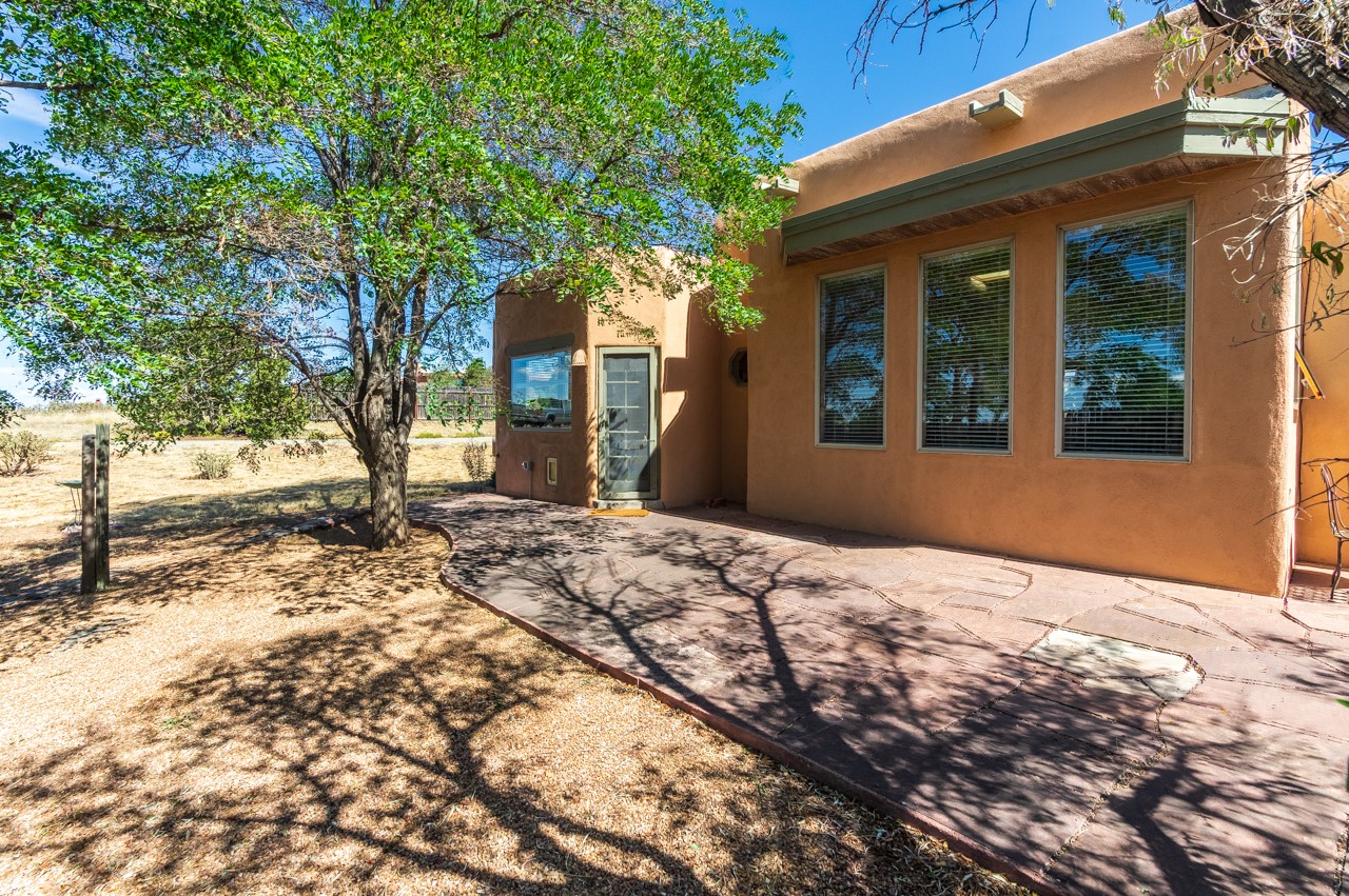 Charming home move-in ready. Light and bright with a high ceiling in the main living room, kiva fireplace, and open to the kitchen. The kitchen is very inviting along with the eat-in dining space. The primary bedroom is oversized with a beautifully remodeled bath area and door to the backyard. The second bedroom is nicely sized and also has a door to the back and is set up currently as an office and exercise area. The third bedroom is cozy for guests and the hall bath has also been beautifully remodeled. The hall to the two-car garage has a stacked washer and dryer. The oversized garage has a workbench and closet containing the heating and hot water heater. The backyard facing the sunset is partially fenced for privacy and could be totally enclosed for pets.