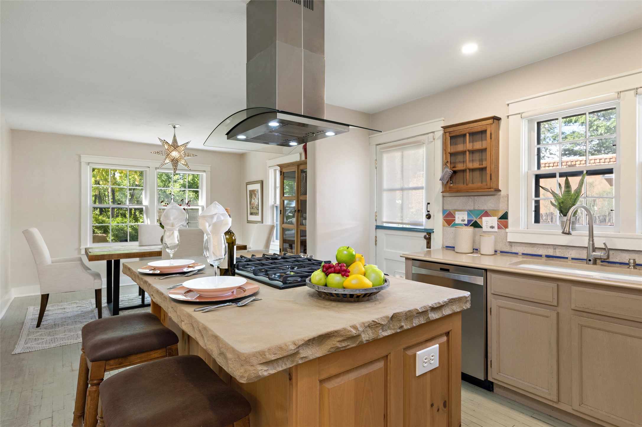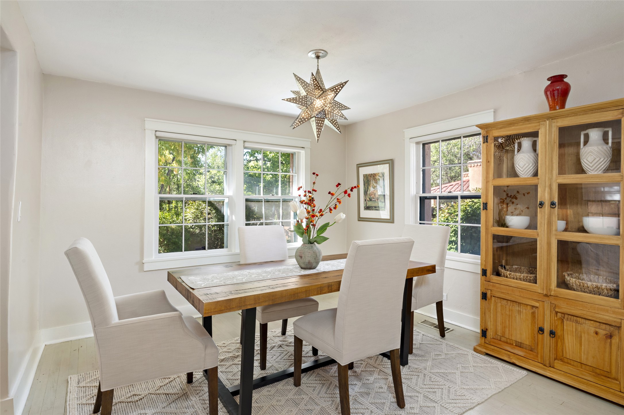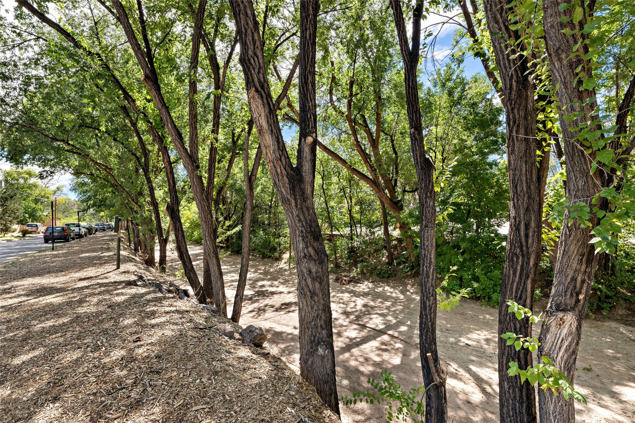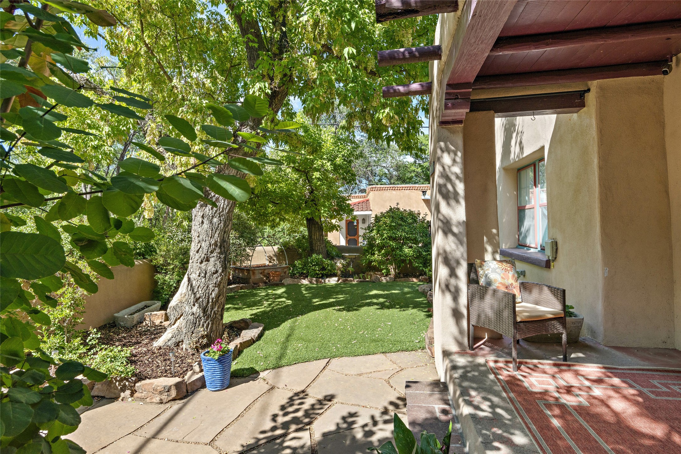 Charming 1945 adobe free-standing-bungalow-style 1210 sq ft condo w/2 bdrm/1 bath in the historic St. Catherine's neighborhood across from the beautiful tree-lined Arroyo Mascaras. Located on the corner of Rosario Boulevard and Del Norte Lane, this much-loved home is being parted with by out-of-state seller after only 4-yr ownership. The largest of 3 condos in the Tres Rosarios Condominium Assoc is being offered "as is" and furnishings belonging to owner and/or stager are available for purchase via separate bill of sale. Accessed from either Griffin, Old Taos Hwy or the Historic Santa Fe Foundation El Puente De Los Hidalgos "Bridge of the Noblemen" built 1920 that originally served as part of State Hwy 487 and US Hwy 64 as the connection between the state capitol and towns to the north. Friendly neighborhood environment, easy one-half mile walking distance to Plaza and 2 deeded parking spaces immediately behind.