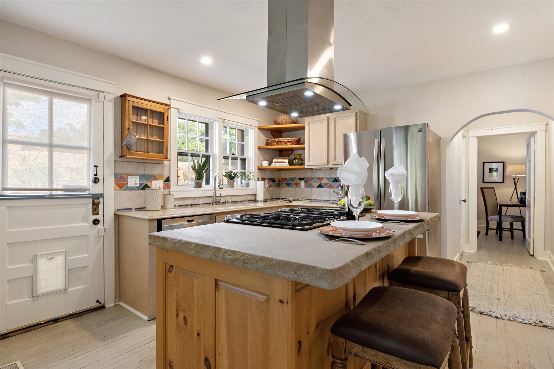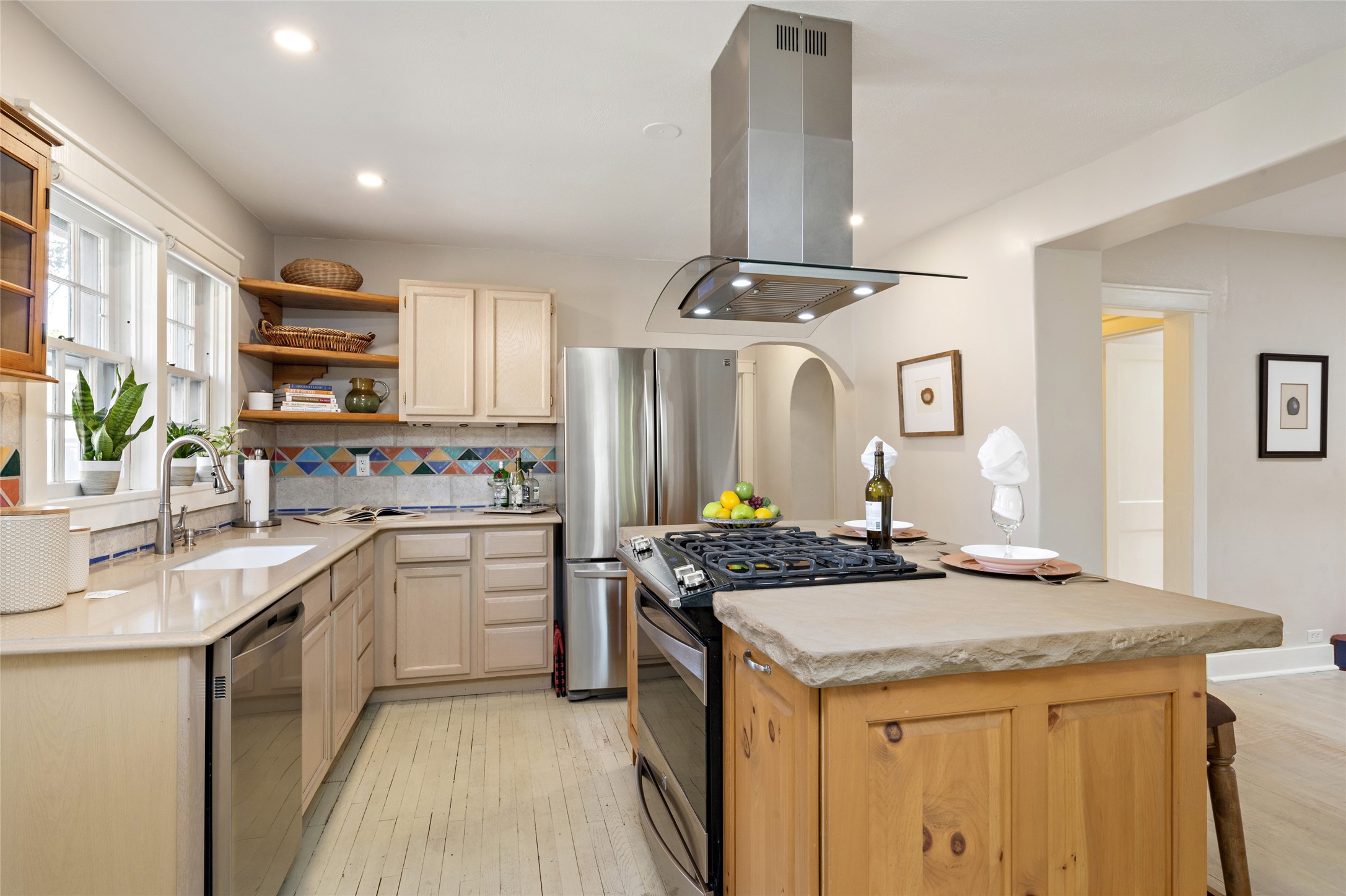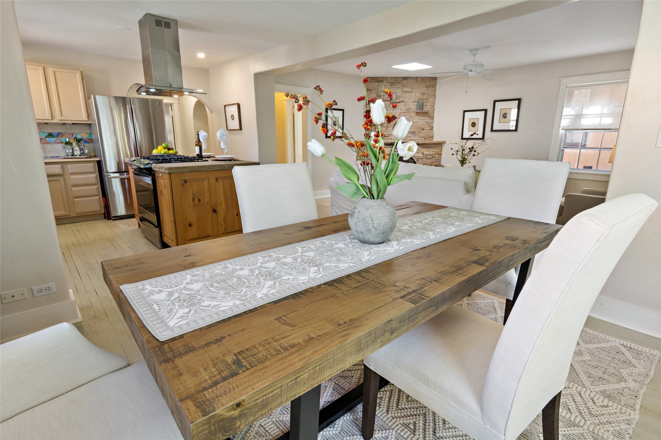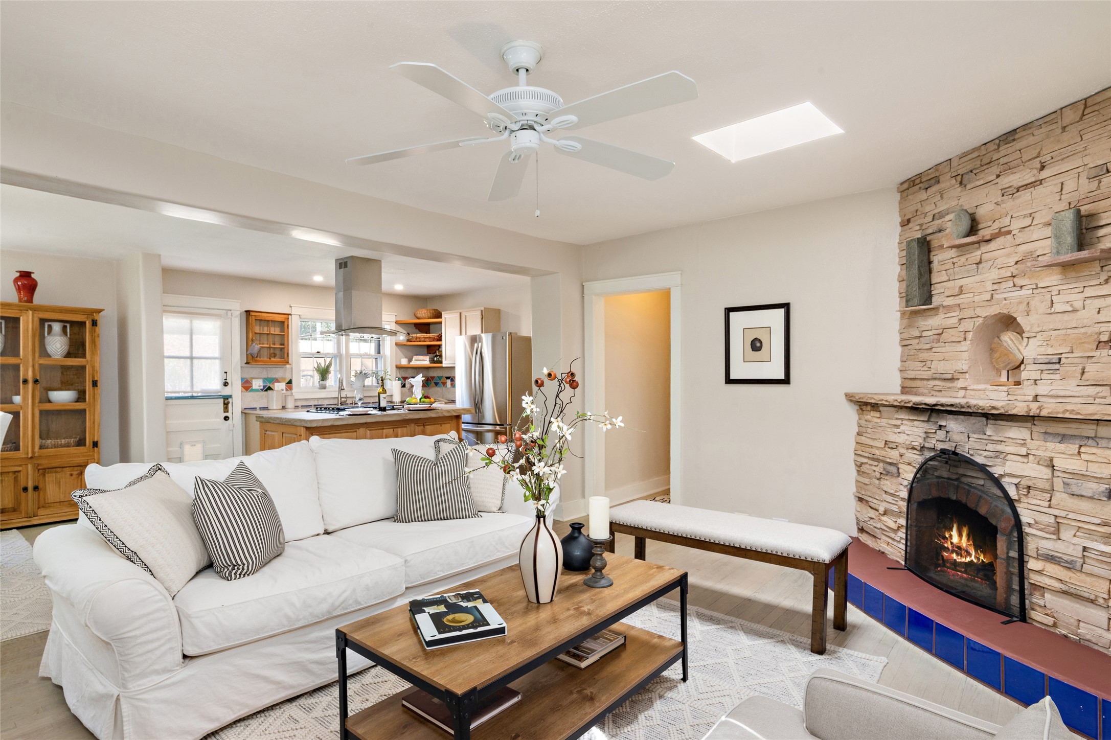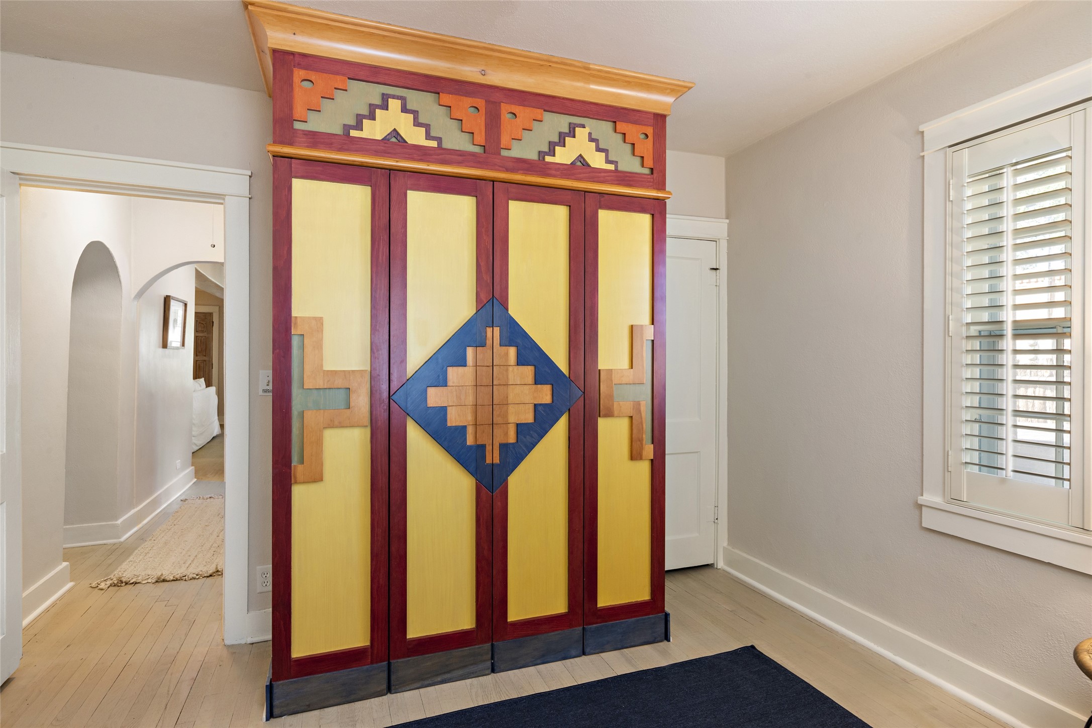 Charming 1945 adobe free-standing-bungalow-style 1210 sq ft condo w/2 bdrm/1 bath in the historic St. Catherine's neighborhood across from the beautiful tree-lined Arroyo Mascaras. Located on the corner of Rosario Boulevard and Del Norte Lane, this much-loved home is being parted with by out-of-state seller after only 4-yr ownership. The largest of 3 condos in the Tres Rosarios Condominium Assoc is being offered "as is" and furnishings belonging to owner and/or stager are available for purchase via separate bill of sale. Accessed from either Griffin, Old Taos Hwy or the Historic Santa Fe Foundation El Puente De Los Hidalgos "Bridge of the Noblemen" built 1920 that originally served as part of State Hwy 487 and US Hwy 64 as the connection between the state capitol and towns to the north. Friendly neighborhood environment, easy one-half mile walking distance to Plaza and 2 deeded parking spaces immediately behind.