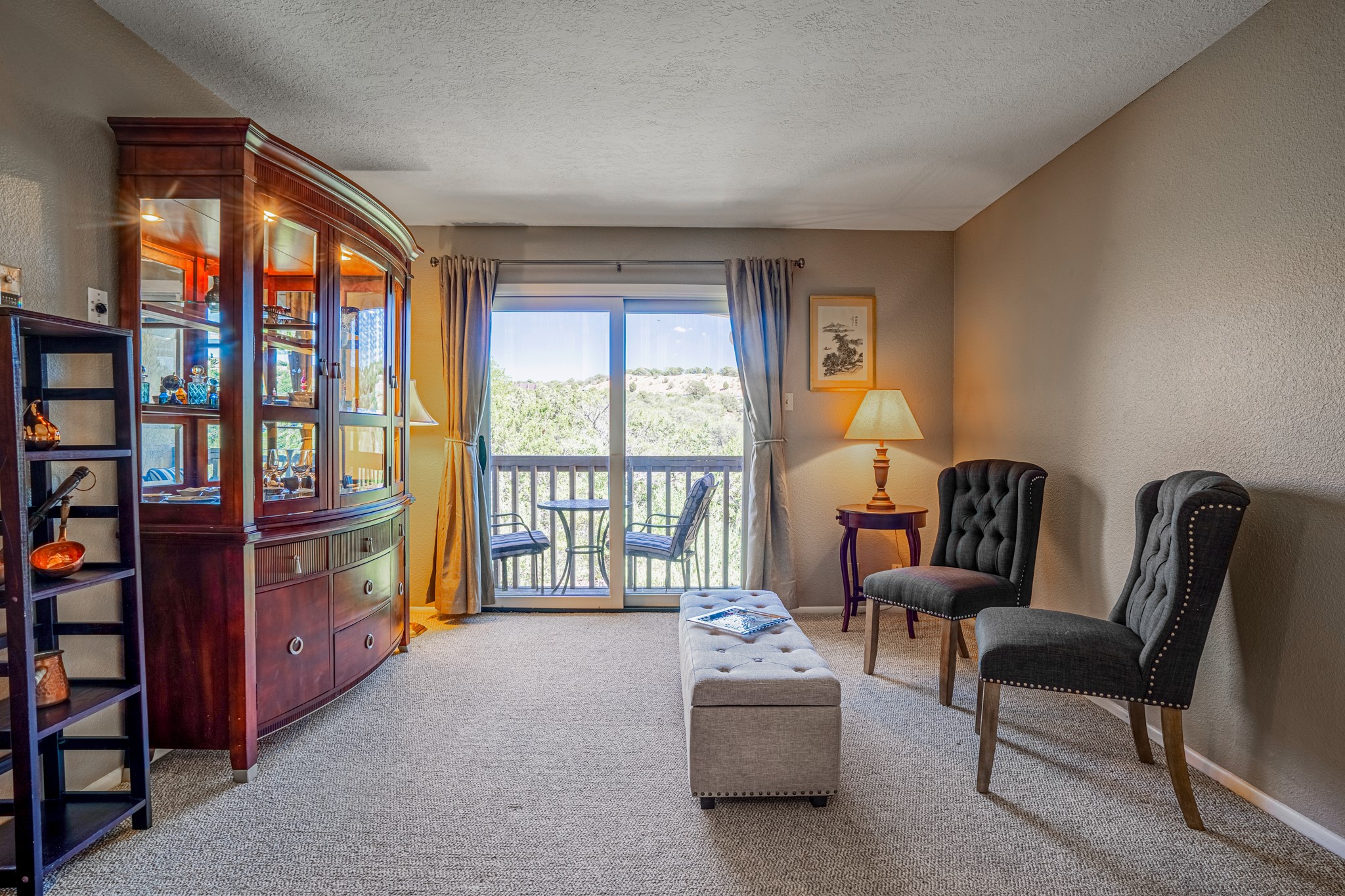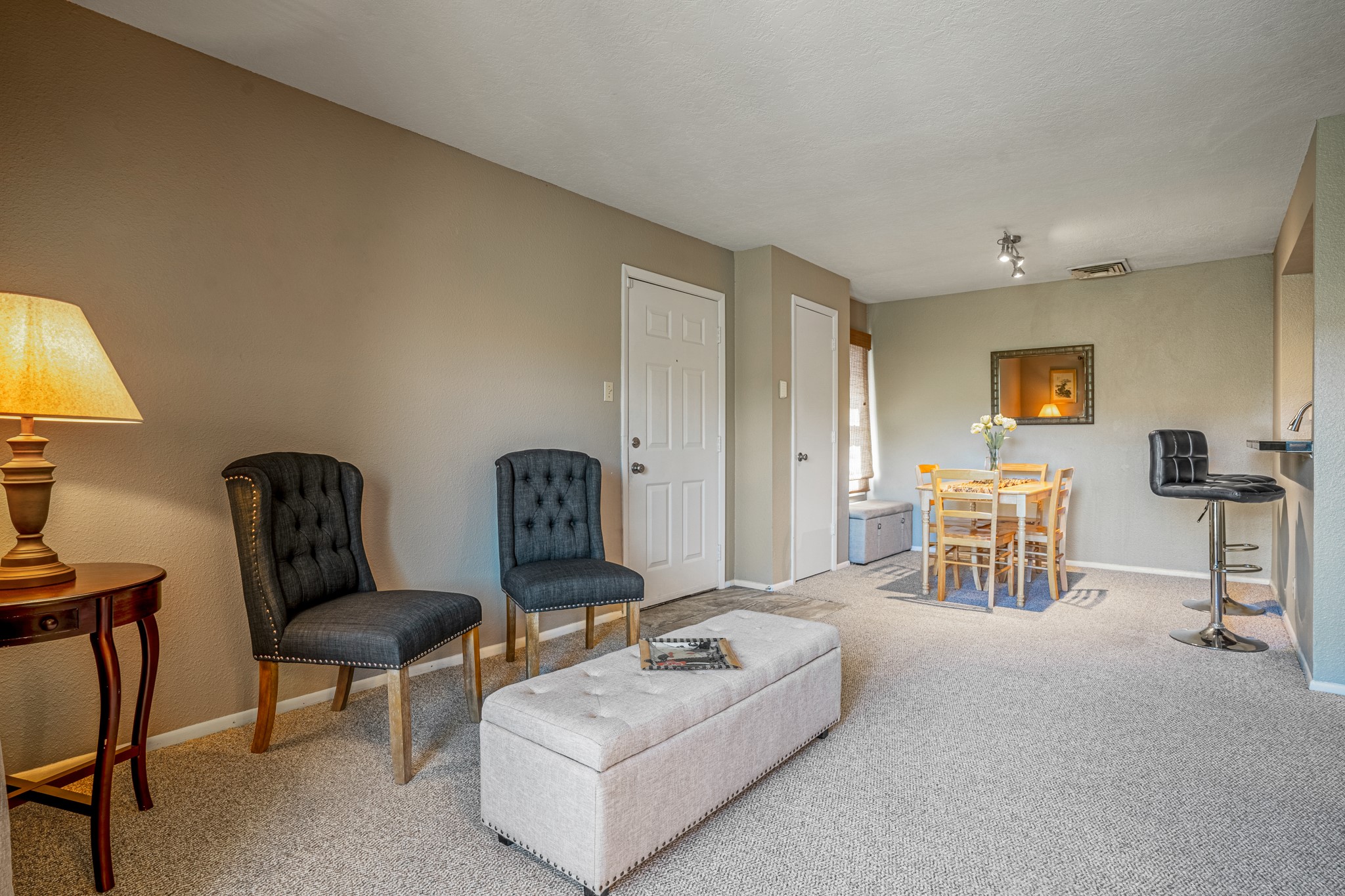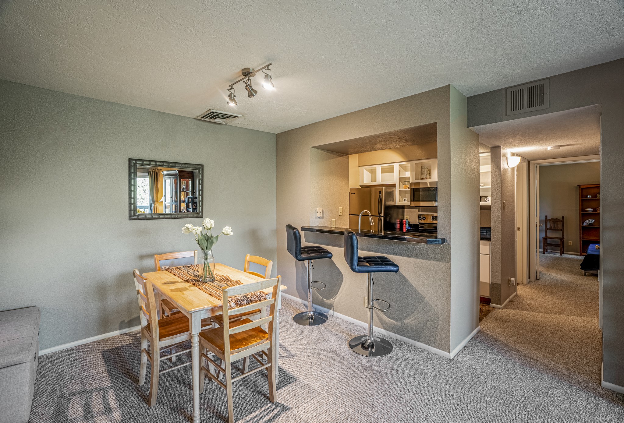 Secluded second floor condo at The Reserve. This unit includes 2 bedrooms, and 2 bathrooms over an +/- 800 sqft floorplan. Situated next to green space, privacy abounds. A bright and airy main living space enjoys direct access to the balcony, shaded in the afternoon by its eastern orientation. The owner's suite has a walk-in closet and private bathroom. The guest bedroom, which can easily double as an office, has a remarkable amount of storage space. Crisp and clean with newer paint and appliances, recently updated cabinets, professionally cleaned carpet, and stone countertops, this condo is move-in ready. Other features include a hallway bath, central heating & evaporative cooling. This unit is offered fully furnished for an additional cost. Community amenities at this well-maintained, gated compound include laundry facilities, club house, gym, year-round heated swimming pool, and grilling stations throughout. Ideally located near the entrance of The Reserve, a very short distance to the pool area, has quick access to 84/285 and 599, and is only minutes from downtown dining, shopping, and entertainment. Please see agent remarks for additional information. *Property details as provided by Seller(s) and/or Condo Manager.