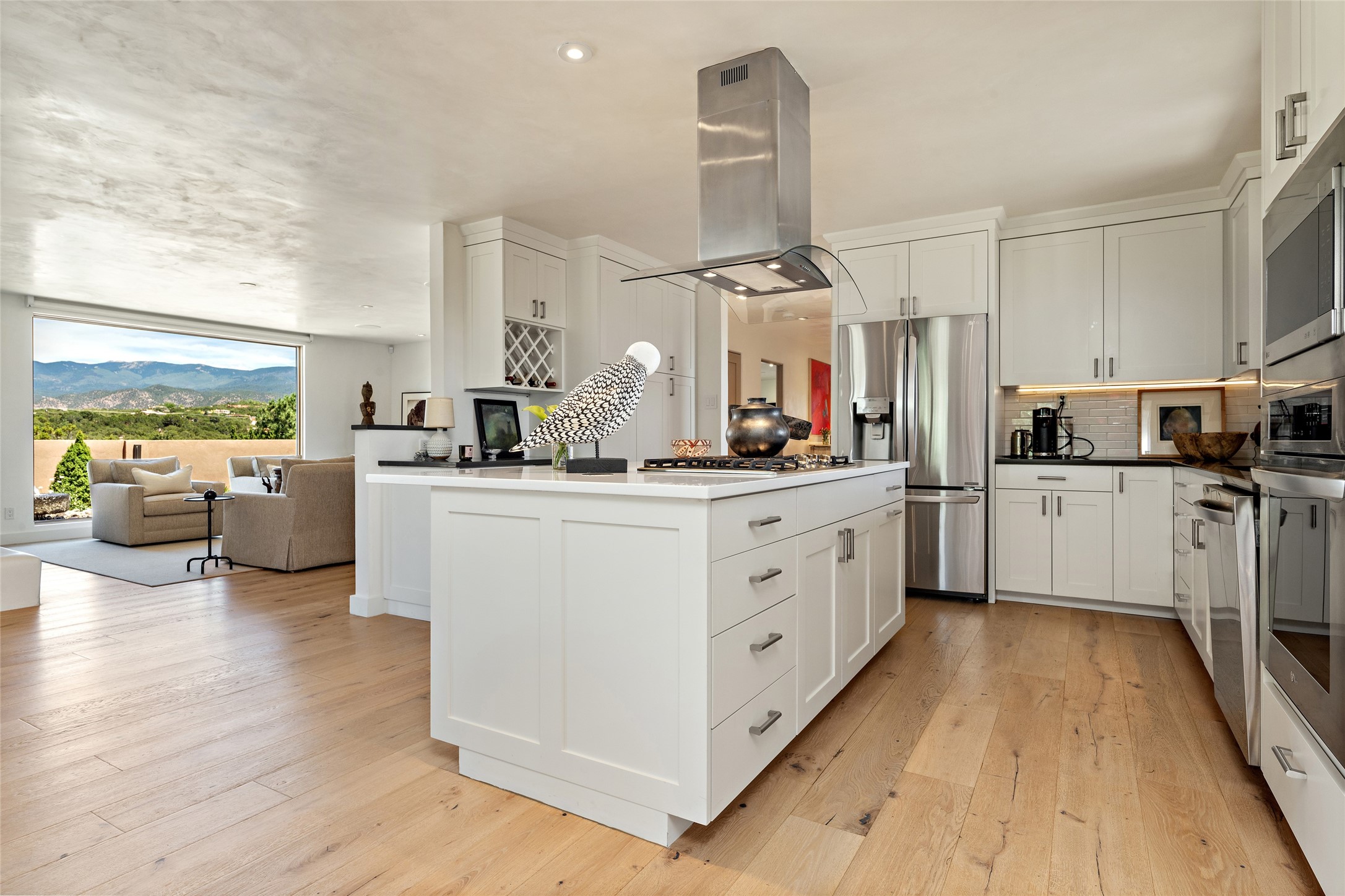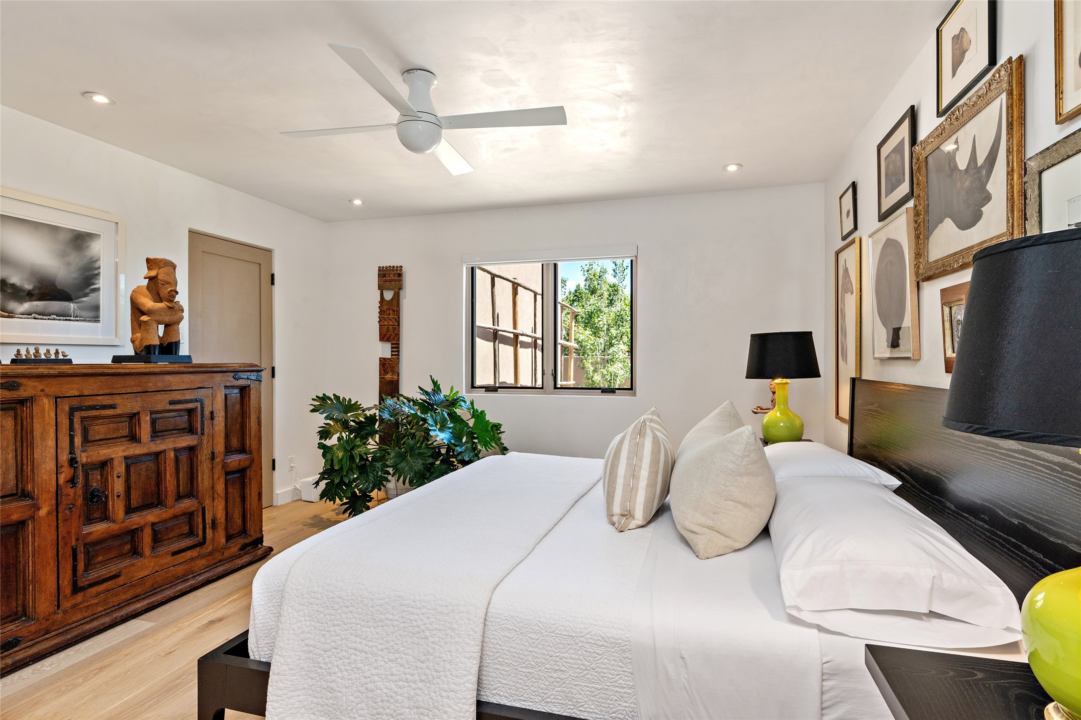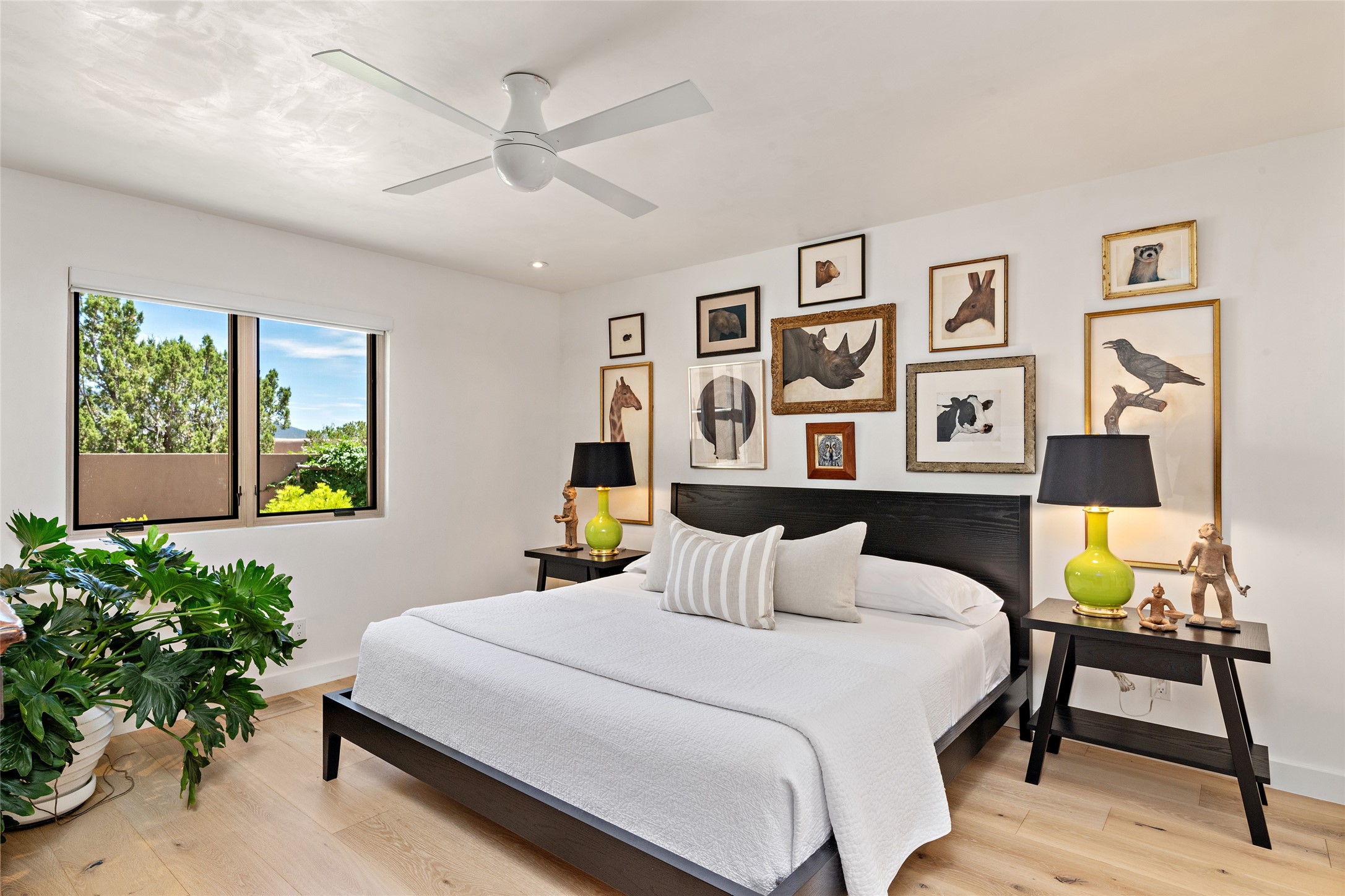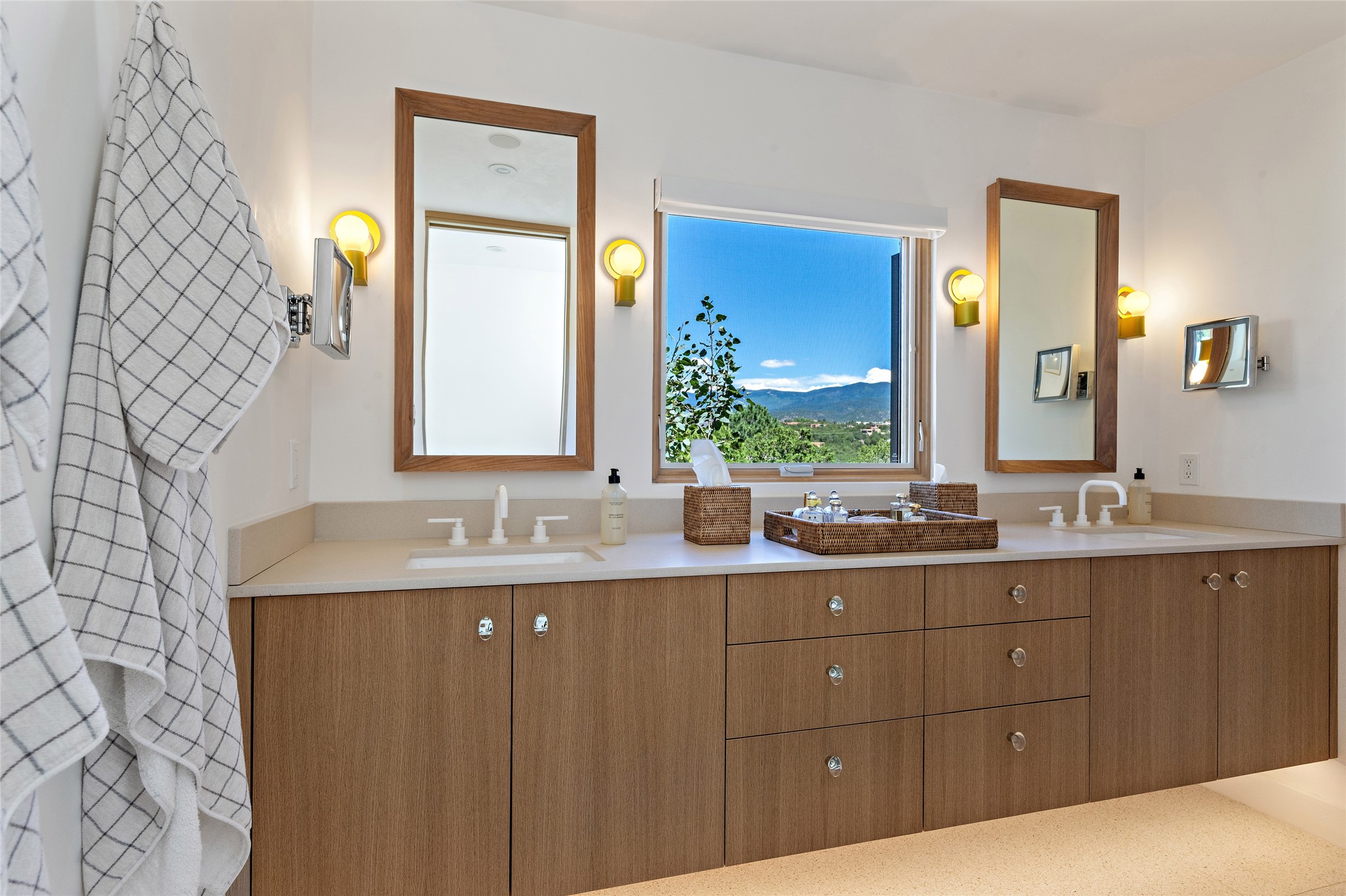 If you're looking for an immaculate, soft contemporary home with jaw dropping mountain views and only minutes to the Plaza, look no further ! Located on the Northside, on a quiet cul-de-sac, this open one-level home has undergone an extensive renovation and has a just completed luxurious new primary bedroom suite with a steam shower and an outside shower ! Designed by top interior designers for their own home nothing was spared in creating a stunning yet comfortable living space. It's like a brand new home with new systems and features including heating and air conditioning, the roof, the kitchen island, cabinetry and appliances, 2 gas fireplaces, Mediterranean wood floors, plaster walls and ceilings, new bathrooms, a large picture window in the great room taking in the mountain views and much more. This is a home to enjoy either on your own or with your guests. Other substantial improvements on the one-acre lot include a gated entry at the street, paved driveway, yard walls around the house and extensively landscaped and irrigated grounds. Well suited for entertaining, the mountain view side of the house has an entertaining portal with a gas fire pit. Beauty, carefree living, quality and style await a new owner!