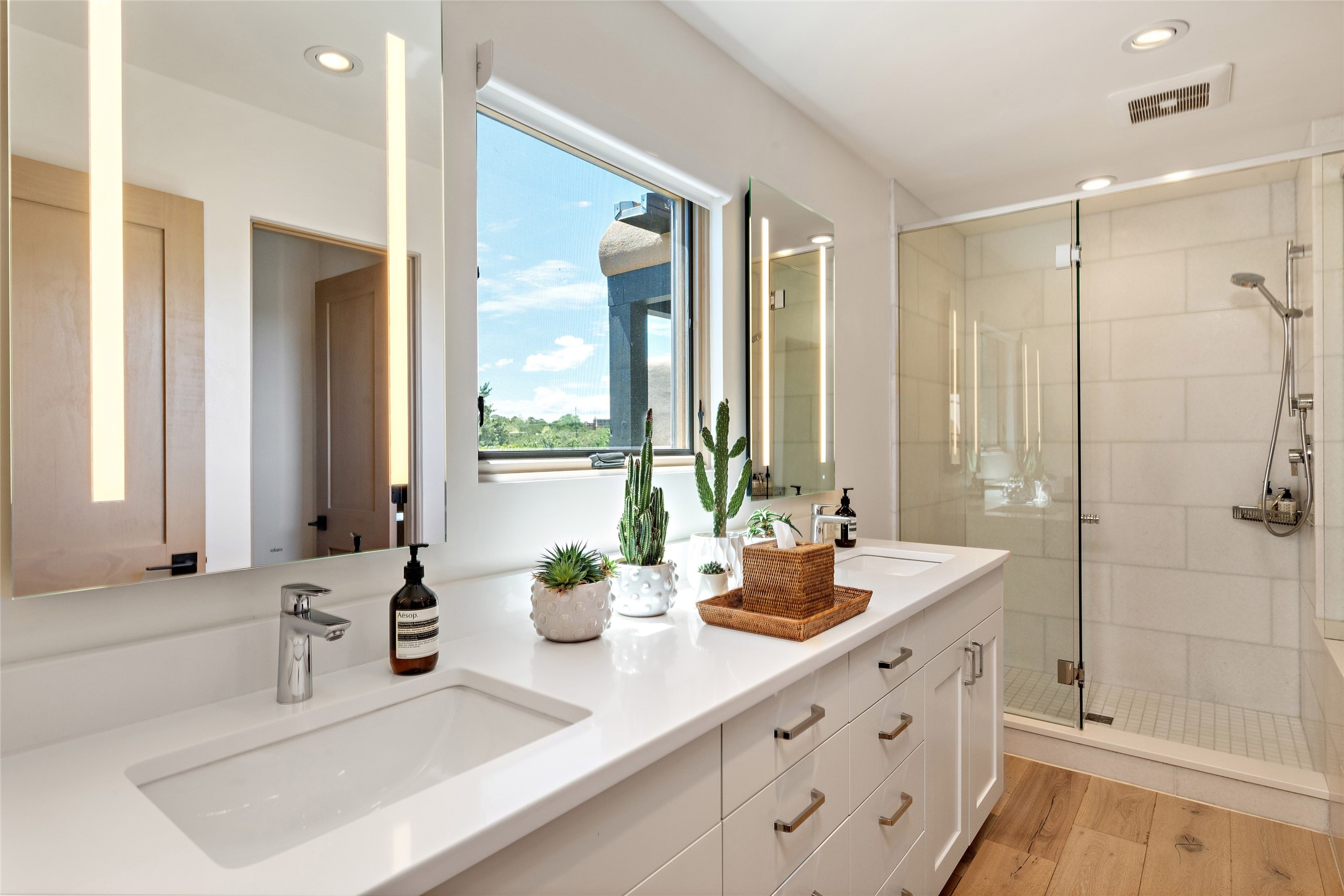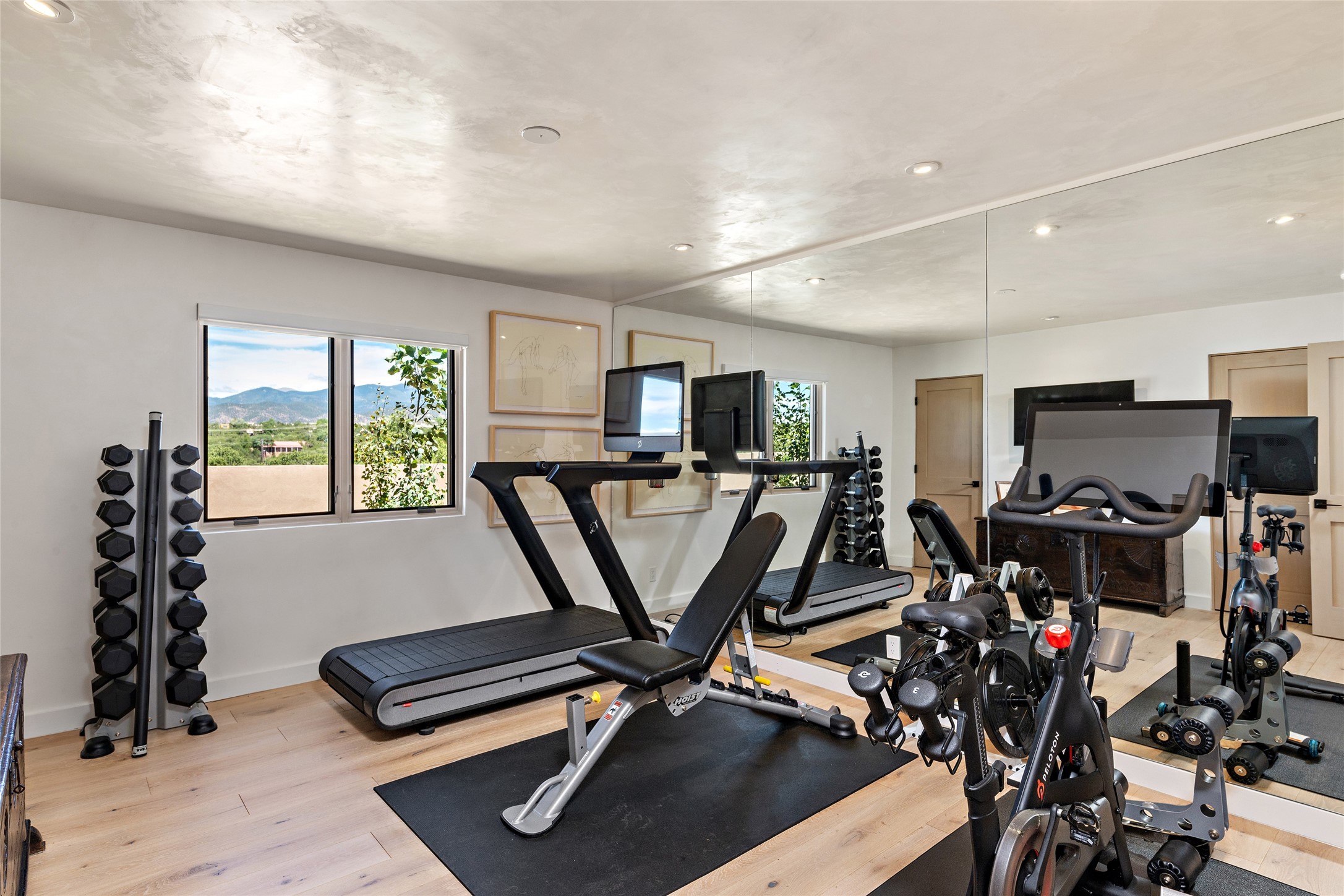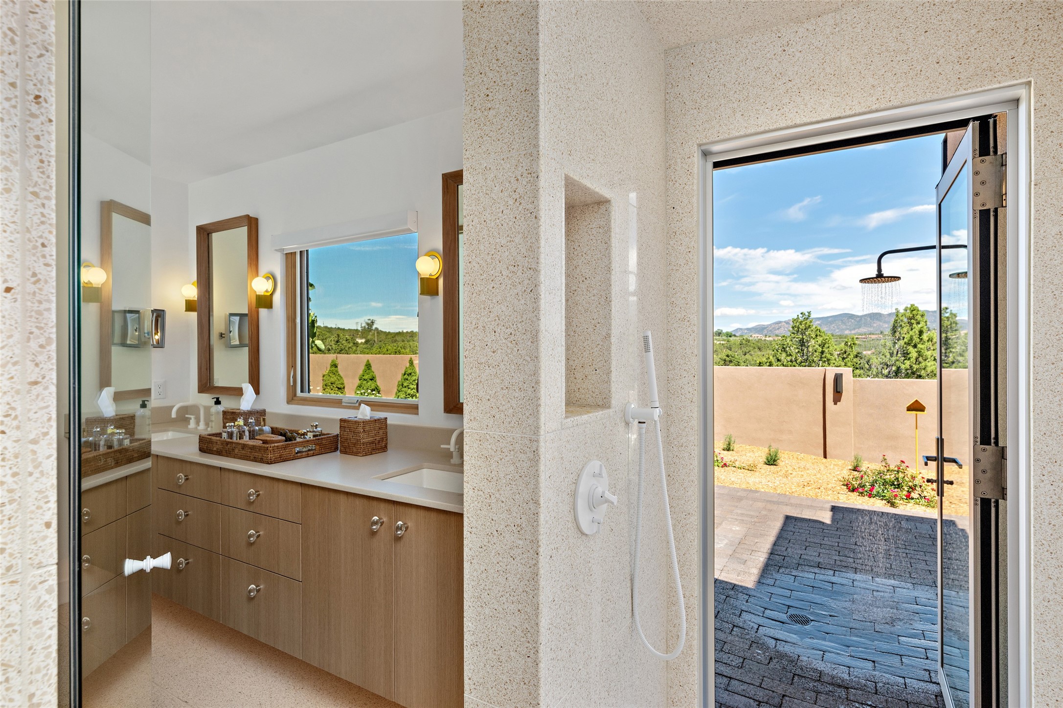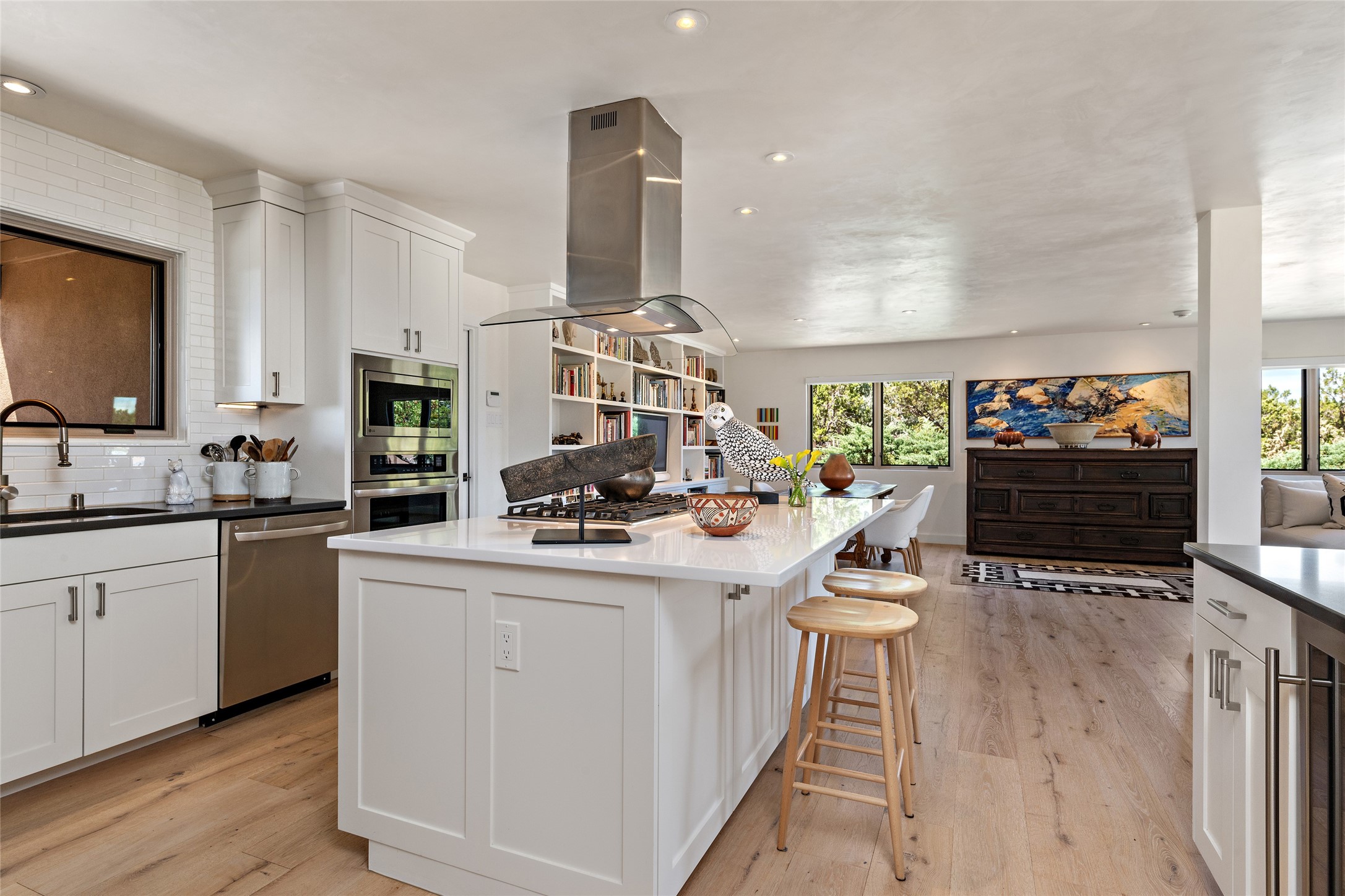 If you're looking for an immaculate, soft contemporary home with jaw dropping mountain views and only minutes to the Plaza, look no further ! Located on the Northside, on a quiet cul-de-sac, this open one-level home has undergone an extensive renovation and has a just completed luxurious new primary bedroom suite with a steam shower and an outside shower ! Designed by top interior designers for their own home nothing was spared in creating a stunning yet comfortable living space. It's like a brand new home with new systems and features including heating and air conditioning, the roof, the kitchen island, cabinetry and appliances, 2 gas fireplaces, Mediterranean wood floors, plaster walls and ceilings, new bathrooms, a large picture window in the great room taking in the mountain views and much more. This is a home to enjoy either on your own or with your guests. Other substantial improvements on the one-acre lot include a gated entry at the street, paved driveway, yard walls around the house and extensively landscaped and irrigated grounds. Well suited for entertaining, the mountain view side of the house has an entertaining portal with a gas fire pit. Beauty, carefree living, quality and style await a new owner!