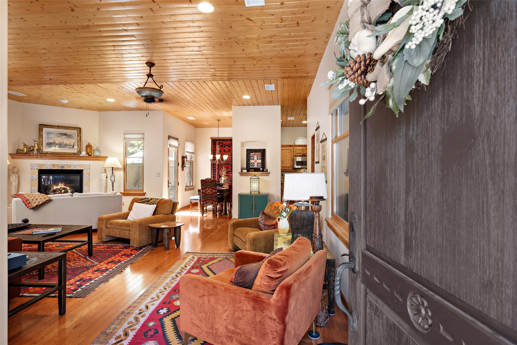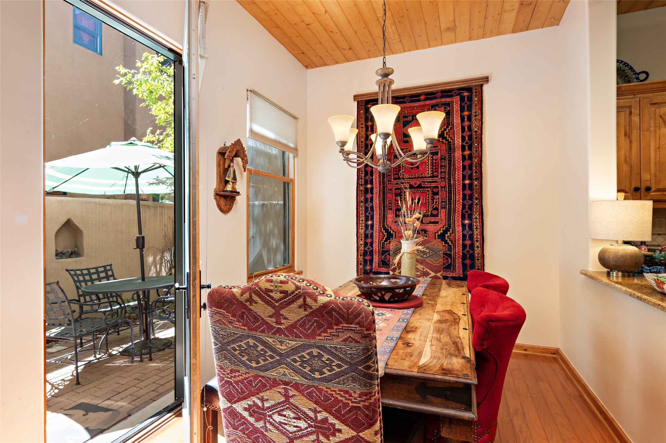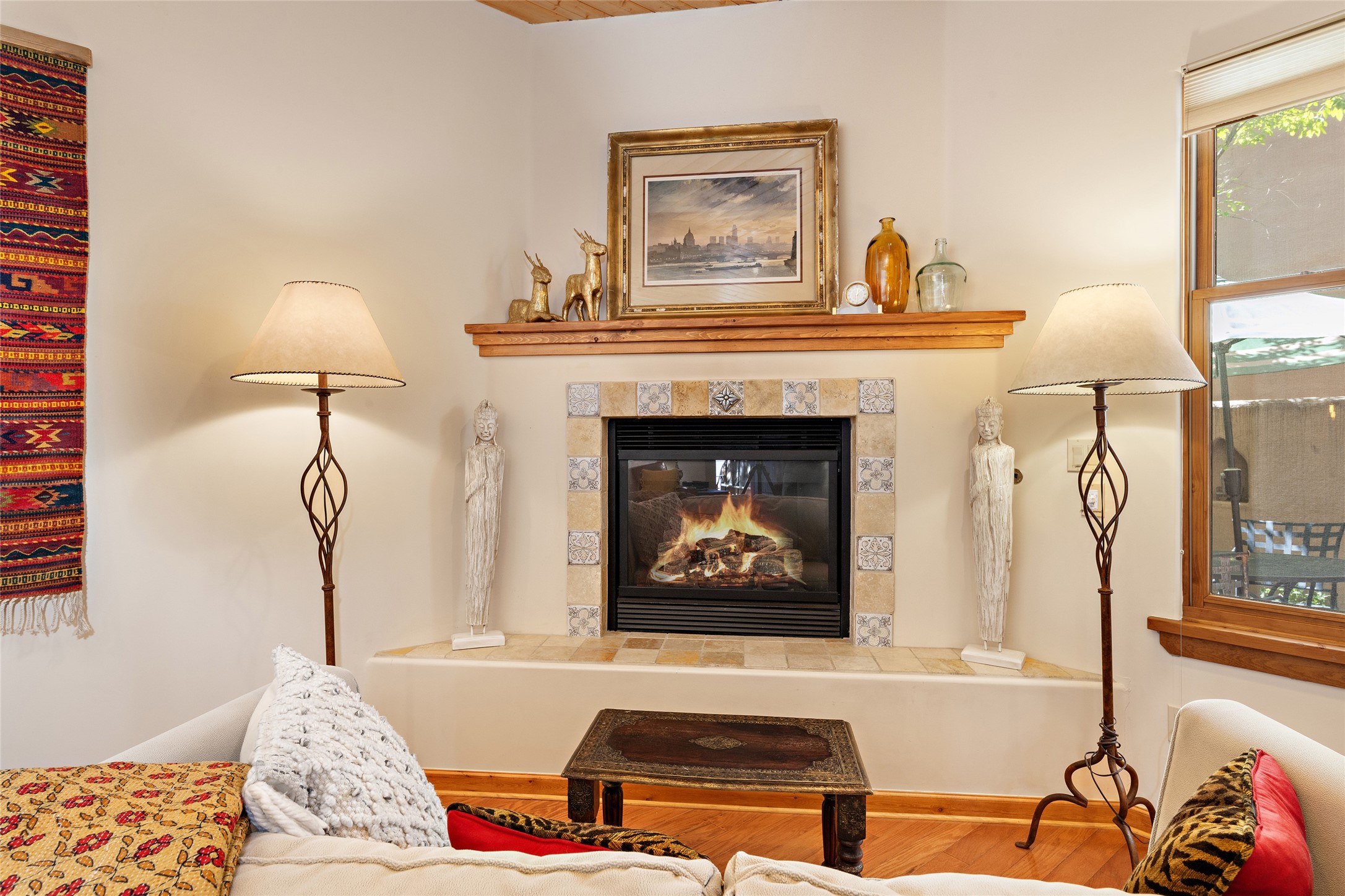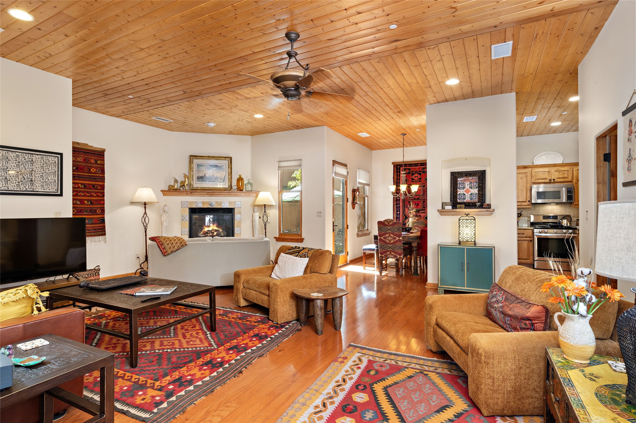 Lovely Railyard condo has current features: wood floors, granite, jetted soaker tub, 10-foot ceilings, AC, gas fireplace, high-end gas range, new water heater (1 year), walk-in pantry, four outdoor areas; all just a short 8-minute stroll to the Farmers Market and Guadalupe Street--rare two off-street parking spaces and coyote fencing. There is also a furniture package available. HOA fee also covers grounds, drip system, exterior lighting, and insurance for the maintenance of the exterior of the Condo.