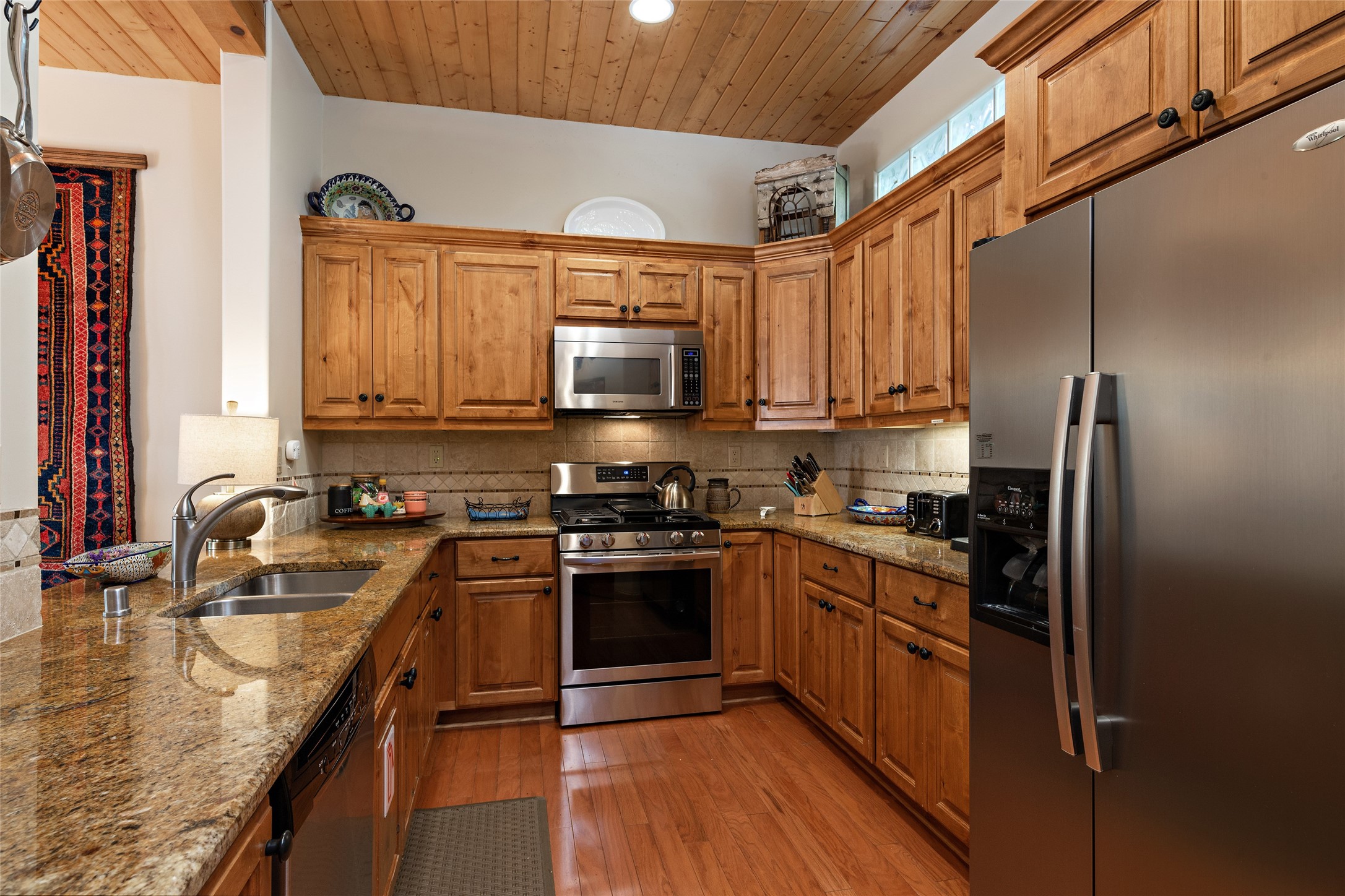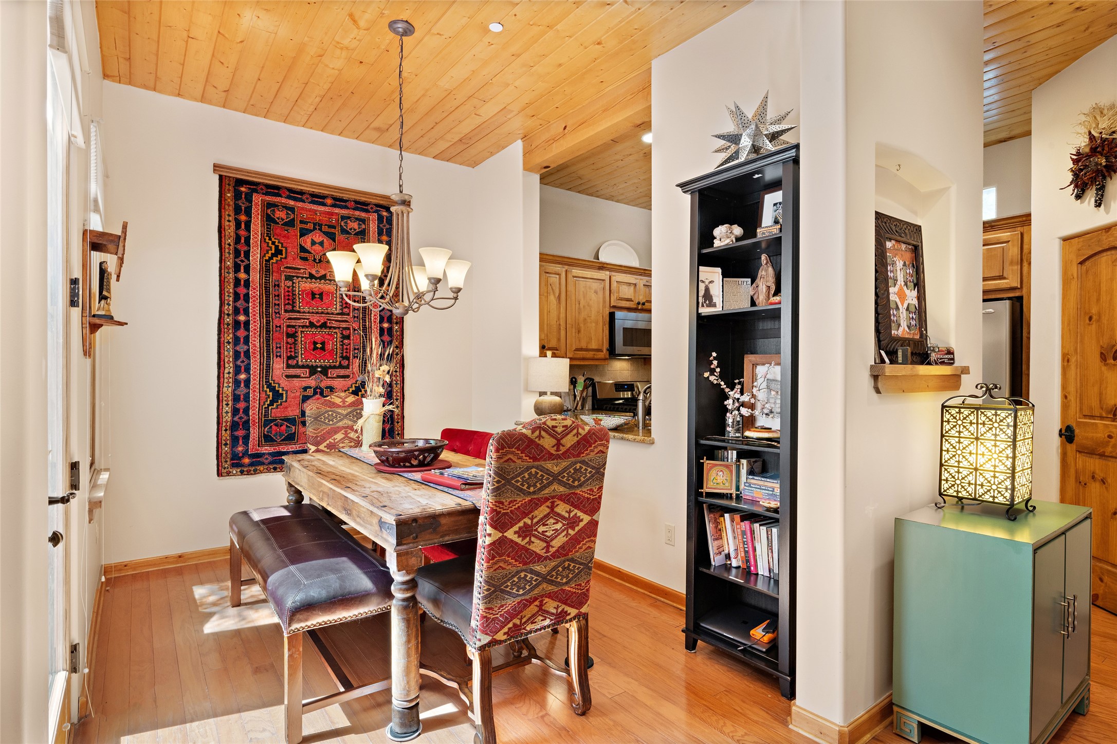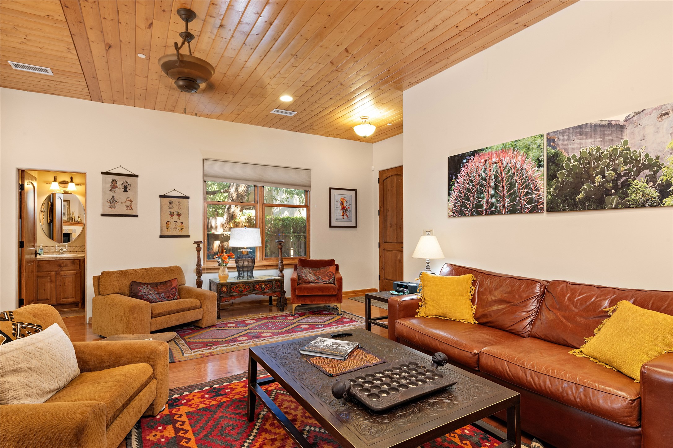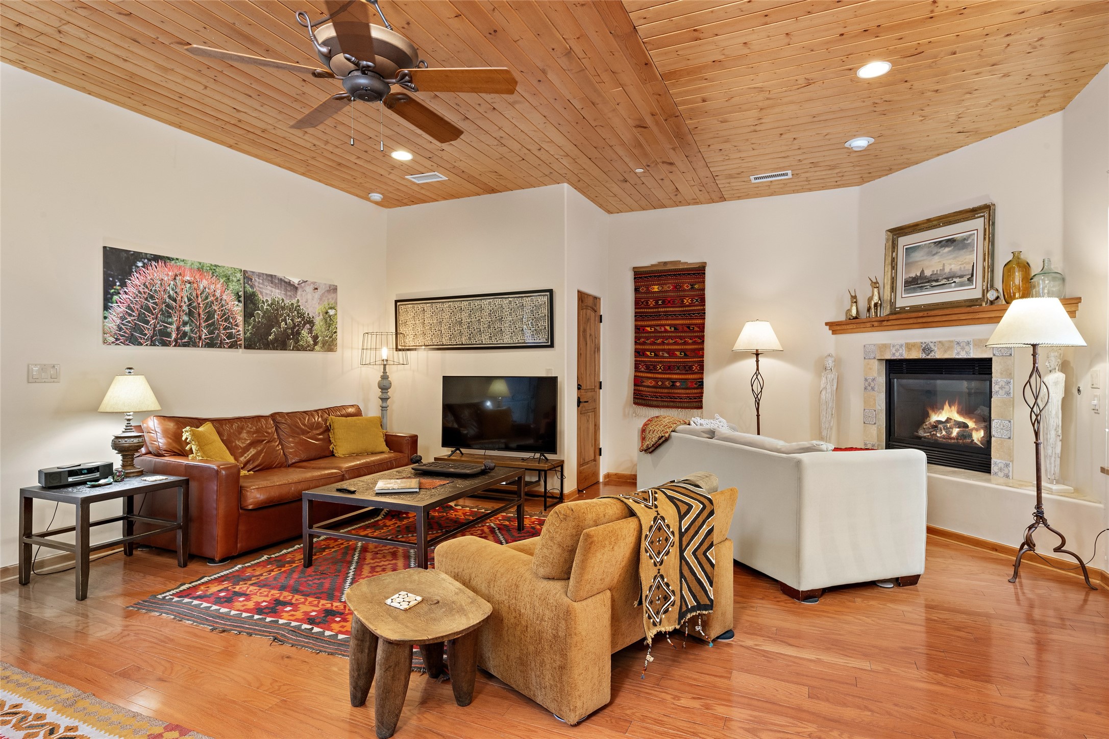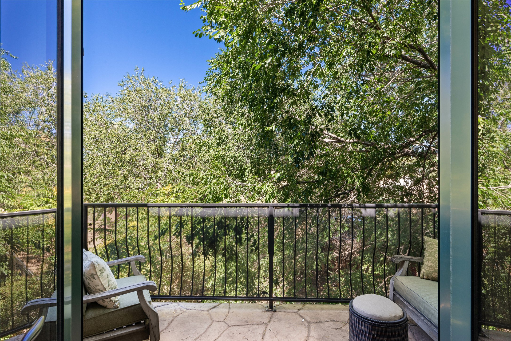 Lovely Railyard condo has current features: wood floors, granite, jetted soaker tub, 10-foot ceilings, AC, gas fireplace, high-end gas range, new water heater (1 year), walk-in pantry, four outdoor areas; all just a short 8-minute stroll to the Farmers Market and Guadalupe Street--rare two off-street parking spaces and coyote fencing. There is also a furniture package available. HOA fee also covers grounds, drip system, exterior lighting, and insurance for the maintenance of the exterior of the Condo.