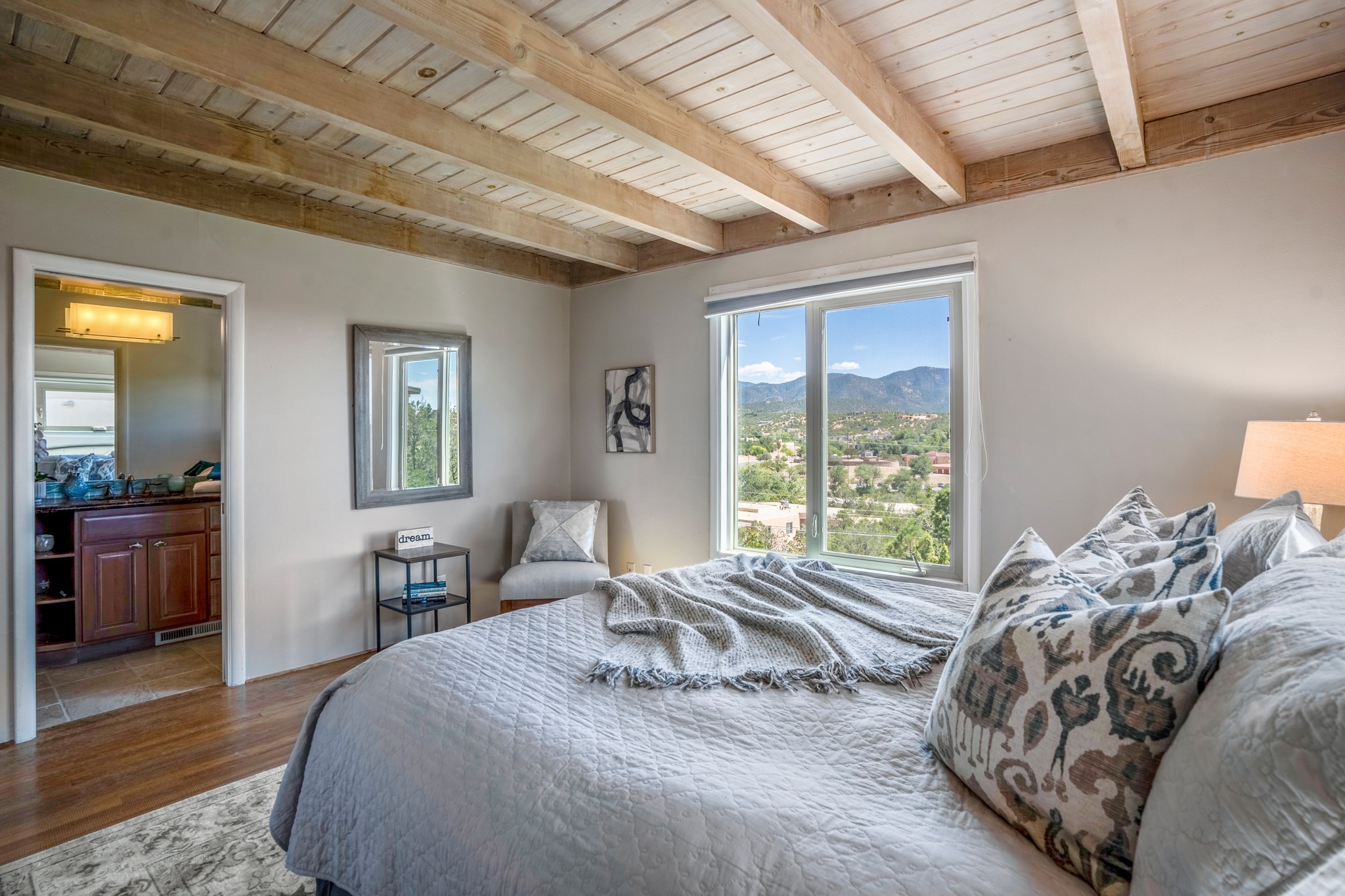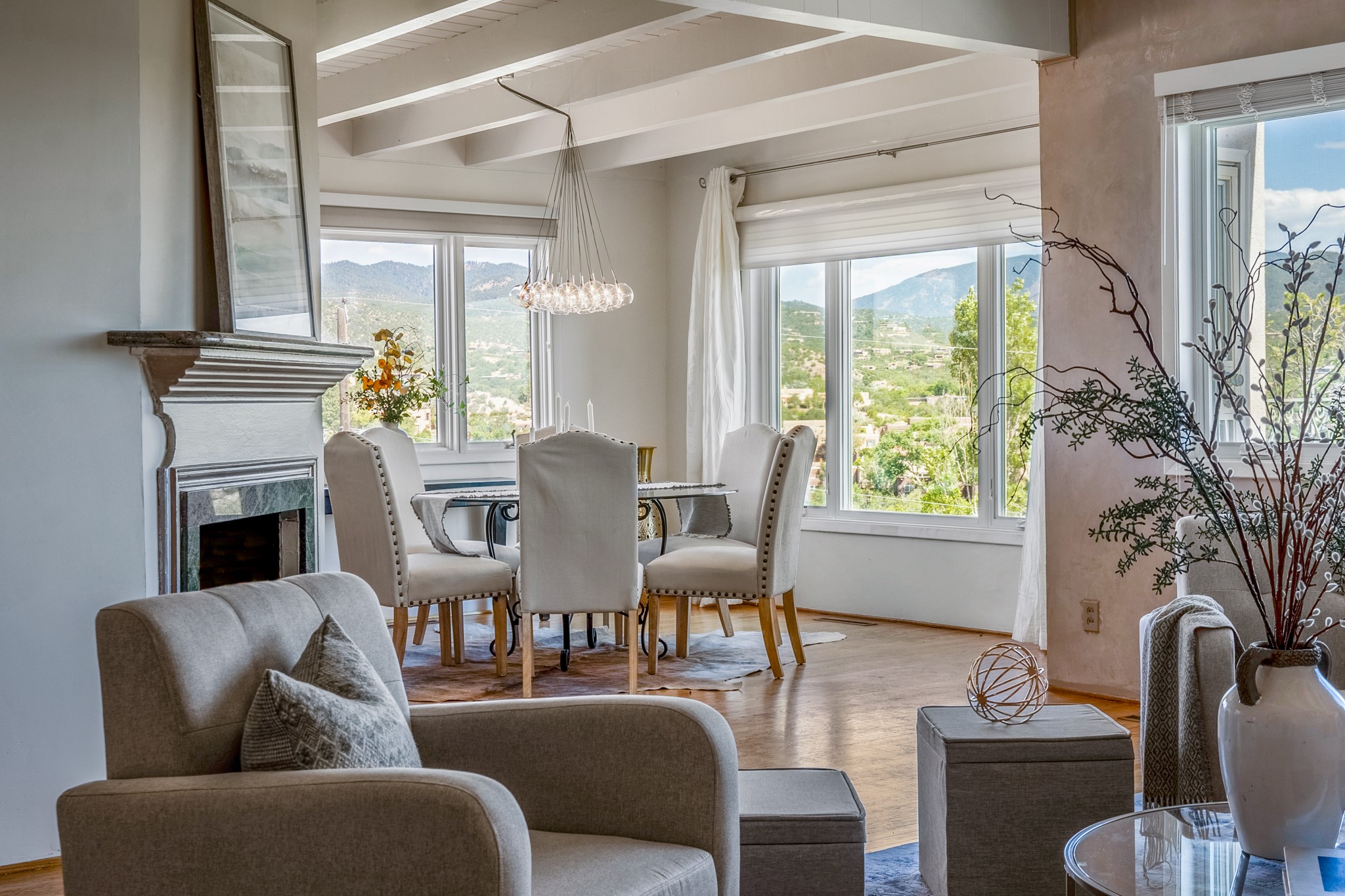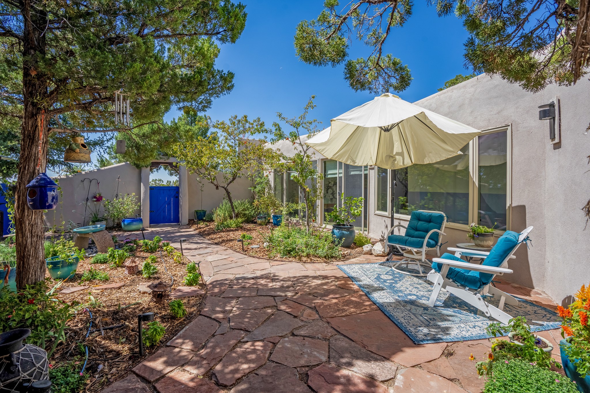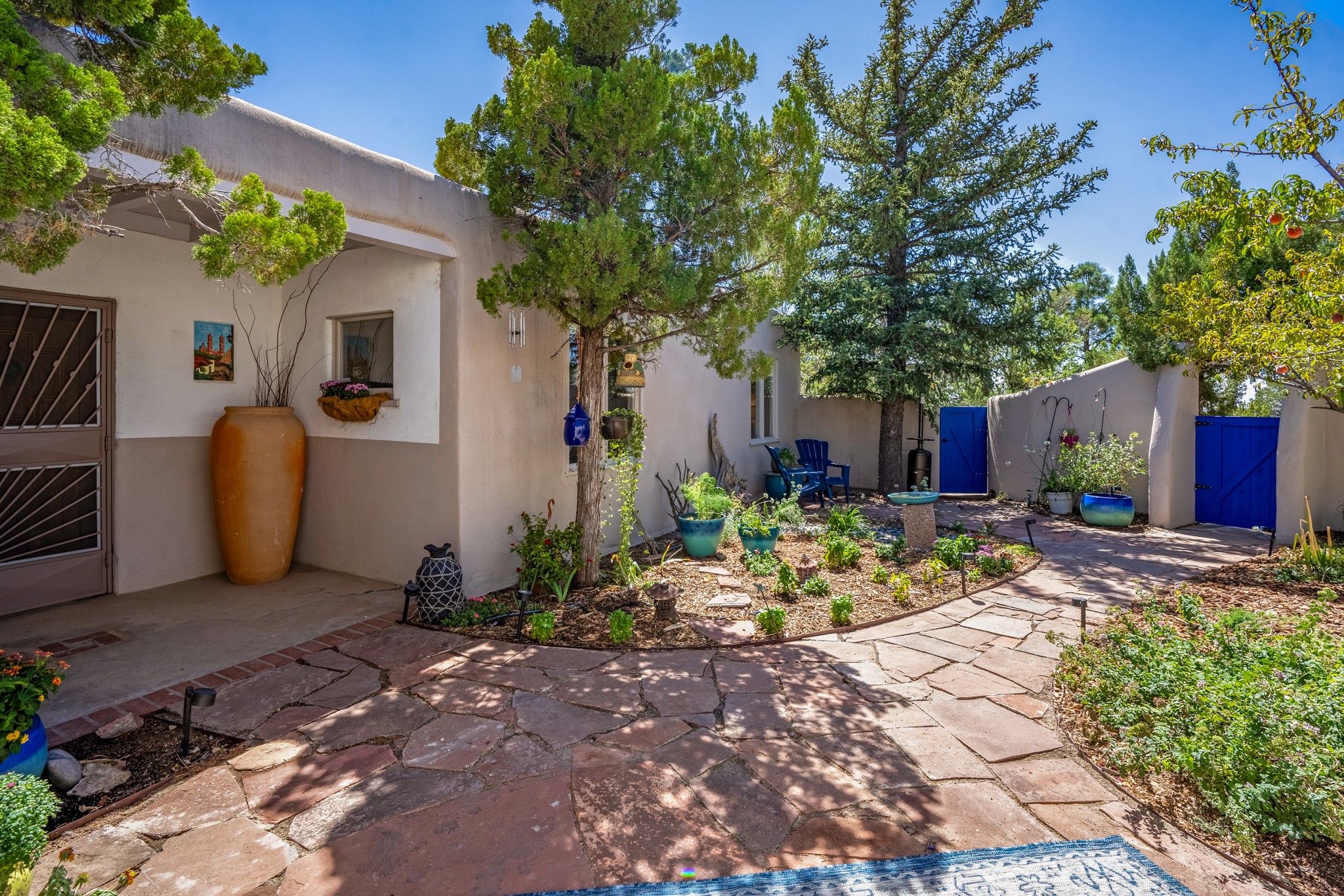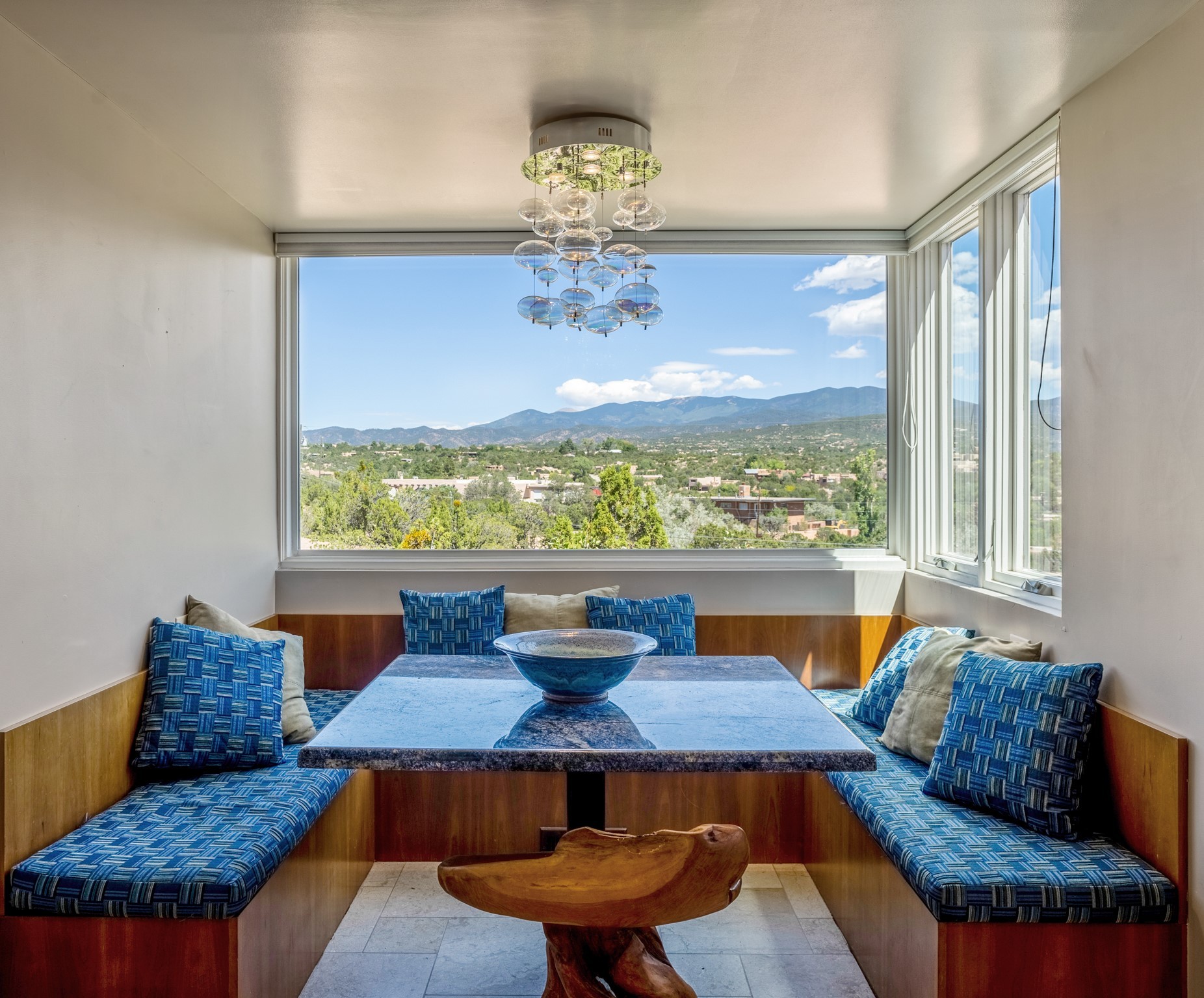For Outstanding City and Mountain Views, discover the appeal of 783 Paseo de la Cuma, perched gracefully above the Santa Fe Plaza. From the moment you step inside, breathtaking vistas greet you in all directions. Gorgeous sunrises paint the sky every morning. Equally beautiful sunsets can be seen from the front entry. As you pass through the front gate, you'll find a private, spacious, walled courtyard and a lovely garden to enjoy Santa Fe's splendid climate. This charming mid-century home, built in 1960, features wood floors throughout the main level with three bedrooms, two updated bathrooms (including Smart toilet outlets), in just over 2,311 square feet. An open living and dining space blends seamlessly into the elegantly remodeled kitchen with custom Cherry and Maple cabinets and built-ins. The appliance package includes top-tier Sub-Zero Freezer and Refrigerator, Wolf gas range, convection oven, microwave and warming drawer, a Bosch dishwasher along with a two zone Sub-Zero wine refrigerator. A deck just off the dining/living area offers a great space to take in the city lights. A cozy banco adjacent to the kitchen welcomes you for morning coffee and surrounds you with views. In addition, a generous butlers pantry leads you into a sunlit studio/workshop/office, complete with a mini-split, providing comfort and versatility for both work and leisure. On the lower level, a separate guesthouse has its own private path and entry from the main-level parking area. This 1,475 square foot abode provides one bedroom and office, a tastefully updated 3/4 bath, a comfortable living and dining area with a well-appointed kitchenette. Additionally, there is a stackable washer and dryer, and tankless water heater. A workout/yoga room completes the package. The views from the picture windows are sure to delight your guests or tenants. This unit provides an excellent investment opportunity or a very appealing destination for friends and family, located just a short walk from the Plaza. Impeccable maintenance and thoughtful updates include a well-maintained roof, new Marvin casement and picture windows, and fresh stucco updates in 2023. Completing the picture is a two-car garage with mudroom and ample additional parking spaces... ideal for hosting gatherings with family and friends. This beautiful property is a short walk to Fort Marcy park with its community center, pickleball courts and the many festivals Santa Fe has to offer. Come and experience 783 Paseo de la Cuma...you won't want to miss it.