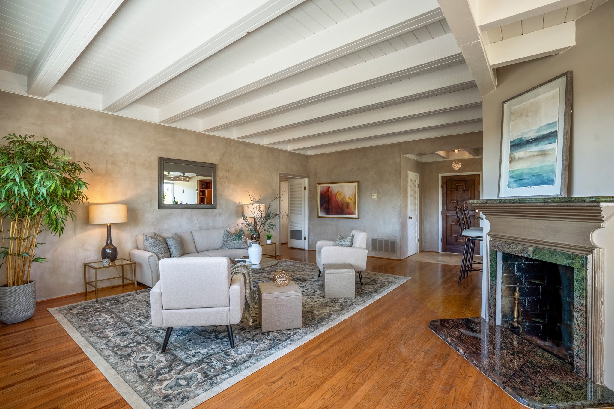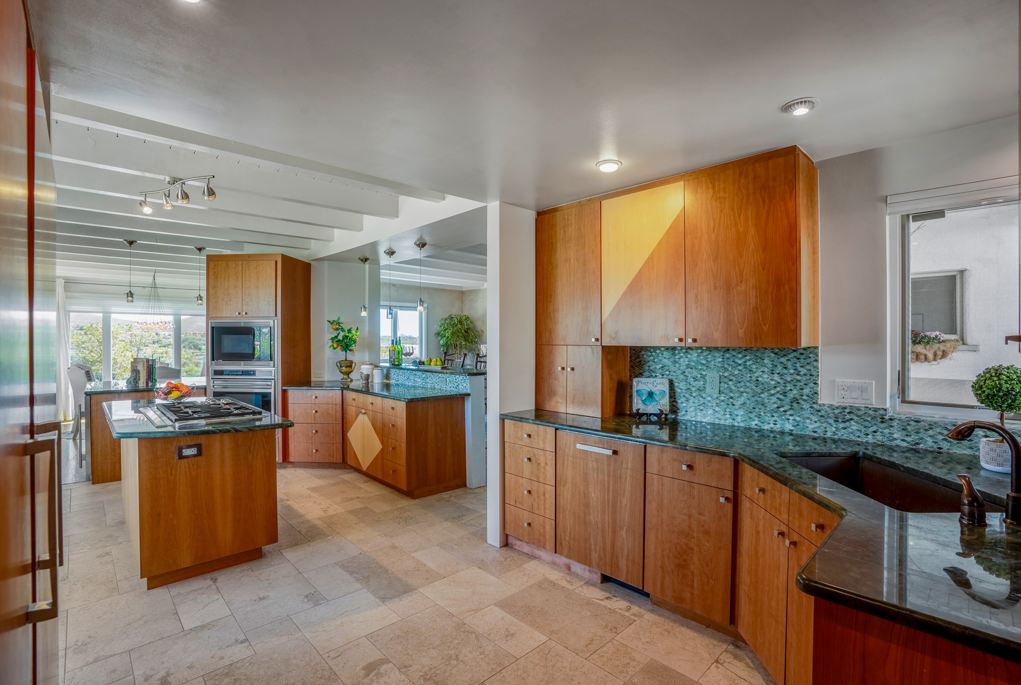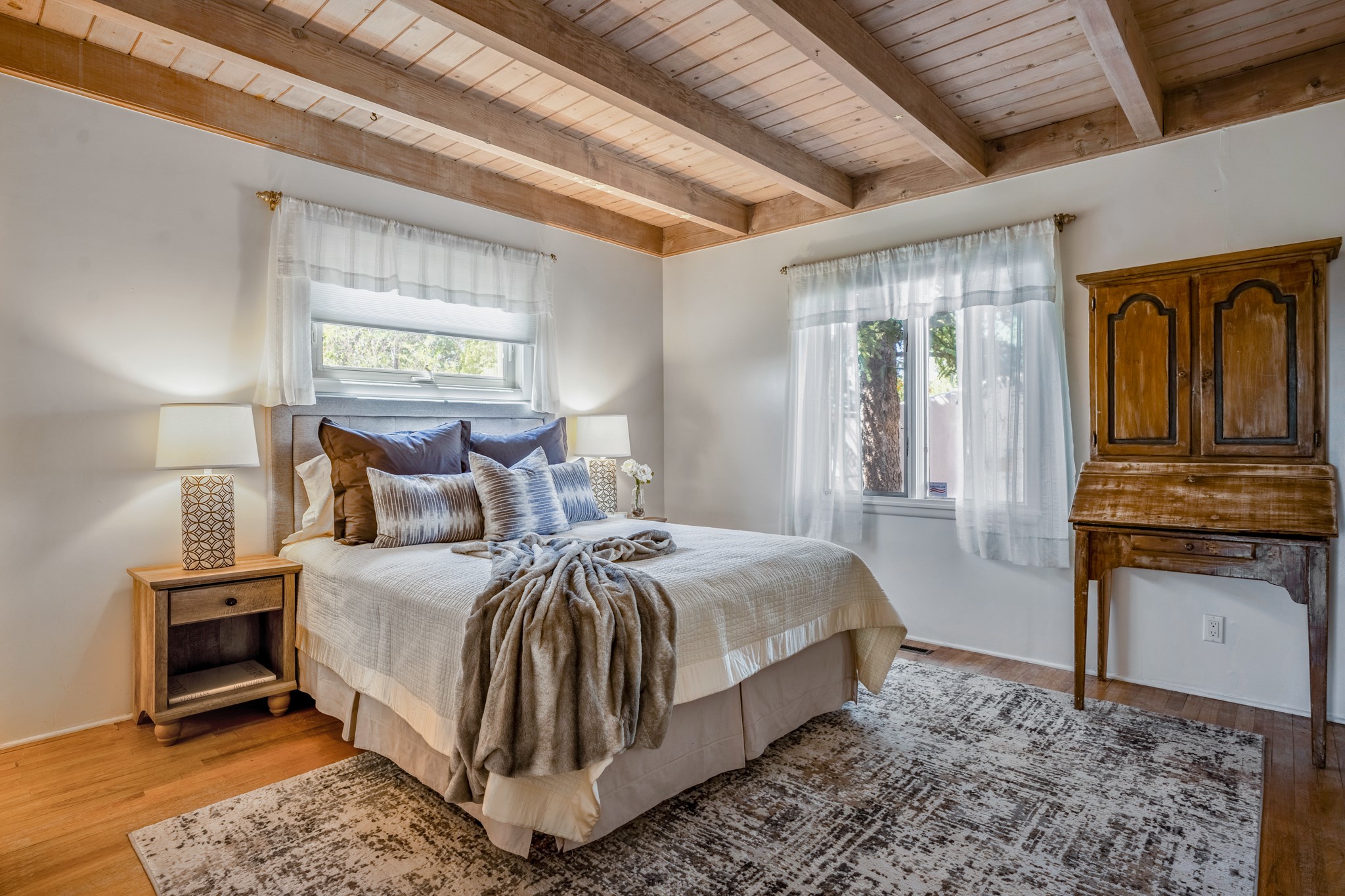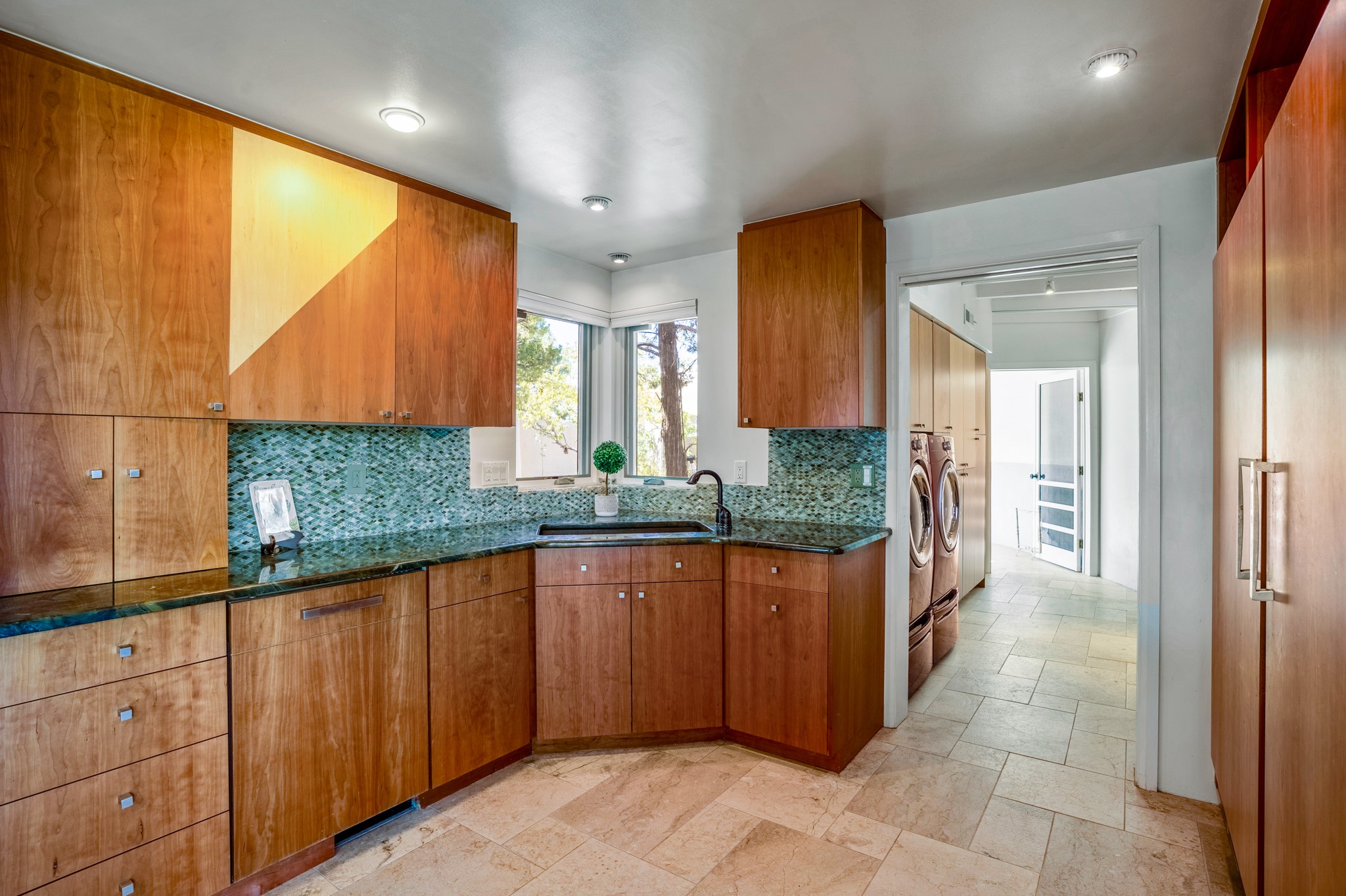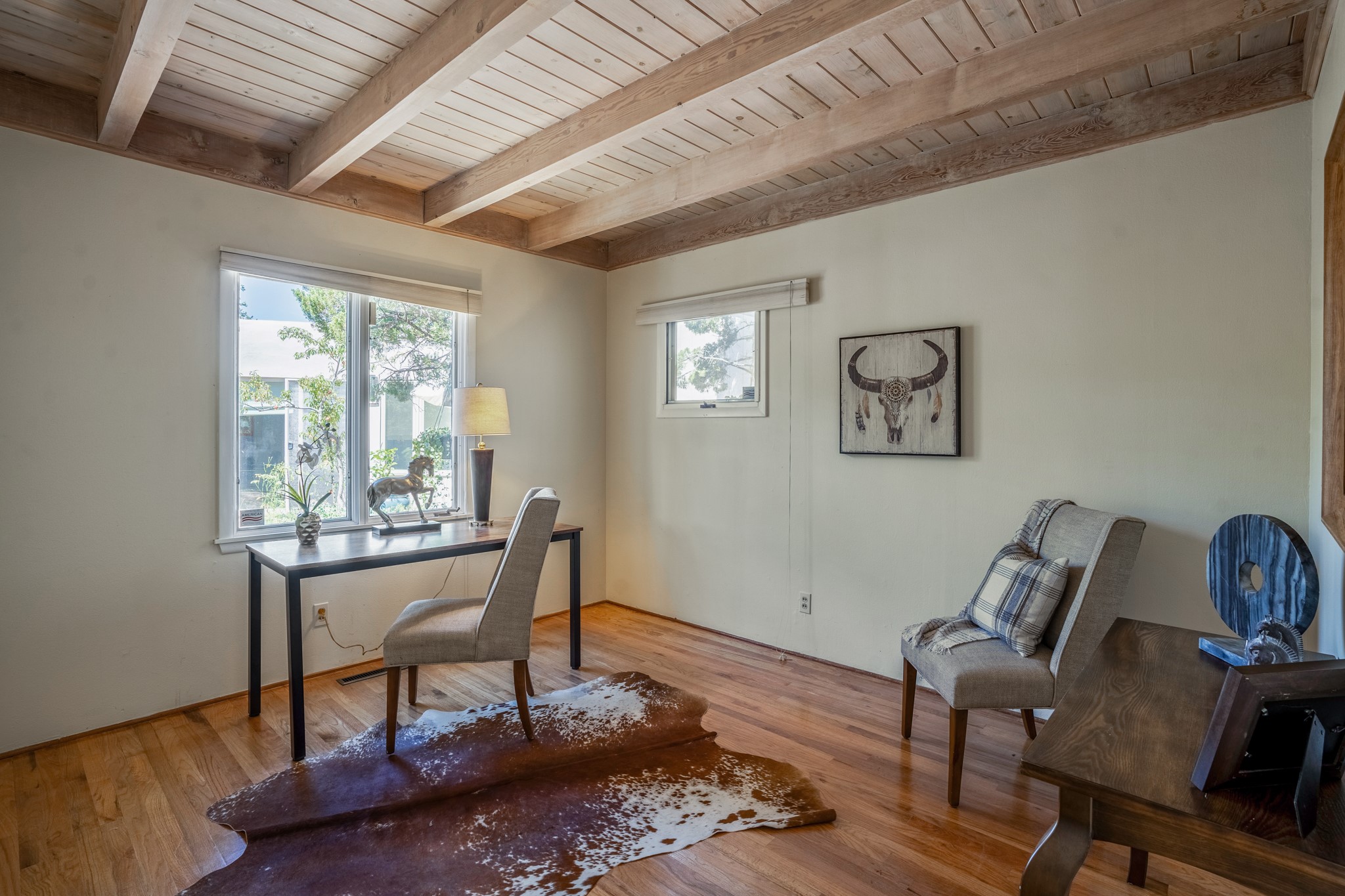 For Outstanding City and Mountain Views, discover the appeal of 783 Paseo de la Cuma, perched gracefully above the Santa Fe Plaza. From the moment you step inside, breathtaking vistas greet you in all directions. Gorgeous sunrises paint the sky every morning. Equally beautiful sunsets can be seen from the front entry. As you pass through the front gate, you'll find a private, spacious, walled courtyard and a lovely garden to enjoy Santa Fe's splendid climate. This charming mid-century home, built in 1960, features wood floors throughout the main level with three bedrooms, two updated bathrooms (including Smart toilet outlets), in just over 2,311 square feet. An open living and dining space blends seamlessly into the elegantly remodeled kitchen with custom Cherry and Maple cabinets and built-ins. The appliance package includes top-tier Sub-Zero Freezer and Refrigerator, Wolf gas range, convection oven, microwave and warming drawer, a Bosch dishwasher along with a two zone Sub-Zero wine refrigerator. A deck just off the dining/living area offers a great space to take in the city lights. A cozy banco adjacent to the kitchen welcomes you for morning coffee and surrounds you with views. In addition, a generous butlers pantry leads you into a sunlit studio/workshop/office, complete with a mini-split, providing comfort and versatility for both work and leisure. On the lower level, a separate guesthouse has its own private path and entry from the main-level parking area. This 1,475 square foot abode provides one bedroom and office, a tastefully updated 3/4 bath, a comfortable living and dining area with a well-appointed kitchenette. Additionally, there is a stackable washer and dryer, and tankless water heater. A workout/yoga room completes the package. The views from the picture windows are sure to delight your guests or tenants. This unit provides an excellent investment opportunity or a very appealing destination for friends and family, located just a short walk from the Plaza. Impeccable maintenance and thoughtful updates include a well-maintained roof, new Marvin casement and picture windows, and fresh stucco updates in 2023. Completing the picture is a two-car garage with mudroom and ample additional parking spaces... ideal for hosting gatherings with family and friends. This beautiful property is a short walk to Fort Marcy park with its community center, pickleball courts and the many festivals Santa Fe has to offer. Come and experience 783 Paseo de la Cuma...you won't want to miss it.