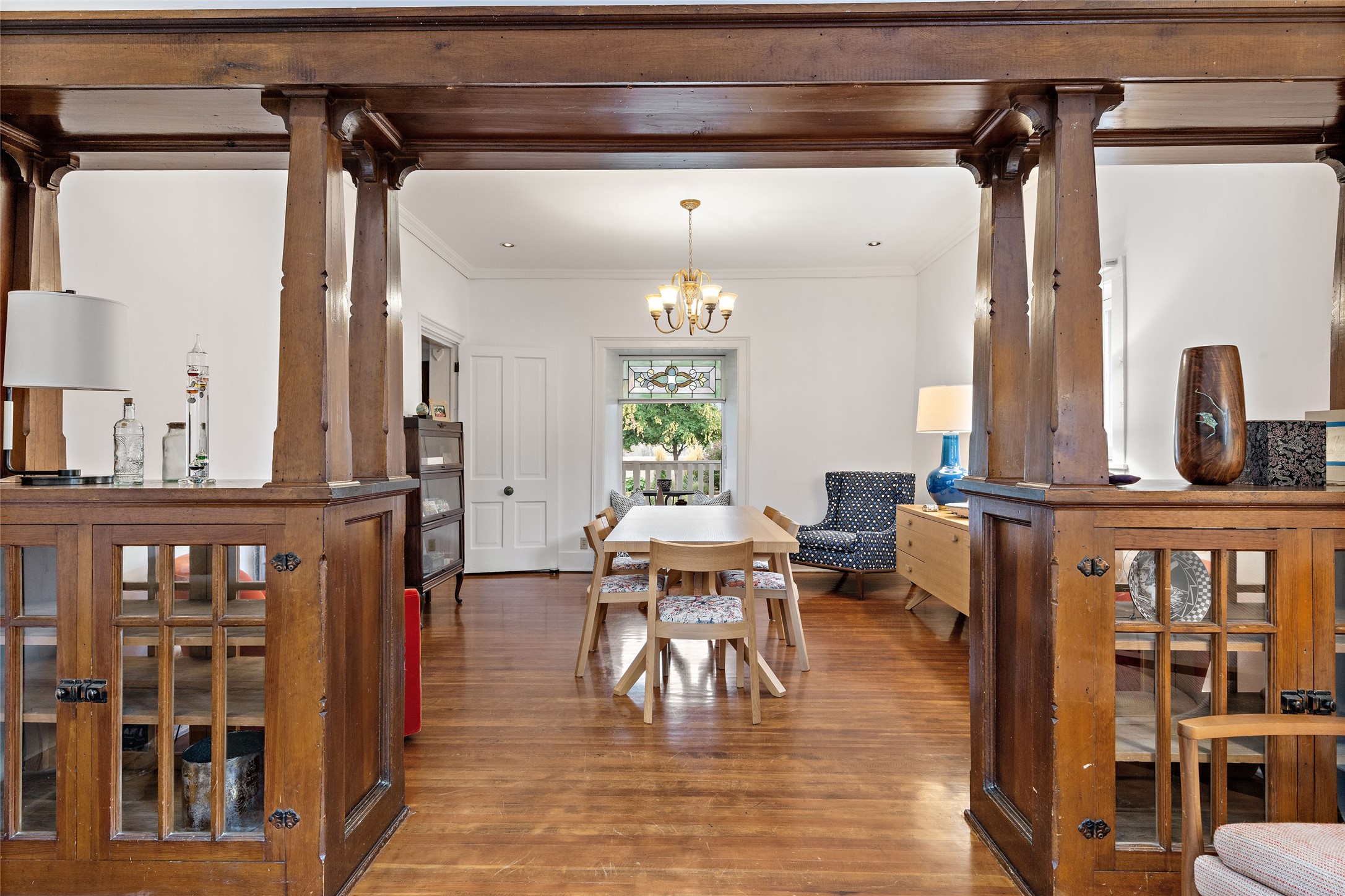 This lovely compound with two adobe homes located in the historic Guadalupe District, offers a number of opportunities: live in one and rent the other or use it as a guest house or an office/studio. The Northern NM style double adobe main residence was originally built in the late 1800s. Since 2010, the main house has been restored to its original beauty and the electrical, heating and plumbing systems have been updated. A nice-sized yard with xeriscaping, mature trees and portal are perfect for outdoor gatherings. The living room is open to the formal dining area with lovely wood and glass cabinets in between. The kitchen is open and inviting with modern appliances and plenty of storage. Nicely separated from the common rooms, the primary bedroom has a dressing room, closet and three quarter bath. There is a full bath in between the primary bedroom and the second bedroom. The 2 bedroom adobe guesthouse has been extensively updated since 2020 including hardwood floors, a kiva fireplace in one bedroom, a full bath, laundry room and kitchen. These 2 classic homes are located within the historic community surrounding Our Lady Of Guadalupe Santuario in the heart of Santa Fe.