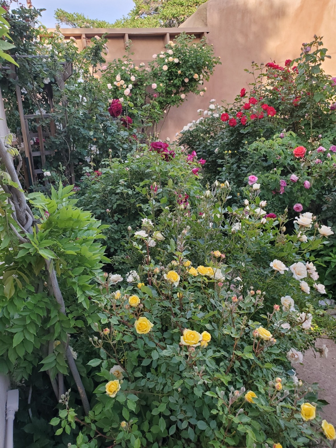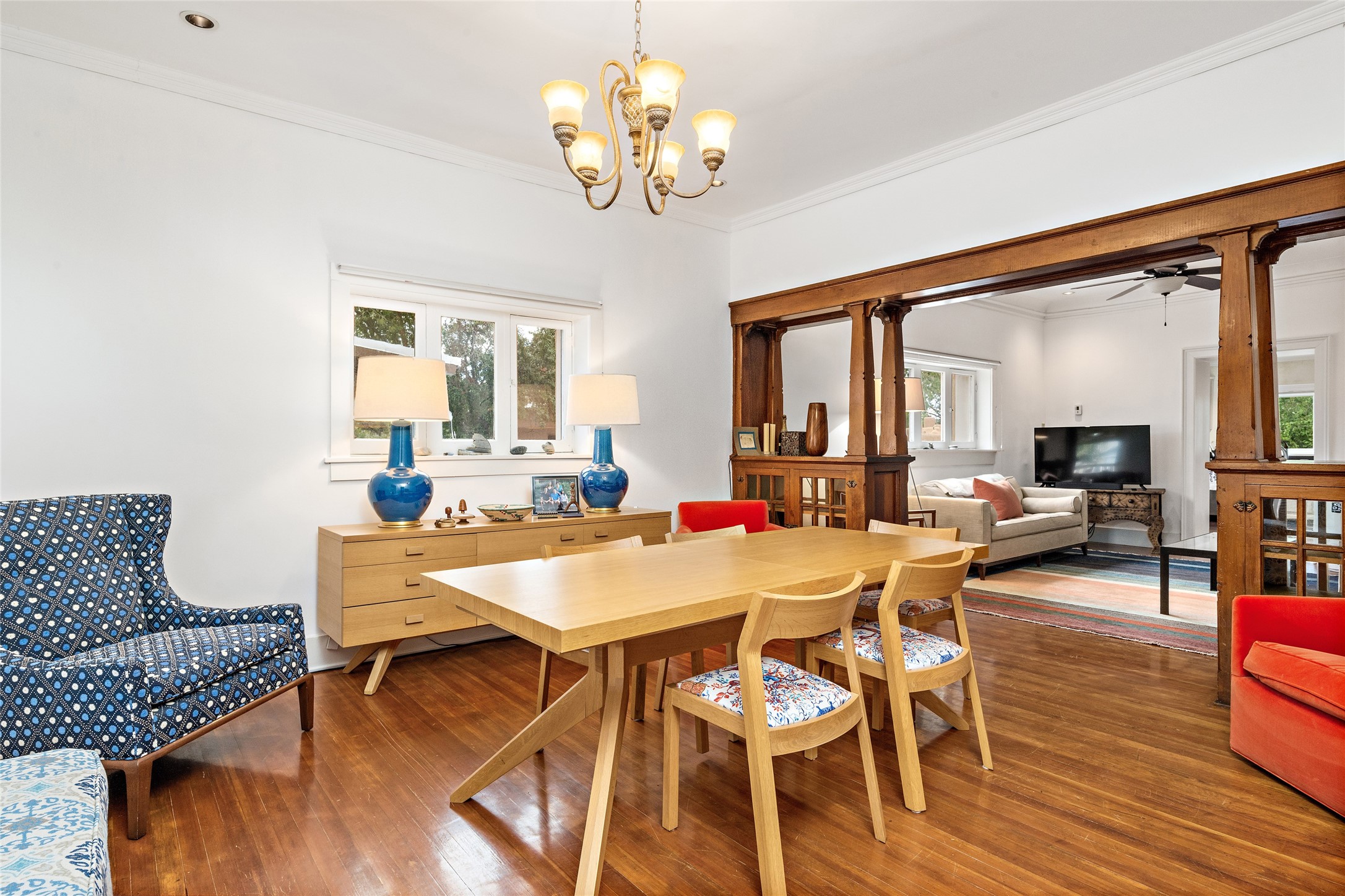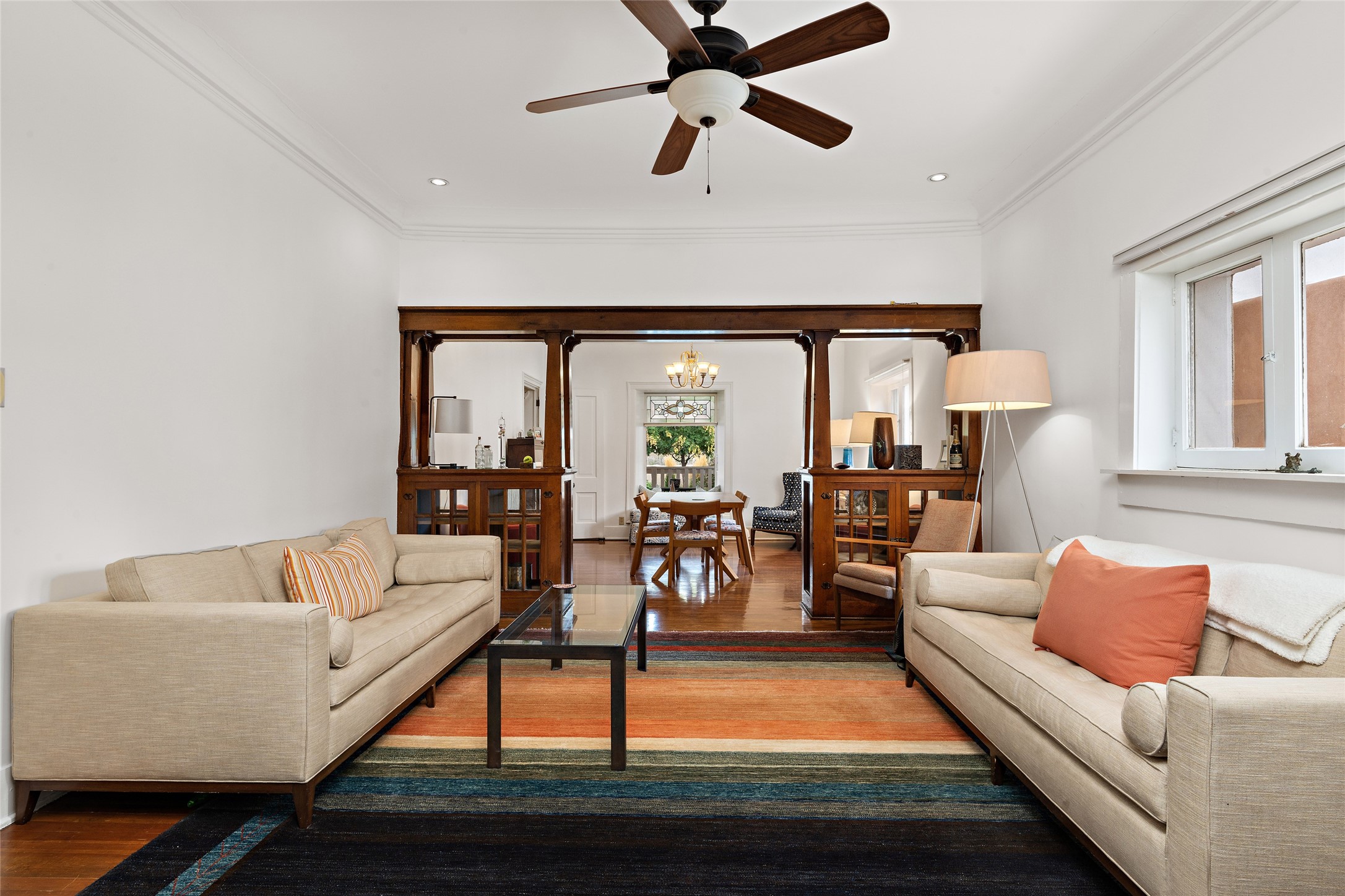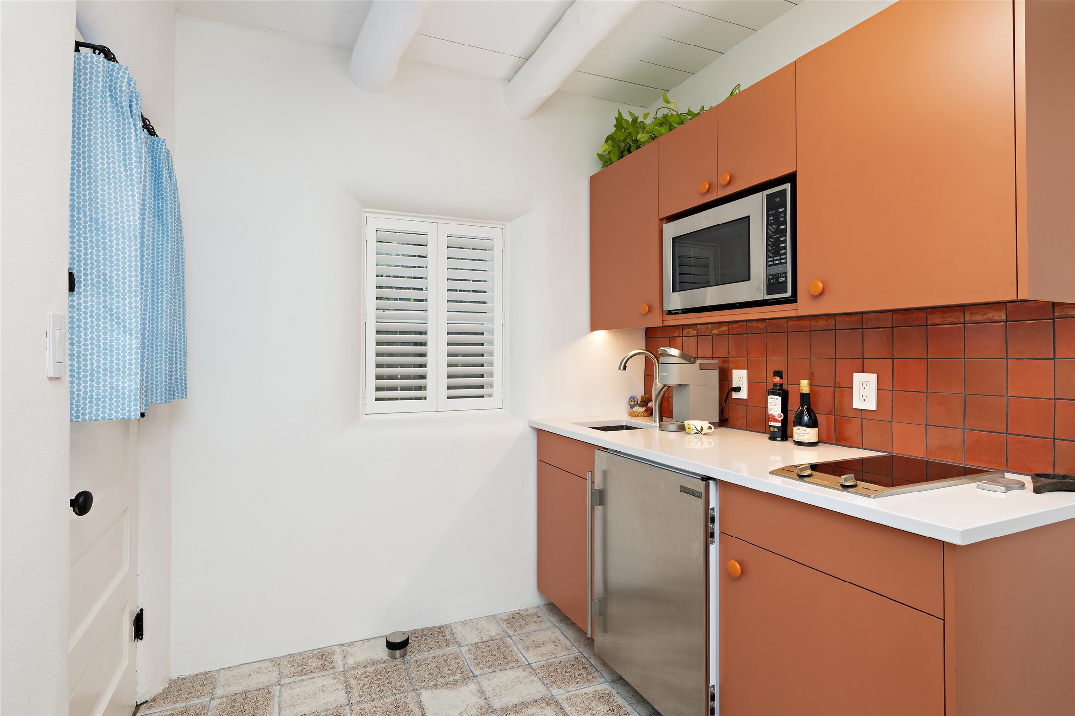 This lovely compound with two adobe homes located in the historic Guadalupe District, offers a number of opportunities: live in one and rent the other or use it as a guest house or an office/studio. The Northern NM style double adobe main residence was originally built in the late 1800s. Since 2010, the main house has been restored to its original beauty and the electrical, heating and plumbing systems have been updated. A nice-sized yard with xeriscaping, mature trees and portal are perfect for outdoor gatherings. The living room is open to the formal dining area with lovely wood and glass cabinets in between. The kitchen is open and inviting with modern appliances and plenty of storage. Nicely separated from the common rooms, the primary bedroom has a dressing room, closet and three quarter bath. There is a full bath in between the primary bedroom and the second bedroom. The 2 bedroom adobe guesthouse has been extensively updated since 2020 including hardwood floors, a kiva fireplace in one bedroom, a full bath, laundry room and kitchen. These 2 classic homes are located within the historic community surrounding Our Lady Of Guadalupe Santuario in the heart of Santa Fe.