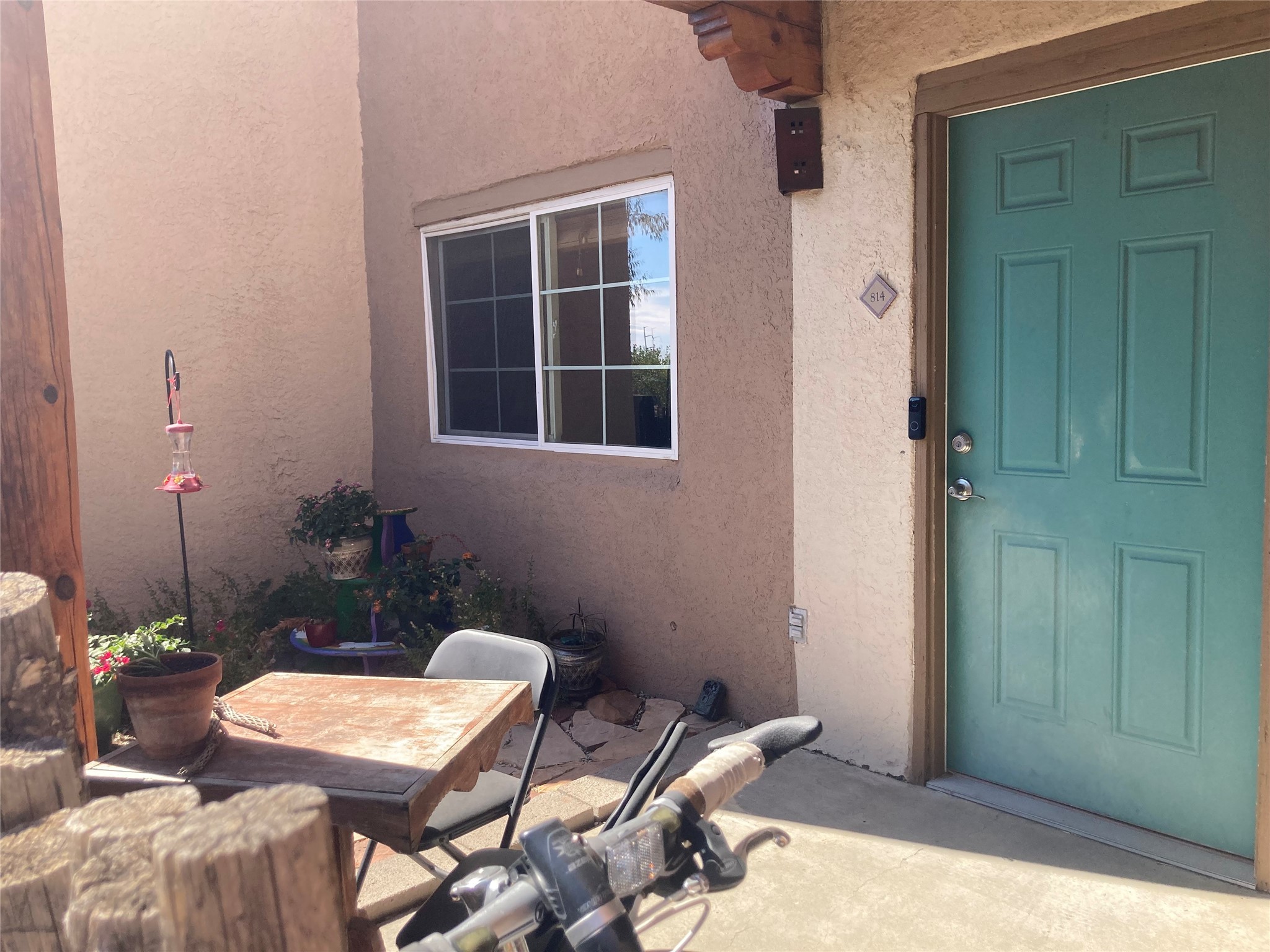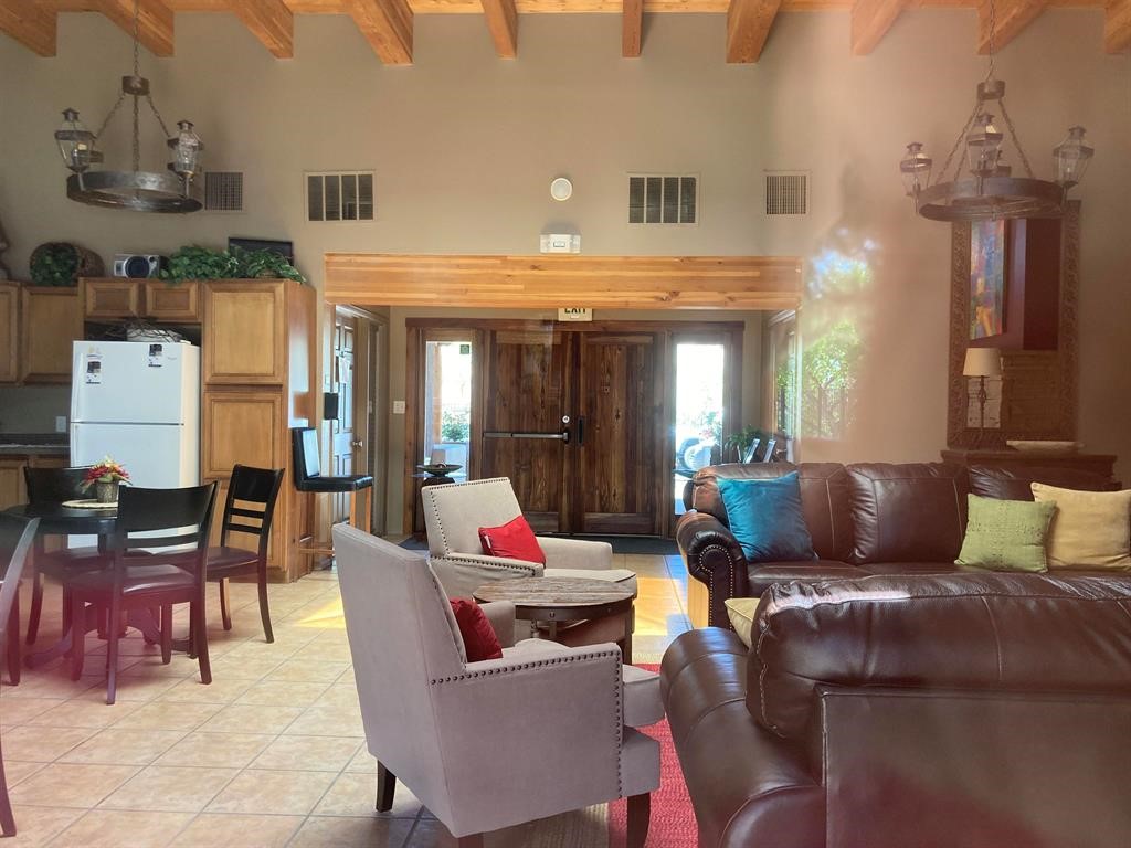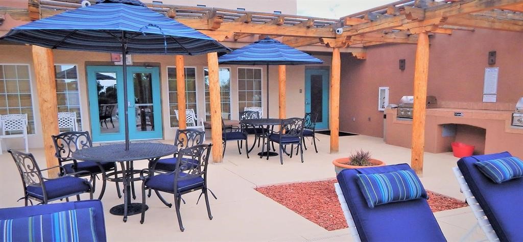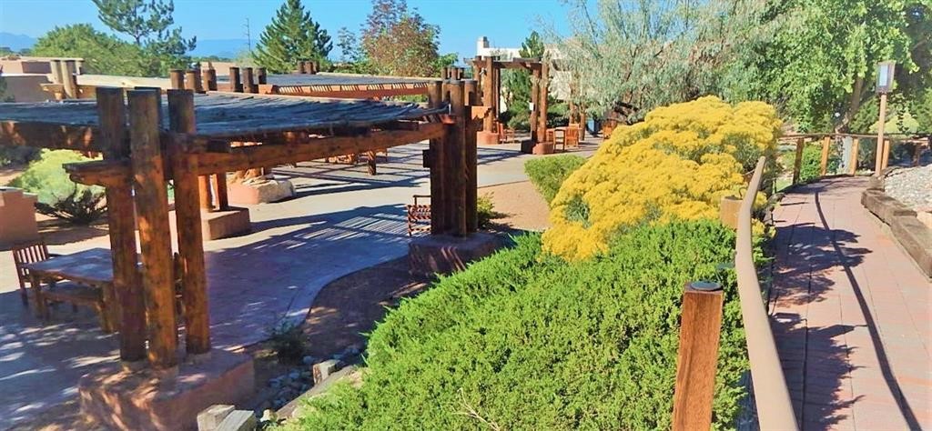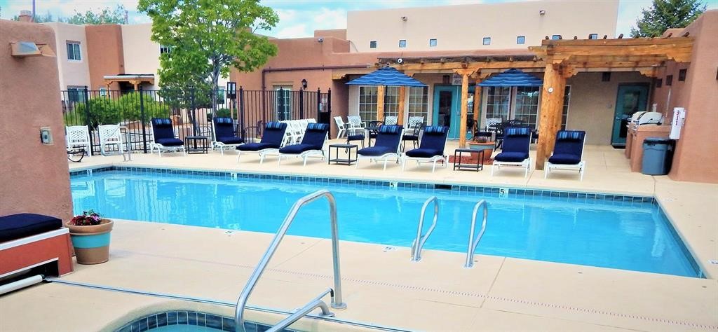 Spacious 1st floor 1-bedroom, 1-bath apartment with a private patio. Tiled floors throughout. Kitchen and bath renovated by present owners in 2013 - new cabinets and appliances, granite counter top and a tiled bathroom. The heat and hot water systems are original; also there are minor cosmetic imperfections - all reflected in the asking price. The owners have never lived in the unit. Dos Santos is one of the best managed condominium complexes in Santa Fe. It features a seasonal salt water pool, year round open air hot tub, well equipped exercise room and a club house. It is pet friendly and has a dog run. While personal patio grills are not allowed, there are several very attractive picnic areas equipped with commercial size grills, seating and tables available for personal everyday use and for parties. Residents are allowed to park in the parking lot up to 2 vehicles - vehicle size and type restrictions apply. A reserved parking spot for one car may be requested and assigned for a one time fee of $150 paid at the time of closing.