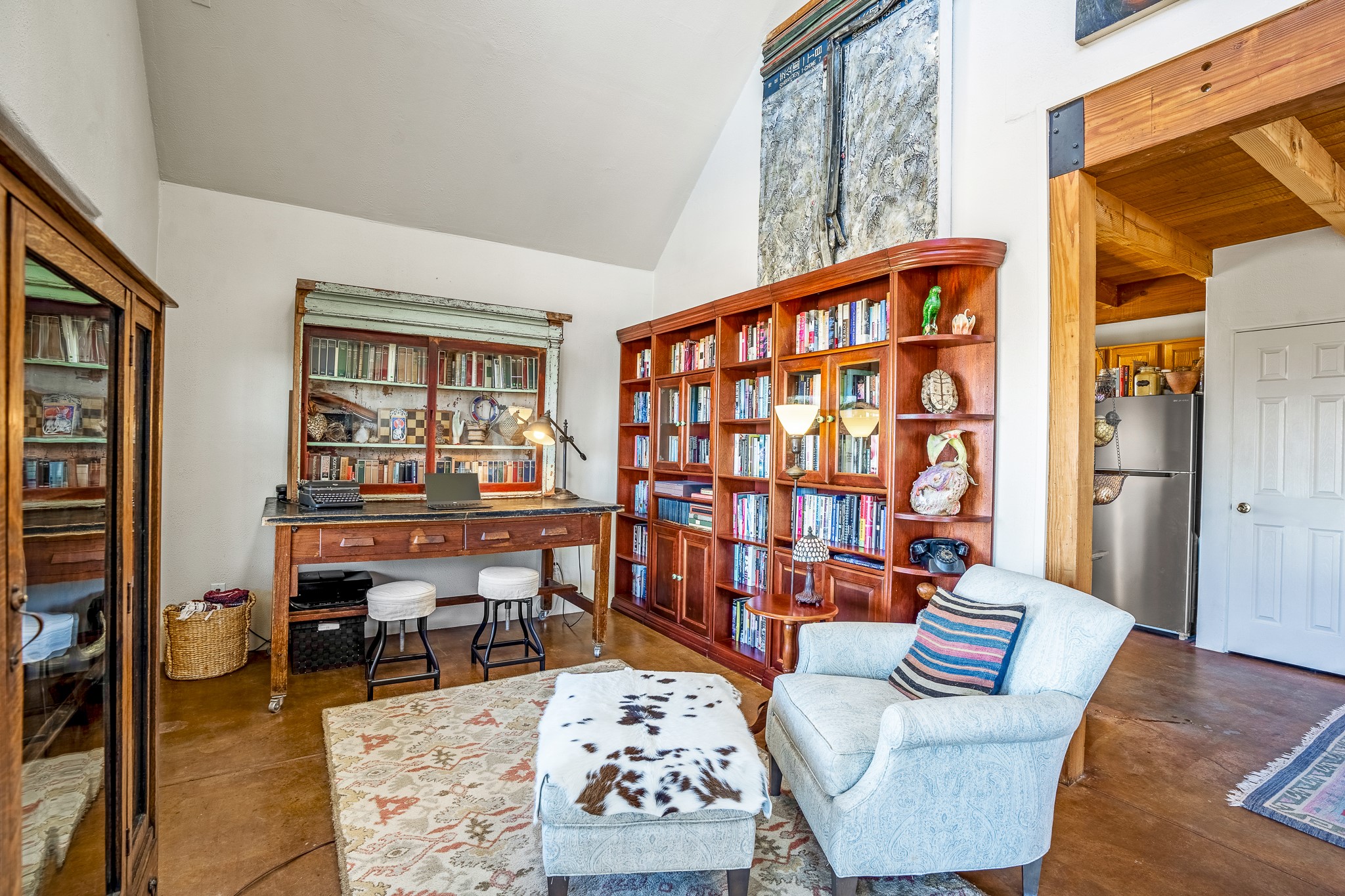 You'll find this high-desert homestead perched on a mesa's edge, with jaw-dropping views in every direction. A high-ceilinged, 1259 square foot home, with one bedroom and one bathroom, sits on 40 acres. This open floor plan home gives many configuration options- a roomy yet cozy space. Property has abundant, thriving gardens, a shed and chicken coop, as well as a corral and space for horses. Water is supplied by a private well, and electricity by the sun. Sellers have recently invested nearly $50,000 in the property, including new solar panels, charge controller, inverters, and batteries, 5600 gallons of water storage (in addition to 3100 gallons of rain catchment), new well pump, booster pump and whole house water filtration system. 3.5 miles from highway 14. Come experience the profound privacy, and quiet this property provides while only being a short hop to the thriving artist community of Madrid and a 45 min drive to Santa Fe. Excellent off the grid property with expansive vistas of the Cerrillos Hills and the Jemez, Sangre de Cristo, Ortiz, and Sandia Mountains.