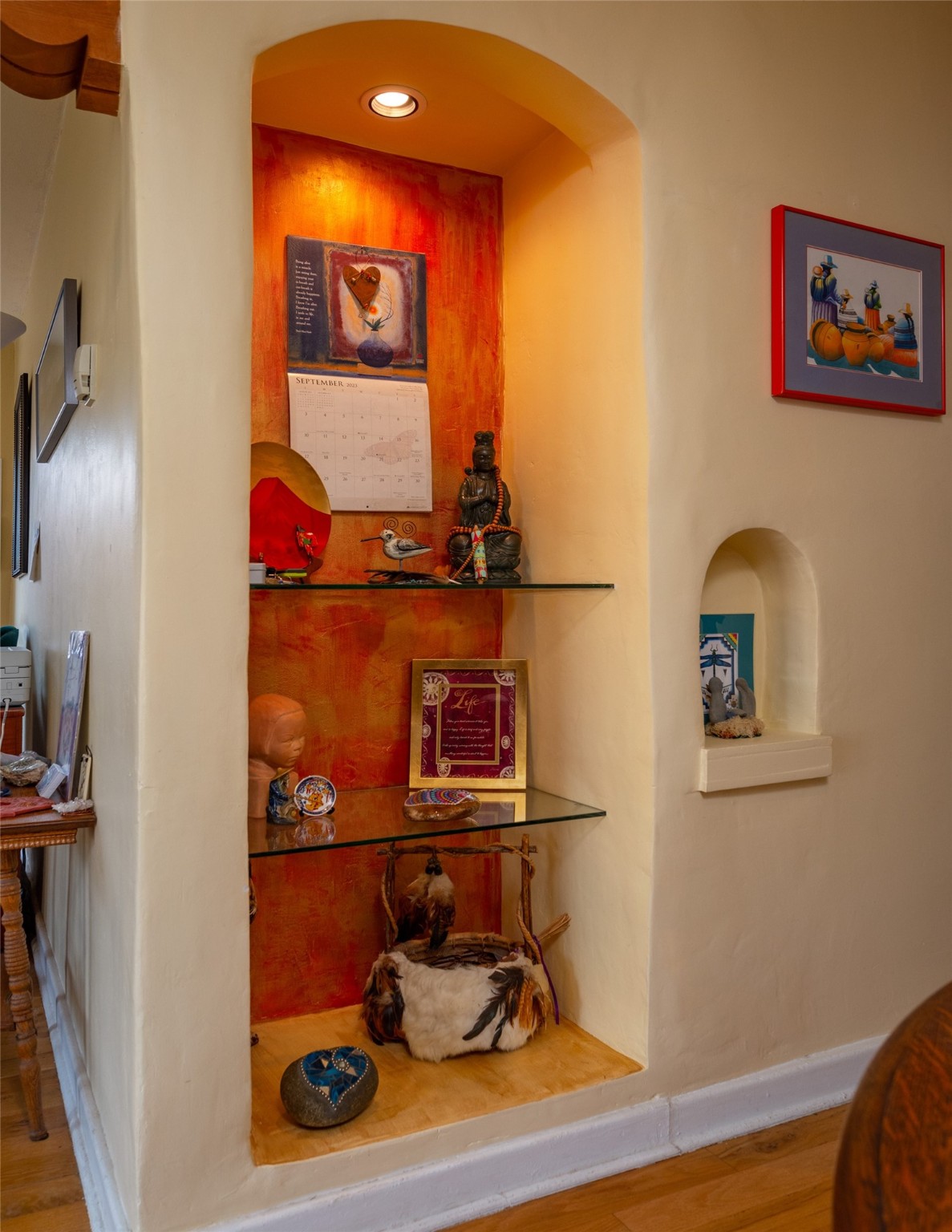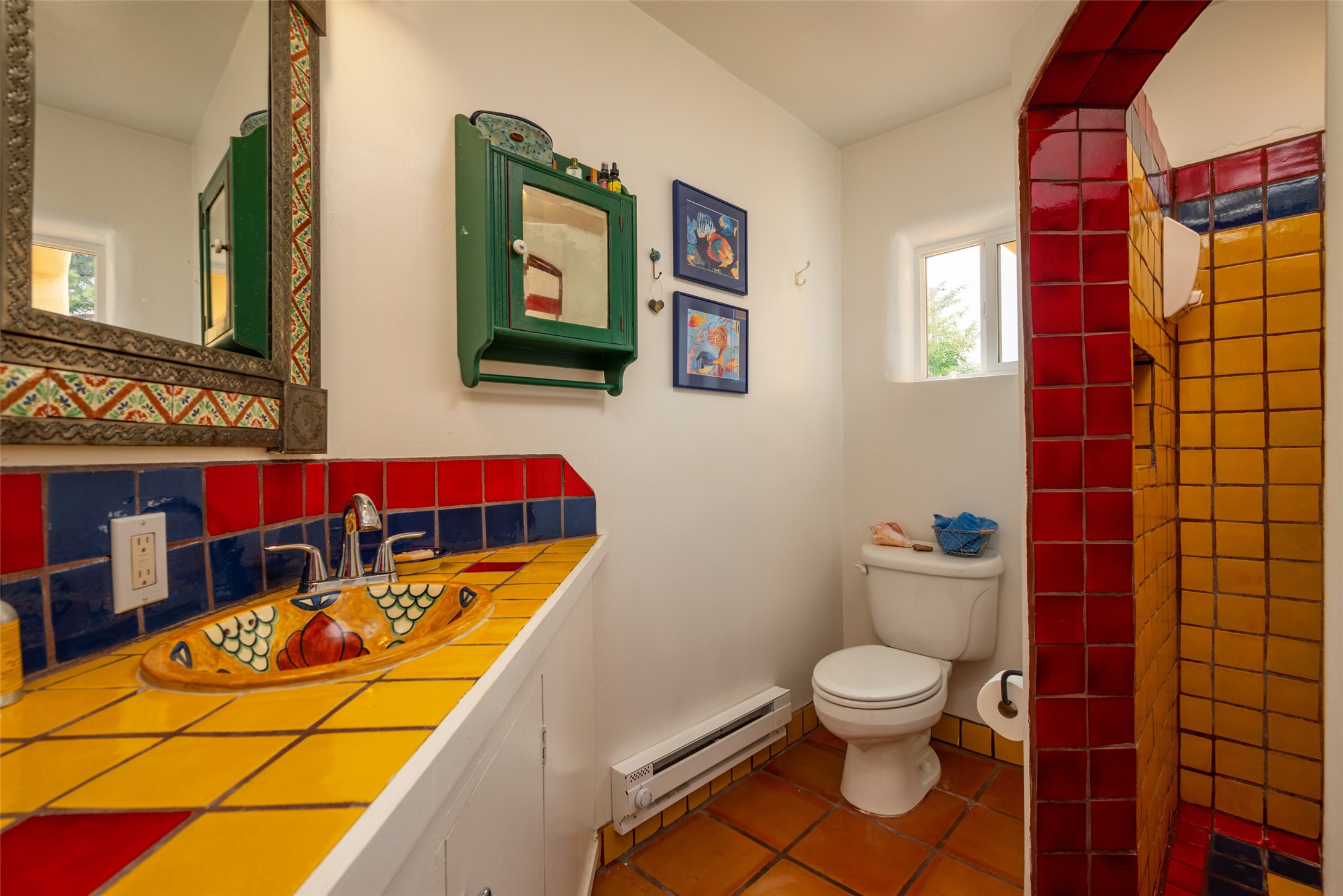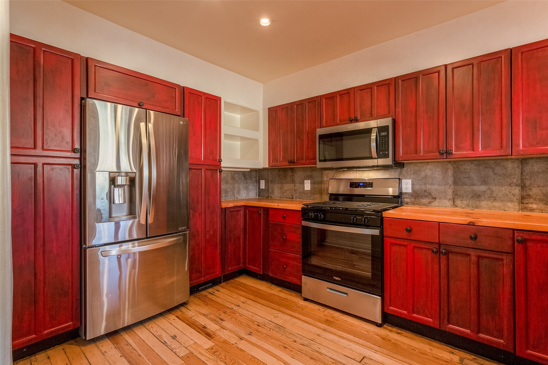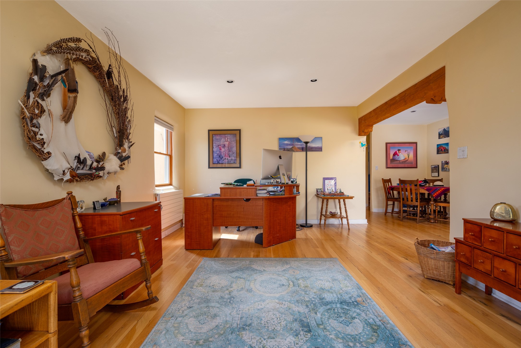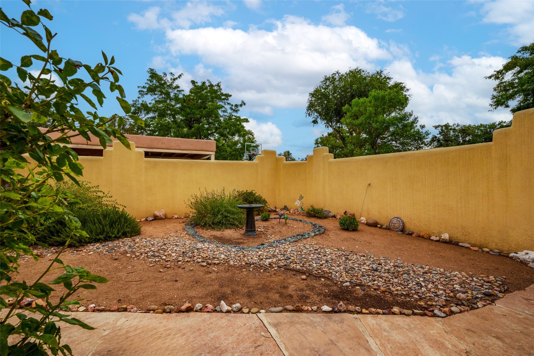 A single-level, charming home that is 1 of 2 free-standing units that are declared as a condo; however, there is Not a COA fee! This 2 bedroom/2 bath home, built in 1943 offers great livability at a terrific location! Enter the home through the private enclosed courtyard with a covered patio to enjoy all the seasons. Features include saltillo and wood flooring, stainless steel appliances, a nicho to display your beloved treasures, and a kiva fireplace for additional warmth to keep your home cozy and comfortable. Both bedrooms have doors that lead to a deck, creating more outdoor living area for relaxation. Ample street parking. Conveniently located close to many amenities, this property is a short stroll to the beautiful Harvey Cornell Rose Park, Trader Joes, CVS, restaurants and the Santa Fe historic plaza.