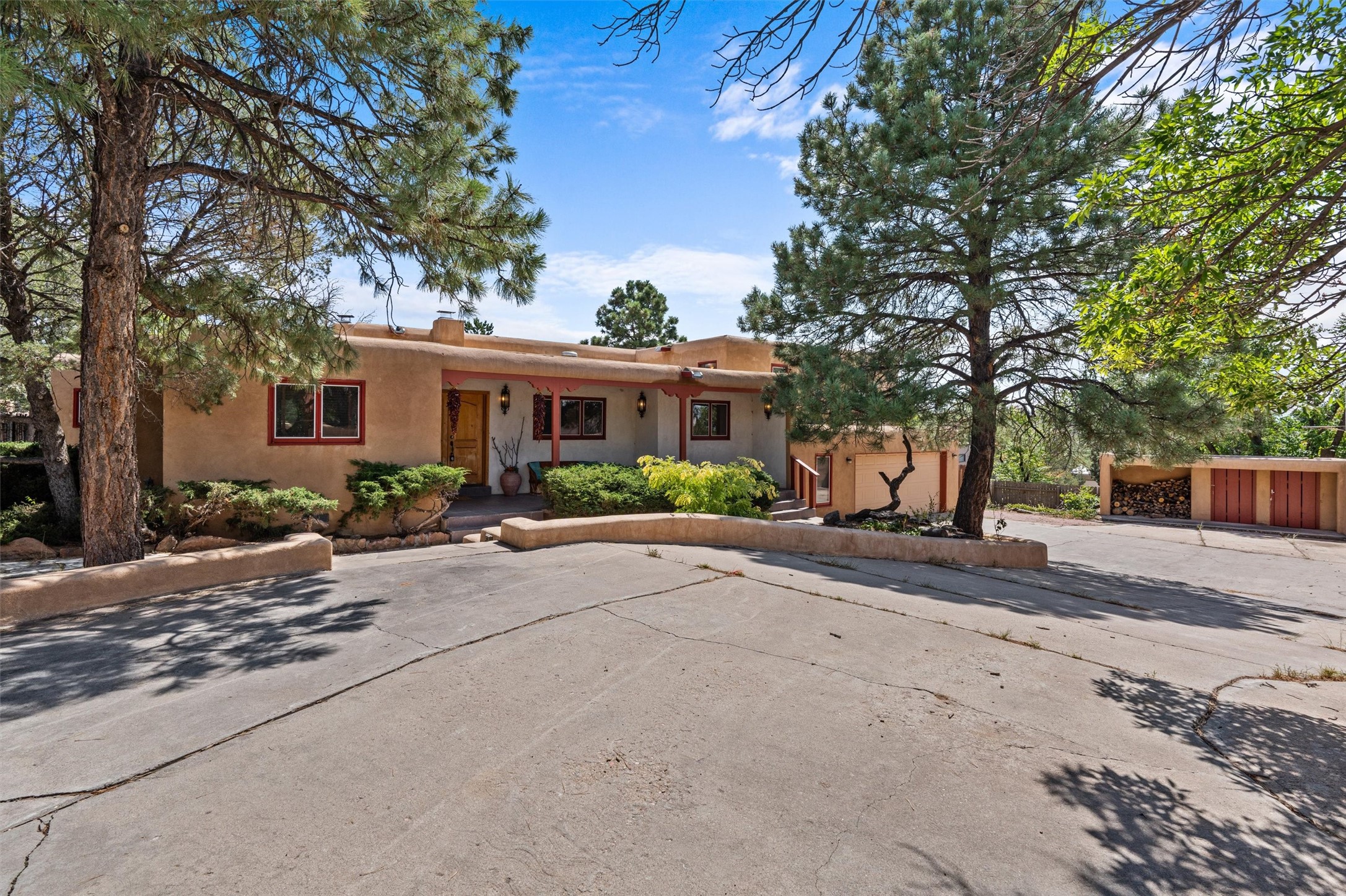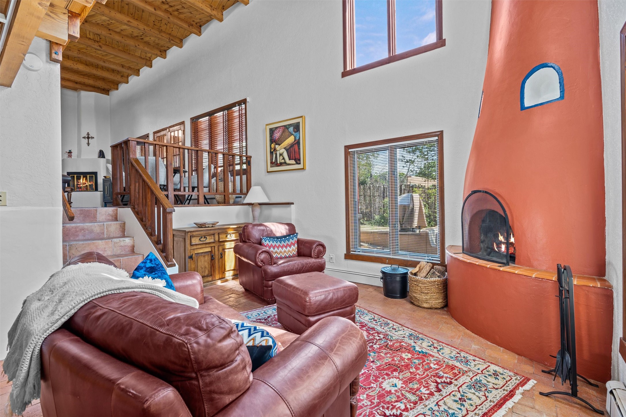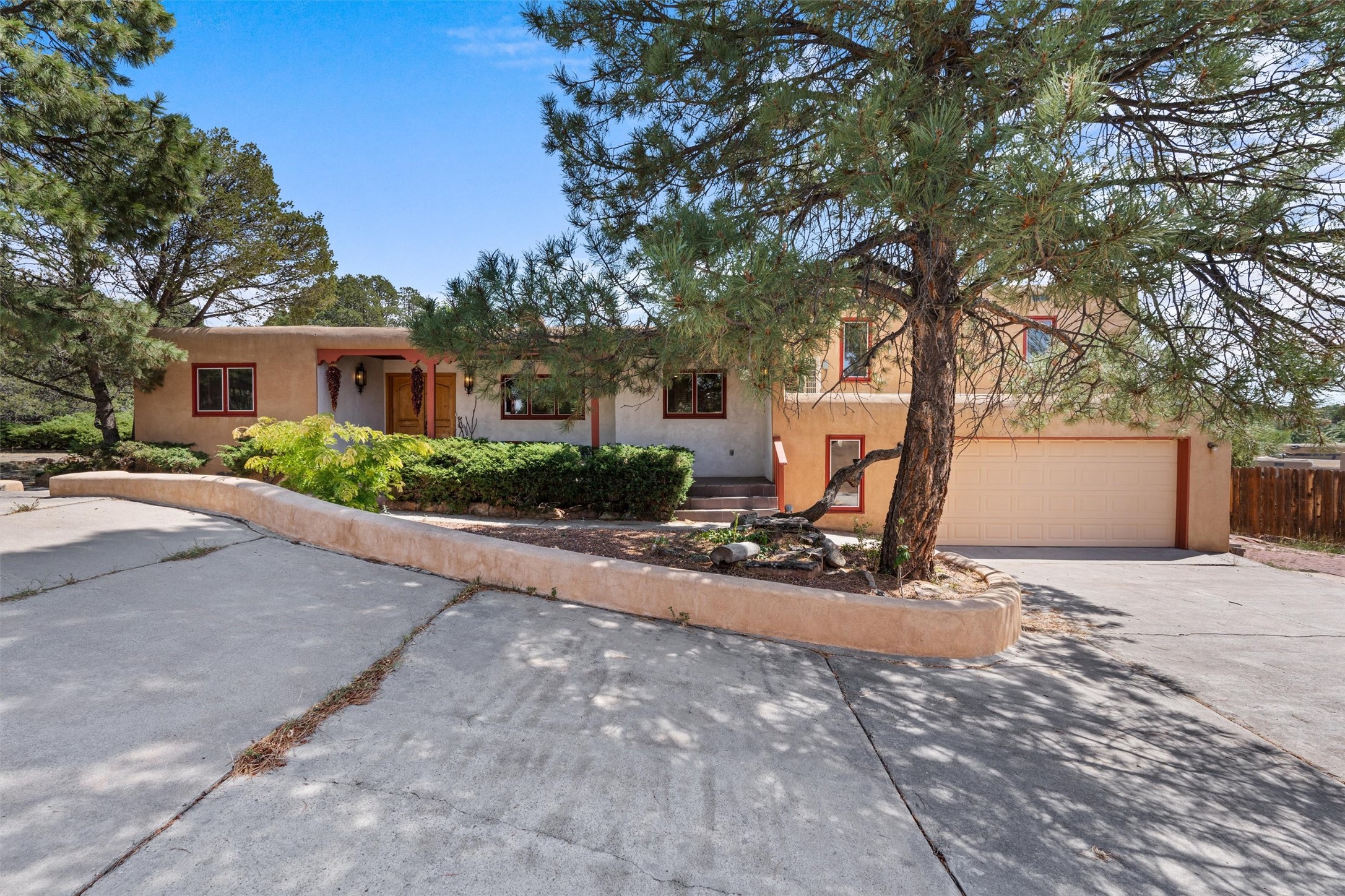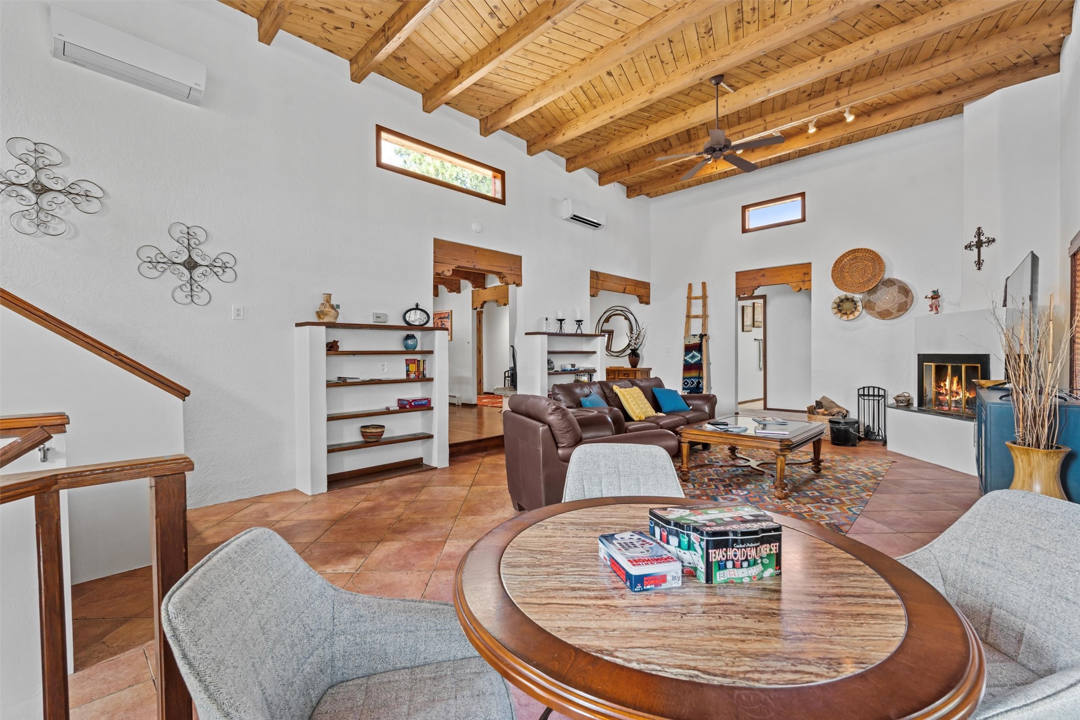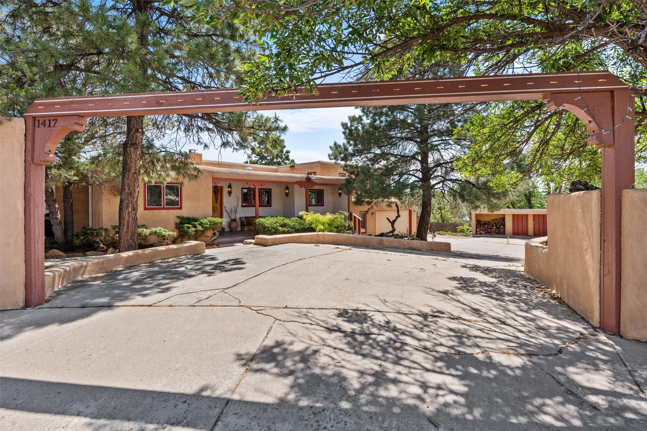 Introducing a magnificent Santa Fe gem! This sprawling split-level home offers 3447 square feet of luxurious living space, featuring 4 spacious bedrooms and 3 bathrooms.As you step inside, you'll be captivated by the warm and inviting atmosphere created by the 3 wood-burning fireplaces throughout the home. The living areas have high wood-beamed ceilings, with rustic elegance that Santa Fe is renowned for. The tiled flooring and hard wood have timeless charm while ensuring easy maintenance.All furnishings negotiableStep outside on the front and back porches, perfect for savoring the breathtaking Santa Fe sunsets or hosting gatherings. The over quarter-acre lot is a true oasis on a drip/sprinkler system. With its spacious layout, classic Santa Fe touches, and thoughtful amenities, this home won't last!