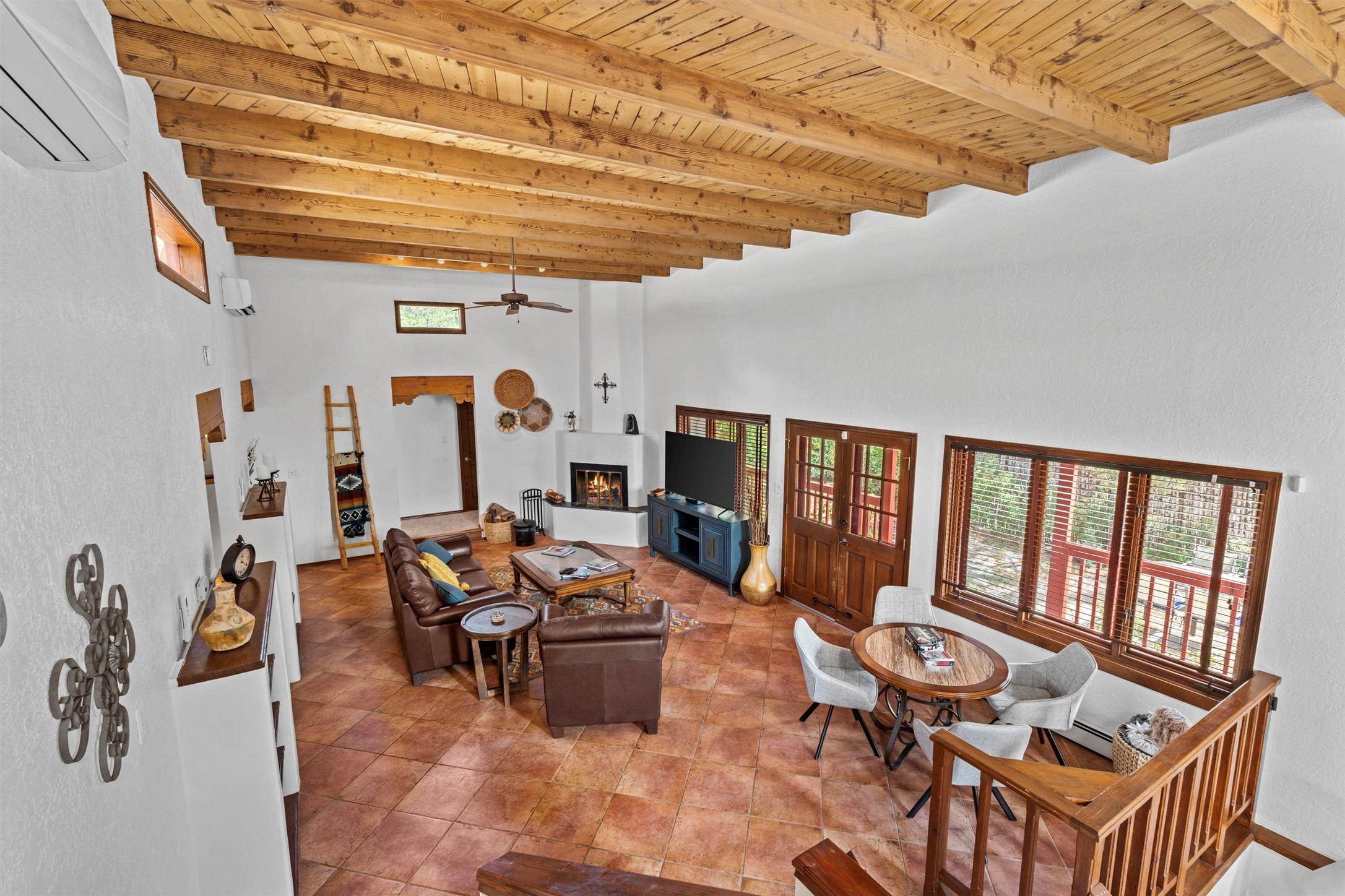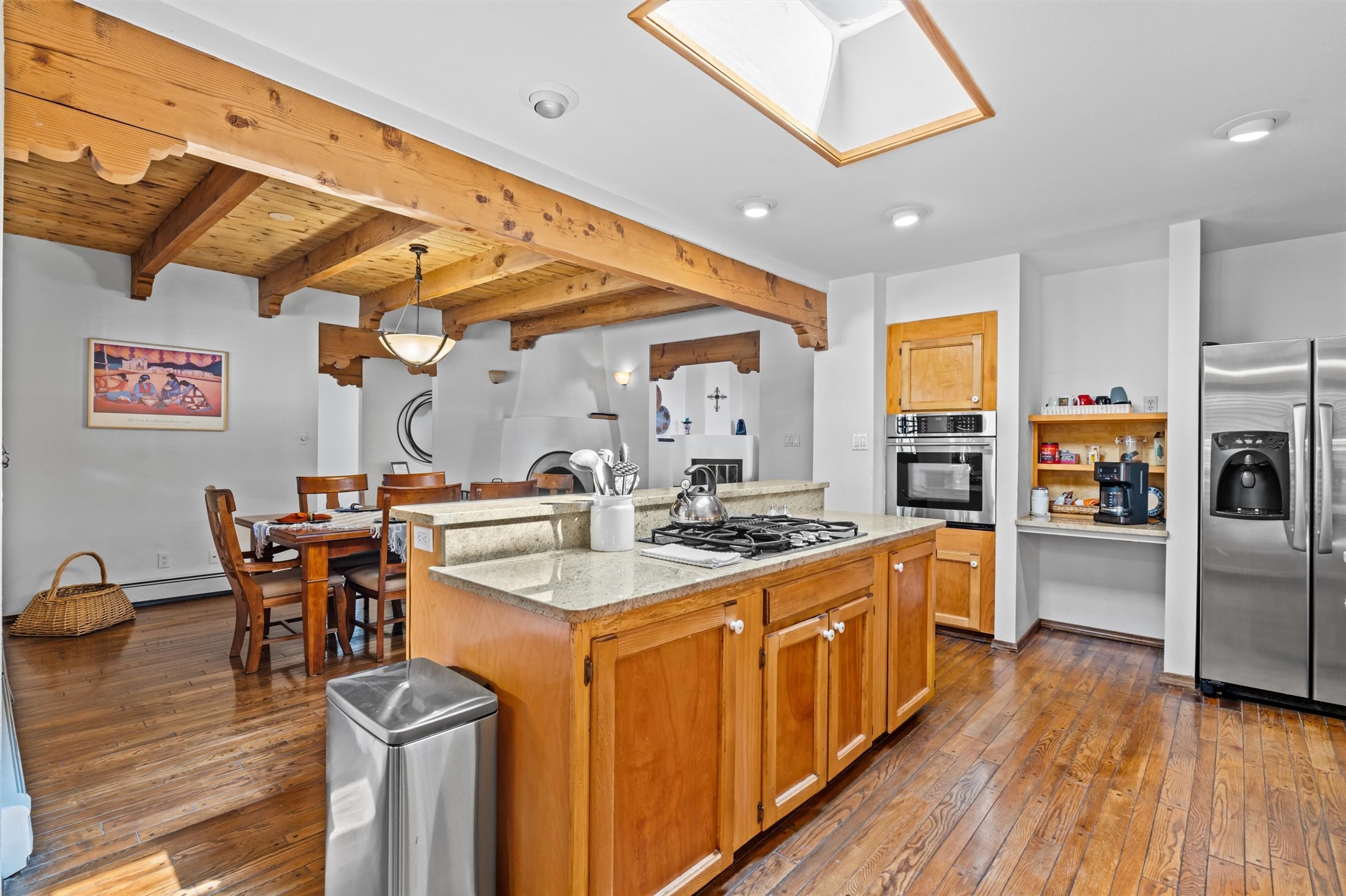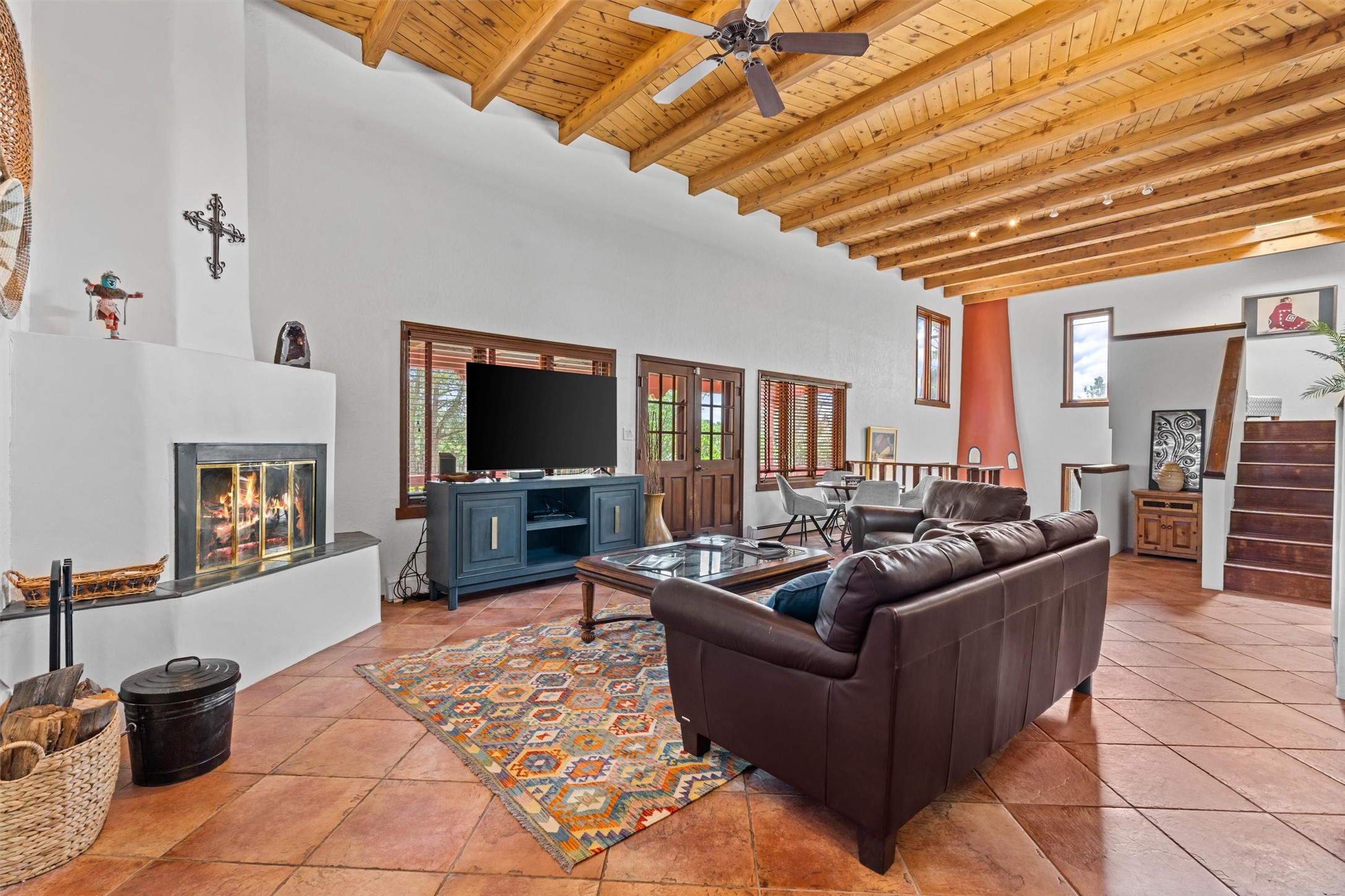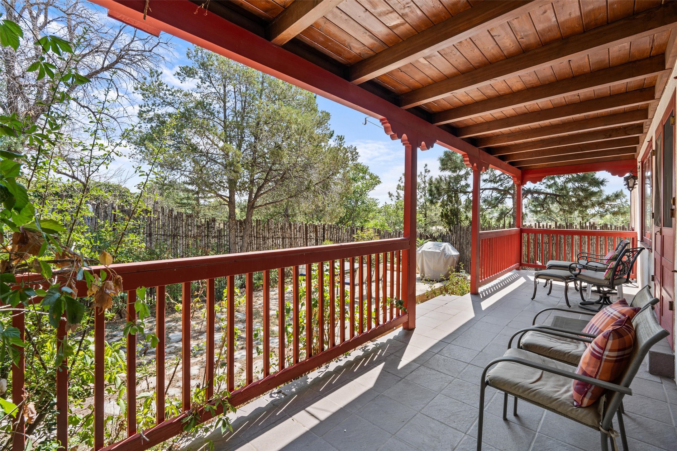 Introducing a magnificent Santa Fe gem! This sprawling split-level home offers 3447 square feet of luxurious living space, featuring 4 spacious bedrooms and 3 bathrooms.As you step inside, you'll be captivated by the warm and inviting atmosphere created by the 3 wood-burning fireplaces throughout the home. The living areas have high wood-beamed ceilings, with rustic elegance that Santa Fe is renowned for. The tiled flooring and hard wood have timeless charm while ensuring easy maintenance.All furnishings negotiableStep outside on the front and back porches, perfect for savoring the breathtaking Santa Fe sunsets or hosting gatherings. The over quarter-acre lot is a true oasis on a drip/sprinkler system. With its spacious layout, classic Santa Fe touches, and thoughtful amenities, this home won't last!