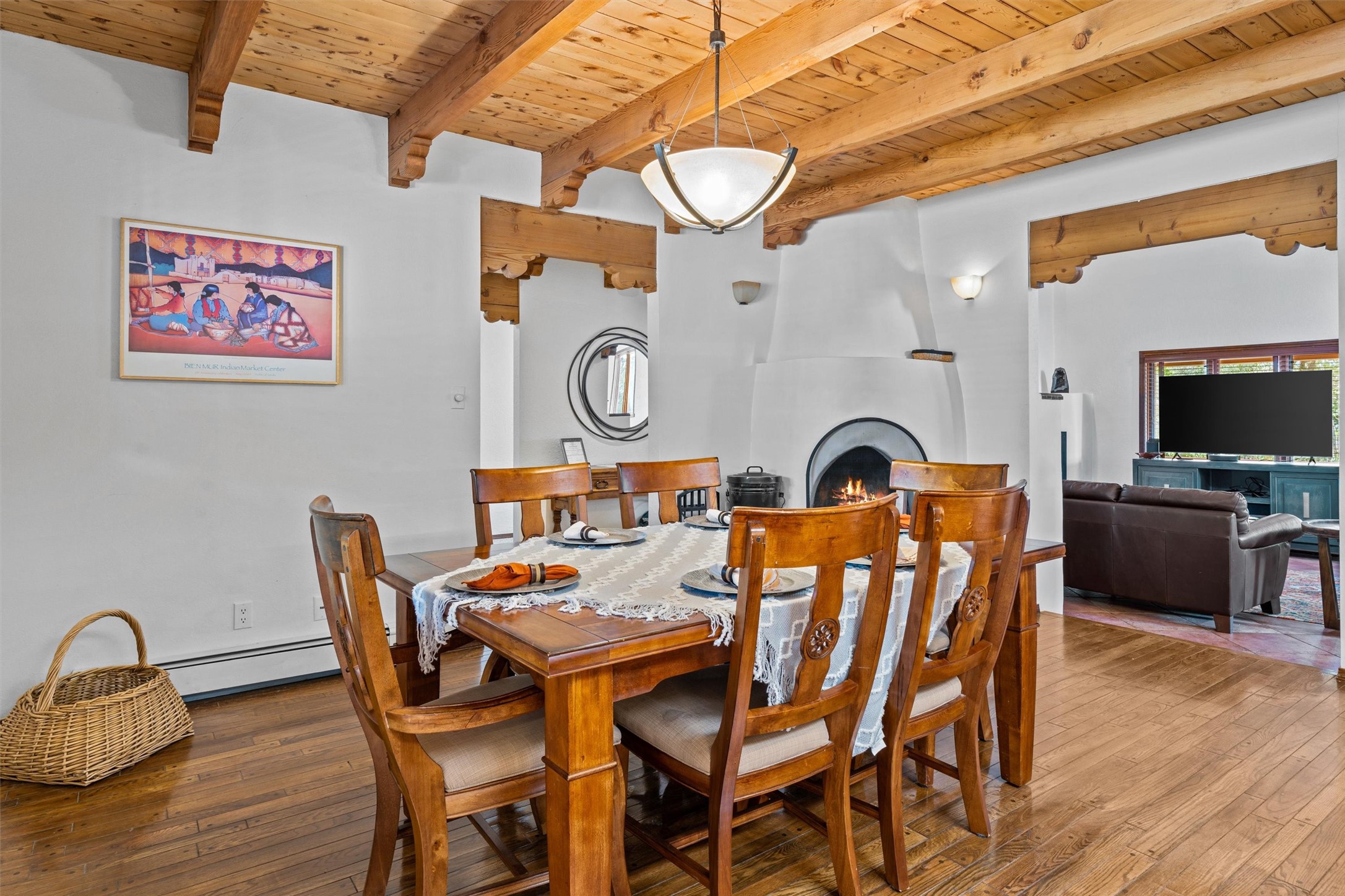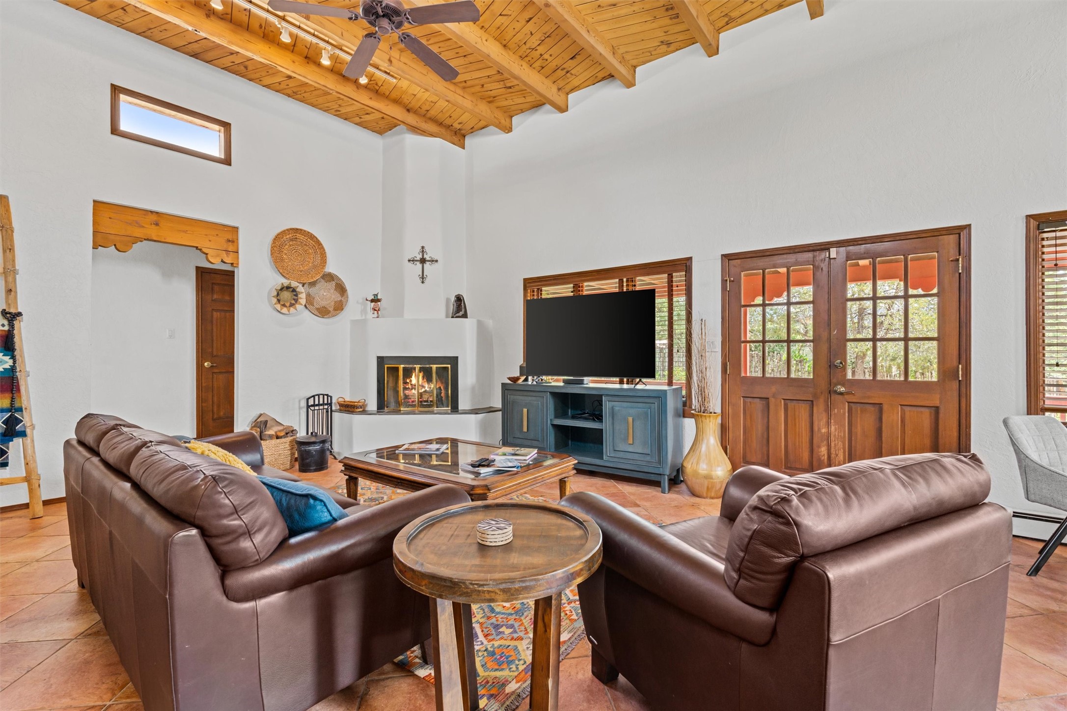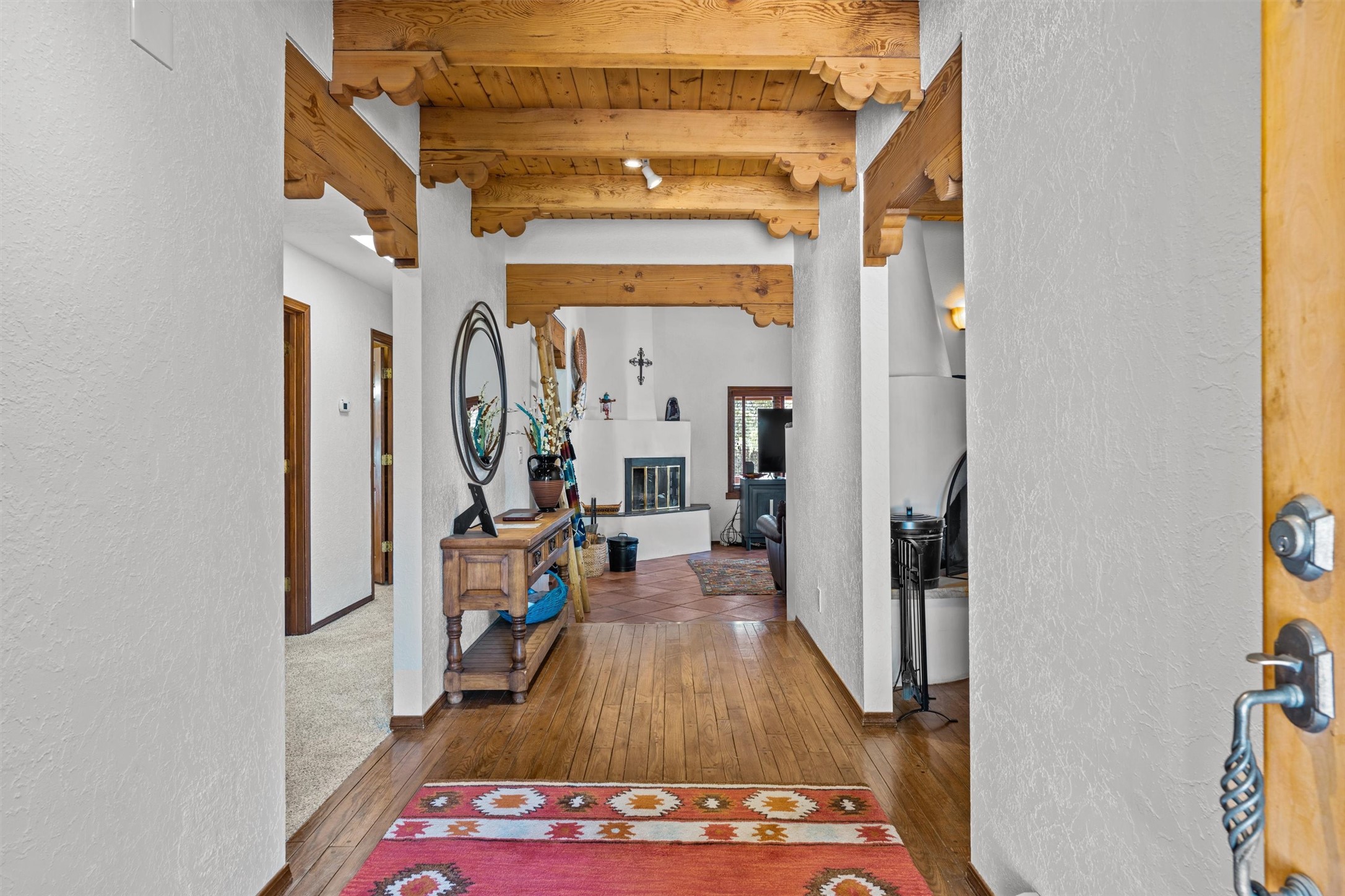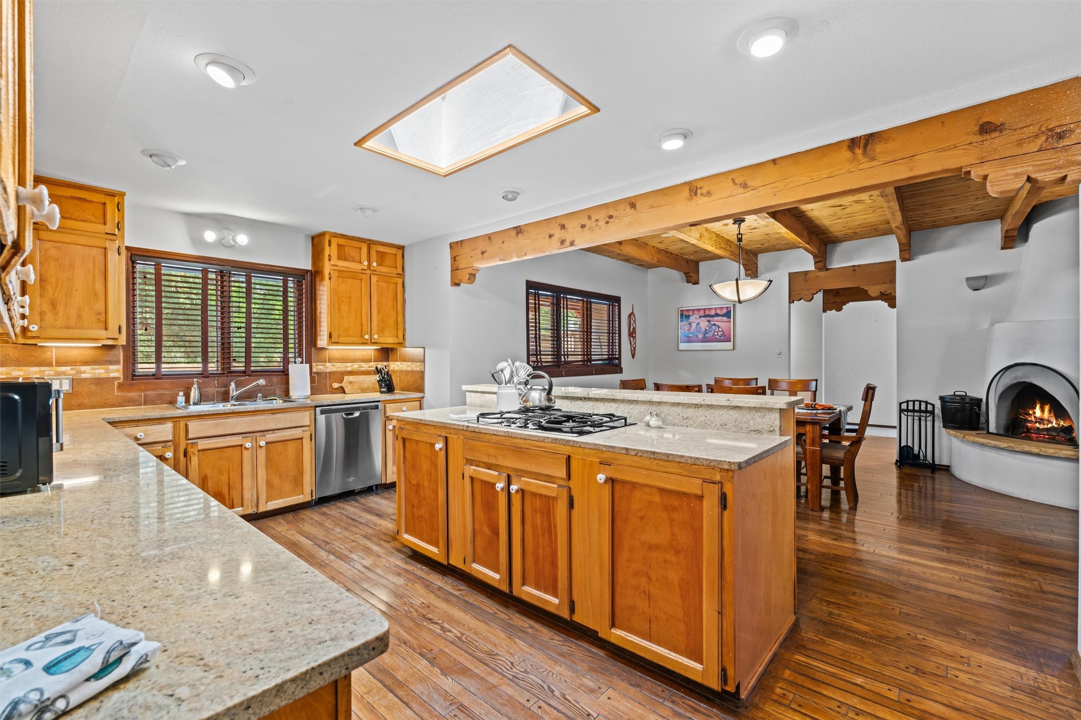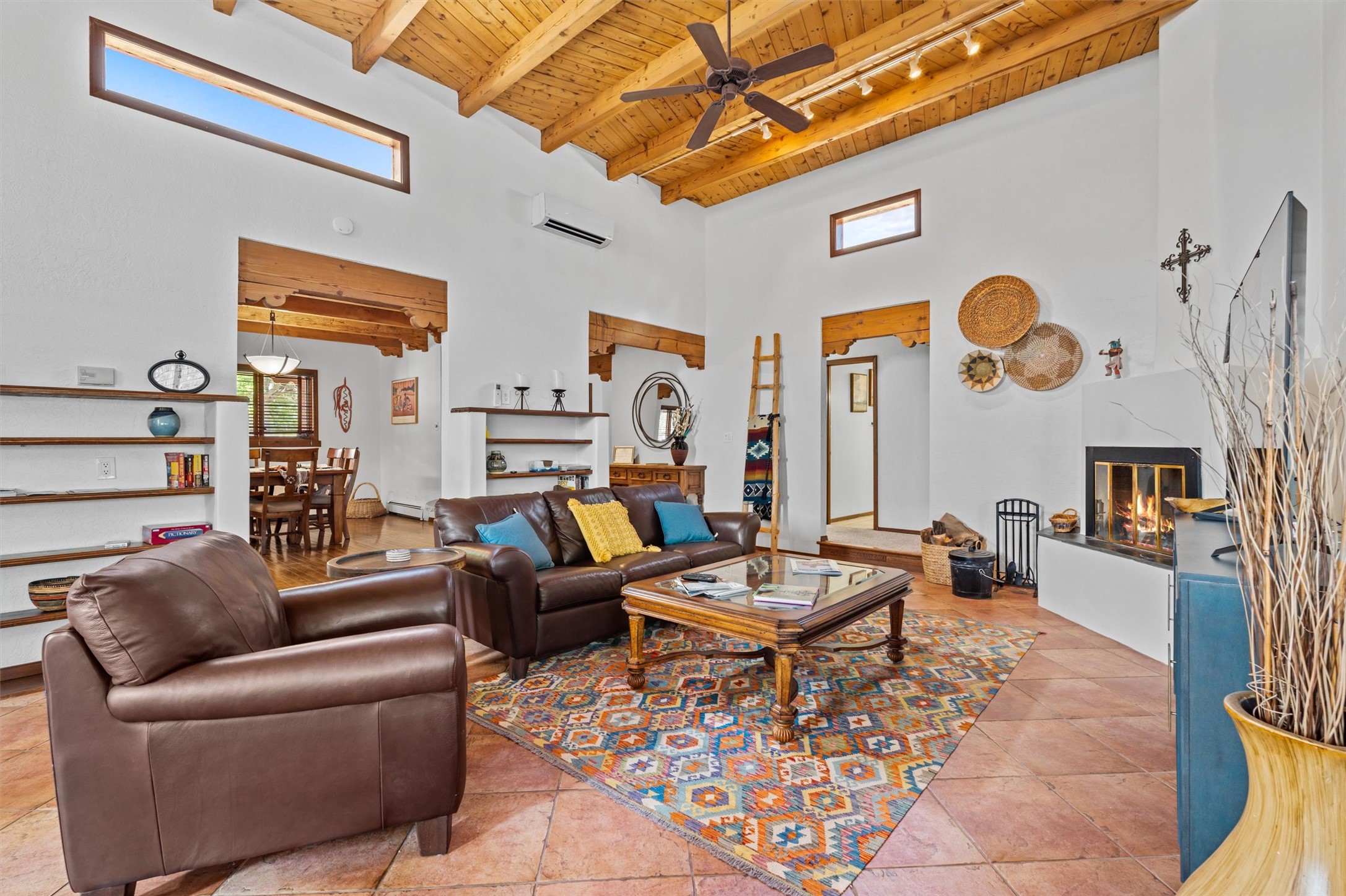 Introducing a magnificent Santa Fe gem! This sprawling split-level home offers 3447 square feet of luxurious living space, featuring 4 spacious bedrooms and 3 bathrooms.As you step inside, you'll be captivated by the warm and inviting atmosphere created by the 3 wood-burning fireplaces throughout the home. The living areas have high wood-beamed ceilings, with rustic elegance that Santa Fe is renowned for. The tiled flooring and hard wood have timeless charm while ensuring easy maintenance.All furnishings negotiableStep outside on the front and back porches, perfect for savoring the breathtaking Santa Fe sunsets or hosting gatherings. The over quarter-acre lot is a true oasis on a drip/sprinkler system. With its spacious layout, classic Santa Fe touches, and thoughtful amenities, this home won't last!