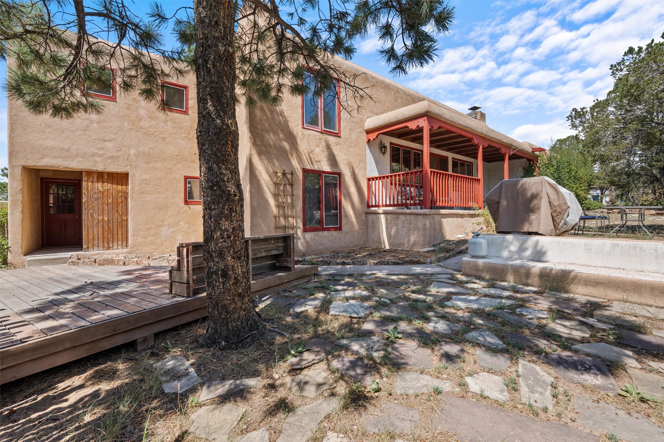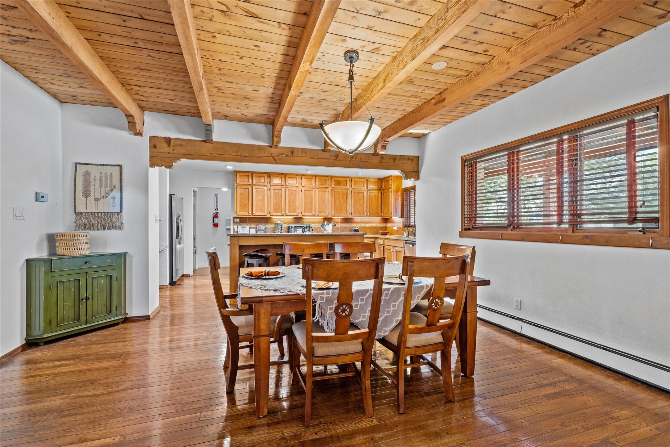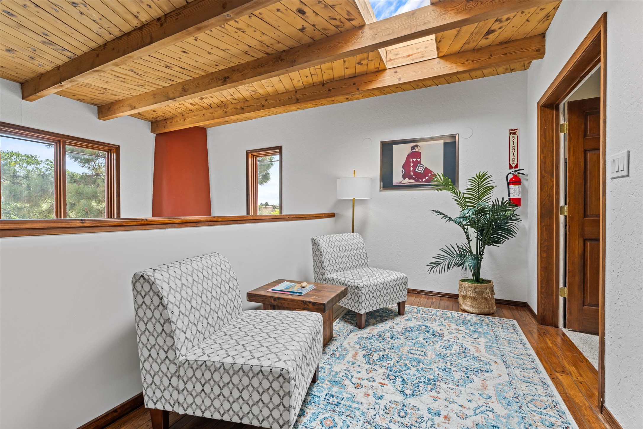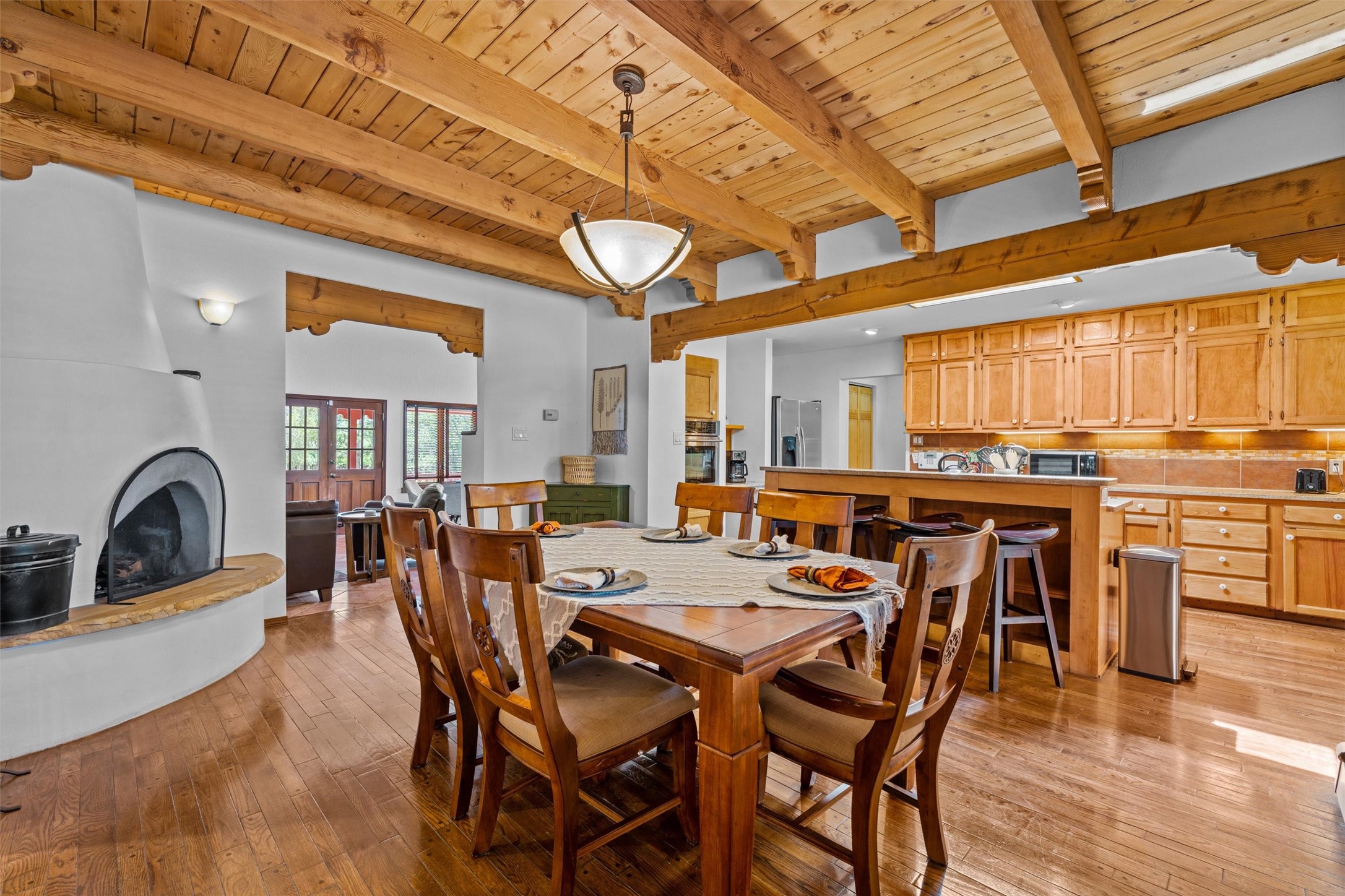 Introducing a magnificent Santa Fe gem! This sprawling split-level home offers 3447 square feet of luxurious living space, featuring 4 spacious bedrooms and 3 bathrooms.As you step inside, you'll be captivated by the warm and inviting atmosphere created by the 3 wood-burning fireplaces throughout the home. The living areas have high wood-beamed ceilings, with rustic elegance that Santa Fe is renowned for. The tiled flooring and hard wood have timeless charm while ensuring easy maintenance.All furnishings negotiableStep outside on the front and back porches, perfect for savoring the breathtaking Santa Fe sunsets or hosting gatherings. The over quarter-acre lot is a true oasis on a drip/sprinkler system. With its spacious layout, classic Santa Fe touches, and thoughtful amenities, this home won't last!