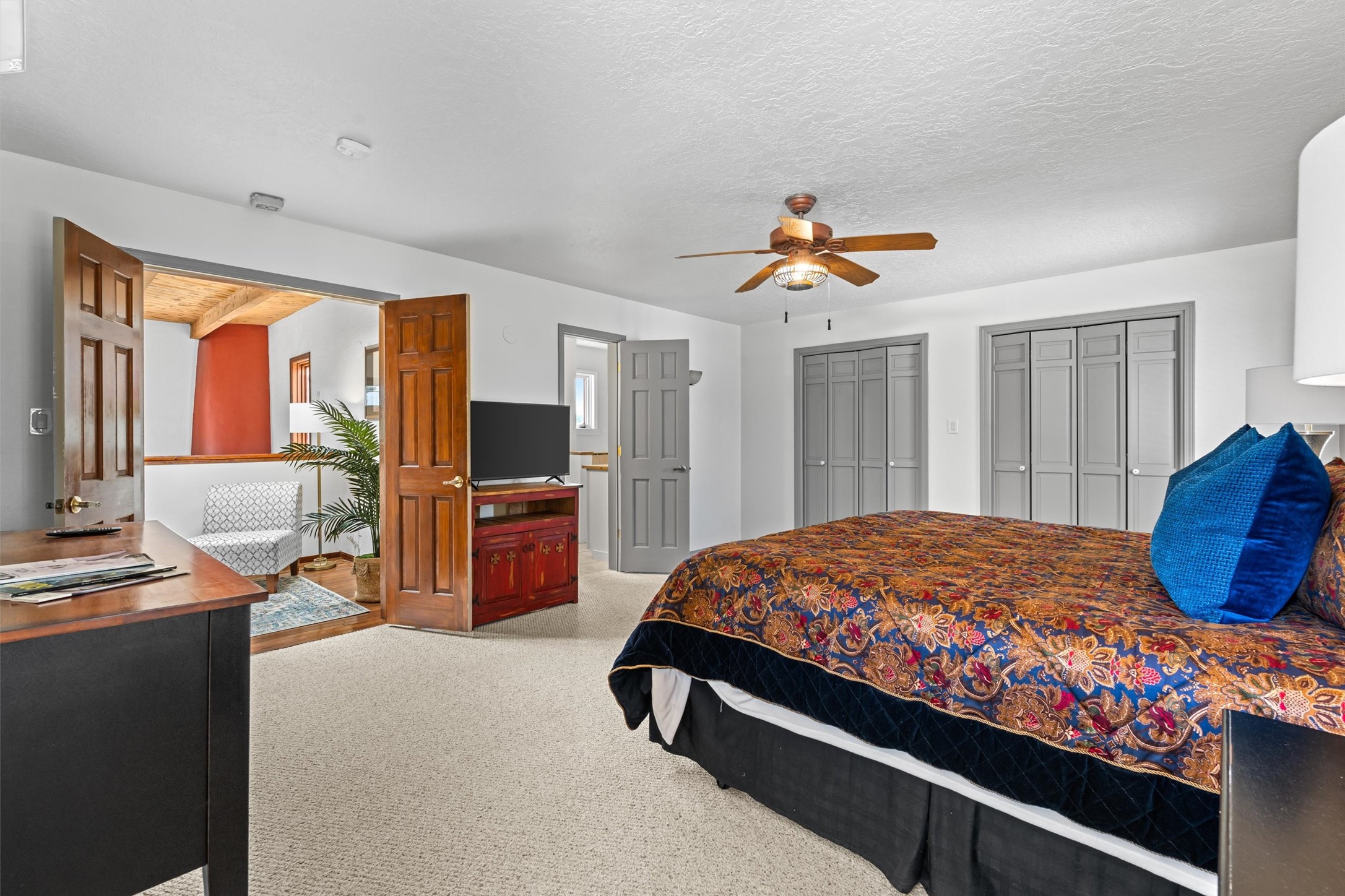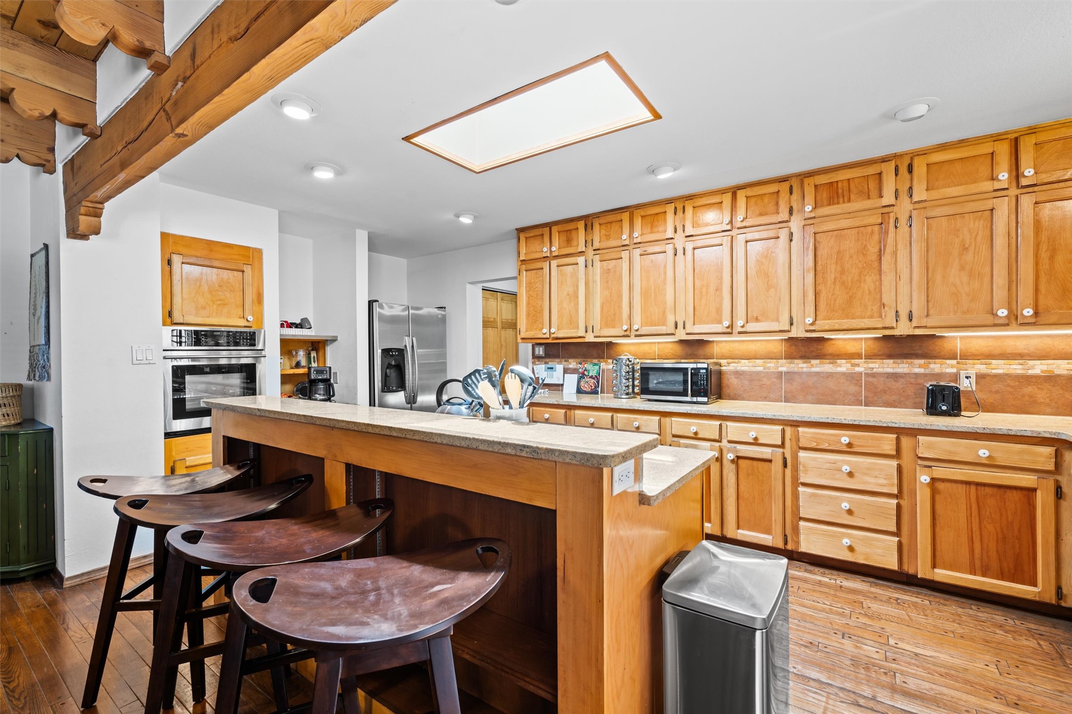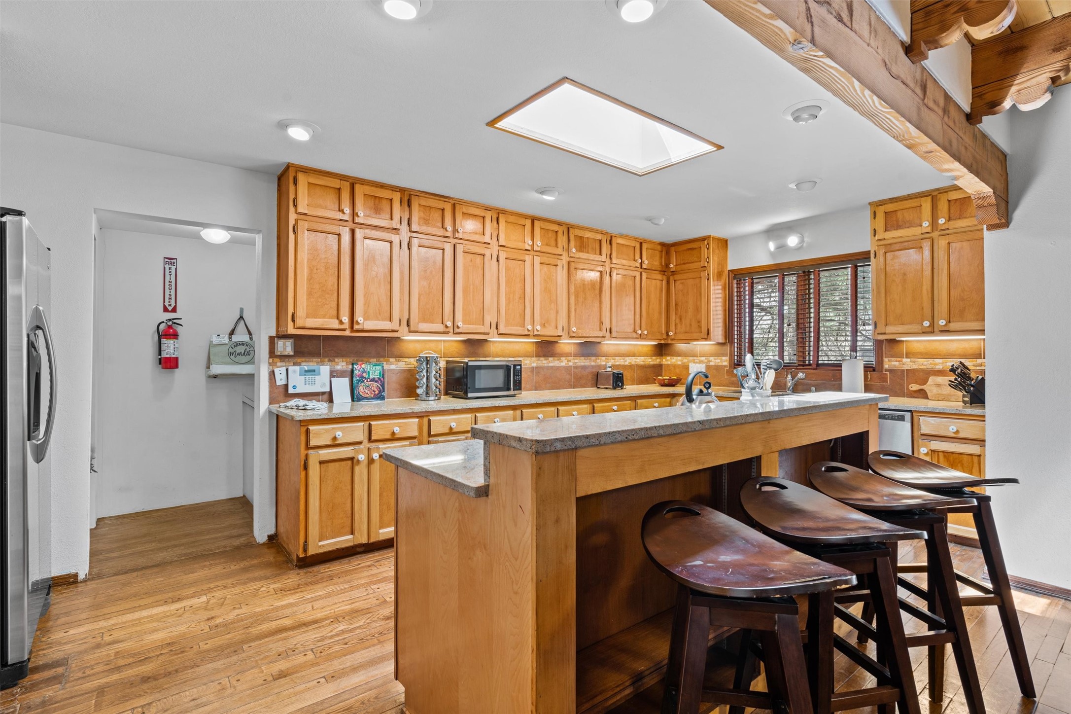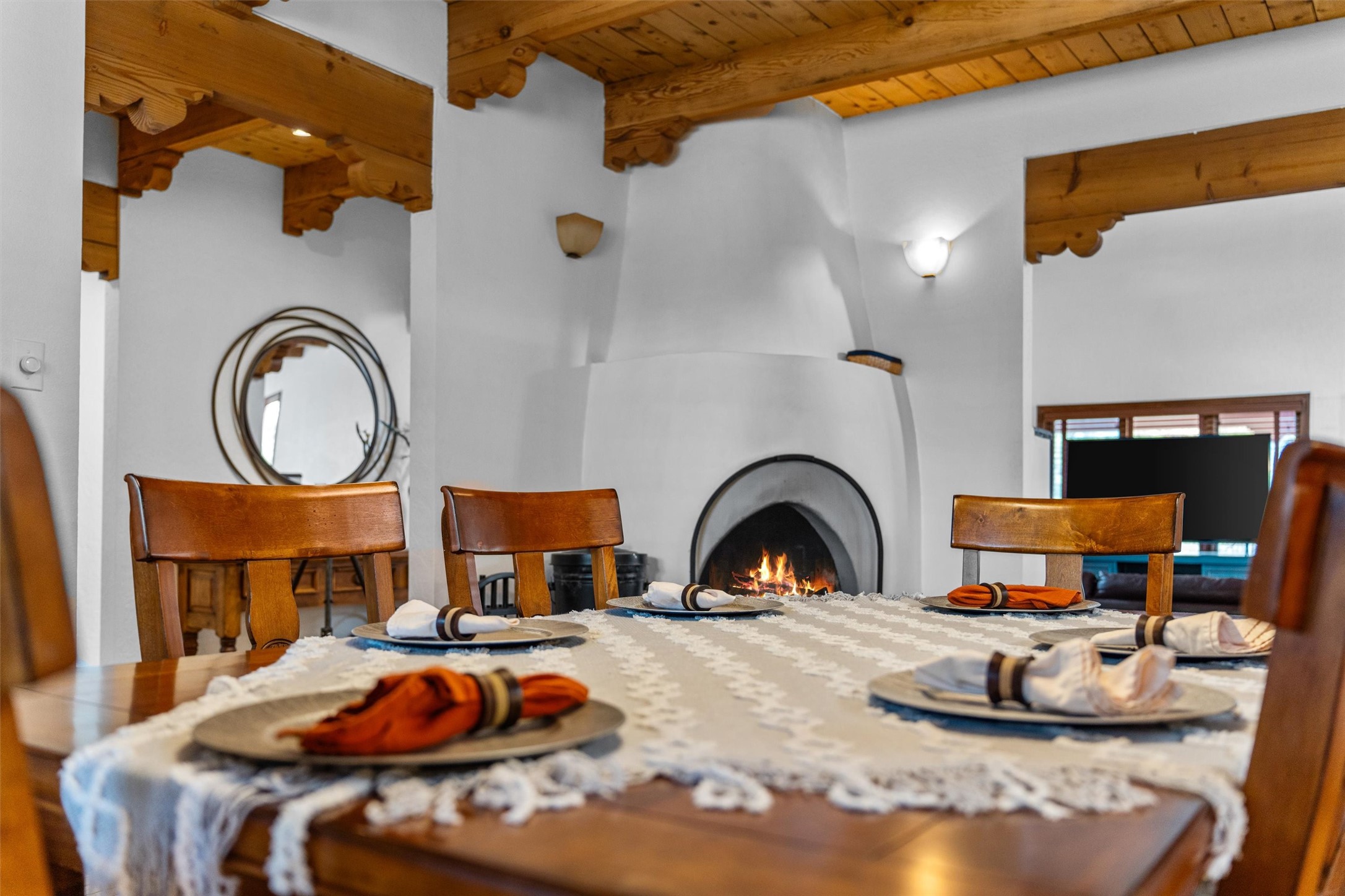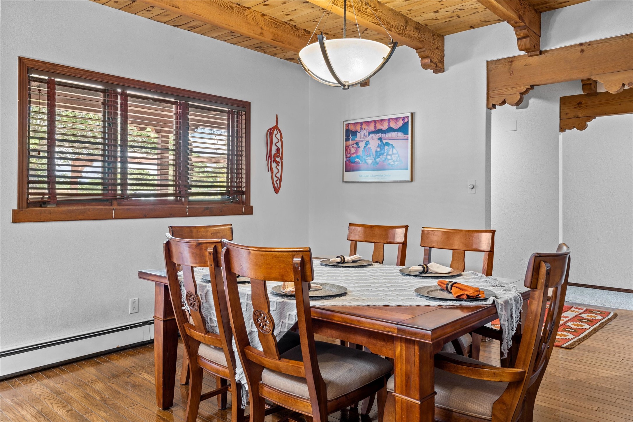 Introducing a magnificent Santa Fe gem! This sprawling split-level home offers 3447 square feet of luxurious living space, featuring 4 spacious bedrooms and 3 bathrooms.As you step inside, you'll be captivated by the warm and inviting atmosphere created by the 3 wood-burning fireplaces throughout the home. The living areas have high wood-beamed ceilings, with rustic elegance that Santa Fe is renowned for. The tiled flooring and hard wood have timeless charm while ensuring easy maintenance.All furnishings negotiableStep outside on the front and back porches, perfect for savoring the breathtaking Santa Fe sunsets or hosting gatherings. The over quarter-acre lot is a true oasis on a drip/sprinkler system. With its spacious layout, classic Santa Fe touches, and thoughtful amenities, this home won't last!